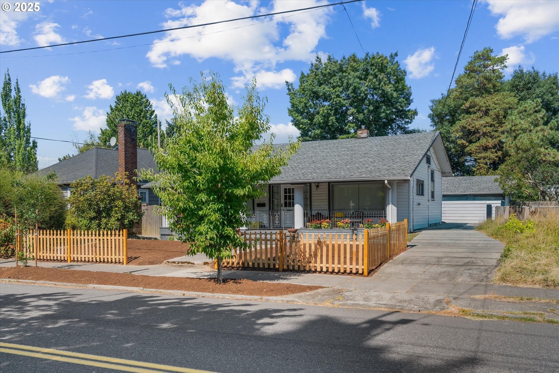 Sweet Bungalow in Amazing location. Period charm abounds,Featuring oak hardwood flooring, coved ceilings, amazing covered front porch w/period columns. Spacious 2-bedrooms 1-full updated bath on main. Remodeled kitchen w/stainless gas stove, chefs hood vent, stainless refrigerator,dishwasher, quartz counters, disposal,plenty of storage & cozy kitchen nook eat area. Ample room in the adjacent dining room, perfect for large or intimate gatherings. Living room fireplace flanked by period charm glass bookshelf built-ins. Full unfinished basement w/laundry area, tons of storage. Extra large detached 2-car garage includes new electrical, and perfect for a workshop. Fenced yard, perfect for your pets, newer air conditioning & furnace. Walk score 98, Bike Score 86. Transit Score 49. New landscaping w/new front fence. Enjoy nearby parks, McMenamins Kennedy School Theater, New Seasons And Restaurants!