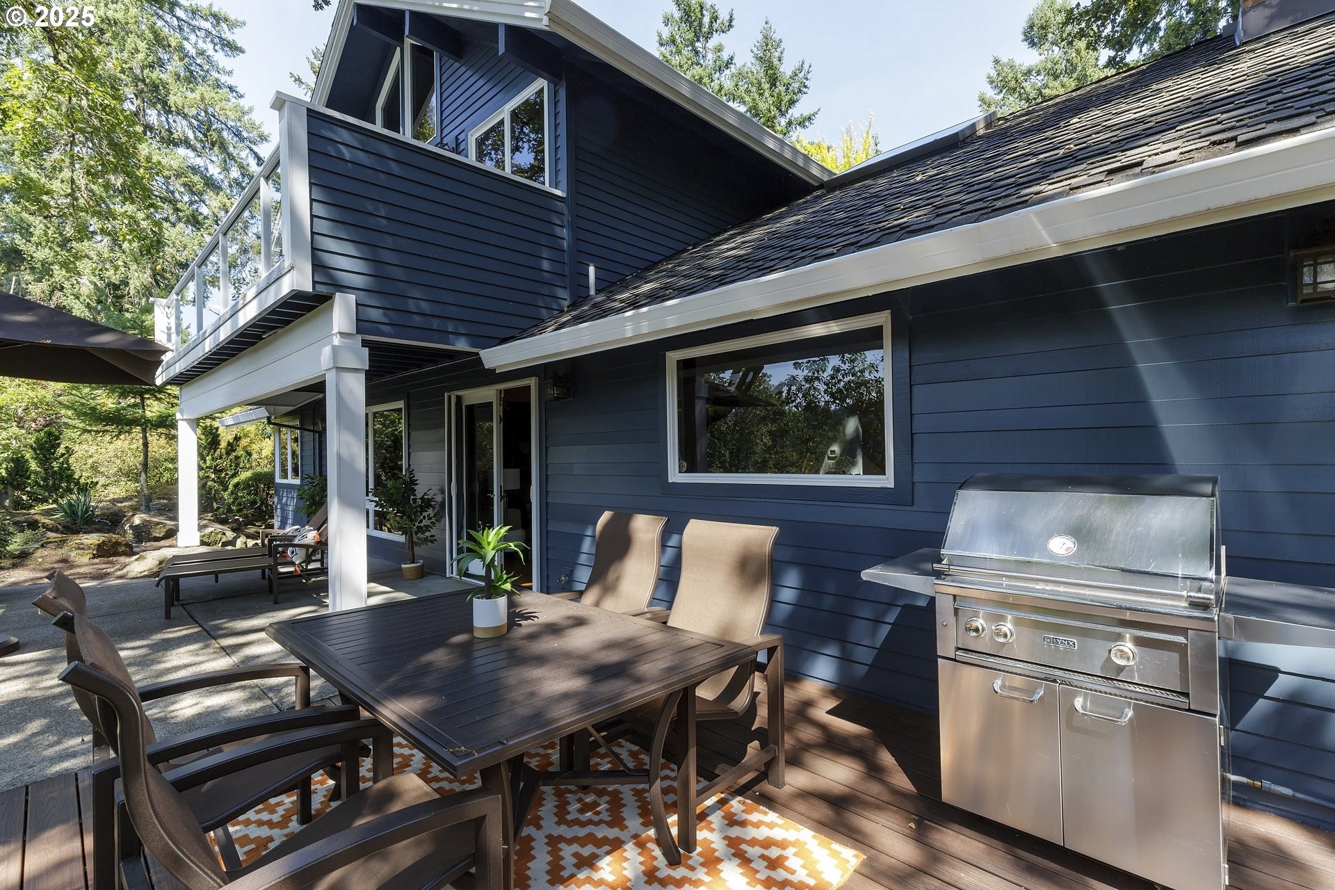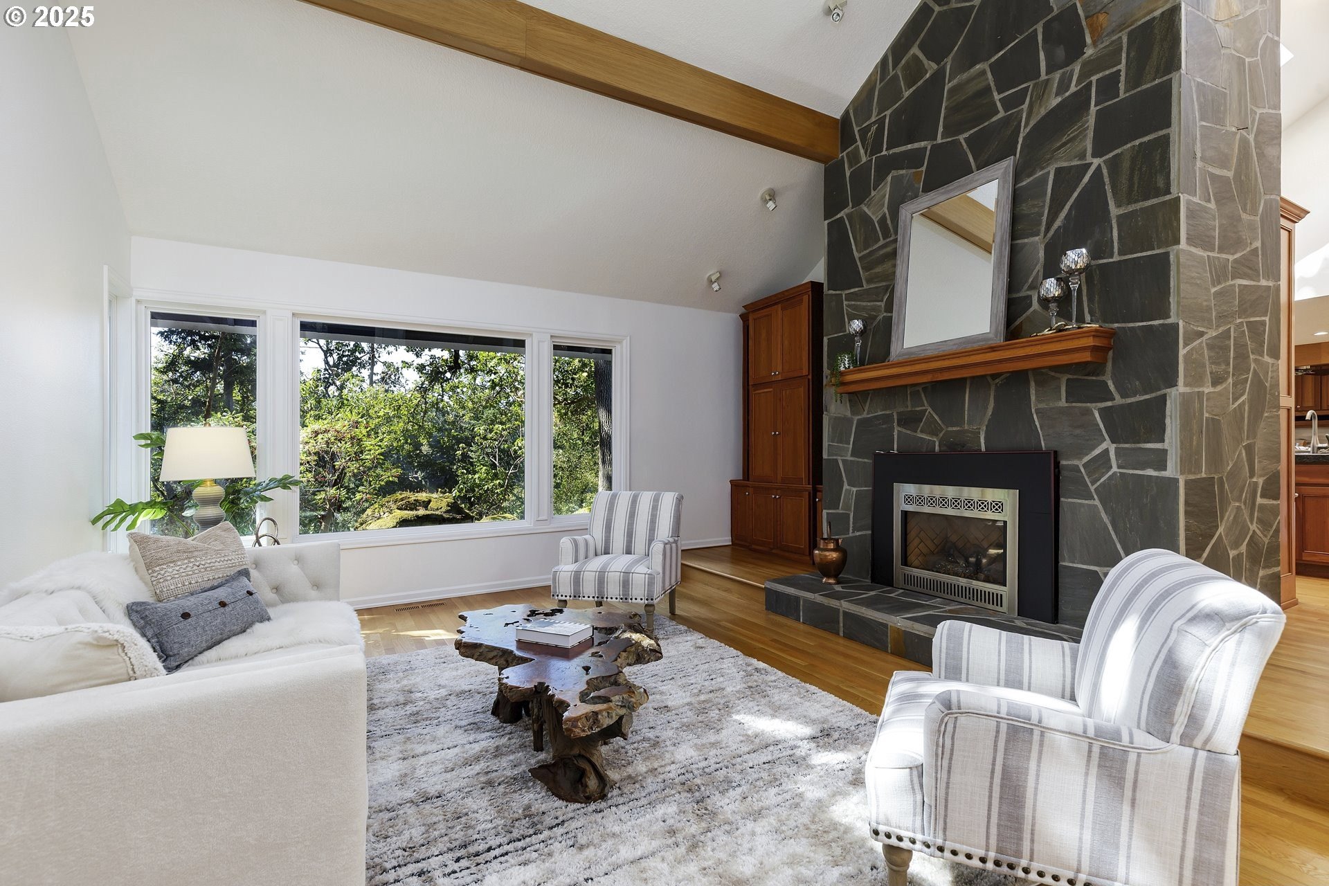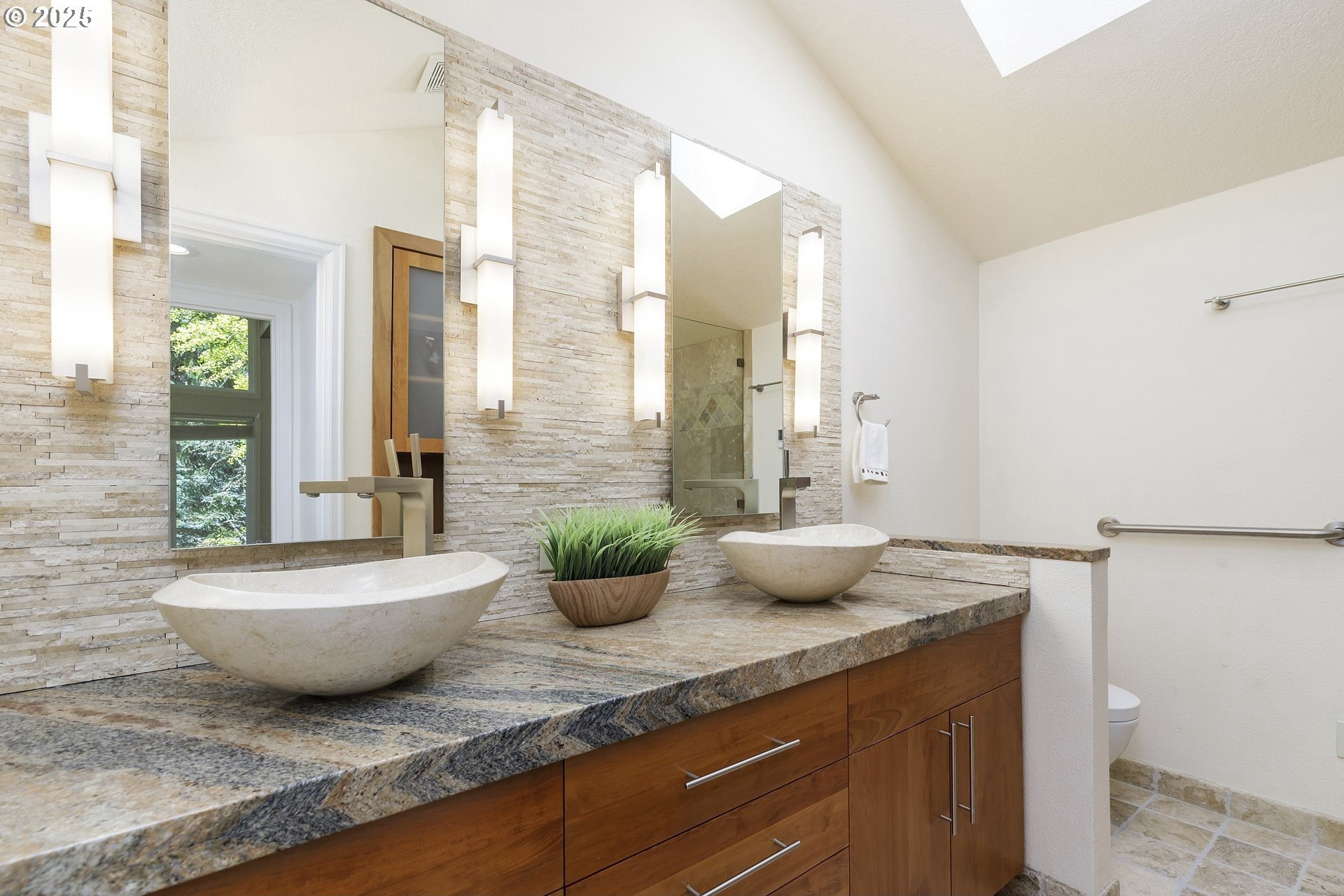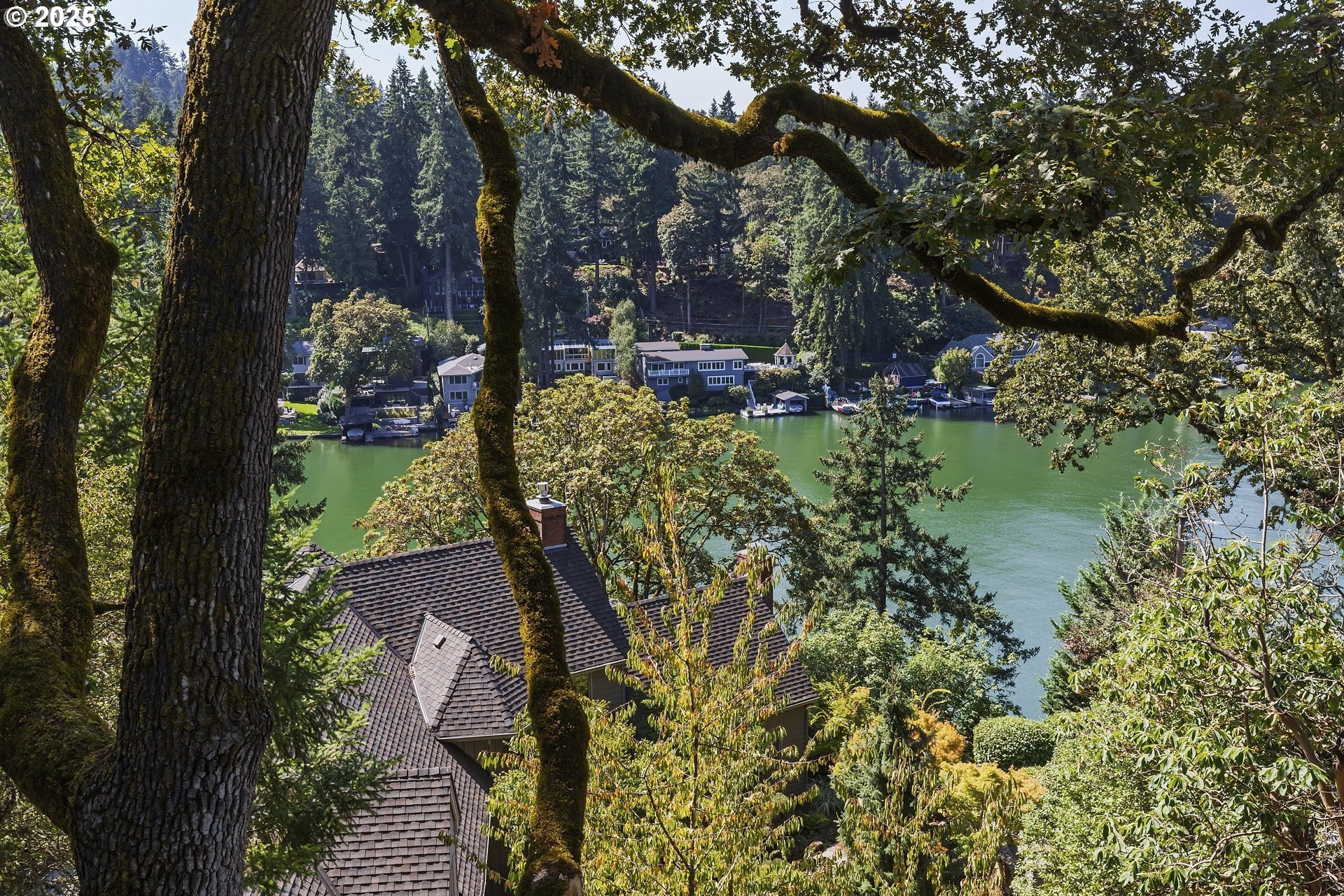 OPEN SAT 9/6 11-2 AND SUN 9/7 12-2. Enjoy serene privacy and breathtaking lake views from this beautifully crafted home, ideally located in one of Lake Oswego’s most desirable neighborhoods. Just minutes from downtown Lake Oswego and all that it has to offer including lake front dining, boutique shopping, parks (George Rogers & Foothills Park), theater, LO farmers market and cultural attractions (Lakewood Center for the Arts!). Inside, quality craftsmanship is evident with hardwood floors throughout all levels and multiple skylights bringing in the natural light. Enjoy a gourmet kitchen with granite countertops, cherry cabinetry, and a butlers pantry. The flexible floor plan includes four bedrooms, with one on the main level complete with a private ensuite bathroom — perfect as a guest suite, or office/den. Upstairs, the primary suite has a private balcony overlooking the lake. All bathrooms have been tastefully remodeled with high-end finishes and California Closets in all upper bedrooms. Other amenities include a tankless water heater and full house generator installed in 2018, a newer HVAC system in 2023, & a 240 volt electric car charger in garage. Great storage in the garage and throughout the home. The professionally landscaped yard is designed for low maintenance. Enjoy the possibility of five swim and boat easements. This is Lake Oswego living at its finest!