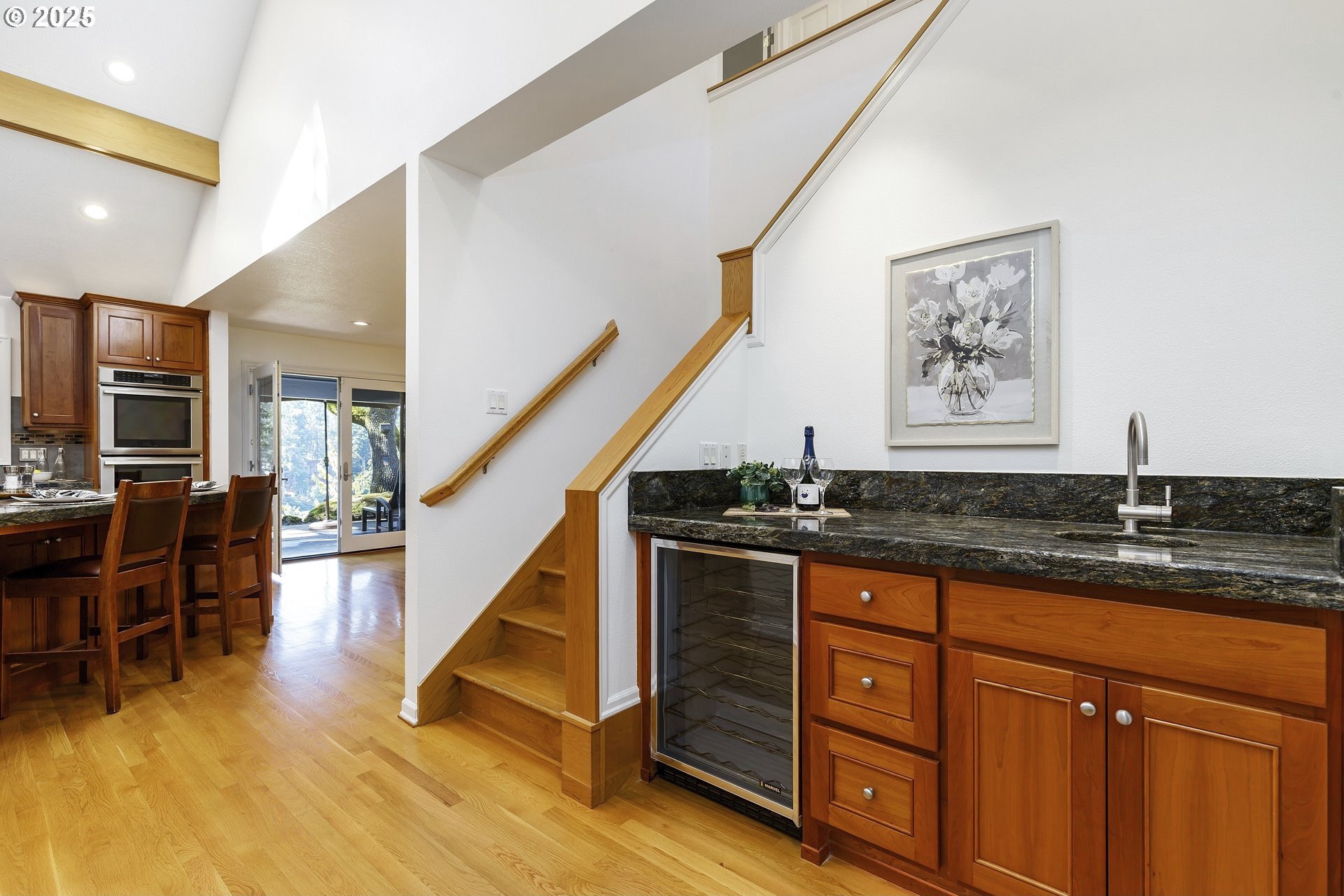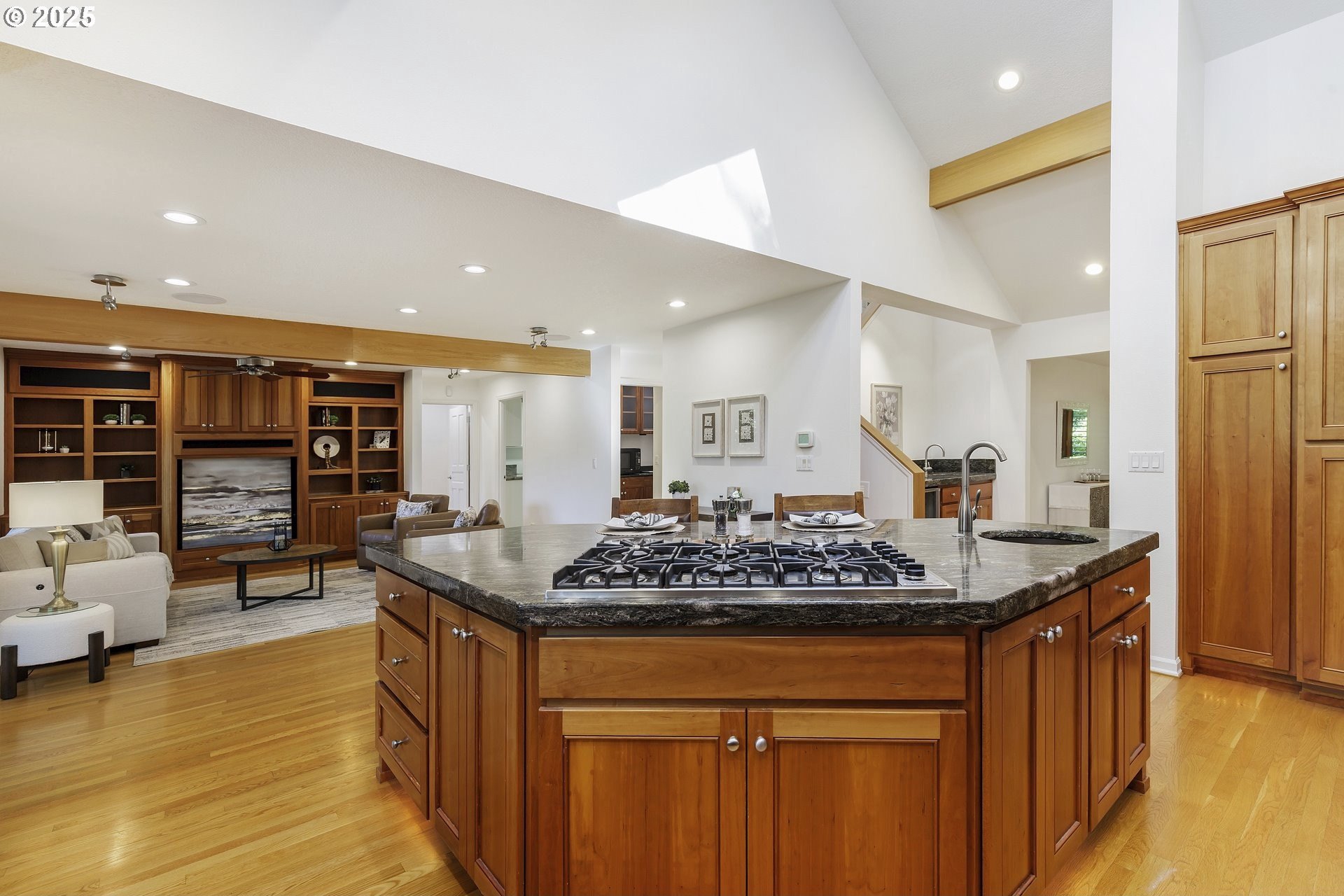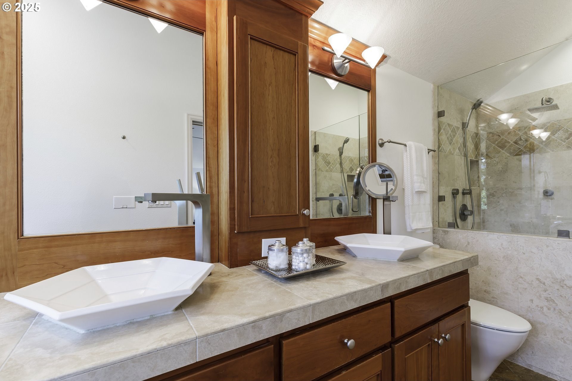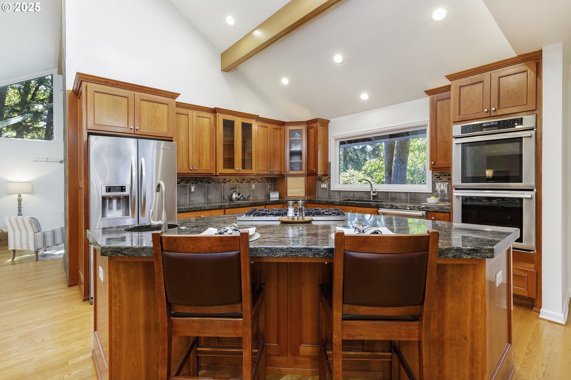 OPEN SAT 9/6 11-2 AND SUN 9/7 12-2. Enjoy serene privacy and breathtaking lake views from this beautifully crafted home, ideally located in one of Lake Oswego’s most desirable neighborhoods. Just minutes from downtown Lake Oswego and all that it has to offer including lake front dining, boutique shopping, parks (George Rogers & Foothills Park), theater, LO farmers market and cultural attractions (Lakewood Center for the Arts!). Inside, quality craftsmanship is evident with hardwood floors throughout all levels and multiple skylights bringing in the natural light. Enjoy a gourmet kitchen with granite countertops, cherry cabinetry, and a butlers pantry. The flexible floor plan includes four bedrooms, with one on the main level complete with a private ensuite bathroom — perfect as a guest suite, or office/den. Upstairs, the primary suite has a private balcony overlooking the lake. All bathrooms have been tastefully remodeled with high-end finishes and California Closets in all upper bedrooms. Other amenities include a tankless water heater and full house generator installed in 2018, a newer HVAC system in 2023, & a 240 volt electric car charger in garage. Great storage in the garage and throughout the home. The professionally landscaped yard is designed for low maintenance. Enjoy the possibility of five swim and boat easements. This is Lake Oswego living at its finest!