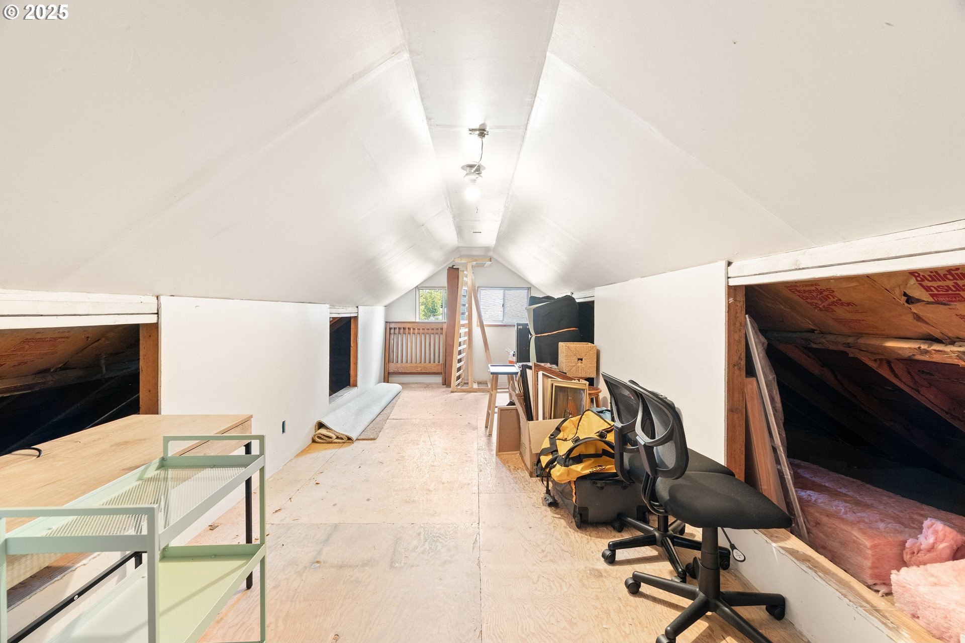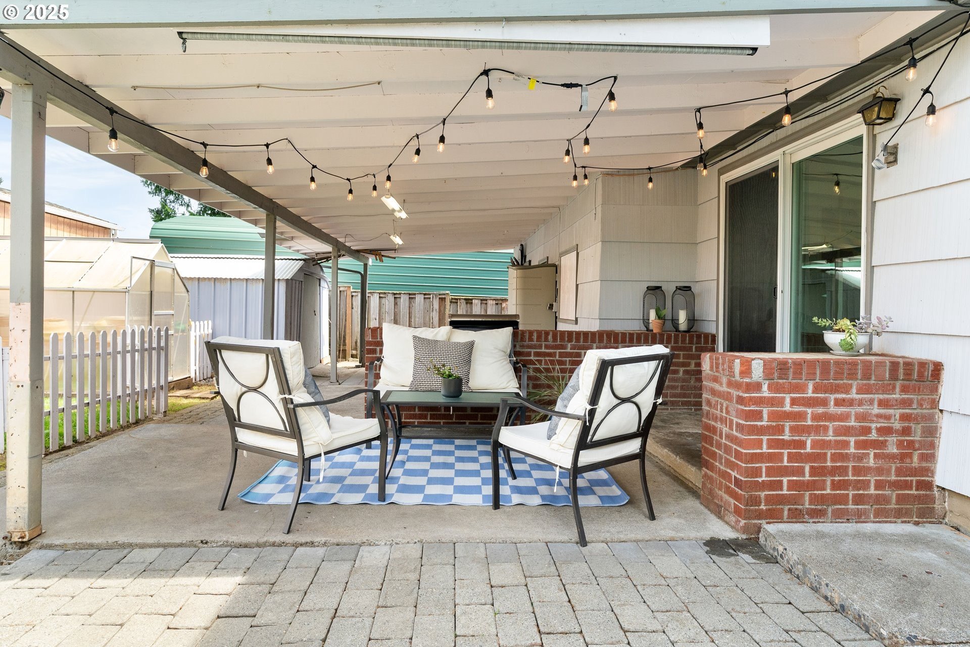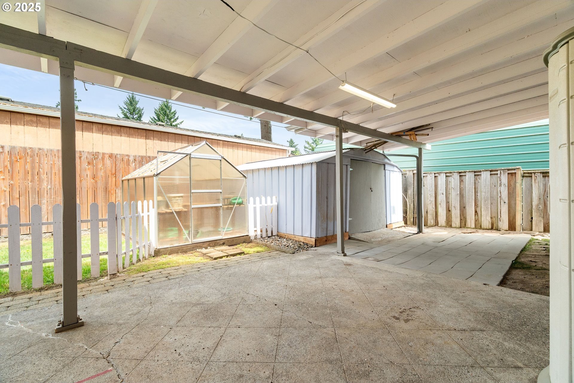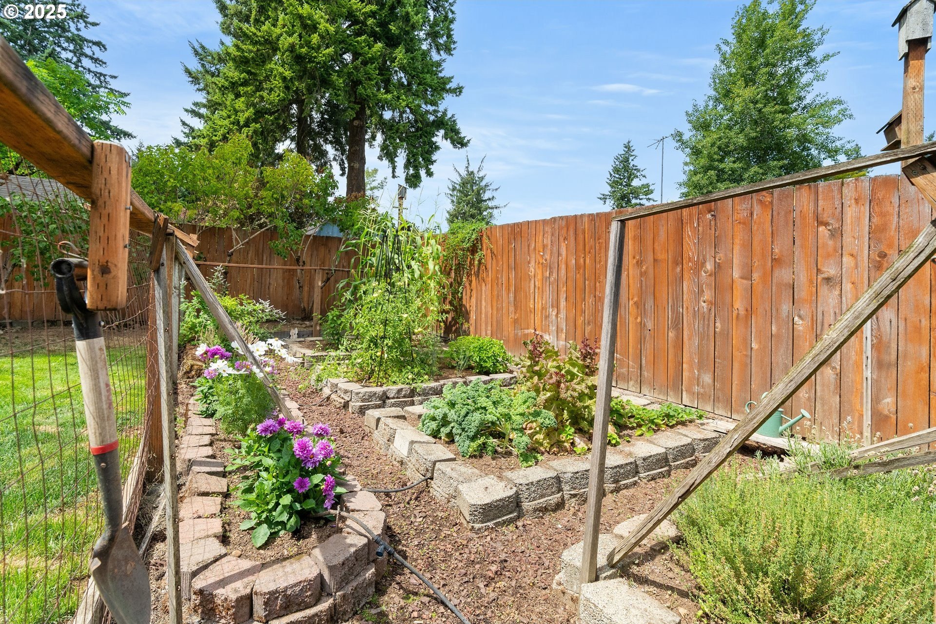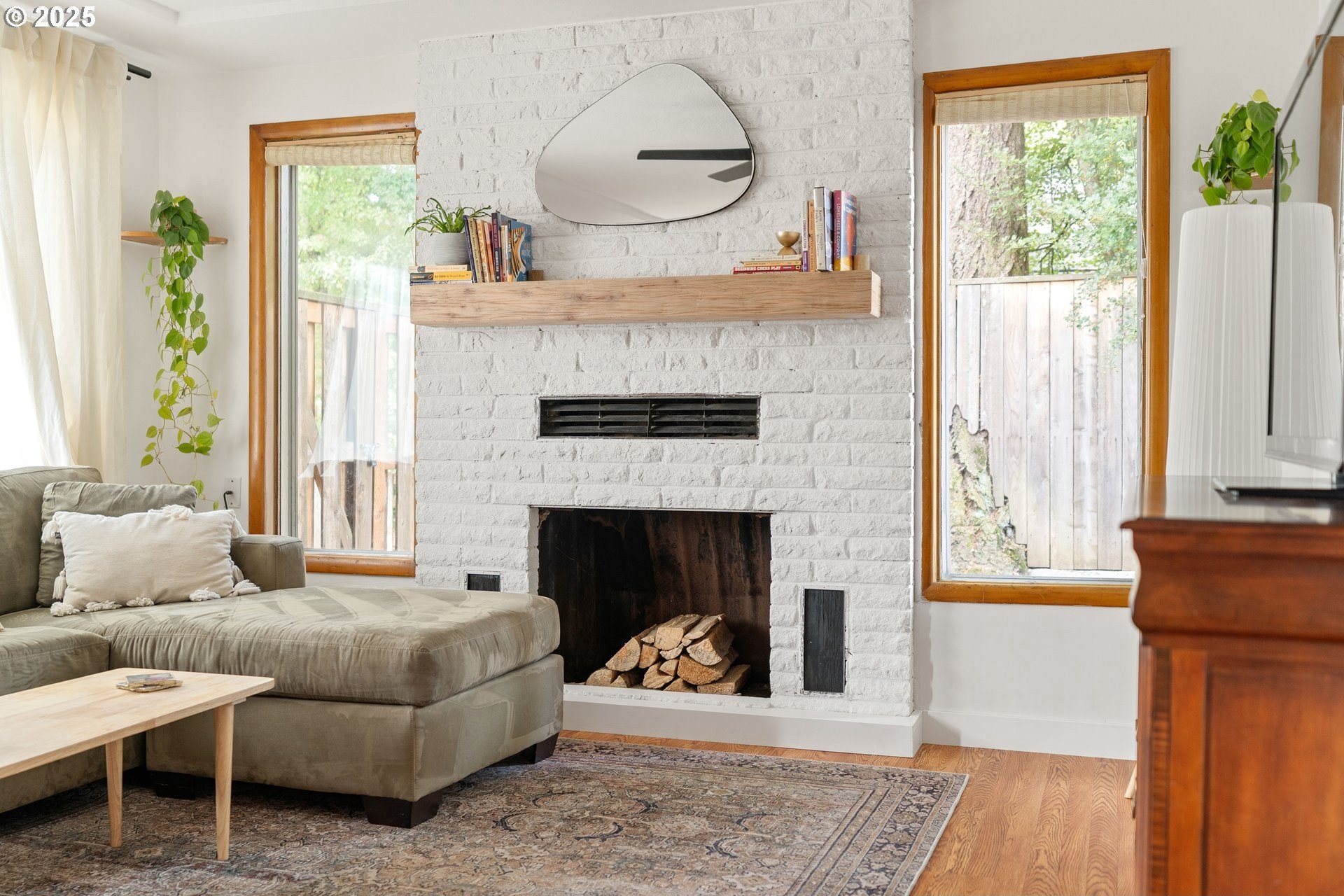 Mid-century roots meet modern living at this refreshed 1950s Mill Park home. Newly exposed brick fireplace, original hardwoods, and fresh paint set the stage for bright, flexible spaces. The kitchen is a cook’s dream with butcher block counters, new tile backsplash, updated cabinets, and plenty of room for chef + sous to work side by side. Sliding doors off the dining room frame backyard views, while the cozy living room centers around the original brick fireplace with twin sidelight windows. A full bath with retro tile and generous storage plus a peaceful main-level bedroom offer easy guest or primary options. Upstairs, two bedrooms and a half bath create space for home office, studio, or the primary suite of your dreams. A bonus 219 sq ft of storage space over the garage is clean and easily accessible. Oversized 2-car garage with shop space and massive driveway offer space for RVs/campers/boats, and all your gear!. Out back, unwind under a covered patio, grow veggies in the garden and greenhouse, and find a place for everything in the shed and fully fenced spaces. Recent updates include refreshed kitchen (2022), new electrical panel (2025), interior paint (2023), updated plumbing and water line (2007), furnace + oil tank decom (2015), and roof (2014). Close to many hidden gems of east Portland, like the newly-renovated Parklane Park, several food truck pods, and Powell Butte, with easy access to Montavilla, Tabor, 205, and the airport. [Home Energy Score = 3. HES Report at https://rpt.greenbuildingregistry.com/hes/OR10198311]
