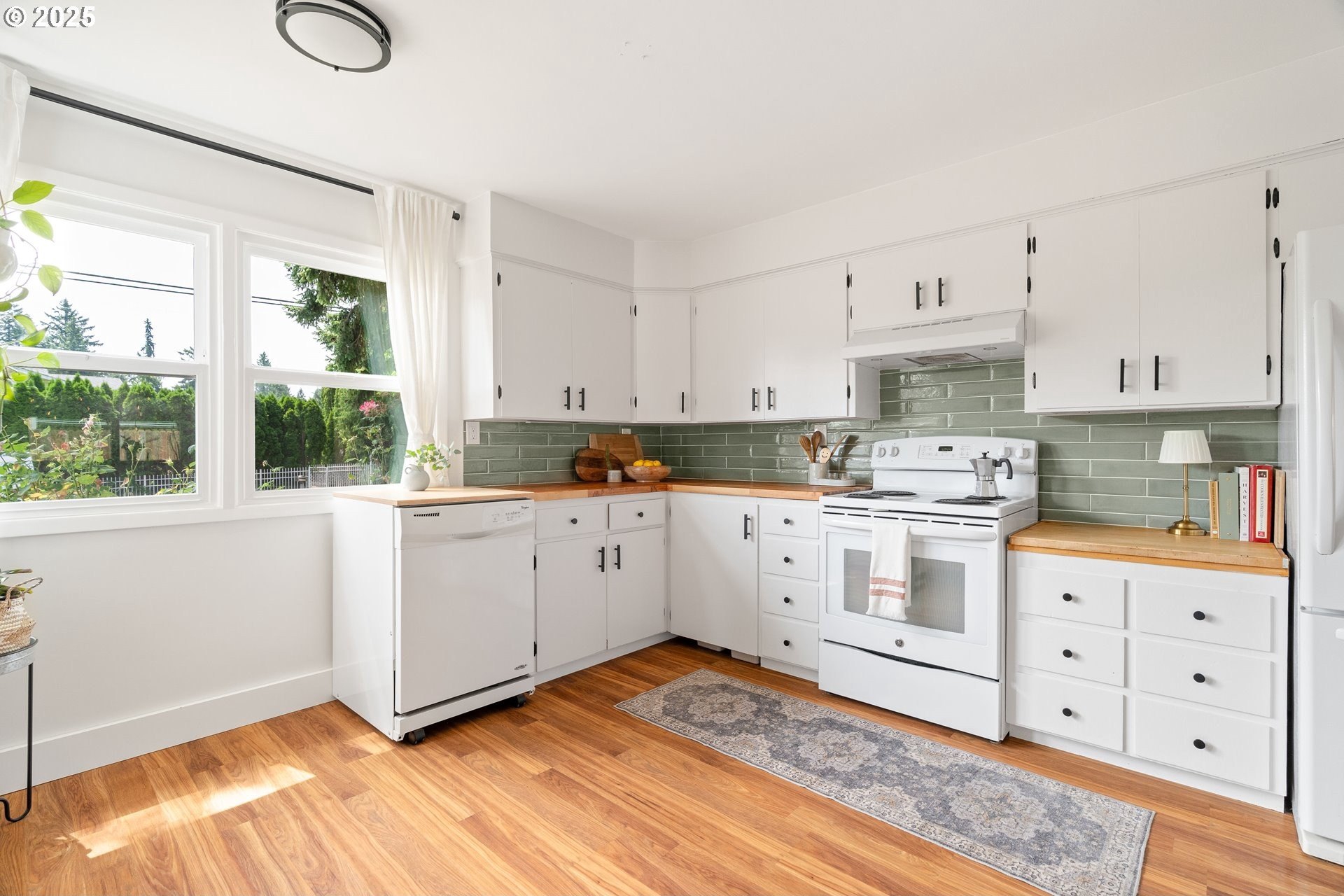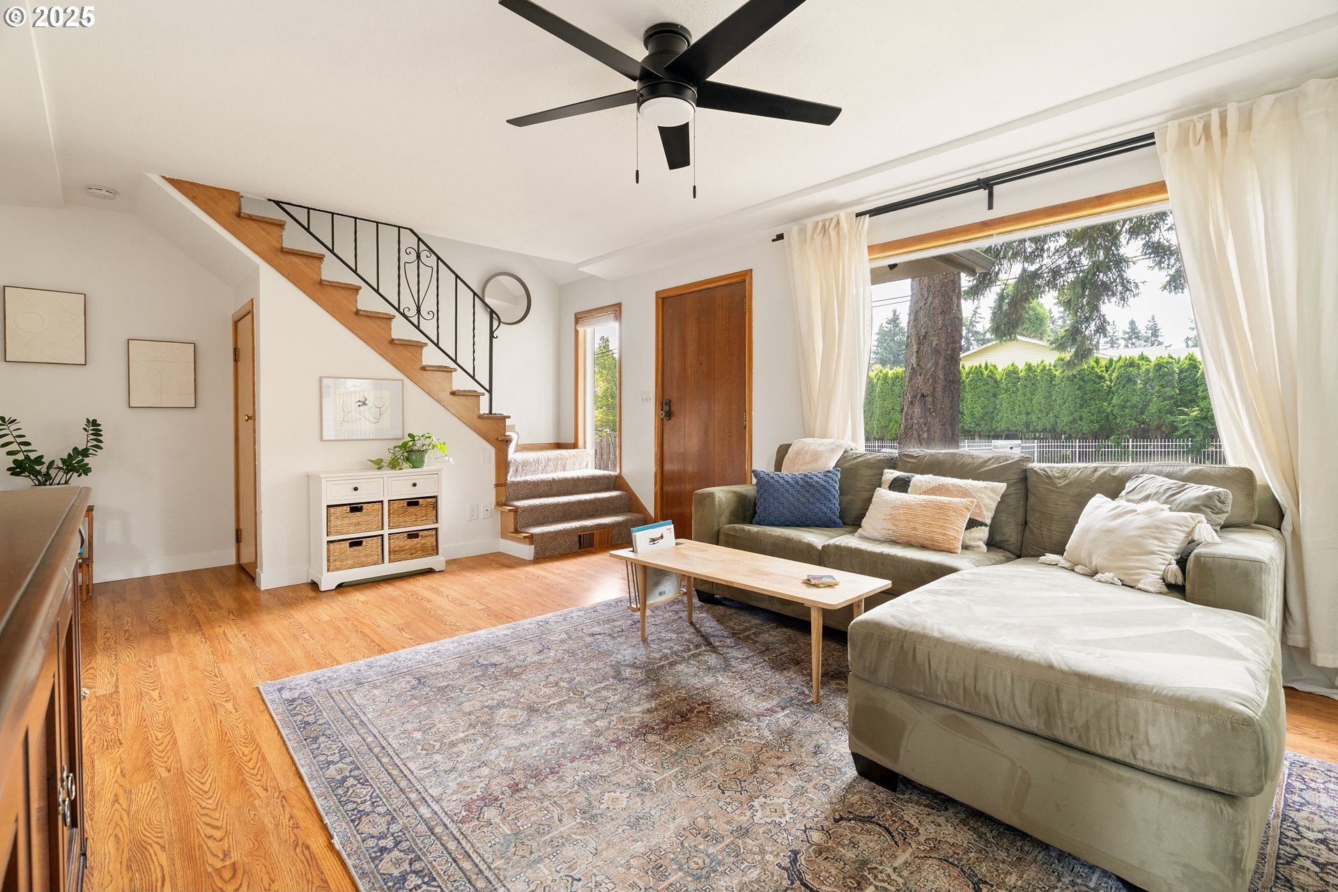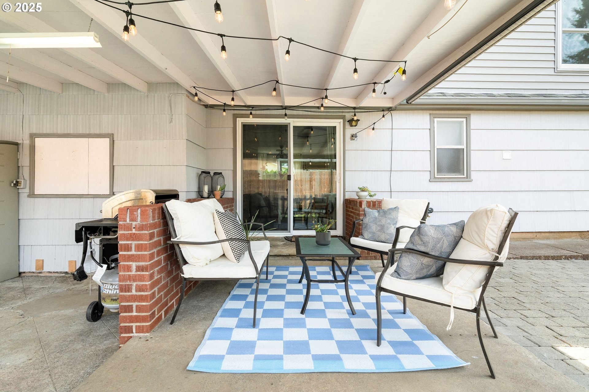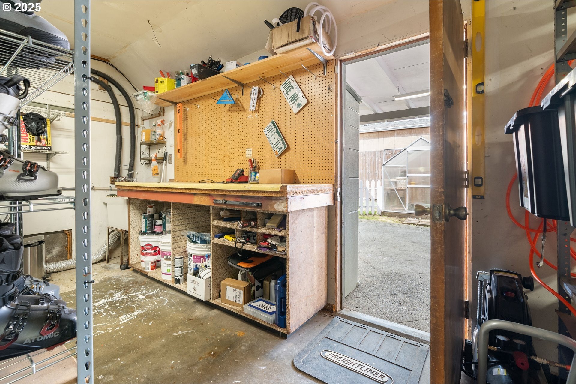Mid-century roots meet modern living at this refreshed 1950s Mill Park home. Newly exposed brick fireplace, original hardwoods, and fresh paint set the stage for bright, flexible spaces. The kitchen is a cook’s dream with butcher block counters, new tile backsplash, updated cabinets, and plenty of room for chef + sous to work side by side. Sliding doors off the dining room frame backyard views, while the cozy living room centers around the original brick fireplace with twin sidelight windows. A full bath with retro tile and generous storage plus a peaceful main-level bedroom offer easy guest or primary options. Upstairs, two bedrooms and a half bath create space for home office, studio, or the primary suite of your dreams. A bonus 219 sq ft of storage space over the garage is clean and easily accessible. Oversized 2-car garage with shop space and massive driveway offer space for RVs/campers/boats, and all your gear!. Out back, unwind under a covered patio, grow veggies in the garden and greenhouse, and find a place for everything in the shed and fully fenced spaces. Recent updates include refreshed kitchen (2022), new electrical panel (2025), interior paint (2023), updated plumbing and water line (2007), furnace + oil tank decom (2015), and roof (2014). Close to many hidden gems of east Portland, like the newly-renovated Parklane Park, several food truck pods, and Powell Butte, with easy access to Montavilla, Tabor, 205, and the airport. [Home Energy Score = 3. HES Report at https://rpt.greenbuildingregistry.com/hes/OR10198311]