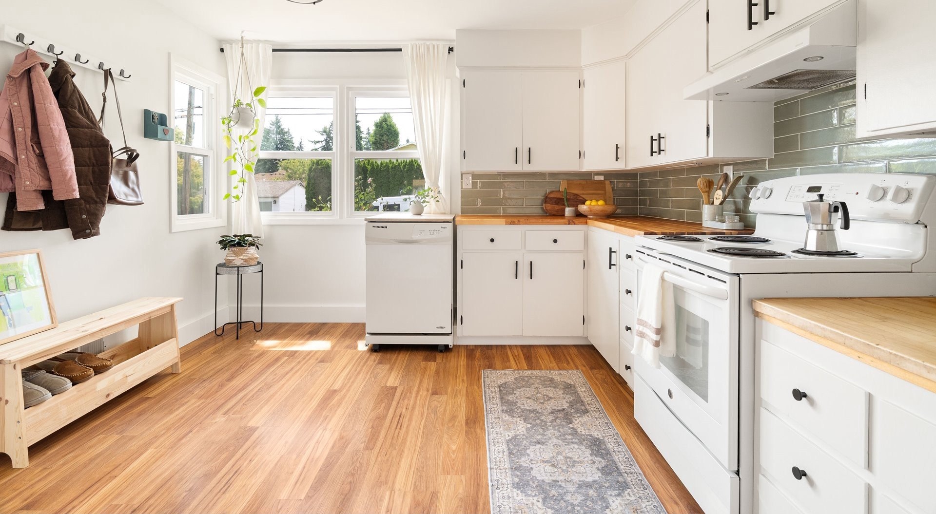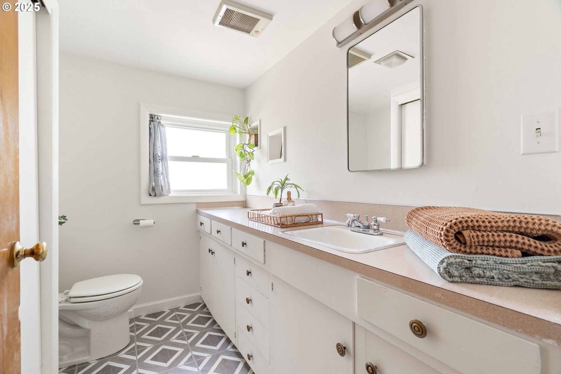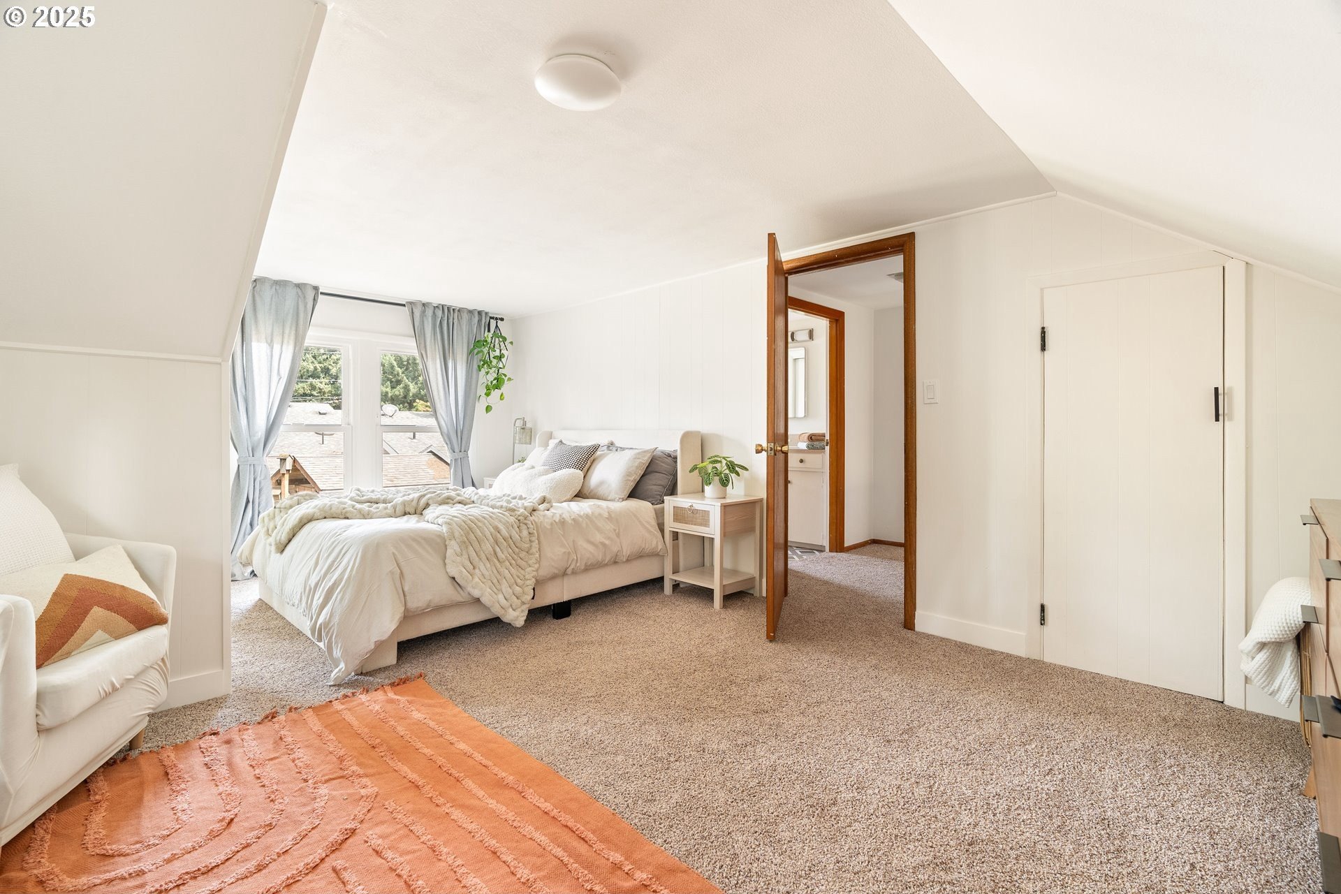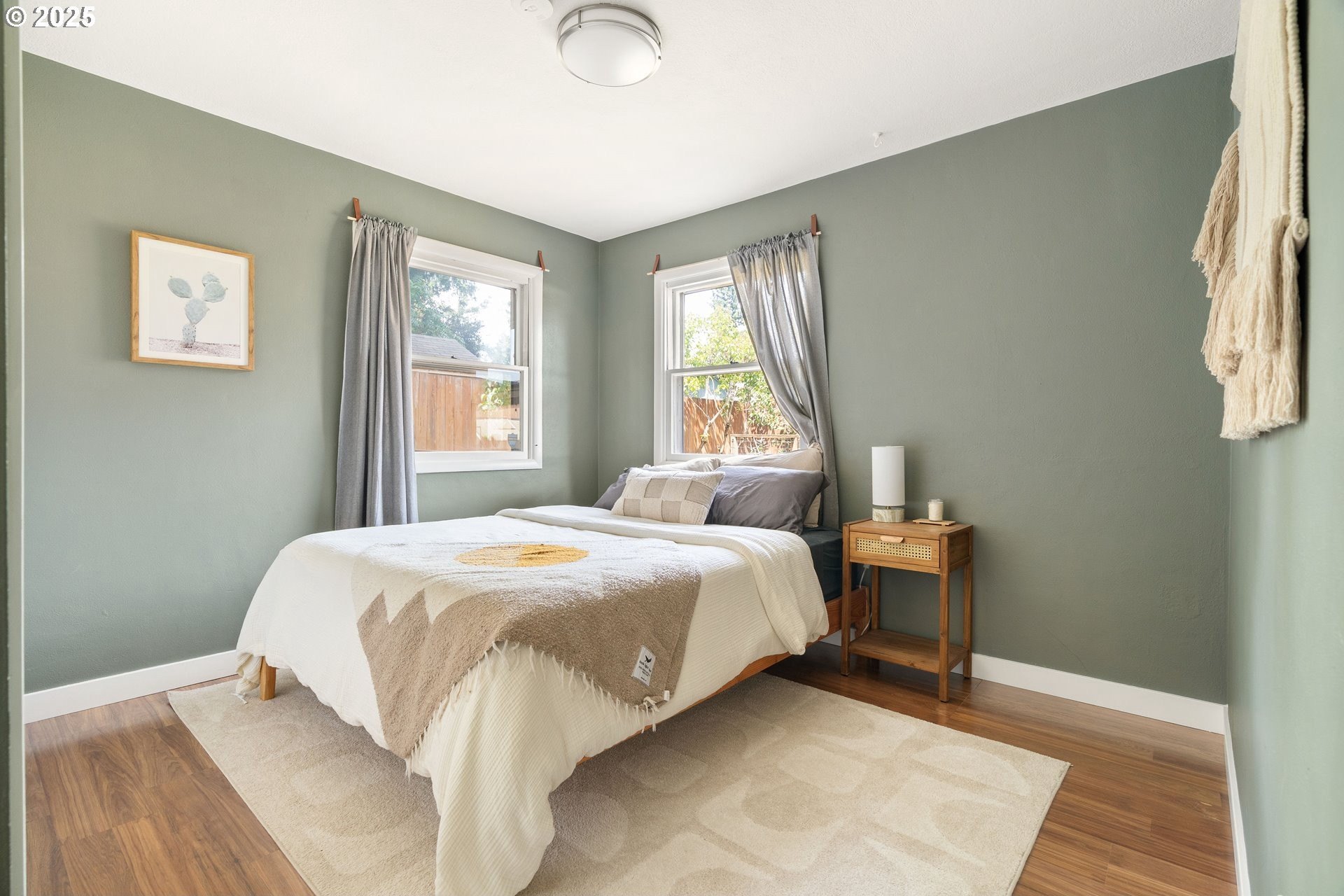 Mid-century roots meet modern living at this refreshed 1950s Mill Park home. Newly exposed brick fireplace, original hardwoods, and fresh paint set the stage for bright, flexible spaces. The kitchen is a cook’s dream with butcher block counters, new tile backsplash, updated cabinets, and plenty of room for chef + sous to work side by side. Sliding doors off the dining room frame backyard views, while the cozy living room centers around the original brick fireplace with twin sidelight windows. A full bath with retro tile and generous storage plus a peaceful main-level bedroom offer easy guest or primary options. Upstairs, two bedrooms and a half bath create space for home office, studio, or the primary suite of your dreams. A bonus 219 sq ft of storage space over the garage is clean and easily accessible. Oversized 2-car garage with shop space and massive driveway offer space for RVs/campers/boats, and all your gear!. Out back, unwind under a covered patio, grow veggies in the garden and greenhouse, and find a place for everything in the shed and fully fenced spaces. Recent updates include refreshed kitchen (2022), new electrical panel (2025), interior paint (2023), updated plumbing and water line (2007), furnace + oil tank decom (2015), and roof (2014). Close to many hidden gems of east Portland, like the newly-renovated Parklane Park, several food truck pods, and Powell Butte, with easy access to Montavilla, Tabor, 205, and the airport. [Home Energy Score = 3. HES Report at https://rpt.greenbuildingregistry.com/hes/OR10198311]