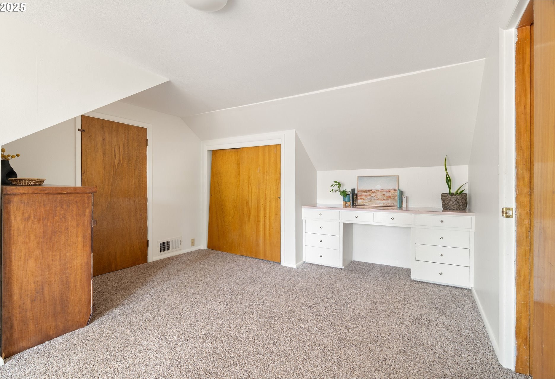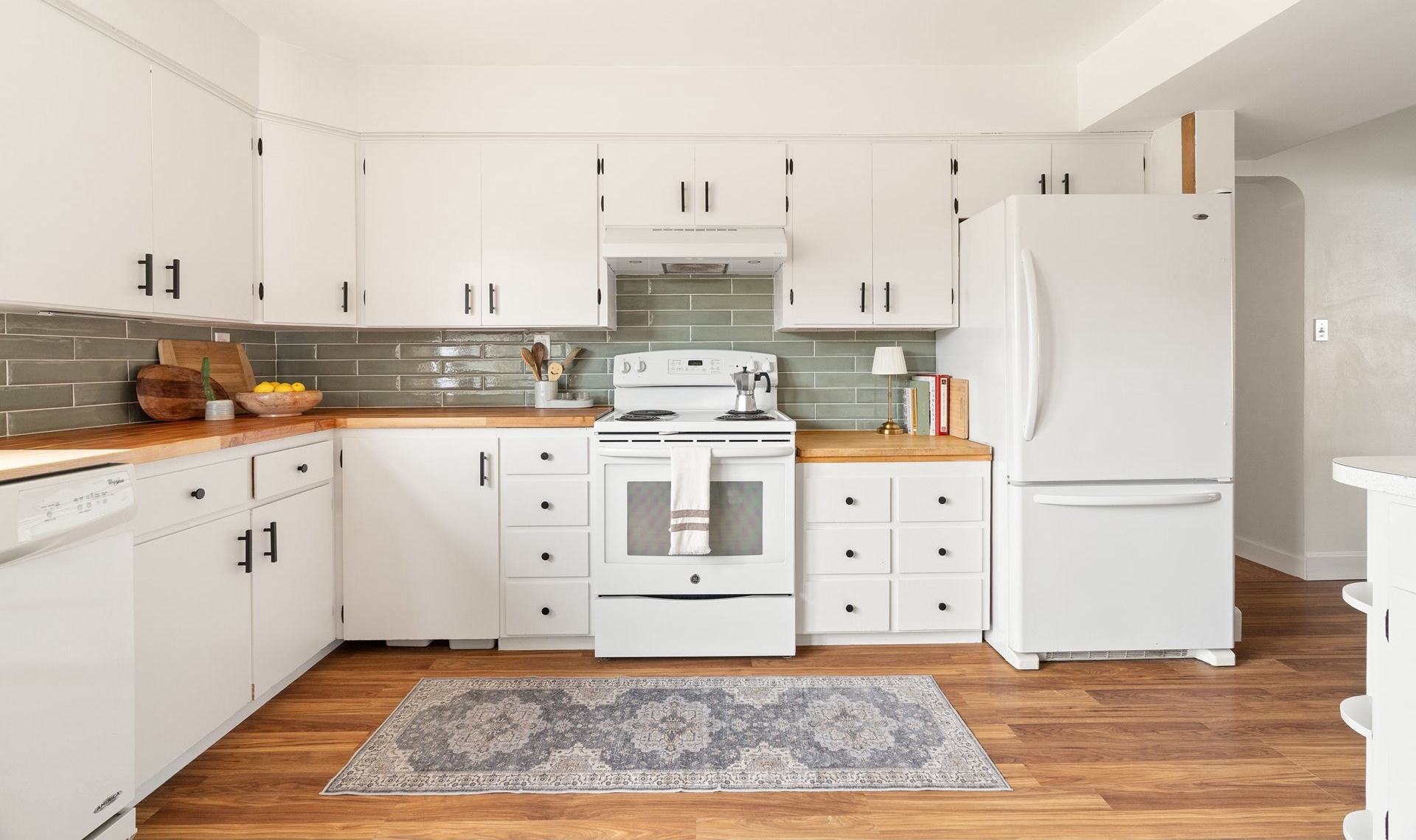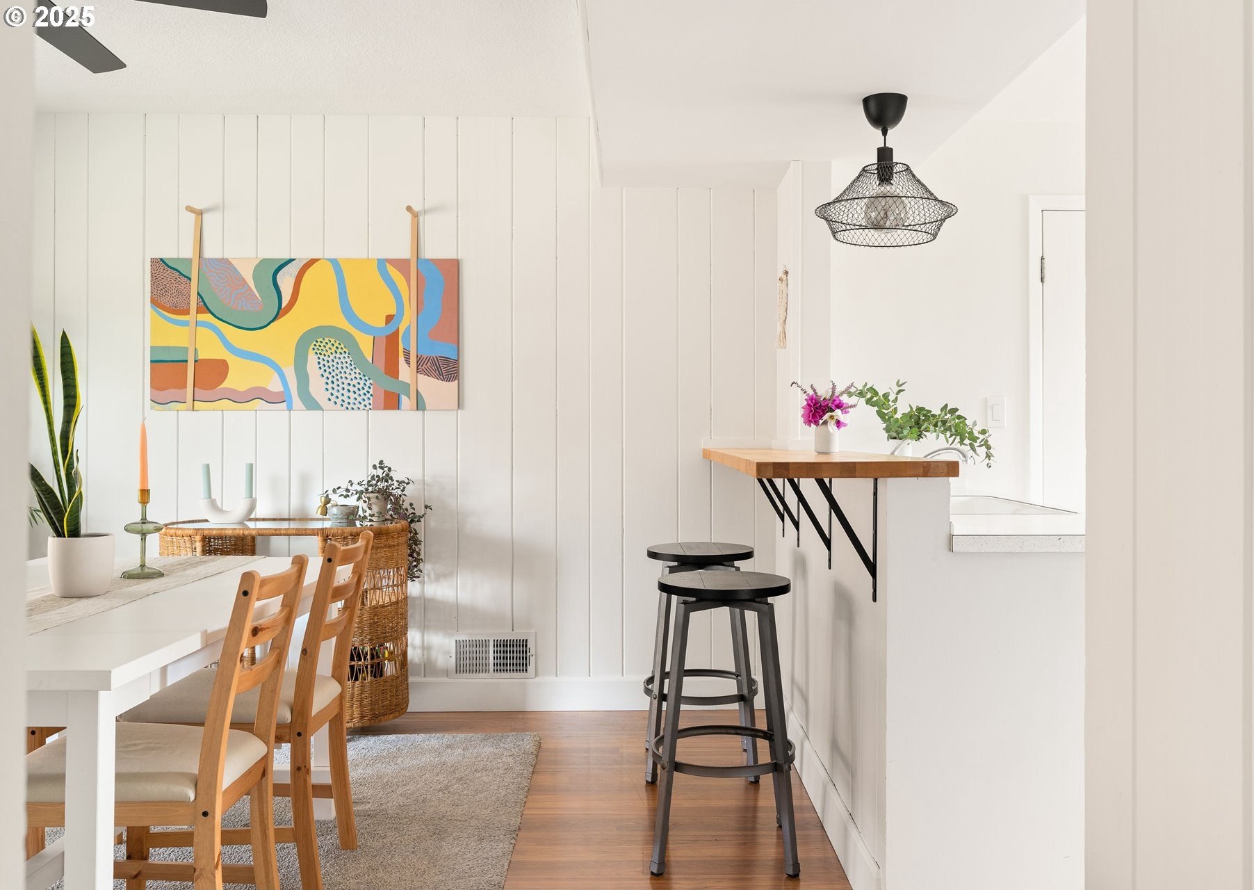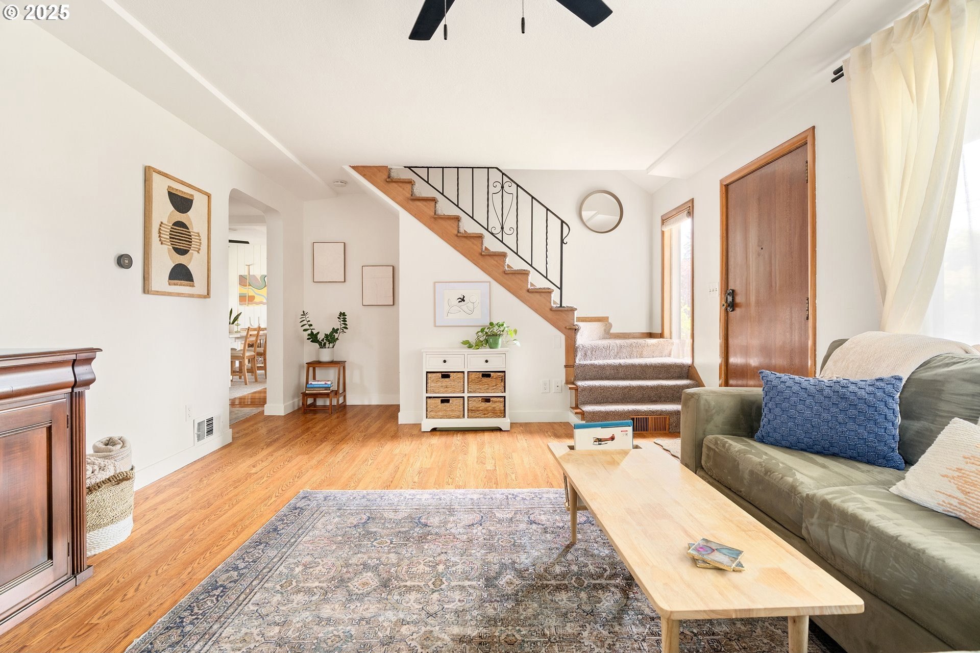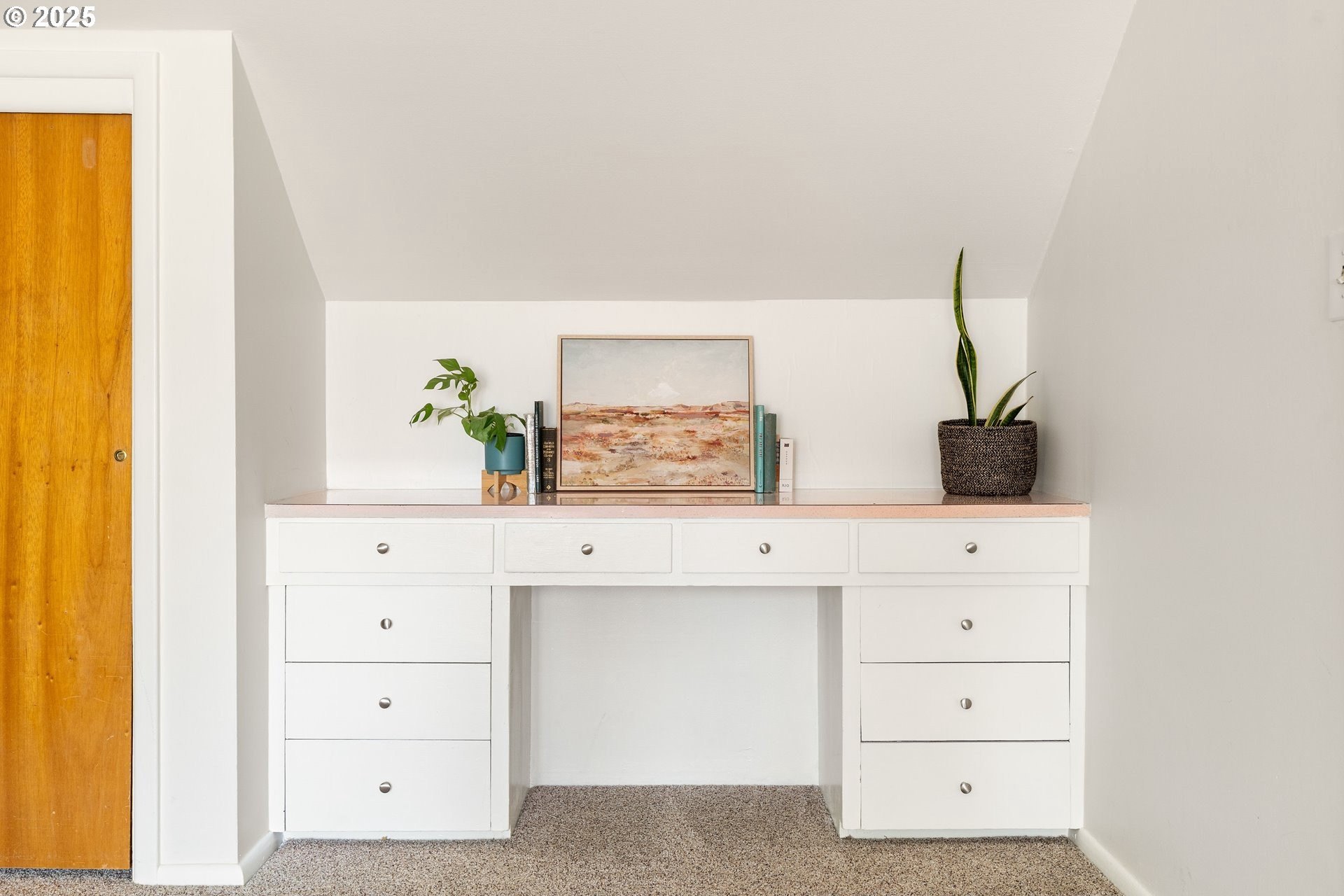 Mid-century roots meet modern living at this refreshed 1950s Mill Park home. Newly exposed brick fireplace, original hardwoods, and fresh paint set the stage for bright, flexible spaces. The kitchen is a cook’s dream with butcher block counters, new tile backsplash, updated cabinets, and plenty of room for chef + sous to work side by side. Sliding doors off the dining room frame backyard views, while the cozy living room centers around the original brick fireplace with twin sidelight windows. A full bath with retro tile and generous storage plus a peaceful main-level bedroom offer easy guest or primary options. Upstairs, two bedrooms and a half bath create space for home office, studio, or the primary suite of your dreams. A bonus 219 sq ft of storage space over the garage is clean and easily accessible. Oversized 2-car garage with shop space and massive driveway offer space for RVs/campers/boats, and all your gear!. Out back, unwind under a covered patio, grow veggies in the garden and greenhouse, and find a place for everything in the shed and fully fenced spaces. Recent updates include refreshed kitchen (2022), new electrical panel (2025), interior paint (2023), updated plumbing and water line (2007), furnace + oil tank decom (2015), and roof (2014). Close to many hidden gems of east Portland, like the newly-renovated Parklane Park, several food truck pods, and Powell Butte, with easy access to Montavilla, Tabor, 205, and the airport. [Home Energy Score = 3. HES Report at https://rpt.greenbuildingregistry.com/hes/OR10198311]