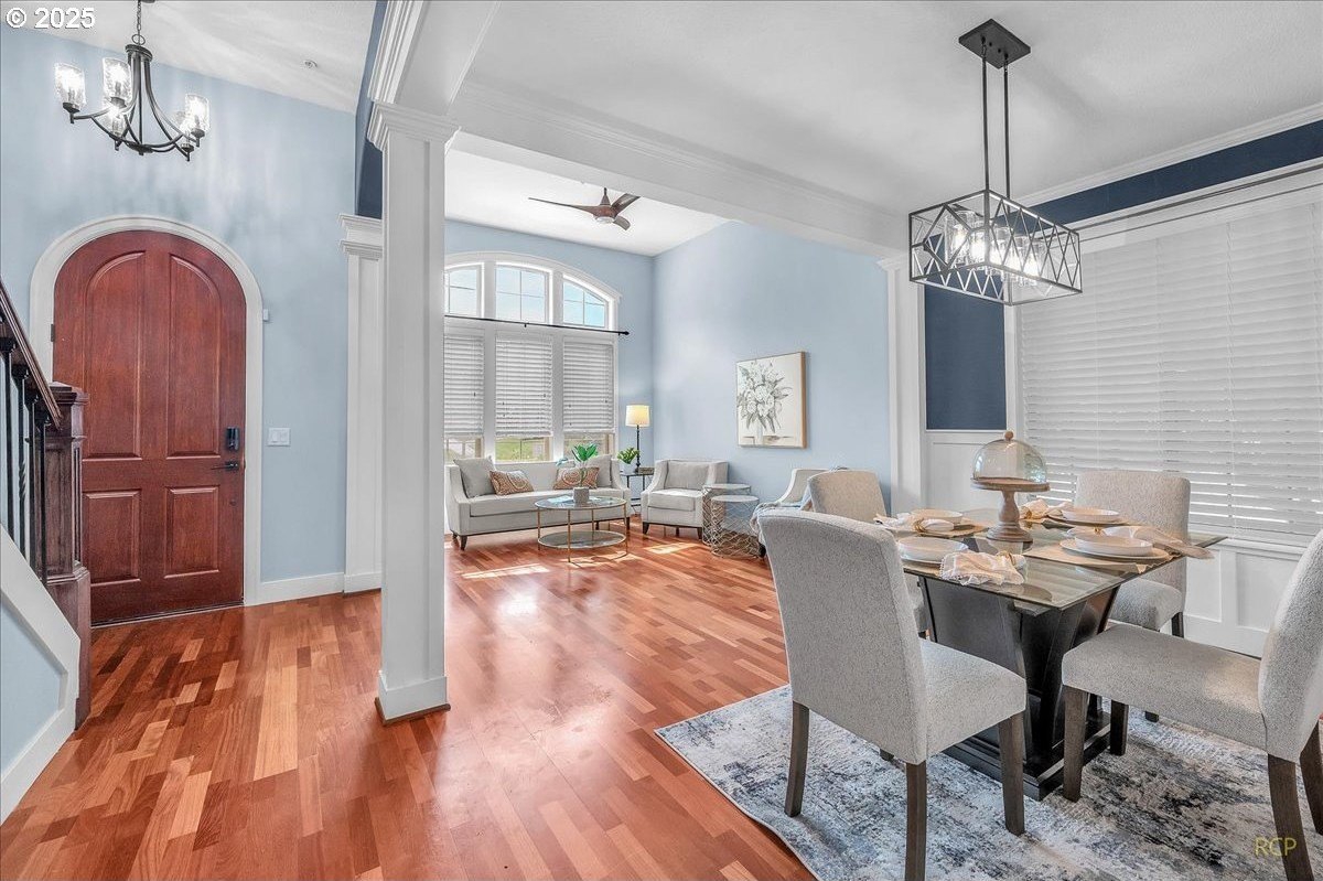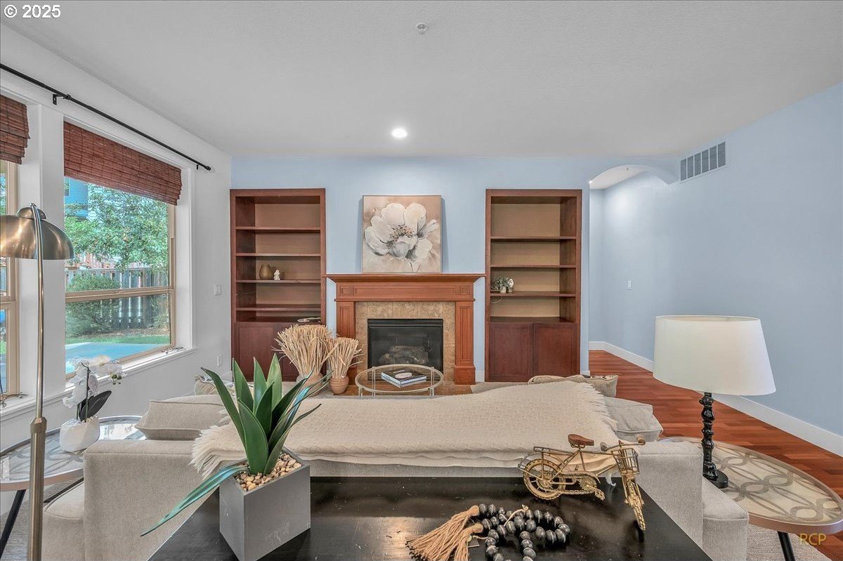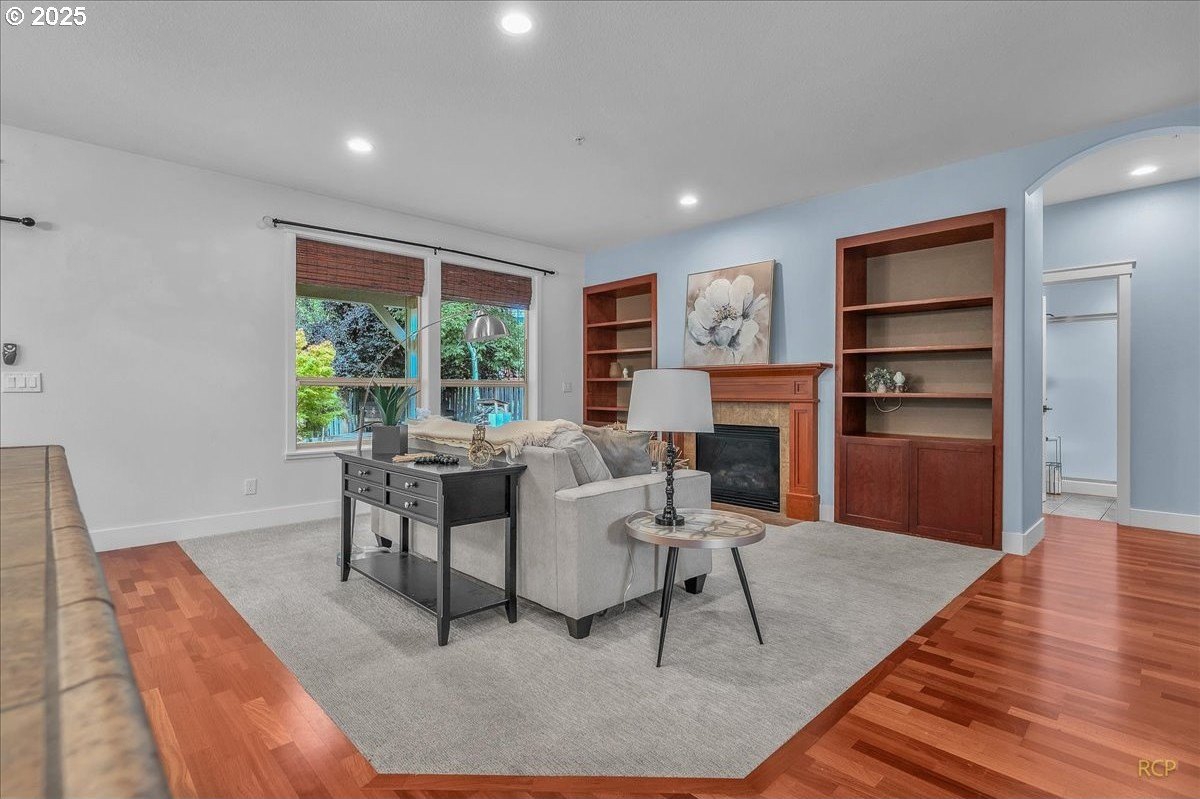 Spacious Craftsman home in a quiet, manicured neighborhood backing to greenspace with no neighbor on one side for added privacy. This well-designed floor plan offers flexibility and comfort, with multiple living areas and abundant storage throughout. The main level features cherry hardwood floors, a vaulted living room with large windows for natural light, and a kitchen with gas cooktop, island, and generous cabinetry. A family room, full bath, and fourth bedroom with closet complete the main level—ideal for use as a guest suite, office, or den.Upstairs, the oversized primary suite includes a huge walk-in closet and private bath with soaking tub and dual vanities. Two additional bedrooms share a full bath, and a large bonus room provides space for media, play, or hobbies.Outdoor living is a highlight, with a covered back deck that allows for year-round enjoyment. The private backyard is framed by mature trees and opens to greenspace, creating a peaceful setting with extra elbow room.Additional features include three full bathrooms, an oversized garage with built-ins, and versatile storage throughout the home. Located on a low-traffic street, this property combines privacy and convenience, with easy access to parks, schools, and nearby amenities.
