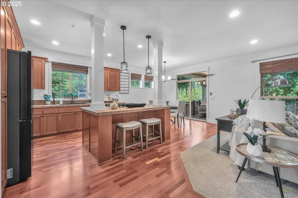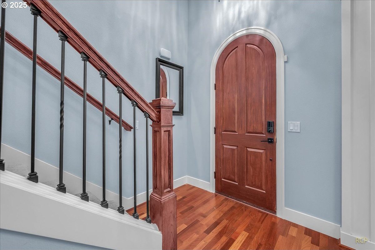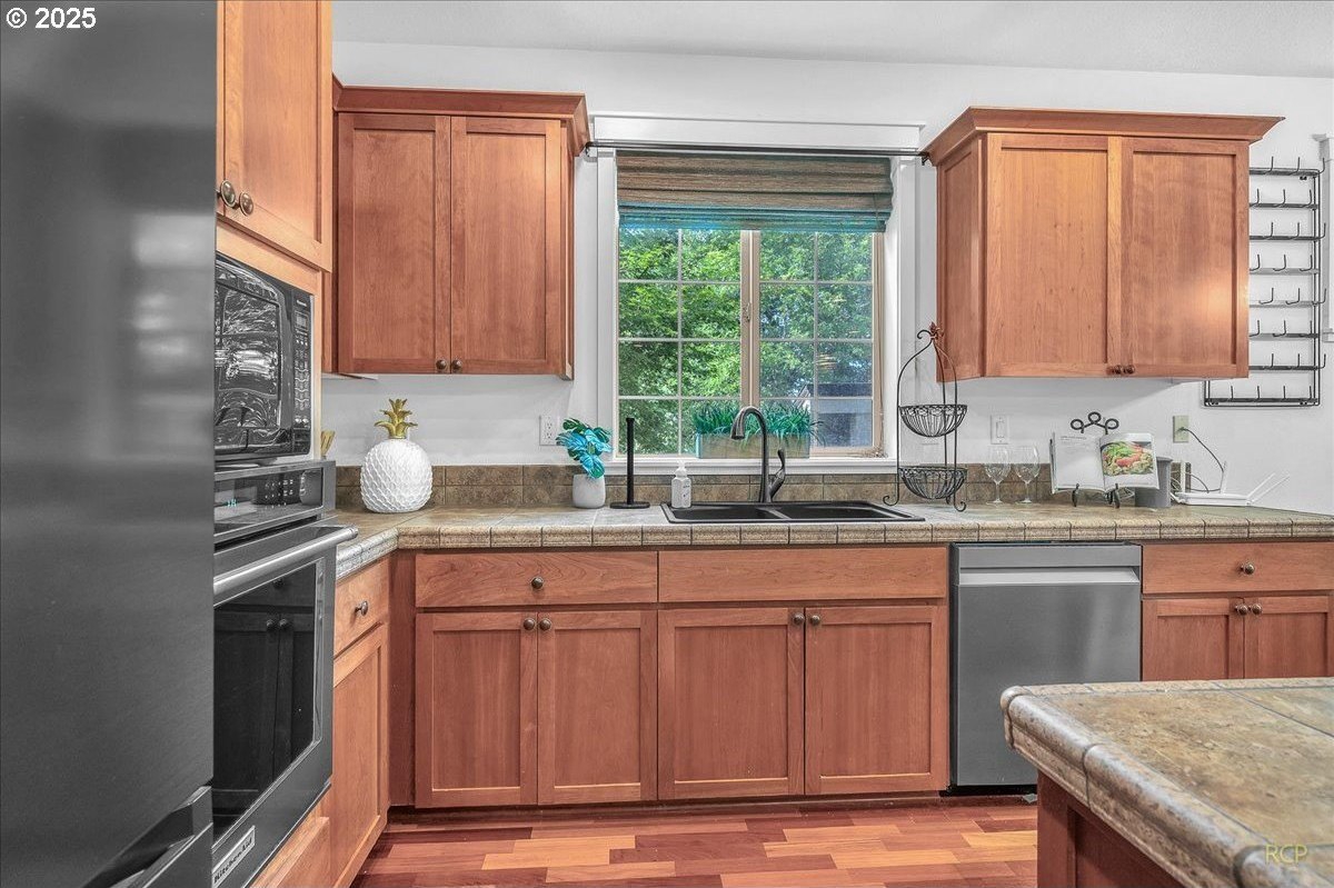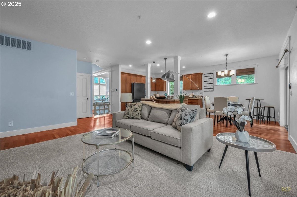 Spacious Craftsman home in a quiet, manicured neighborhood backing to greenspace with no neighbor on one side for added privacy. This well-designed floor plan offers flexibility and comfort, with multiple living areas and abundant storage throughout. The main level features cherry hardwood floors, a vaulted living room with large windows for natural light, and a kitchen with gas cooktop, island, and generous cabinetry. A family room, full bath, and fourth bedroom with closet complete the main level—ideal for use as a guest suite, office, or den.Upstairs, the oversized primary suite includes a huge walk-in closet and private bath with soaking tub and dual vanities. Two additional bedrooms share a full bath, and a large bonus room provides space for media, play, or hobbies.Outdoor living is a highlight, with a covered back deck that allows for year-round enjoyment. The private backyard is framed by mature trees and opens to greenspace, creating a peaceful setting with extra elbow room.Additional features include three full bathrooms, an oversized garage with built-ins, and versatile storage throughout the home. Located on a low-traffic street, this property combines privacy and convenience, with easy access to parks, schools, and nearby amenities.