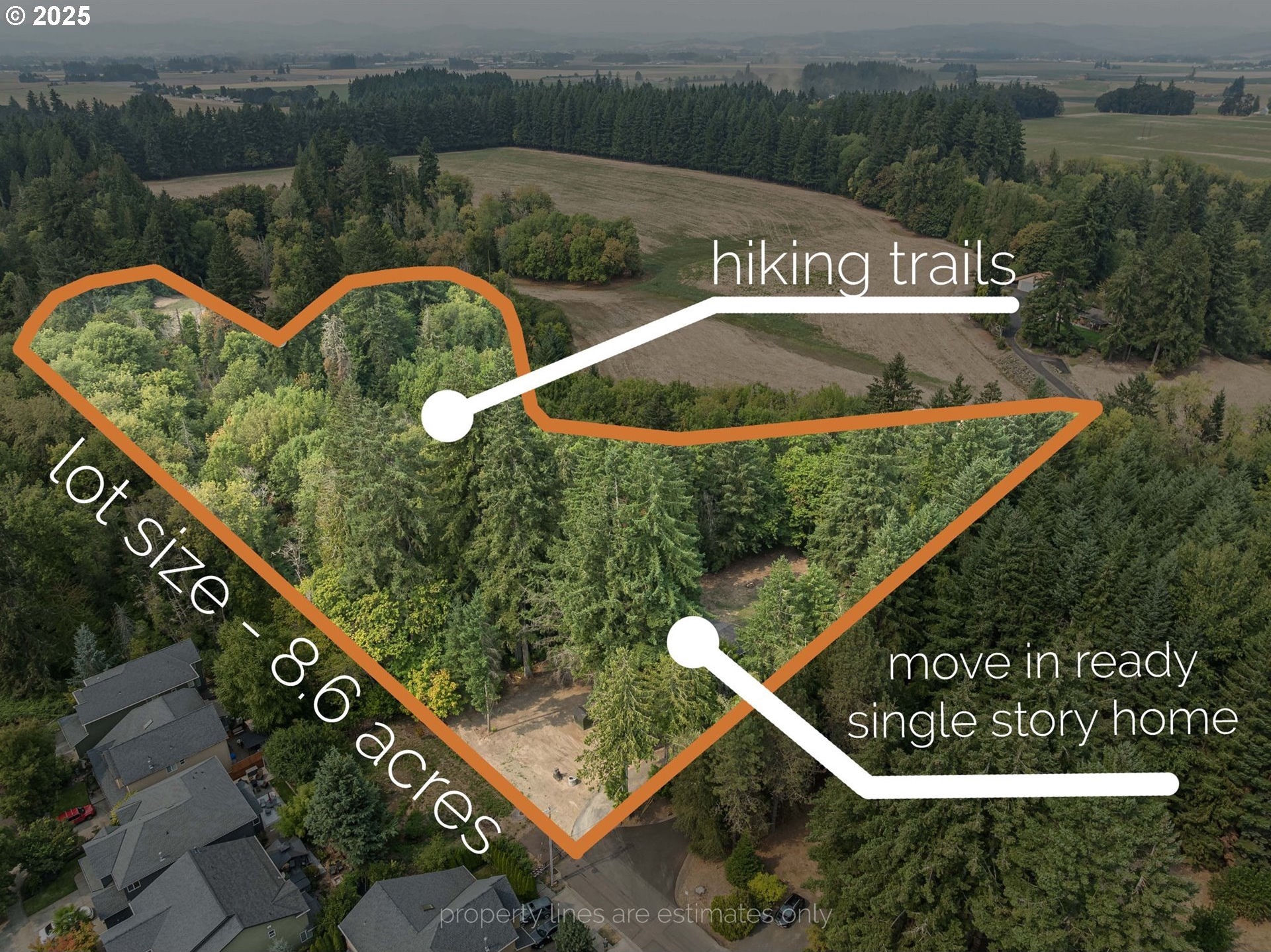 Turn key move-in ready one level ranch home located on 8.6 acres of secluded land on dead end road - right on edge of the urban growth boundary. This property backs up to miles of serene green space, farm land & wilderness allowing you to experience country living but maintain a close proximity to urban living & amenities in close-in Hillsboro. This property has more than enough room to build the shop or garage you've always dreamed of and park all your toys & RV. Explore the wooded walking trails, peaceful wilderness and McKay Creek running along the perimeter of the property. Features include an updated kitchen & en-suite bathroom and newer cabinetry, luxury vinyl plank flooring, double paned windows, stainless steel appliances, gas range, built-in microwave, furnace, interior & exterior paint & roof. Walk out the sliding doors from your bedroom or dining room to your spacious back patio and experience the privacy of this serene setting right at your back door. This property is also unique in that it has some development potential on a portion of the property offering some versatile options for the property. R-9 zoning within unincorporated WA County jurisdiction. Inquire for more information. If you're looking for vast acreage and a quiet, peaceful setting within close proximity to urban amenities, this might be the perfect home for you. OPEN HOUSE THIS SUNDAY, 9/7 FROM 1PM-3PM!