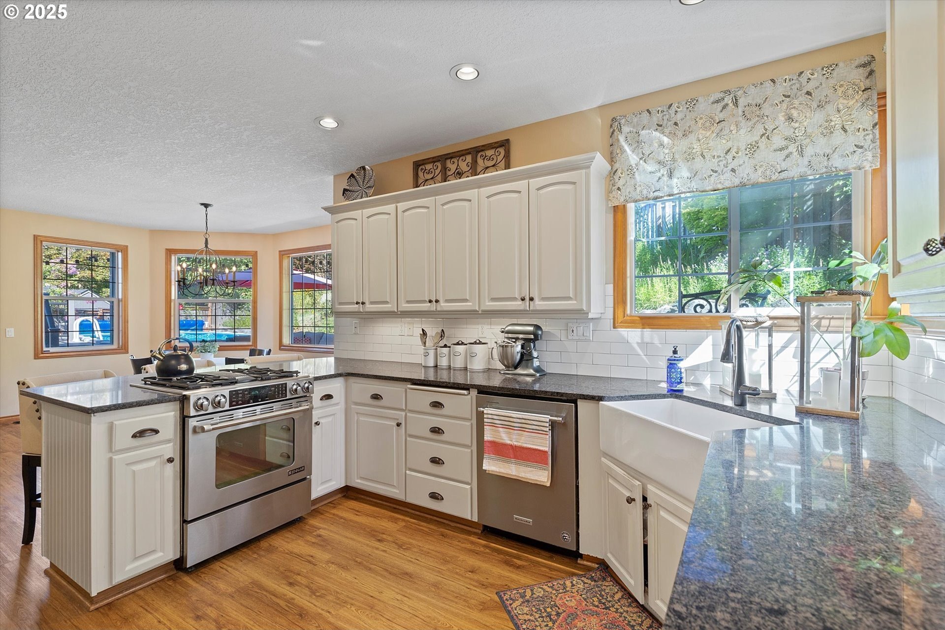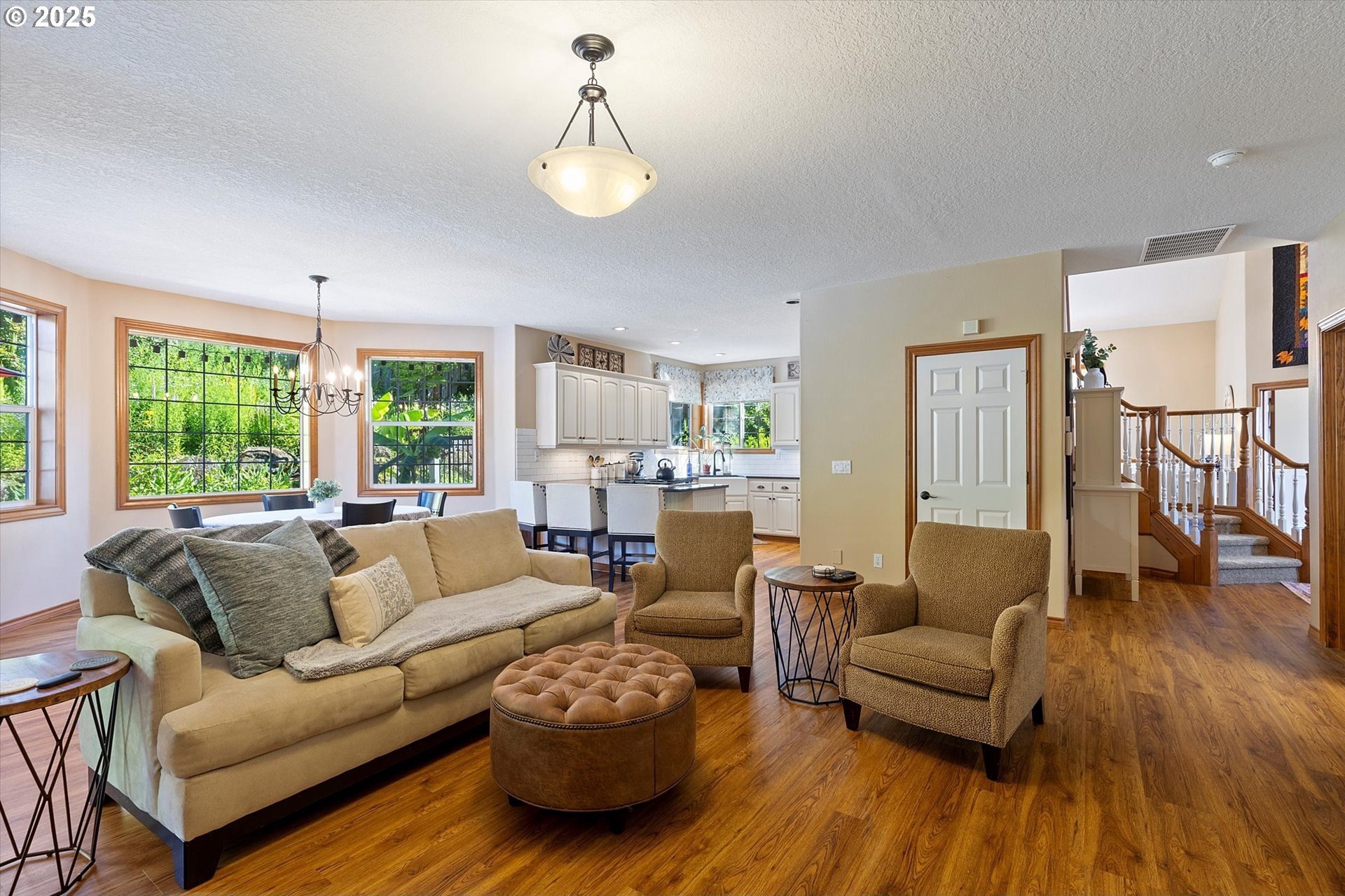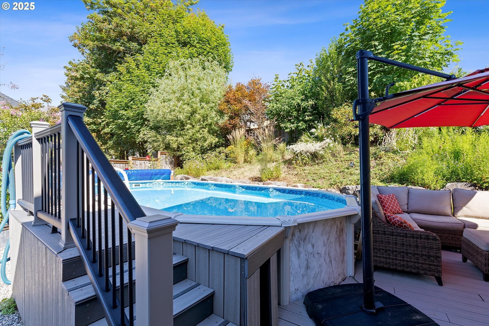 Welcome to the Orchard Lake Neighborhood! This is a beautiful 4 bedroom plus office (option for the office to be the 5th bedroom) 2 and 1/2 bath home spanning over 2500sf, you can just feel the love and life here! Main level offers newer flooring (2022) with a formal dining room and gas fireplace in the living room area. The delightful back yard oasis includes a 12x24 pool and durable trex decking for relaxing evenings and weekend entertaining! Beautiful kitchen adorned with stainless steel appliances and eating bar. The kitchen opens to the spacious living room and large breakfast nook area. Newer furnace, air conditioning (2023) and roof (2019). Primary bedroom suite with an updated bathroom, tub, tiled shower and walk in closet. Mature fruit trees and bountiful perennial hops right in your own yard! A 3 car garage with ample storage and two 50 amp outlets (for EV charger), a quiet cul de sac location and beautiful landscaping all help to make this home a 10/10! 16119 SE Winterborne Dr is ready and waiting to be your new home address! OPEN HOUSE SUN 09/07 12-4pm