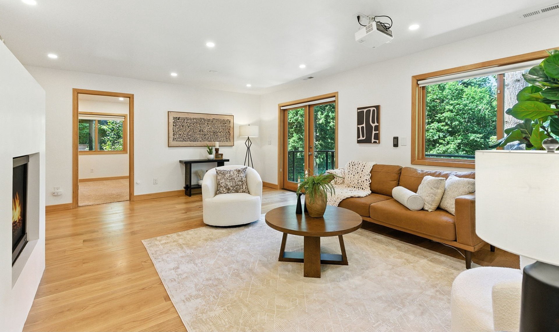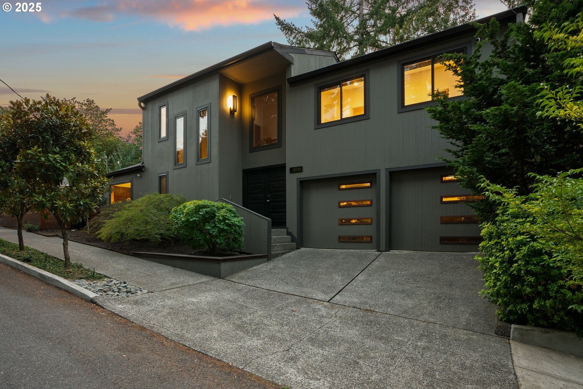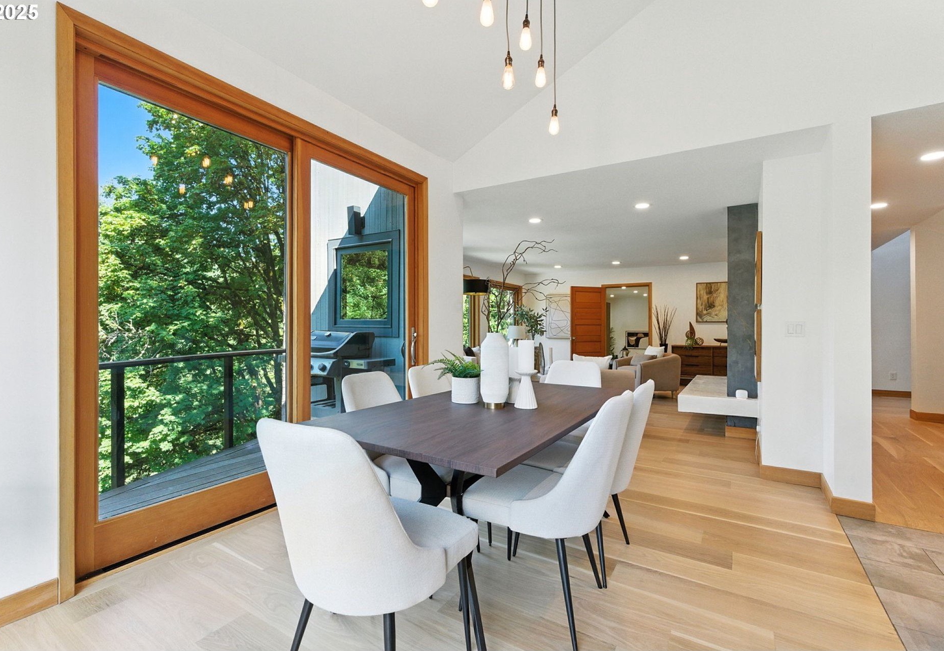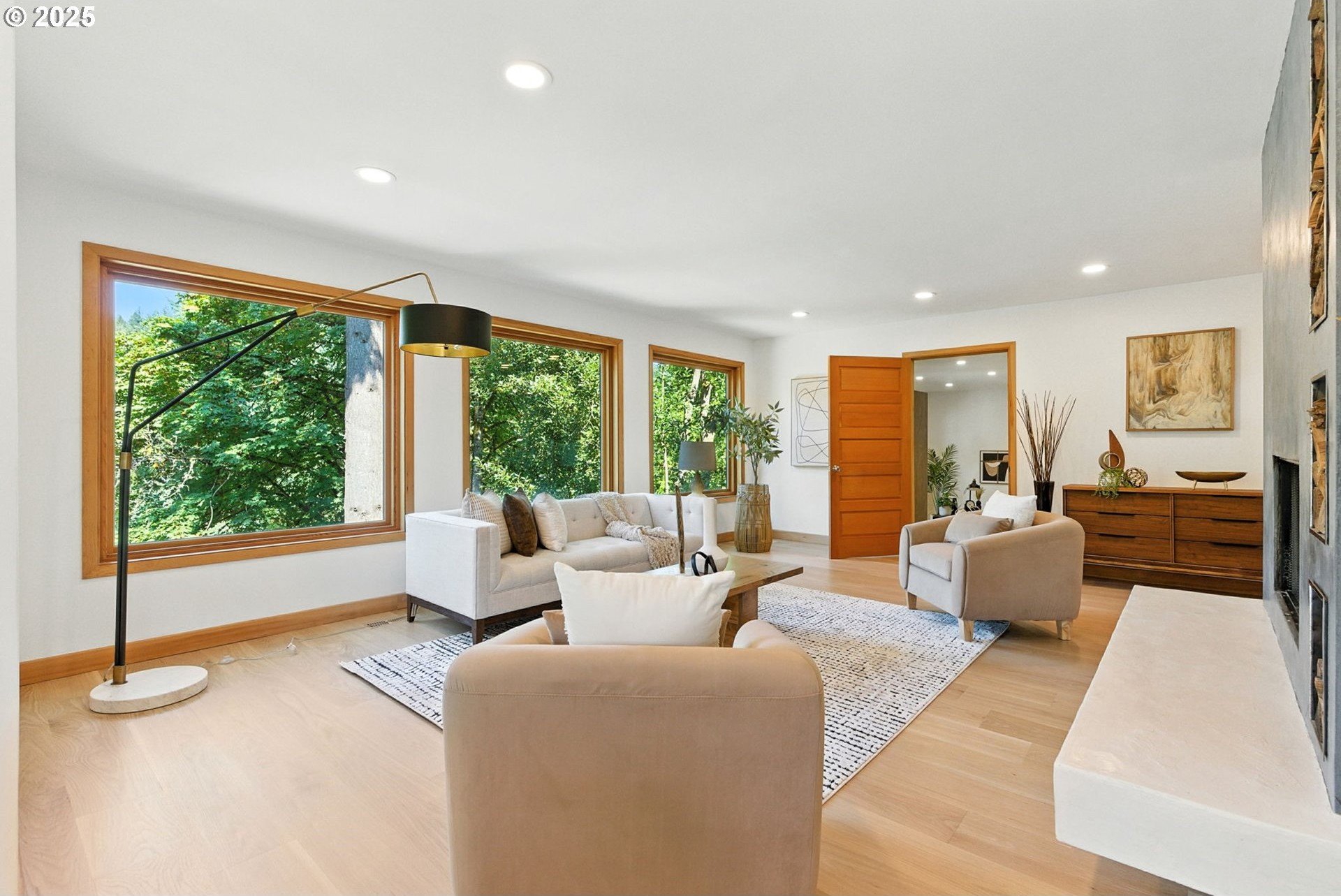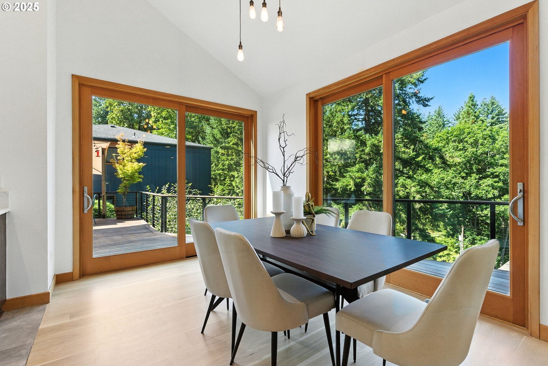 A stunning transformation in Arlington Heights, meticulously renovated with top-tier materials and attention to detail. Every space has been reimagined to maximize year-round enjoyment of Pacific Northwest seasons and spectacular views. European-inspired open spaces create a serene, minimalist atmosphere, featuring high ceilings, wide-plank oak floors, and expansive new wood windows. The living room showcases a striking new wood-burning fireplace, while the vaulted kitchen combines quartz counters, custom cabinetry with restored vintage doors, and an eat-in bar. Two 8’x8’ sliders extend the dining room to a Batu hardwood deck and turf yard. perfect for dinners, sunsets, and weekend gatherings. A main floor bedroom with custom wardrobe doubles as an ideal office or guest room. Upstairs, the primary suite is a true retreat, complete with spa-like bath, soaking tub, heated tile floors, and custom walnut walk-in wardrobe. Two additional bedrooms and a second bath complete the level. The lower level offers a cozy family room for movie nights with a new gas fireplace and projector, a guest suite, oversized laundry with storage, and a charming wine cellar. A slider provides backyard access and views. Upgrades include all major systems with seismic strapping. Outdoors, enjoy a turf play yard with space to play ball or host an outdoor movie, custom pergola for hammock or firepit, and Batu hardwood stairways and planters that create privacy and a retreat-like setting. Dogwoods, magnolias, and gardens frame the home, while the lot extends to a quiet dead-end street where neighbors gather and kids play. A hidden trail leads directly to Hoyt Arboretum, with NW Portland dining, the Rose Garden, and Forest Park only minutes away. [Home Energy Score = 6. HES Report at https://rpt.greenbuildingregistry.com/hes/OR10239629]