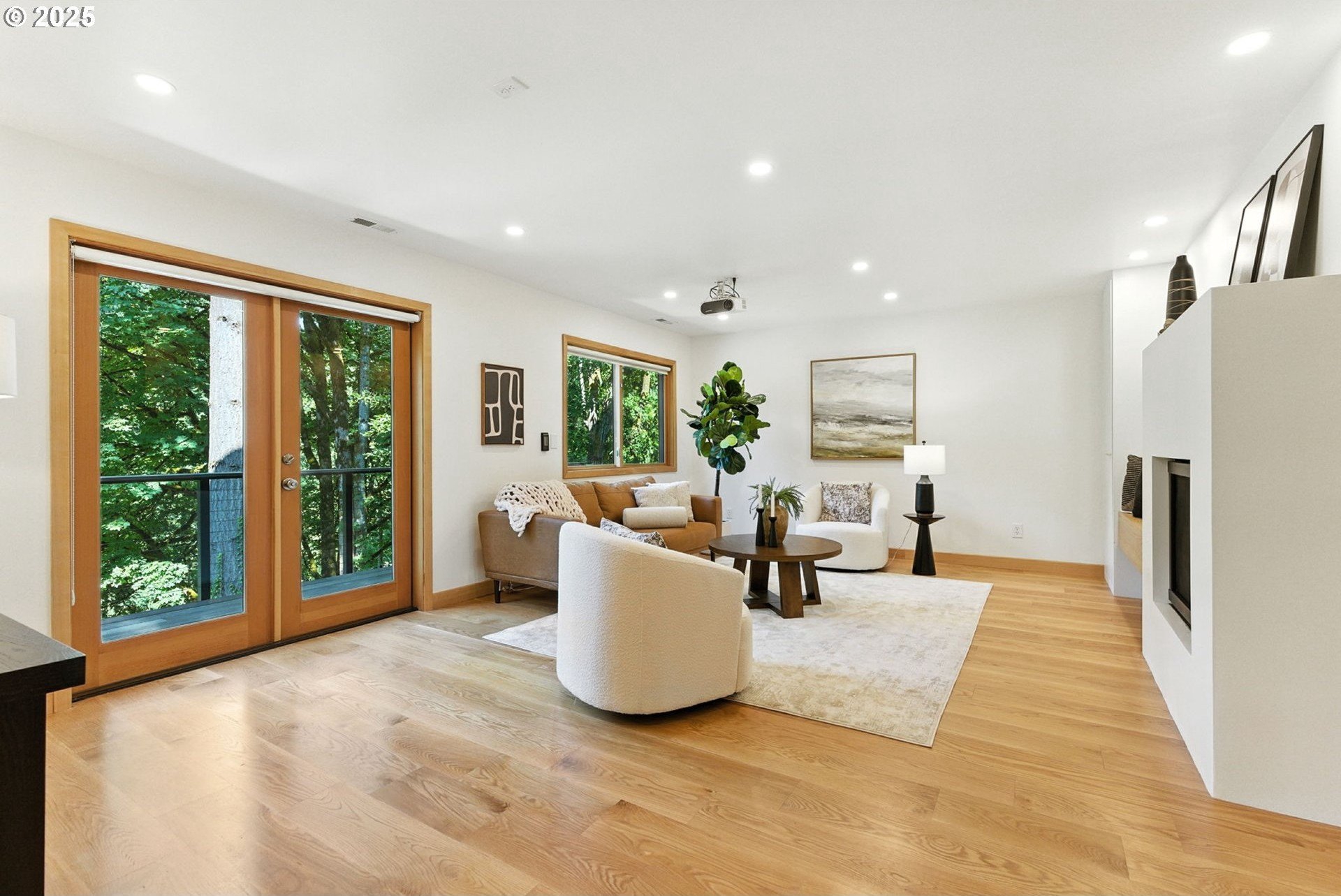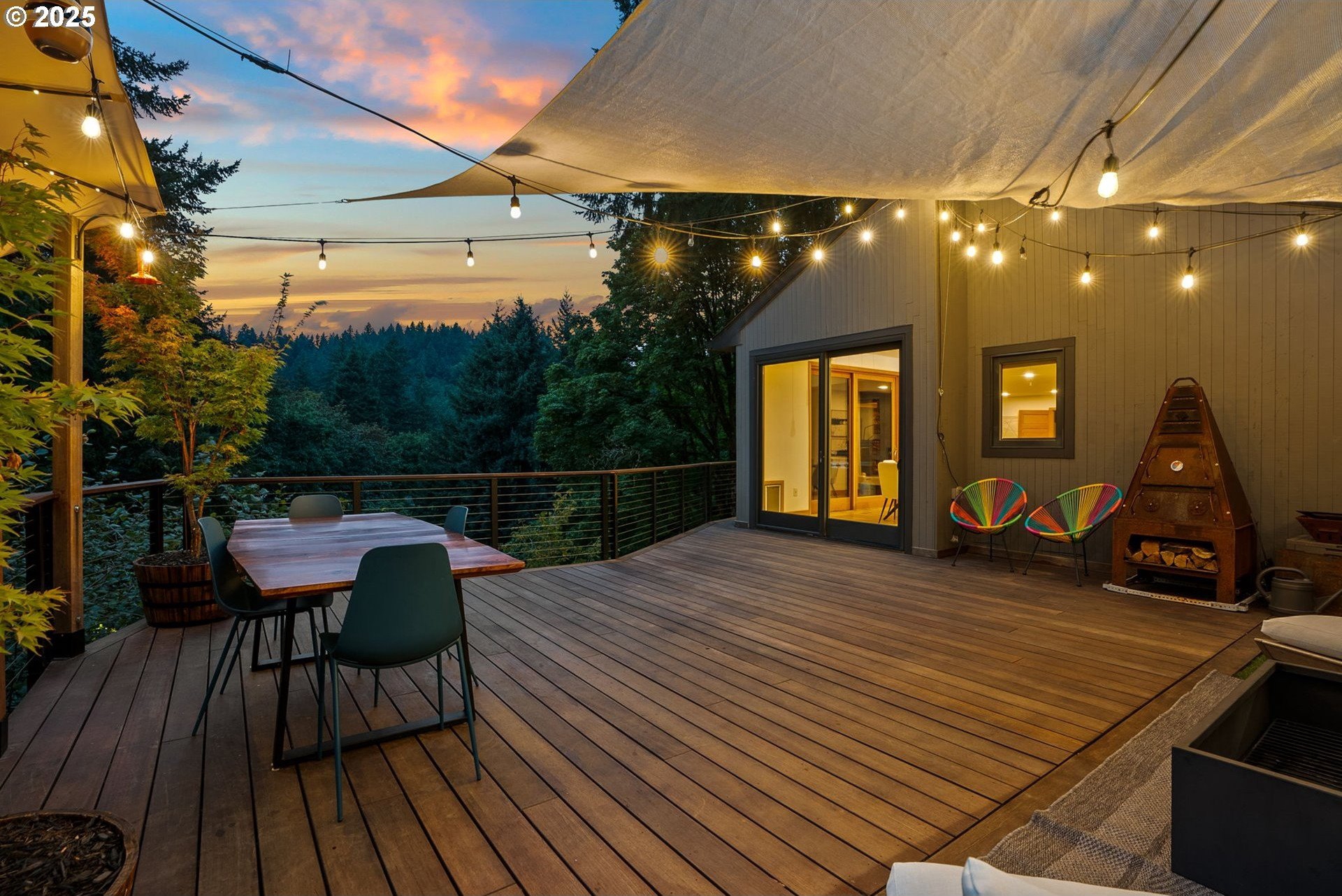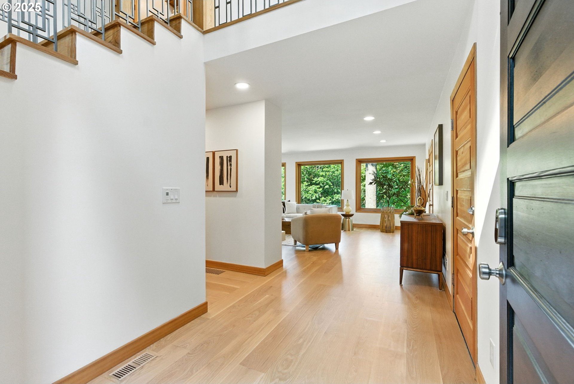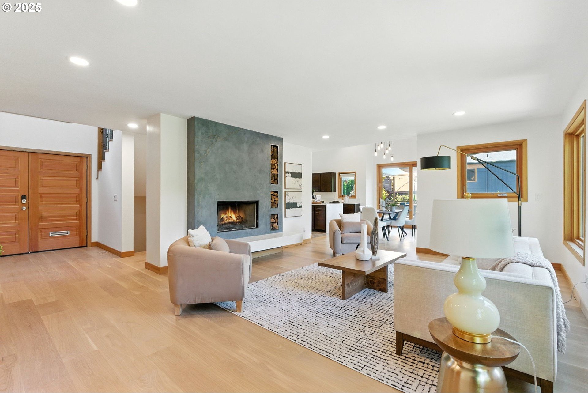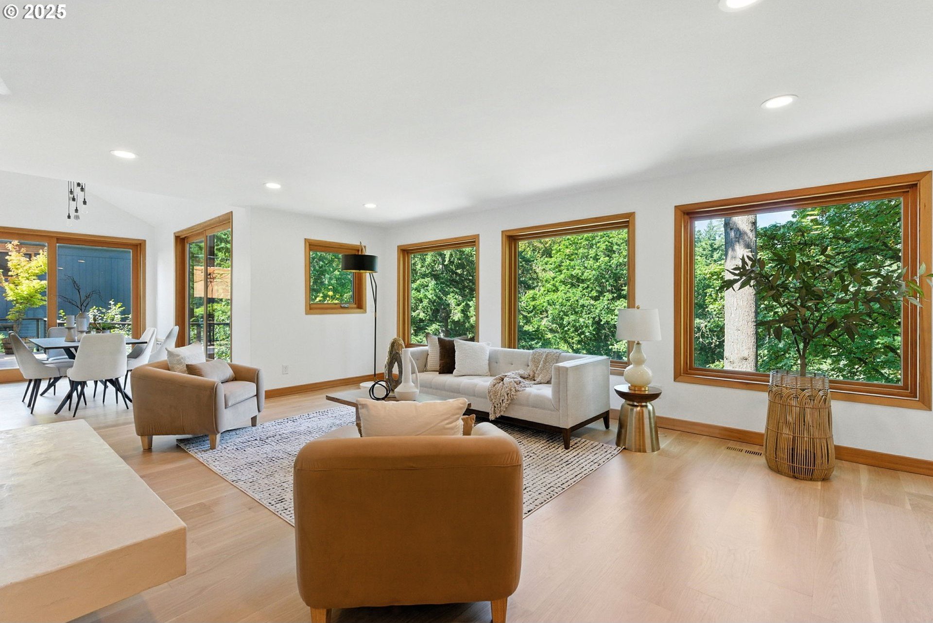 A stunning transformation in Arlington Heights, meticulously renovated with top-tier materials and attention to detail. Every space has been reimagined to maximize year-round enjoyment of Pacific Northwest seasons and spectacular views. European-inspired open spaces create a serene, minimalist atmosphere, featuring high ceilings, wide-plank oak floors, and expansive new wood windows. The living room showcases a striking new wood-burning fireplace, while the vaulted kitchen combines quartz counters, custom cabinetry with restored vintage doors, and an eat-in bar. Two 8’x8’ sliders extend the dining room to a Batu hardwood deck and turf yard. perfect for dinners, sunsets, and weekend gatherings. A main floor bedroom with custom wardrobe doubles as an ideal office or guest room. Upstairs, the primary suite is a true retreat, complete with spa-like bath, soaking tub, heated tile floors, and custom walnut walk-in wardrobe. Two additional bedrooms and a second bath complete the level. The lower level offers a cozy family room for movie nights with a new gas fireplace and projector, a guest suite, oversized laundry with storage, and a charming wine cellar. A slider provides backyard access and views. Upgrades include all major systems with seismic strapping. Outdoors, enjoy a turf play yard with space to play ball or host an outdoor movie, custom pergola for hammock or firepit, and Batu hardwood stairways and planters that create privacy and a retreat-like setting. Dogwoods, magnolias, and gardens frame the home, while the lot extends to a quiet dead-end street where neighbors gather and kids play. A hidden trail leads directly to Hoyt Arboretum, with NW Portland dining, the Rose Garden, and Forest Park only minutes away. [Home Energy Score = 6. HES Report at https://rpt.greenbuildingregistry.com/hes/OR10239629]