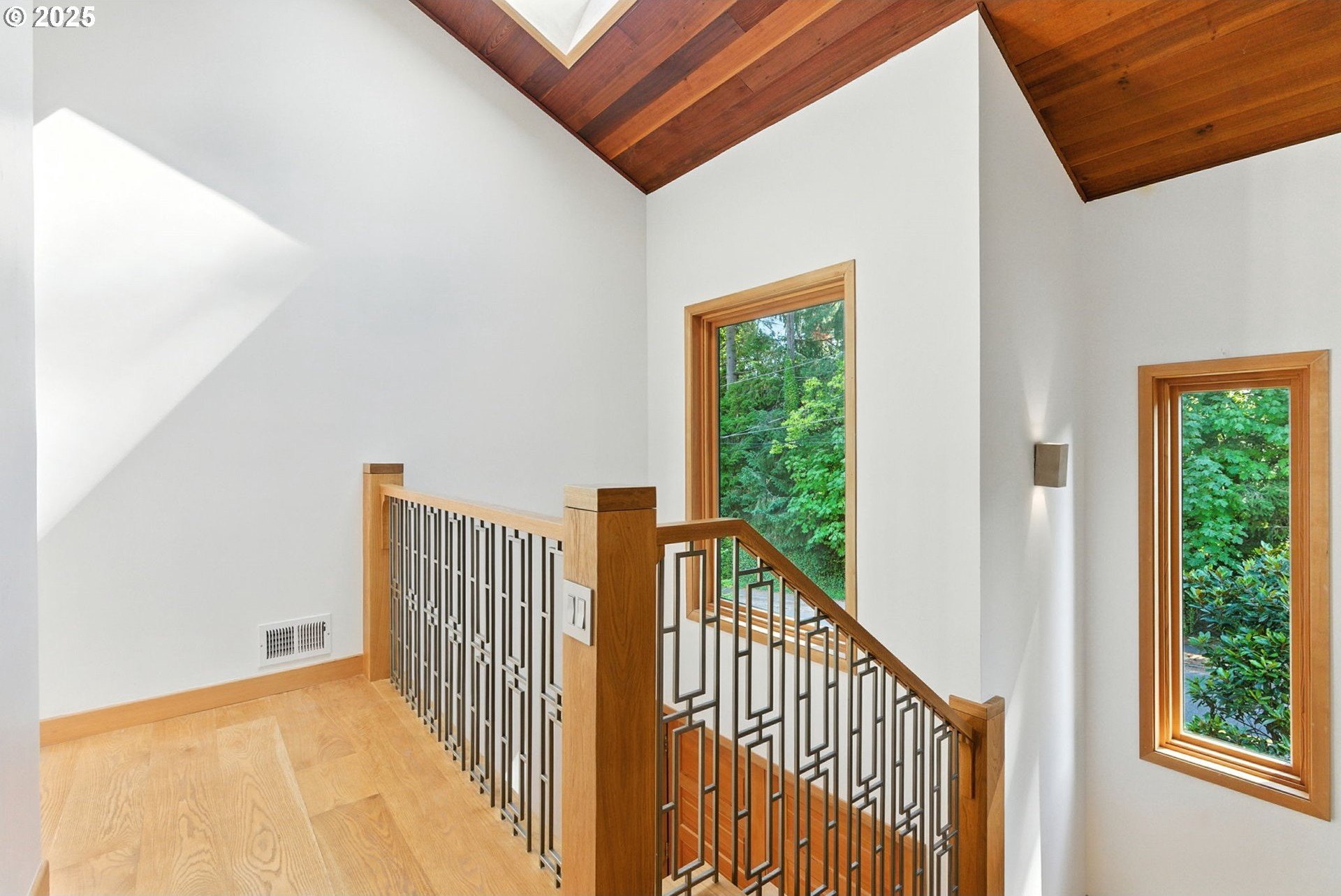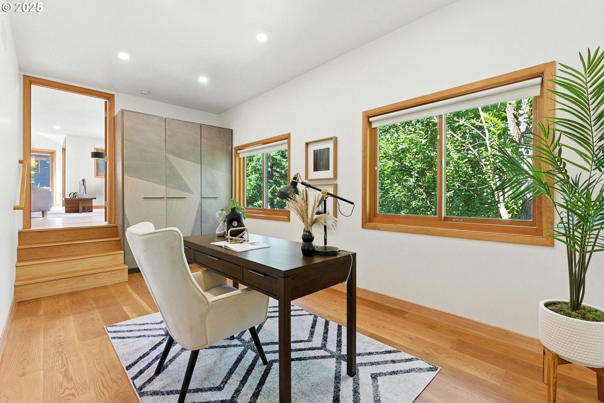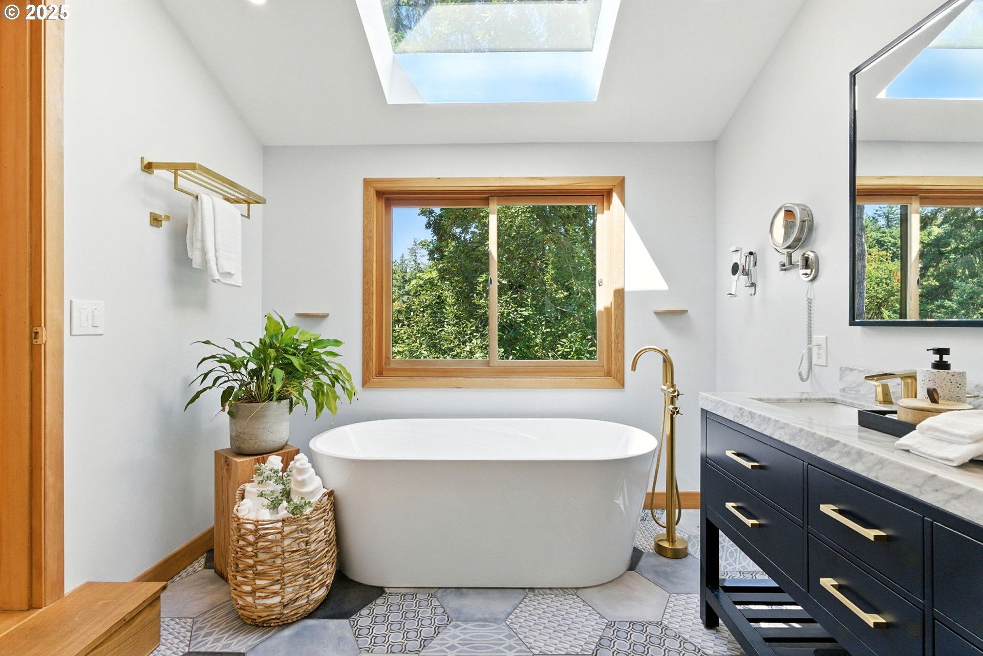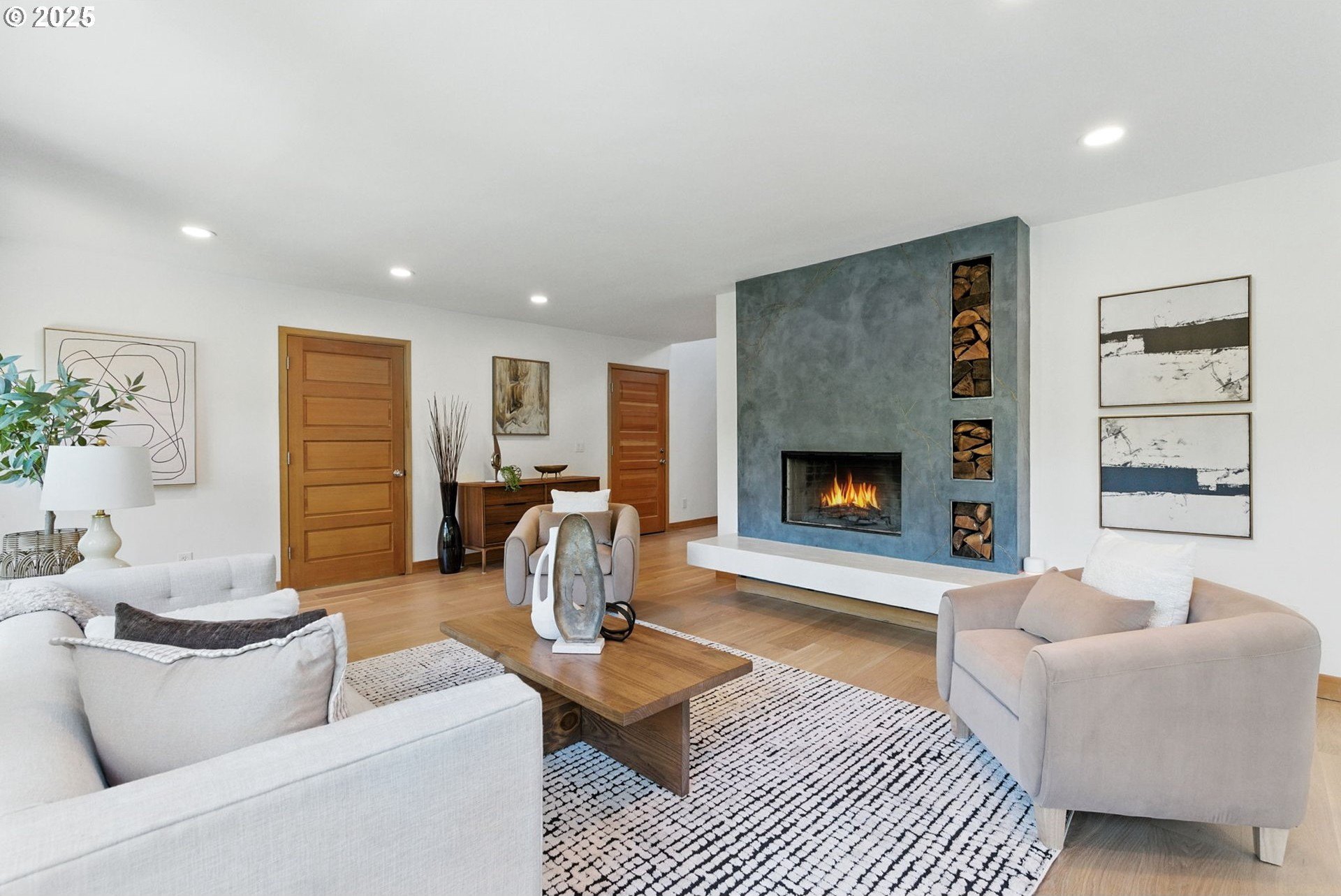 A stunning transformation in Arlington Heights, meticulously renovated with top-tier materials and attention to detail. Every space has been reimagined to maximize year-round enjoyment of Pacific Northwest seasons and spectacular views. European-inspired open spaces create a serene, minimalist atmosphere, featuring high ceilings, wide-plank oak floors, and expansive new wood windows. The living room showcases a striking new wood-burning fireplace, while the vaulted kitchen combines quartz counters, custom cabinetry with restored vintage doors, and an eat-in bar. Two 8’x8’ sliders extend the dining room to a Batu hardwood deck and turf yard. perfect for dinners, sunsets, and weekend gatherings. A main floor bedroom with custom wardrobe doubles as an ideal office or guest room. Upstairs, the primary suite is a true retreat, complete with spa-like bath, soaking tub, heated tile floors, and custom walnut walk-in wardrobe. Two additional bedrooms and a second bath complete the level. The lower level offers a cozy family room for movie nights with a new gas fireplace and projector, a guest suite, oversized laundry with storage, and a charming wine cellar. A slider provides backyard access and views. Upgrades include all major systems with seismic strapping. Outdoors, enjoy a turf play yard with space to play ball or host an outdoor movie, custom pergola for hammock or firepit, and Batu hardwood stairways and planters that create privacy and a retreat-like setting. Dogwoods, magnolias, and gardens frame the home, while the lot extends to a quiet dead-end street where neighbors gather and kids play. A hidden trail leads directly to Hoyt Arboretum, with NW Portland dining, the Rose Garden, and Forest Park only minutes away. [Home Energy Score = 6. HES Report at https://rpt.greenbuildingregistry.com/hes/OR10239629]