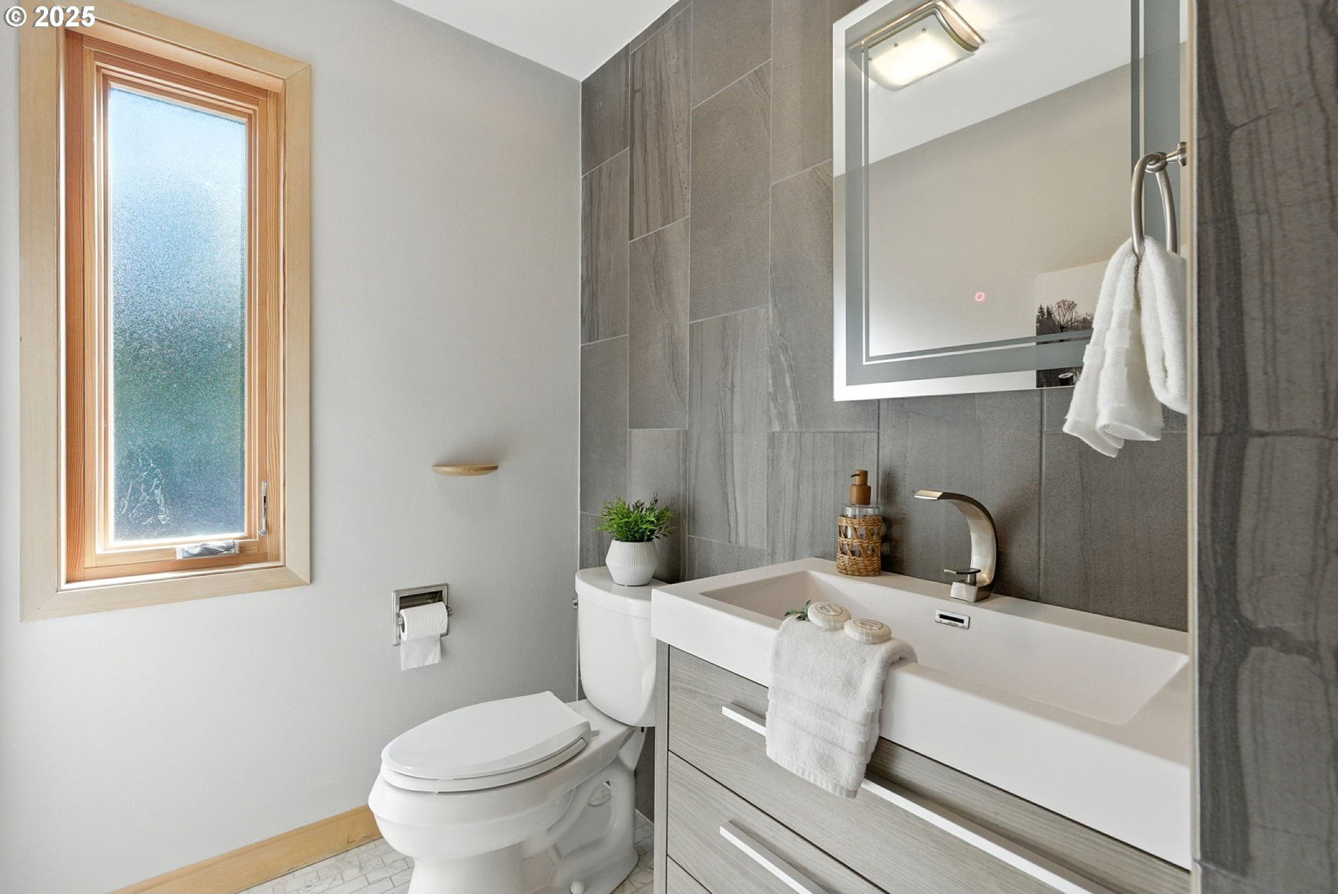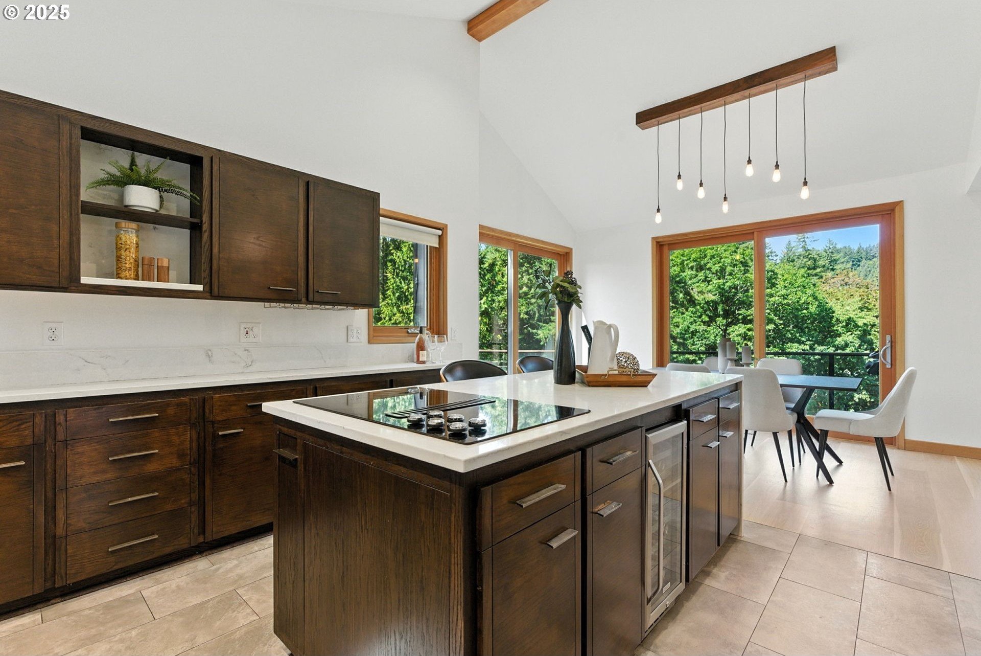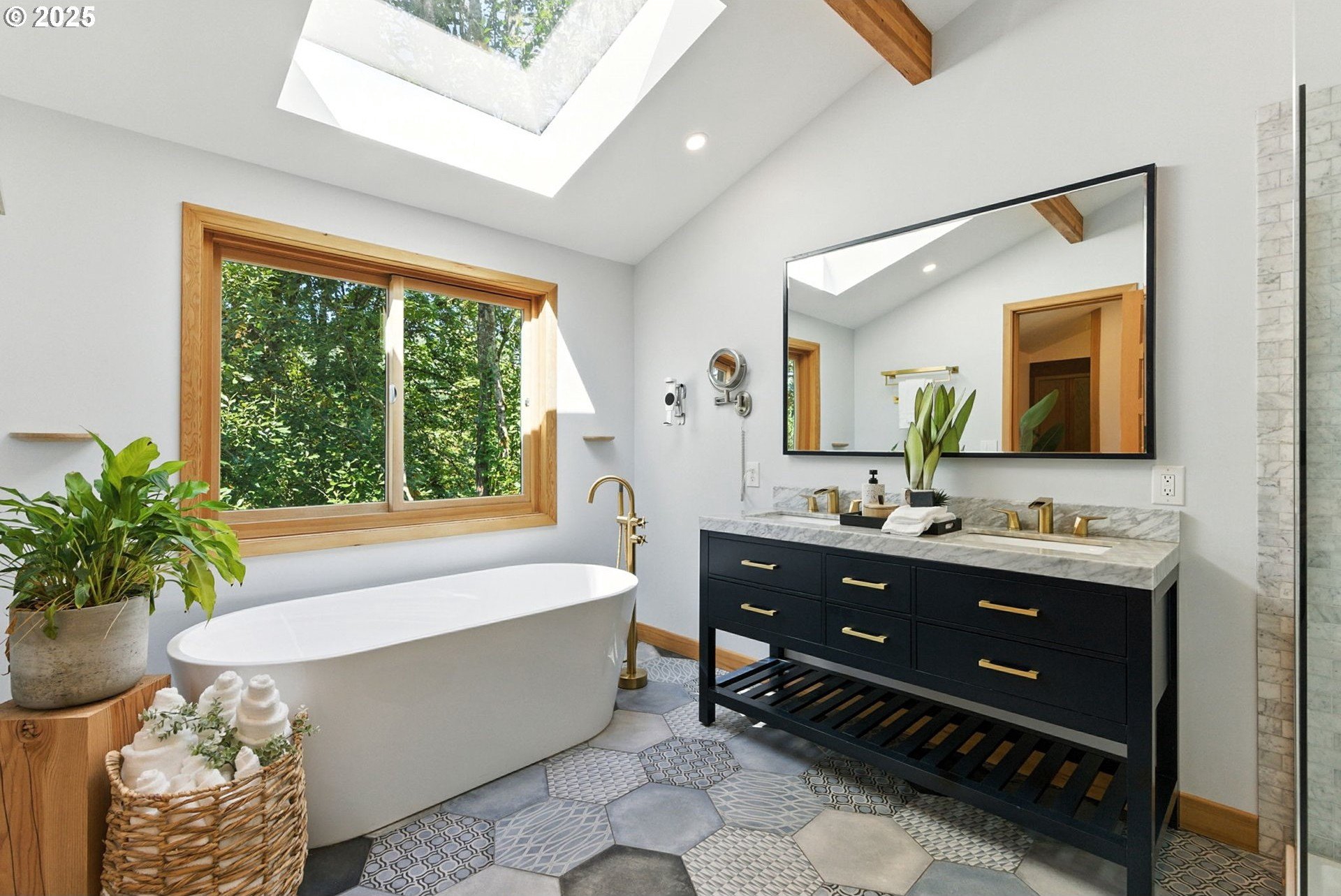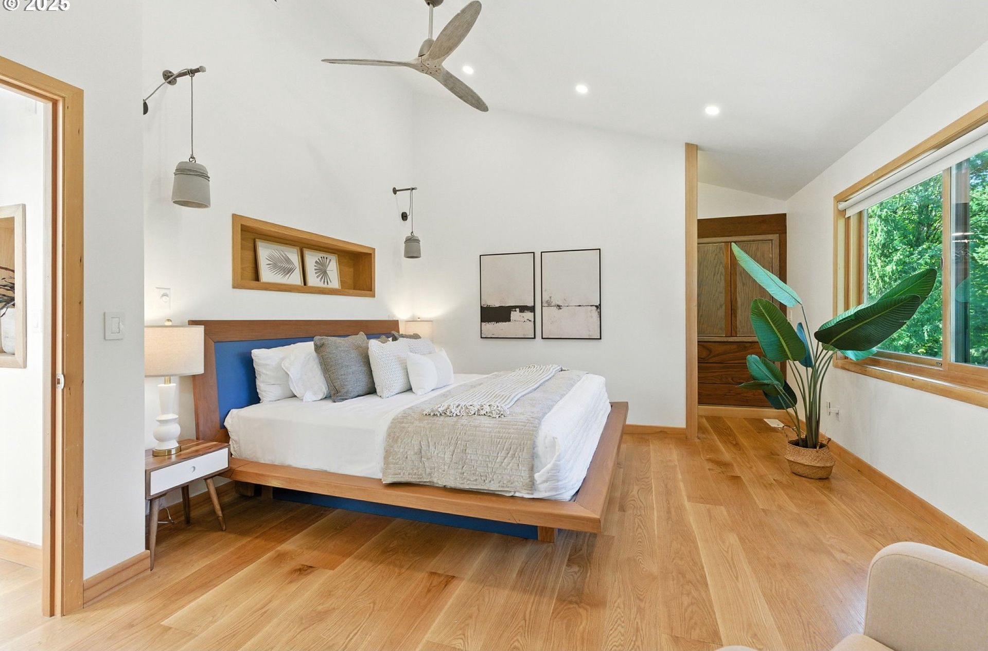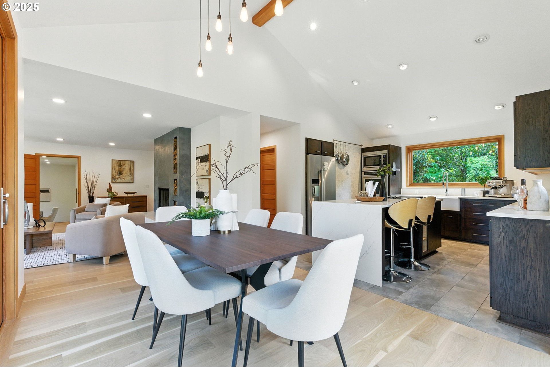 A stunning transformation in Arlington Heights, meticulously renovated with top-tier materials and attention to detail. Every space has been reimagined to maximize year-round enjoyment of Pacific Northwest seasons and spectacular views. European-inspired open spaces create a serene, minimalist atmosphere, featuring high ceilings, wide-plank oak floors, and expansive new wood windows. The living room showcases a striking new wood-burning fireplace, while the vaulted kitchen combines quartz counters, custom cabinetry with restored vintage doors, and an eat-in bar. Two 8’x8’ sliders extend the dining room to a Batu hardwood deck and turf yard. perfect for dinners, sunsets, and weekend gatherings. A main floor bedroom with custom wardrobe doubles as an ideal office or guest room. Upstairs, the primary suite is a true retreat, complete with spa-like bath, soaking tub, heated tile floors, and custom walnut walk-in wardrobe. Two additional bedrooms and a second bath complete the level. The lower level offers a cozy family room for movie nights with a new gas fireplace and projector, a guest suite, oversized laundry with storage, and a charming wine cellar. A slider provides backyard access and views. Upgrades include all major systems with seismic strapping. Outdoors, enjoy a turf play yard with space to play ball or host an outdoor movie, custom pergola for hammock or firepit, and Batu hardwood stairways and planters that create privacy and a retreat-like setting. Dogwoods, magnolias, and gardens frame the home, while the lot extends to a quiet dead-end street where neighbors gather and kids play. A hidden trail leads directly to Hoyt Arboretum, with NW Portland dining, the Rose Garden, and Forest Park only minutes away. [Home Energy Score = 6. HES Report at https://rpt.greenbuildingregistry.com/hes/OR10239629]
