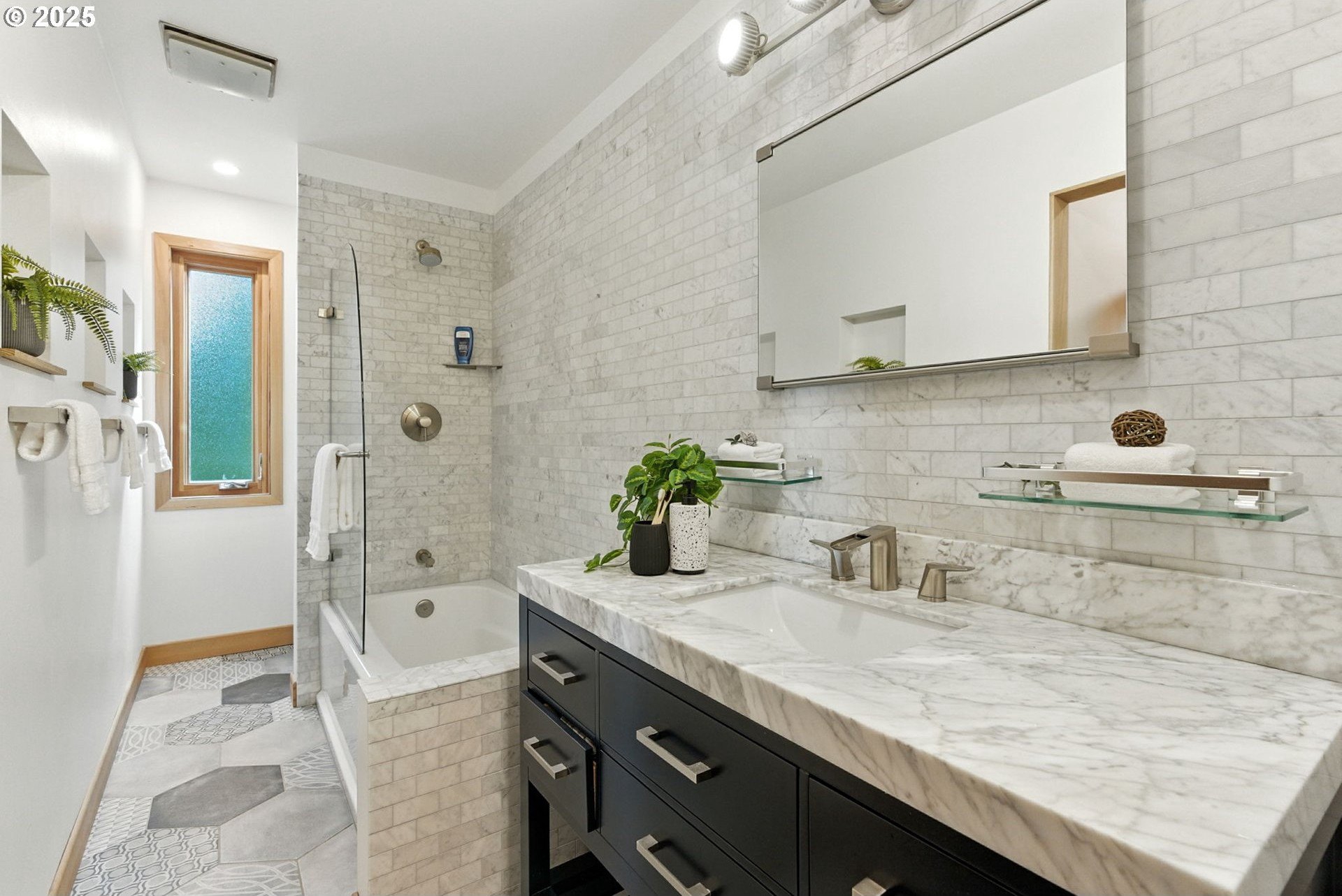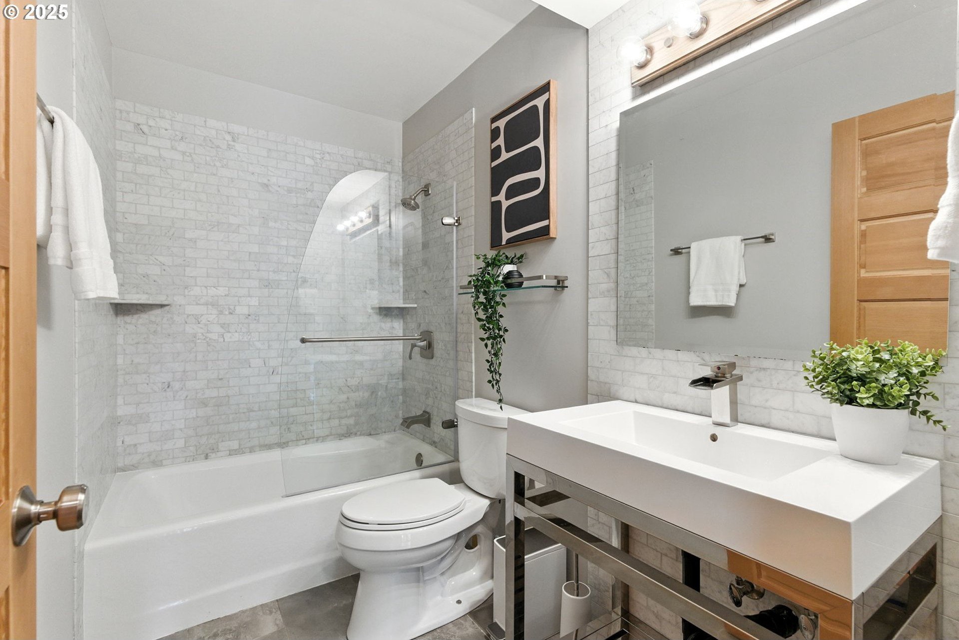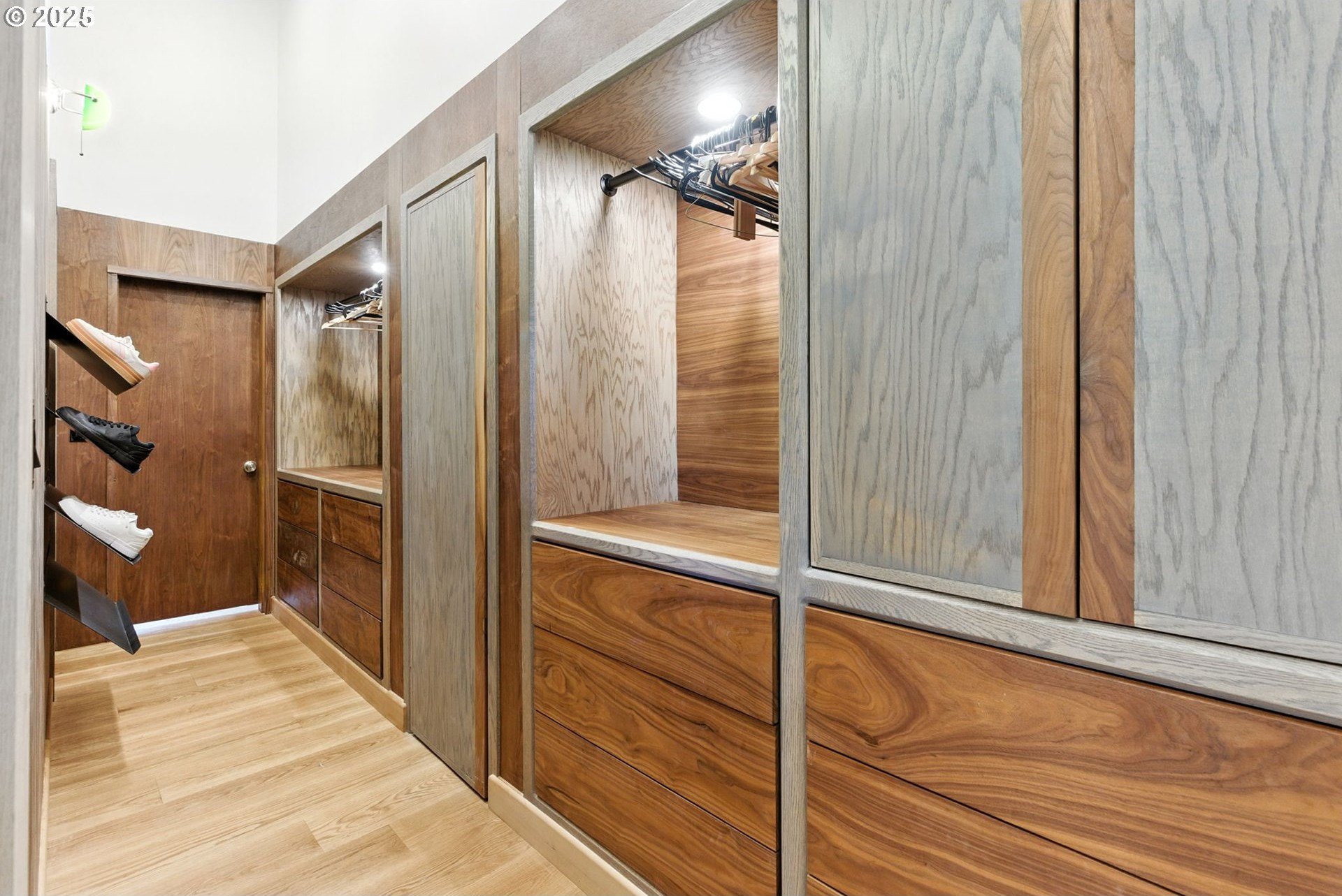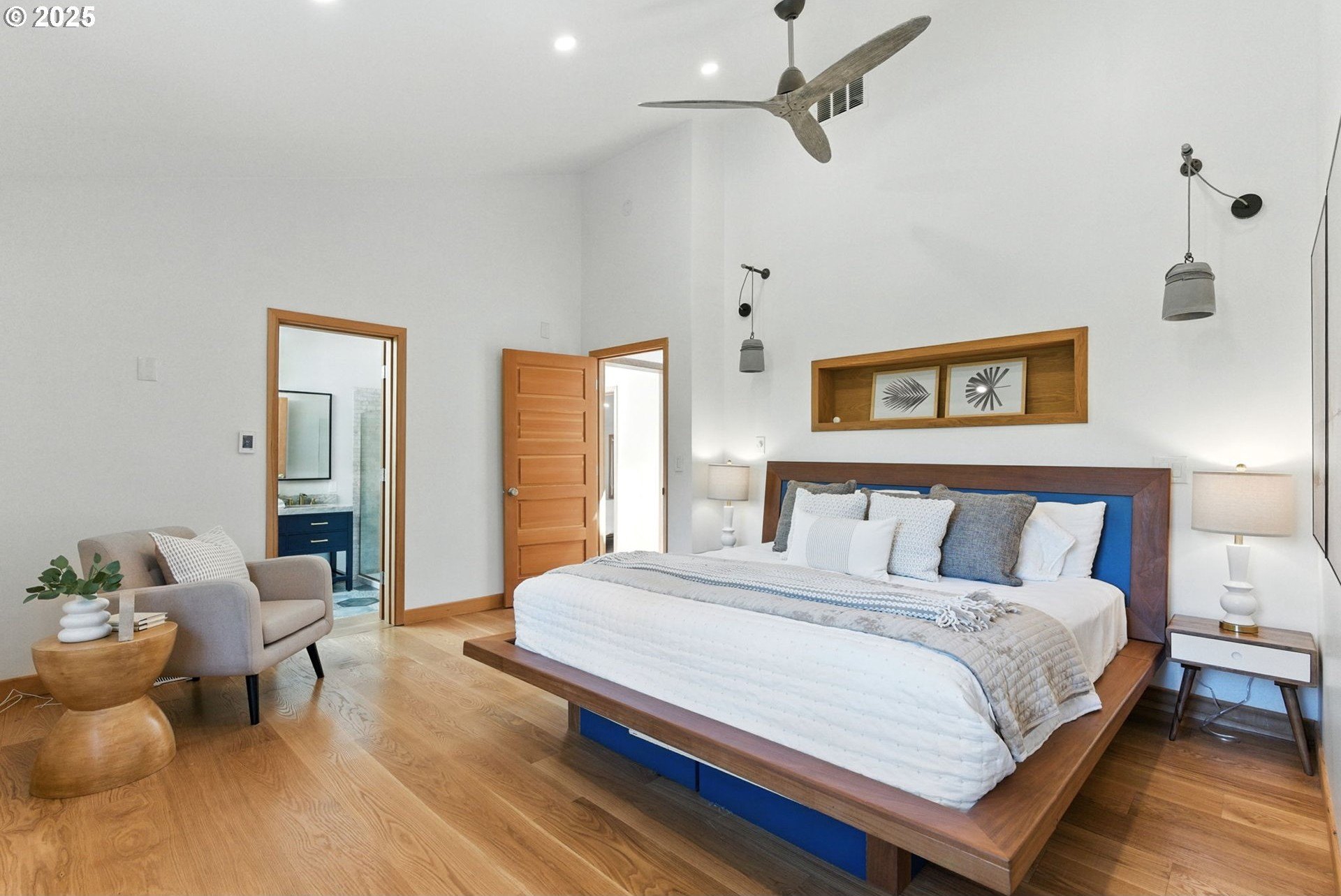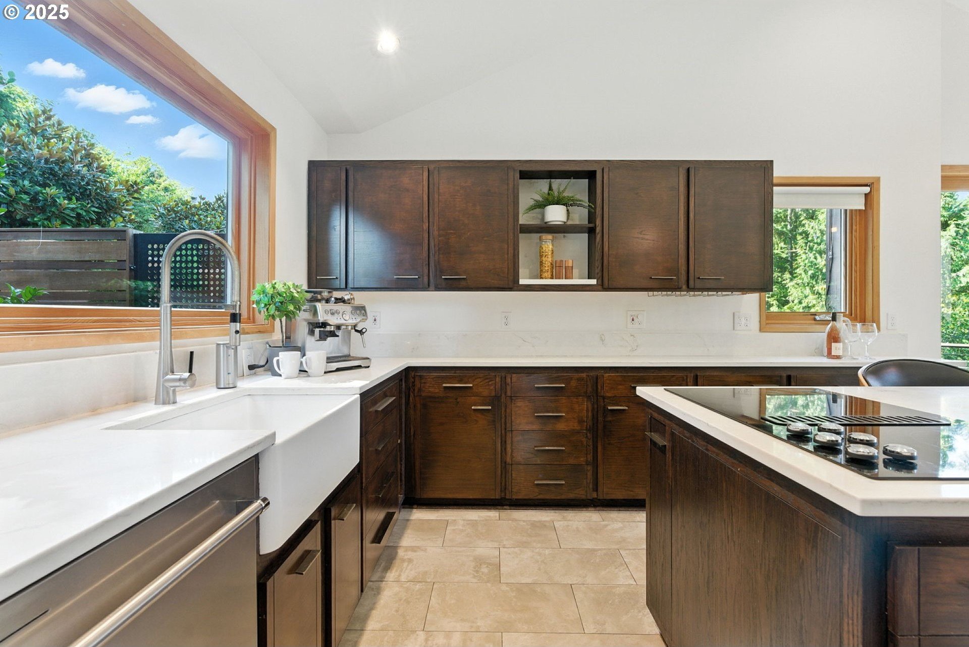 A stunning transformation in Arlington Heights, meticulously renovated with top-tier materials and attention to detail. Every space has been reimagined to maximize year-round enjoyment of Pacific Northwest seasons and spectacular views. European-inspired open spaces create a serene, minimalist atmosphere, featuring high ceilings, wide-plank oak floors, and expansive new wood windows. The living room showcases a striking new wood-burning fireplace, while the vaulted kitchen combines quartz counters, custom cabinetry with restored vintage doors, and an eat-in bar. Two 8’x8’ sliders extend the dining room to a Batu hardwood deck and turf yard. perfect for dinners, sunsets, and weekend gatherings. A main floor bedroom with custom wardrobe doubles as an ideal office or guest room. Upstairs, the primary suite is a true retreat, complete with spa-like bath, soaking tub, heated tile floors, and custom walnut walk-in wardrobe. Two additional bedrooms and a second bath complete the level. The lower level offers a cozy family room for movie nights with a new gas fireplace and projector, a guest suite, oversized laundry with storage, and a charming wine cellar. A slider provides backyard access and views. Upgrades include all major systems with seismic strapping. Outdoors, enjoy a turf play yard with space to play ball or host an outdoor movie, custom pergola for hammock or firepit, and Batu hardwood stairways and planters that create privacy and a retreat-like setting. Dogwoods, magnolias, and gardens frame the home, while the lot extends to a quiet dead-end street where neighbors gather and kids play. A hidden trail leads directly to Hoyt Arboretum, with NW Portland dining, the Rose Garden, and Forest Park only minutes away. [Home Energy Score = 6. HES Report at https://rpt.greenbuildingregistry.com/hes/OR10239629]