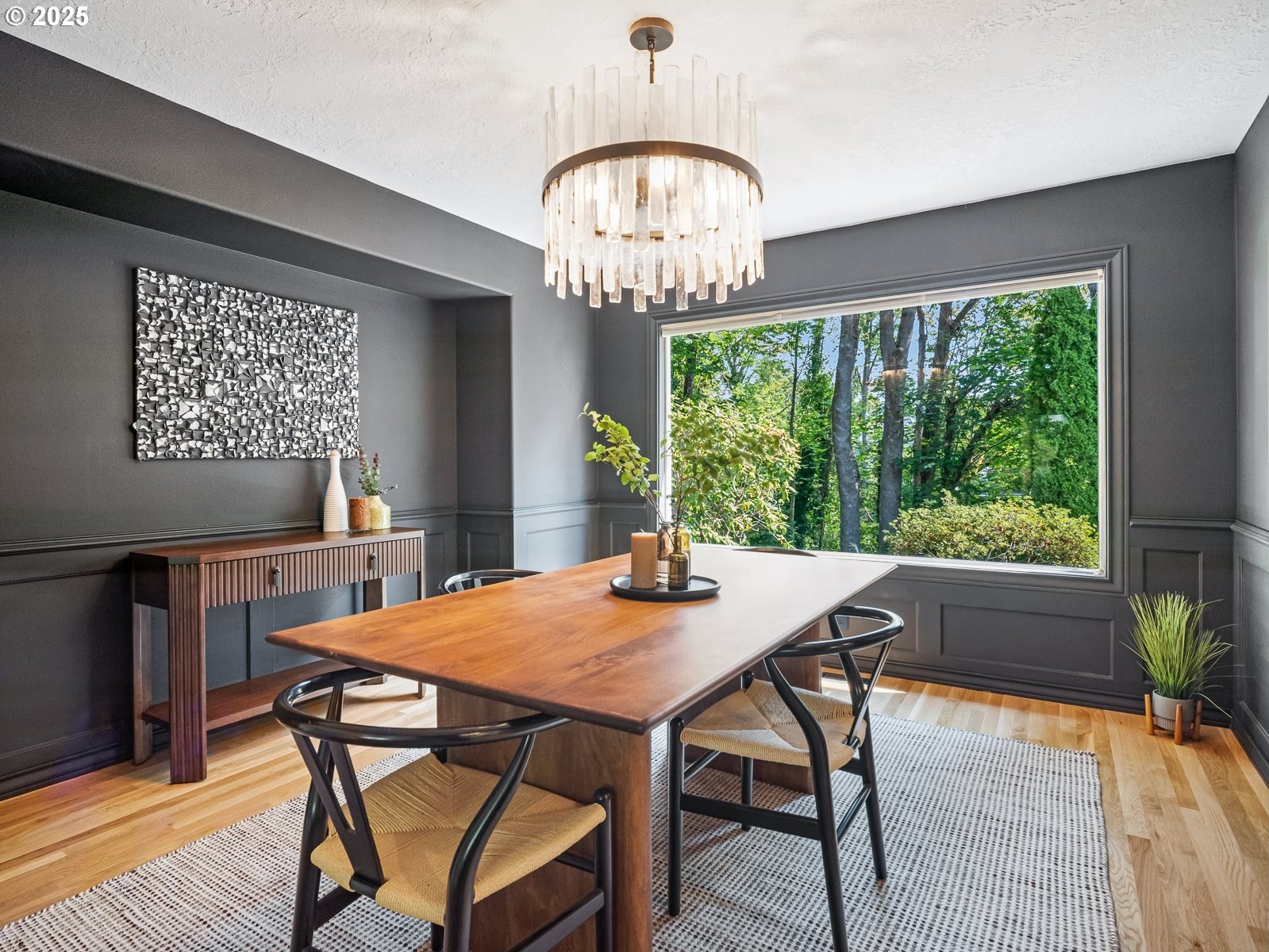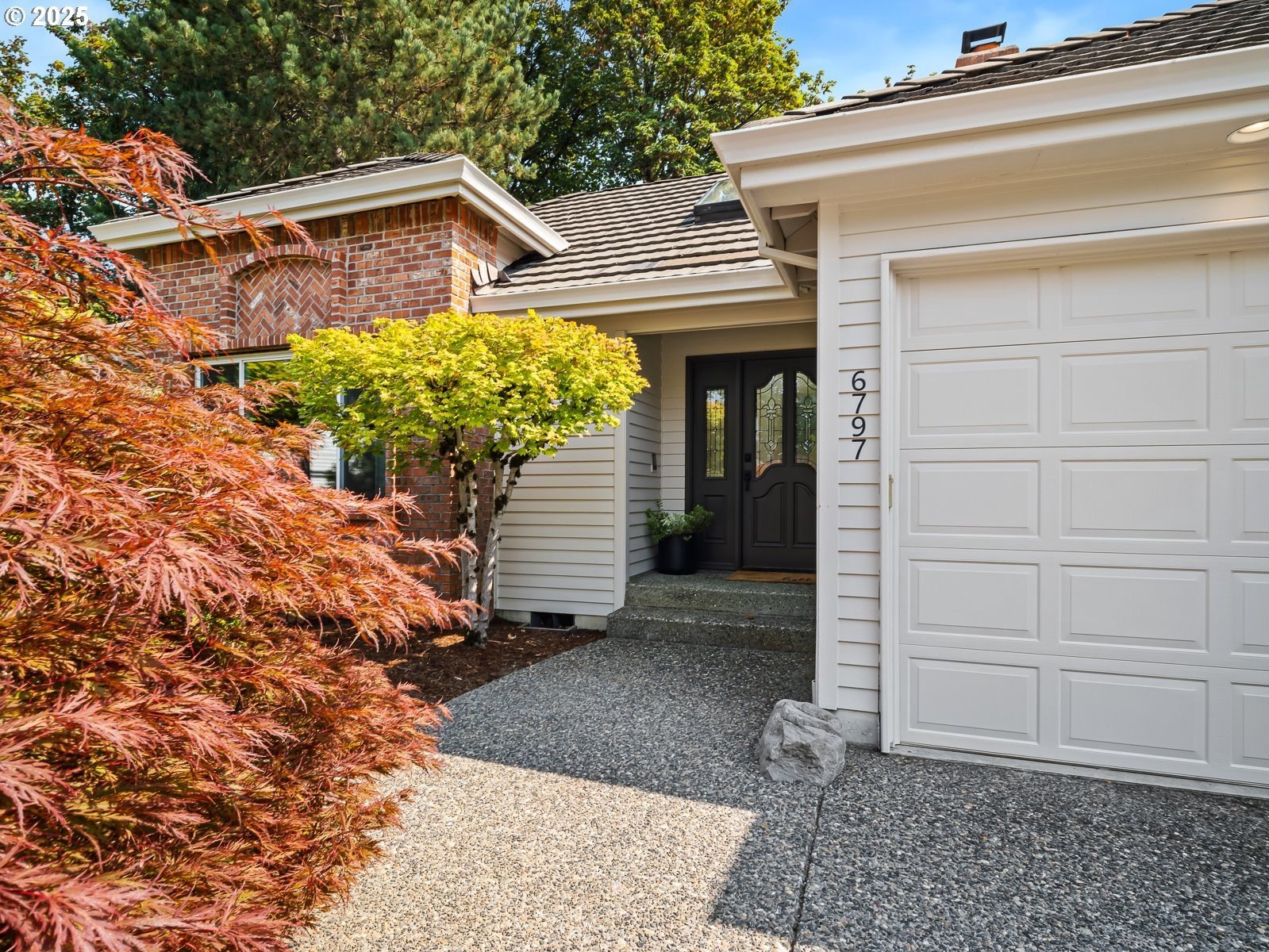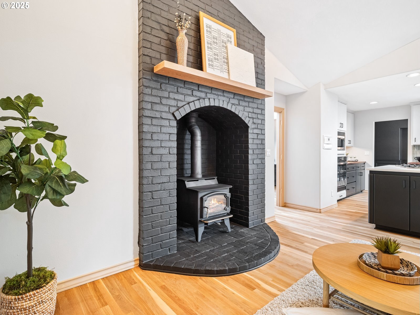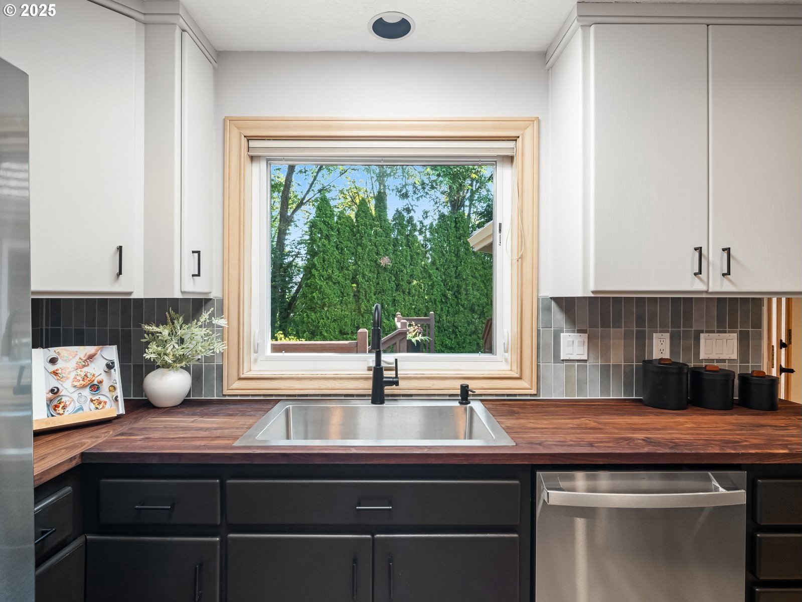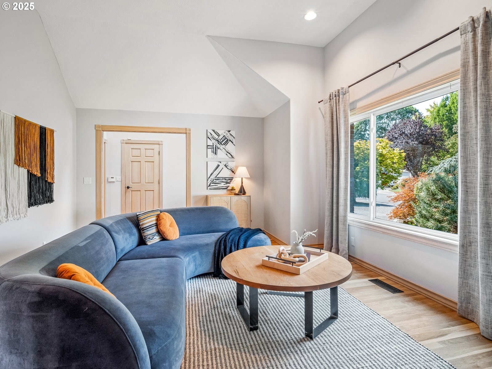 Nestled on a quiet loop, backing to lush greenspace, this is your forever home! One-level living with a designer's touch! Every surface of this home has been lovingly updated with exquisite taste and care. The architectural angles, the reclaimed white oak floors, the seamless floorplan, the abundance of natural light flowing through the new triple pane windows and many skylights, create an ambiance like no other! Entering through the front door welcomes you into a foyer, leading to the living room with captivating vaulted ceilings and picture window, the living room flows into the formal dining area where you will find the most picturesque view of forested greenspace that wraps the backyard. The perfect backdrop for dining! The kitchen is not only perfect for cooking, but beautiful to look at with custom black walnut countertops and a quartz topped island with cooktop. The stainless-steel refrigerator, built in oven and microwave are brand new. The custom tile backsplash, the refreshed cabinetry and generous storage also make this kitchen quite pleasant and functional, and if you must do dishes you might as well have a nice view of the backyard! Off of the kitchen you will find a warm and inviting sitting area for ultimate relaxation with French doors leading to the deck and a certified woodstove for coziness. If you linger down the hallway into the primary bedroom, you will immediately feel as if you are in your own private, serene oasis, the primary has another set of French doors leading to the deck, a walk-in closet, the perfect ensuite with black walnut double vanity, and a soaking tub with a view of the forested greenspace. Two additional large sized bedrooms offer plenty of space for everyone, one bedroom is currently being used as an office with premium built-ins, and can easily be returned to use as a bedroom. The three-car garage offers plenty of storage or studio space. Located in a well loved quiet community on a large lot with access to all amenities.