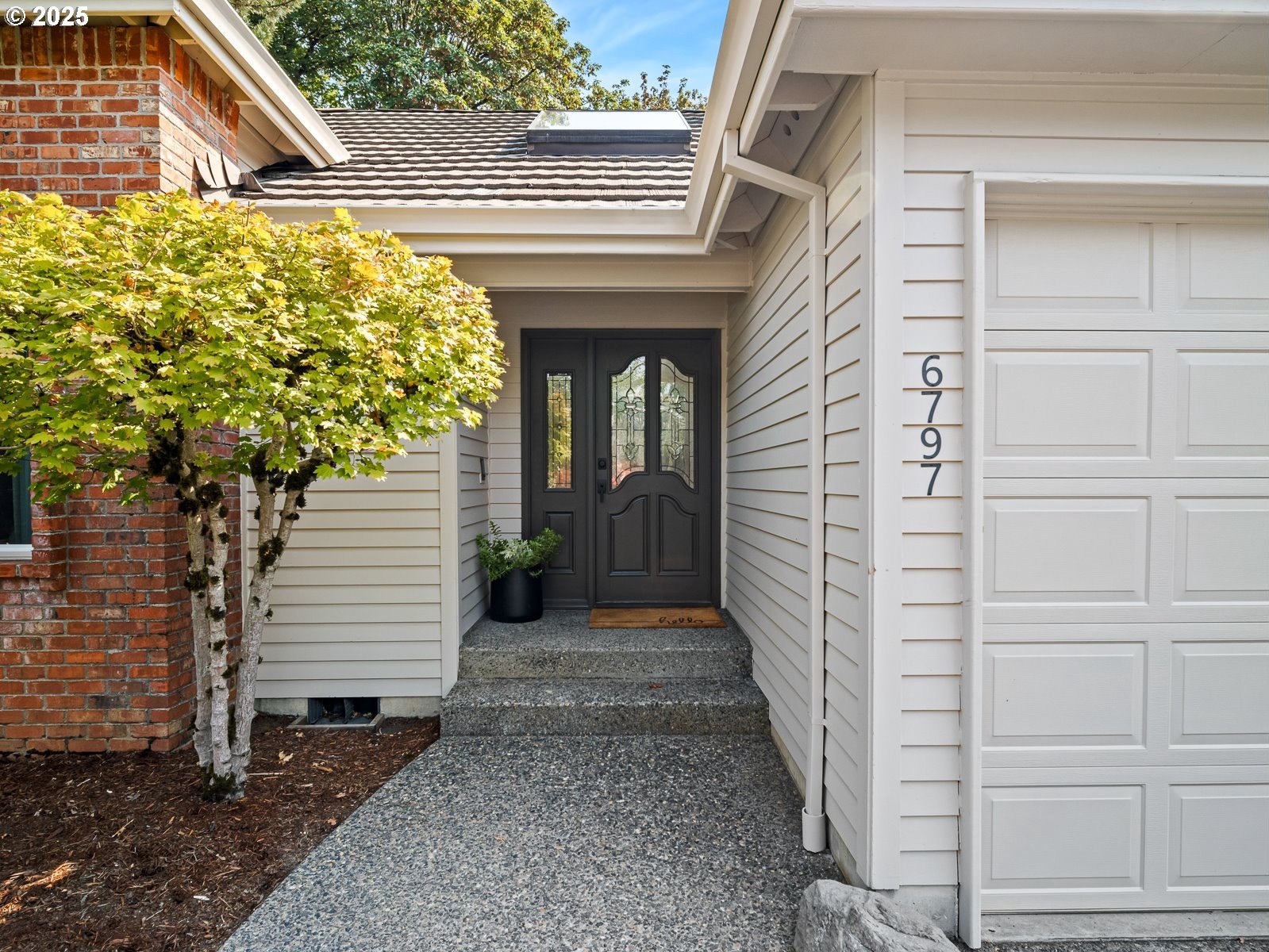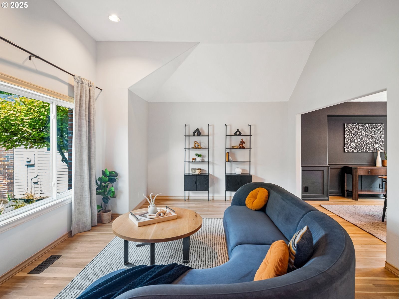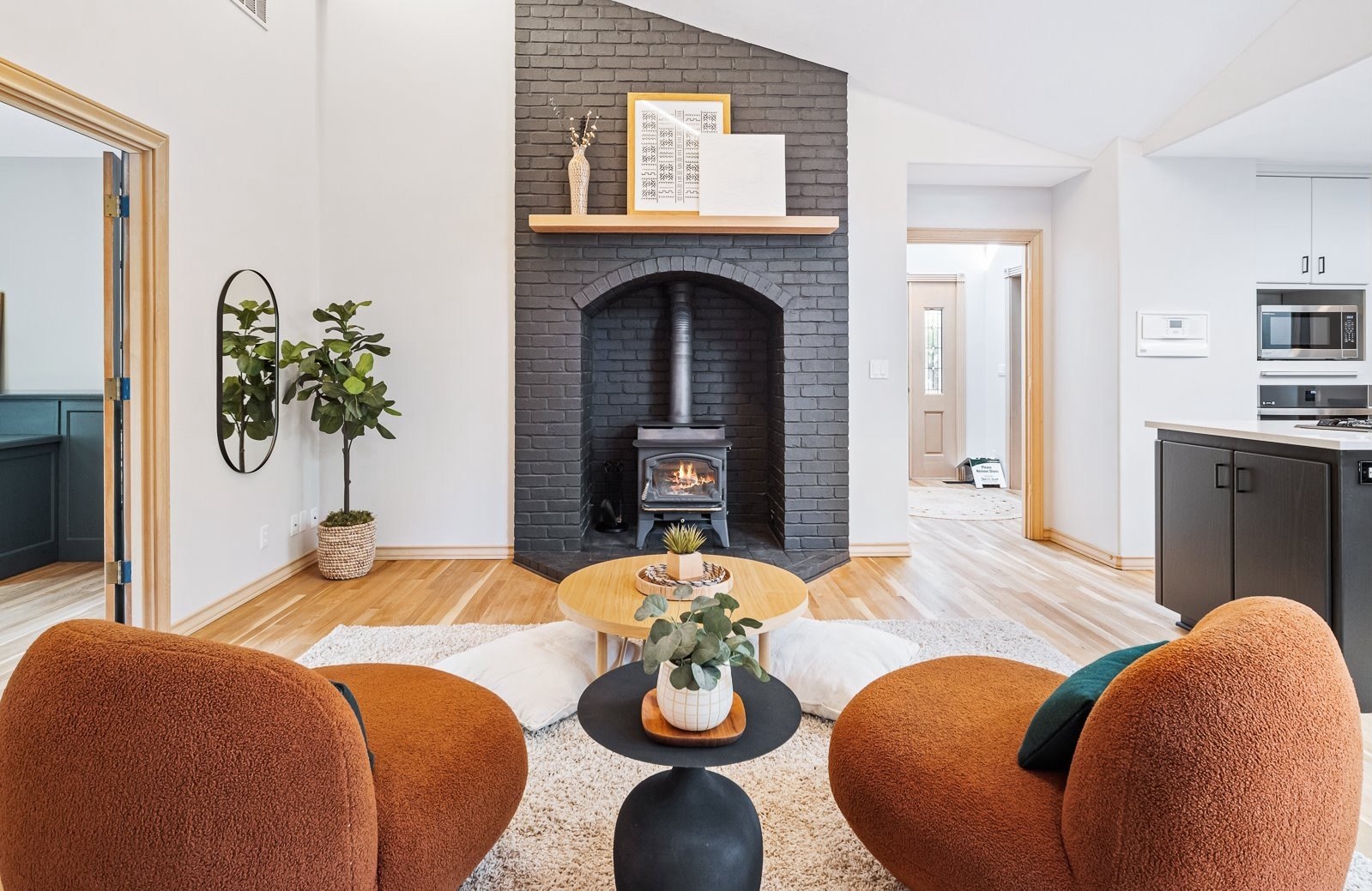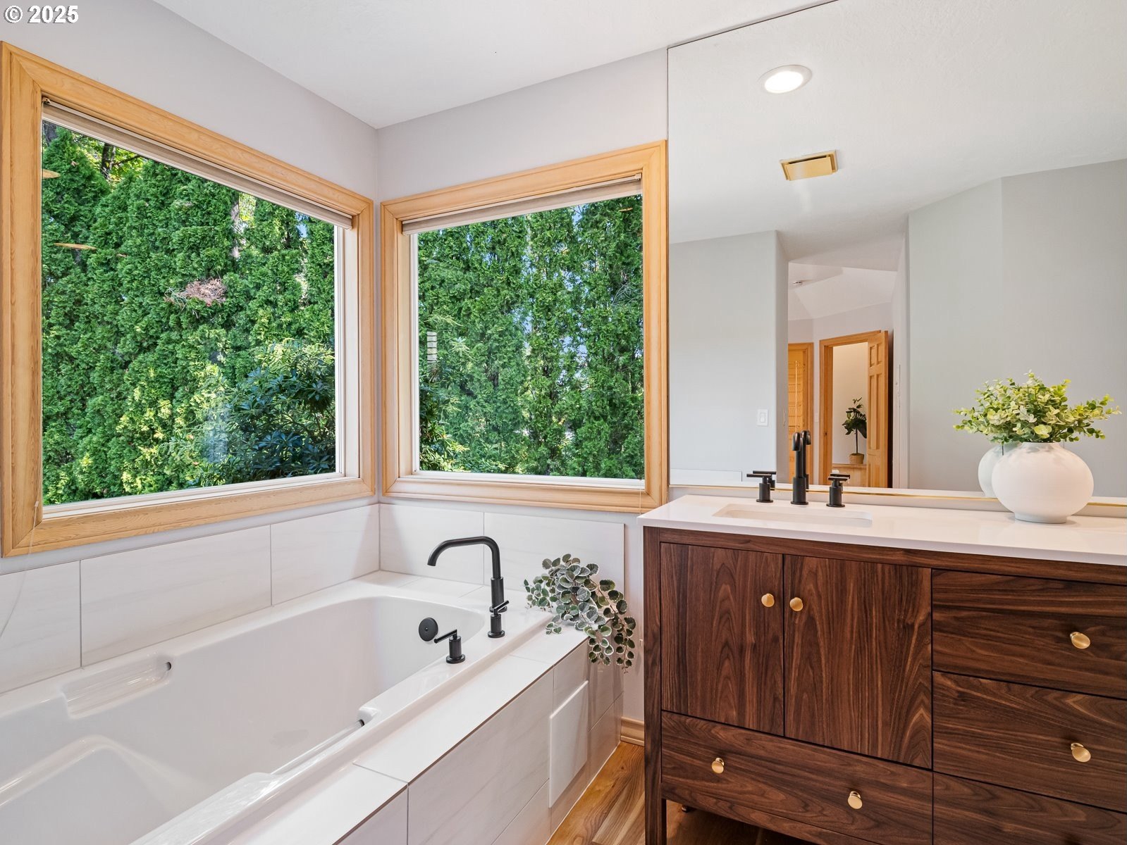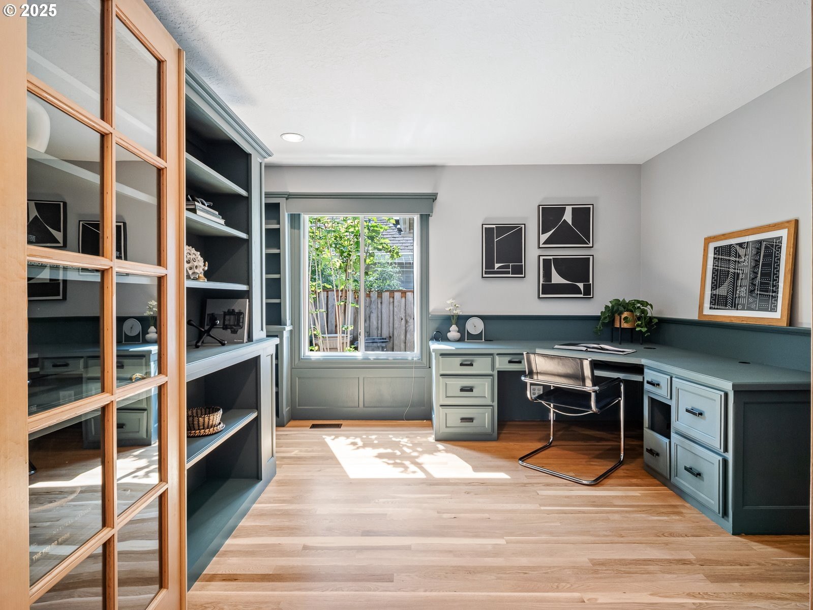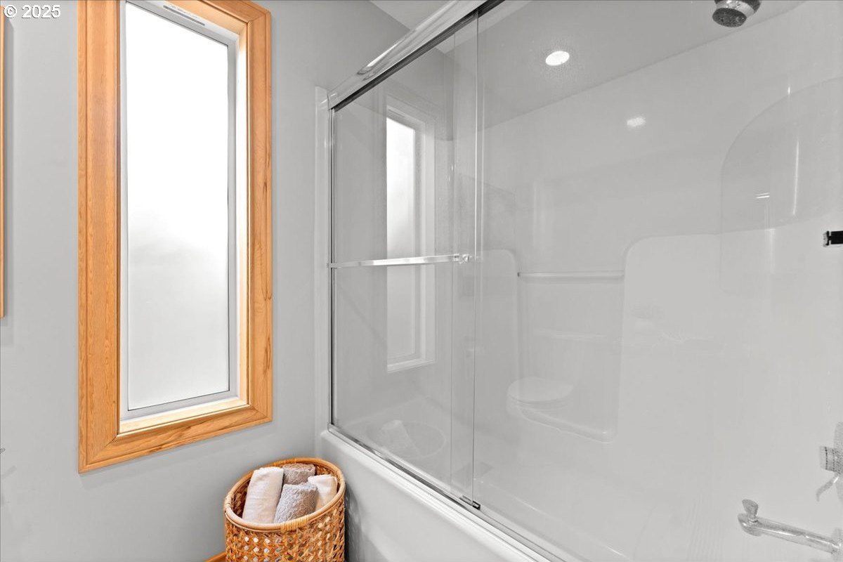 Nestled on a quiet loop, backing to lush greenspace, this is your forever home! One-level living with a designer's touch! Every surface of this home has been lovingly updated with exquisite taste and care. The architectural angles, the reclaimed white oak floors, the seamless floorplan, the abundance of natural light flowing through the new triple pane windows and many skylights, create an ambiance like no other! Entering through the front door welcomes you into a foyer, leading to the living room with captivating vaulted ceilings and picture window, the living room flows into the formal dining area where you will find the most picturesque view of forested greenspace that wraps the backyard. The perfect backdrop for dining! The kitchen is not only perfect for cooking, but beautiful to look at with custom black walnut countertops and a quartz topped island with cooktop. The stainless-steel refrigerator, built in oven and microwave are brand new. The custom tile backsplash, the refreshed cabinetry and generous storage also make this kitchen quite pleasant and functional, and if you must do dishes you might as well have a nice view of the backyard! Off of the kitchen you will find a warm and inviting sitting area for ultimate relaxation with French doors leading to the deck and a certified woodstove for coziness. If you linger down the hallway into the primary bedroom, you will immediately feel as if you are in your own private, serene oasis, the primary has another set of French doors leading to the deck, a walk-in closet, the perfect ensuite with black walnut double vanity, and a soaking tub with a view of the forested greenspace. Two additional large sized bedrooms offer plenty of space for everyone, one bedroom is currently being used as an office with premium built-ins, and can easily be returned to use as a bedroom. The three-car garage offers plenty of storage or studio space. Located in a well loved quiet community on a large lot with access to all amenities.