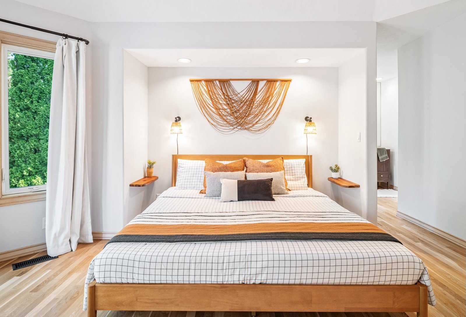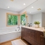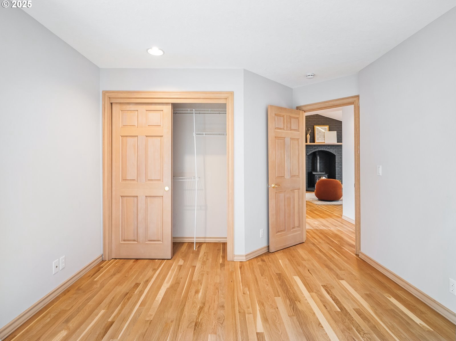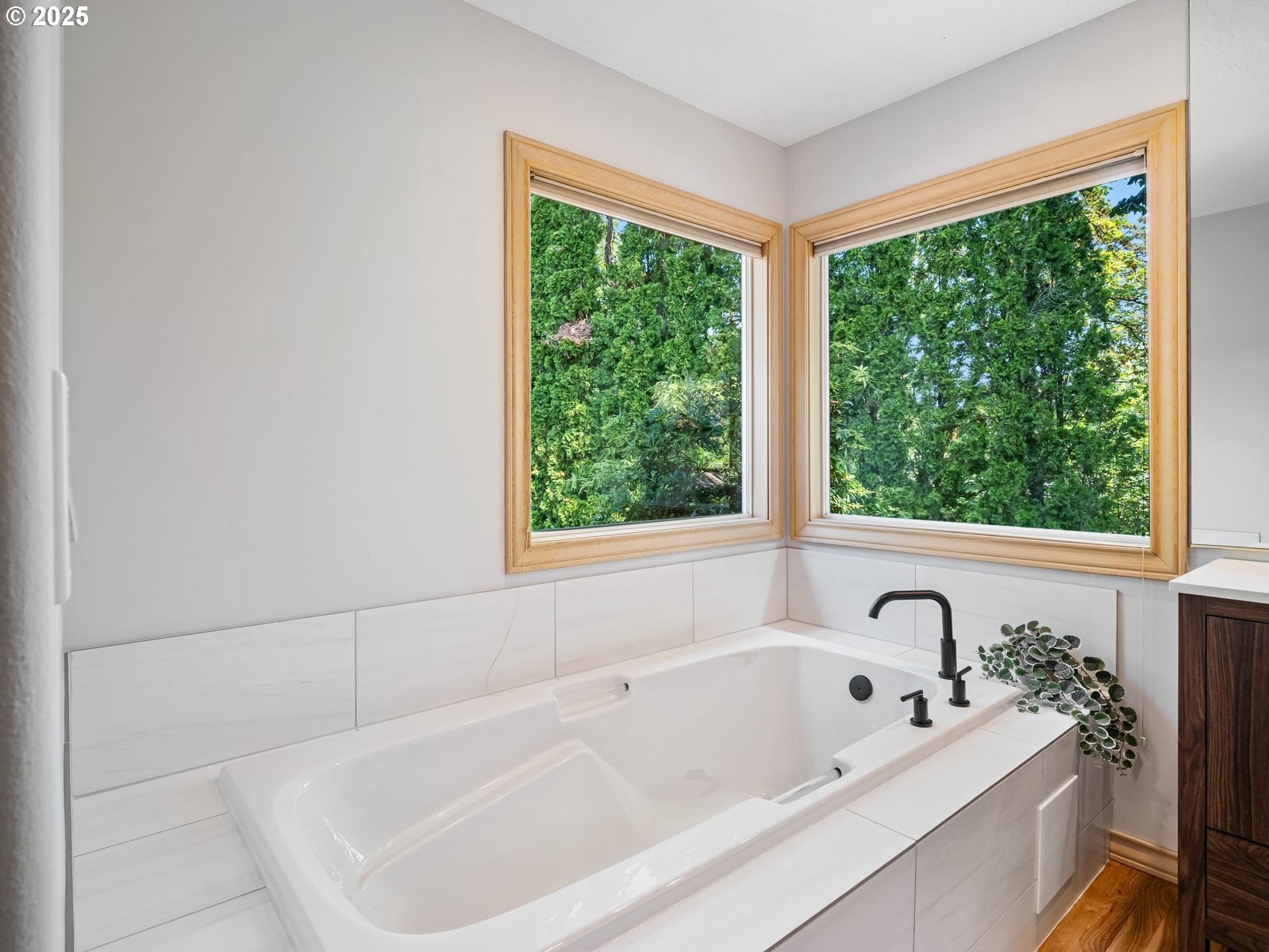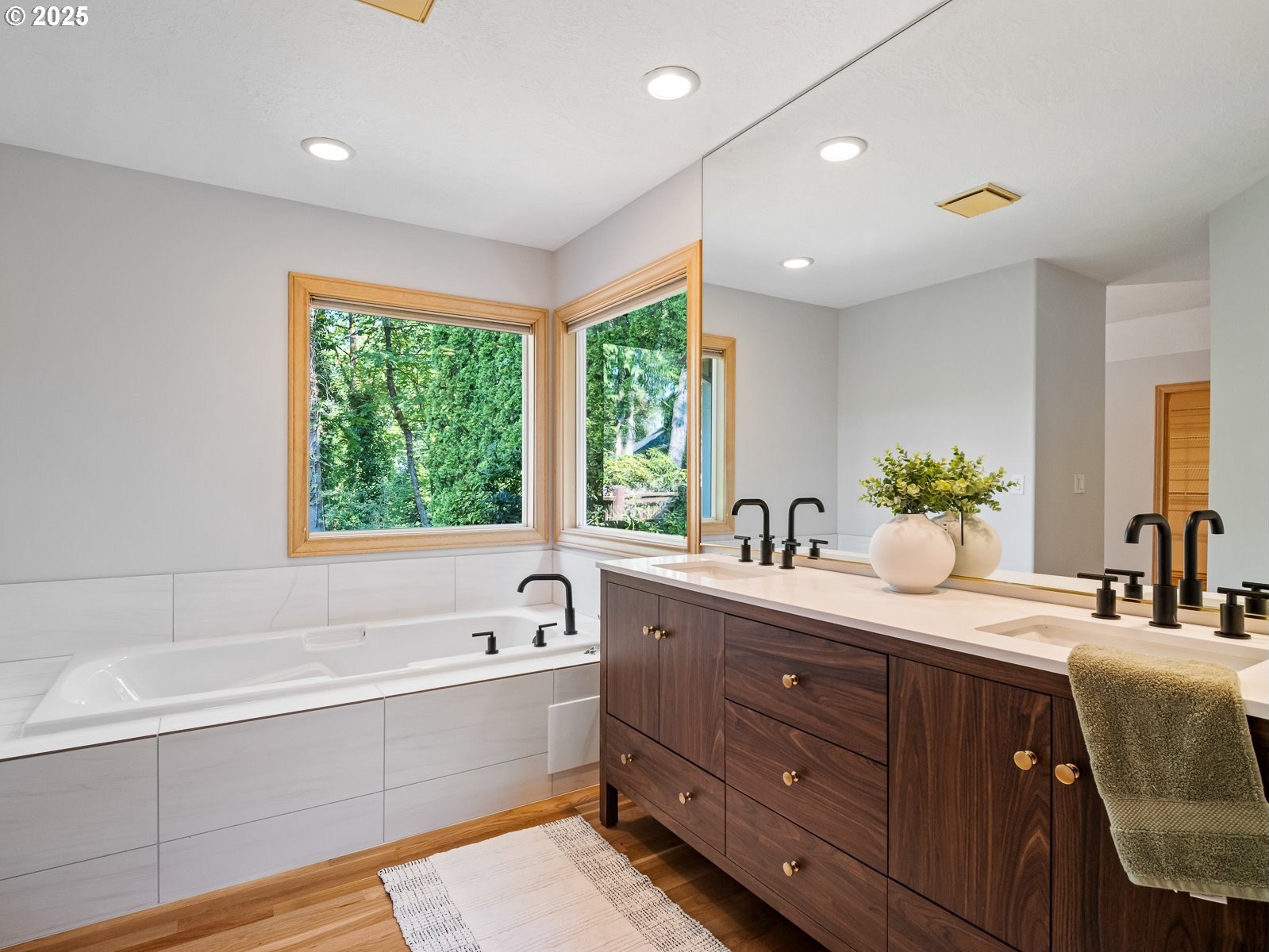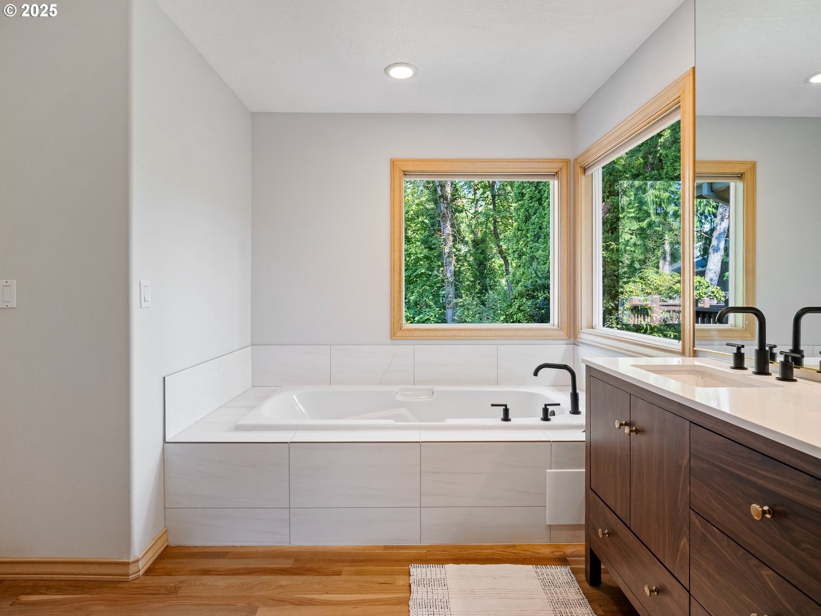 Nestled on a quiet loop, backing to lush greenspace, this is your forever home! One-level living with a designer's touch! Every surface of this home has been lovingly updated with exquisite taste and care. The architectural angles, the reclaimed white oak floors, the seamless floorplan, the abundance of natural light flowing through the new triple pane windows and many skylights, create an ambiance like no other! Entering through the front door welcomes you into a foyer, leading to the living room with captivating vaulted ceilings and picture window, the living room flows into the formal dining area where you will find the most picturesque view of forested greenspace that wraps the backyard. The perfect backdrop for dining! The kitchen is not only perfect for cooking, but beautiful to look at with custom black walnut countertops and a quartz topped island with cooktop. The stainless-steel refrigerator, built in oven and microwave are brand new. The custom tile backsplash, the refreshed cabinetry and generous storage also make this kitchen quite pleasant and functional, and if you must do dishes you might as well have a nice view of the backyard! Off of the kitchen you will find a warm and inviting sitting area for ultimate relaxation with French doors leading to the deck and a certified woodstove for coziness. If you linger down the hallway into the primary bedroom, you will immediately feel as if you are in your own private, serene oasis, the primary has another set of French doors leading to the deck, a walk-in closet, the perfect ensuite with black walnut double vanity, and a soaking tub with a view of the forested greenspace. Two additional large sized bedrooms offer plenty of space for everyone, one bedroom is currently being used as an office with premium built-ins, and can easily be returned to use as a bedroom. The three-car garage offers plenty of storage or studio space. Located in a well loved quiet community on a large lot with access to all amenities.