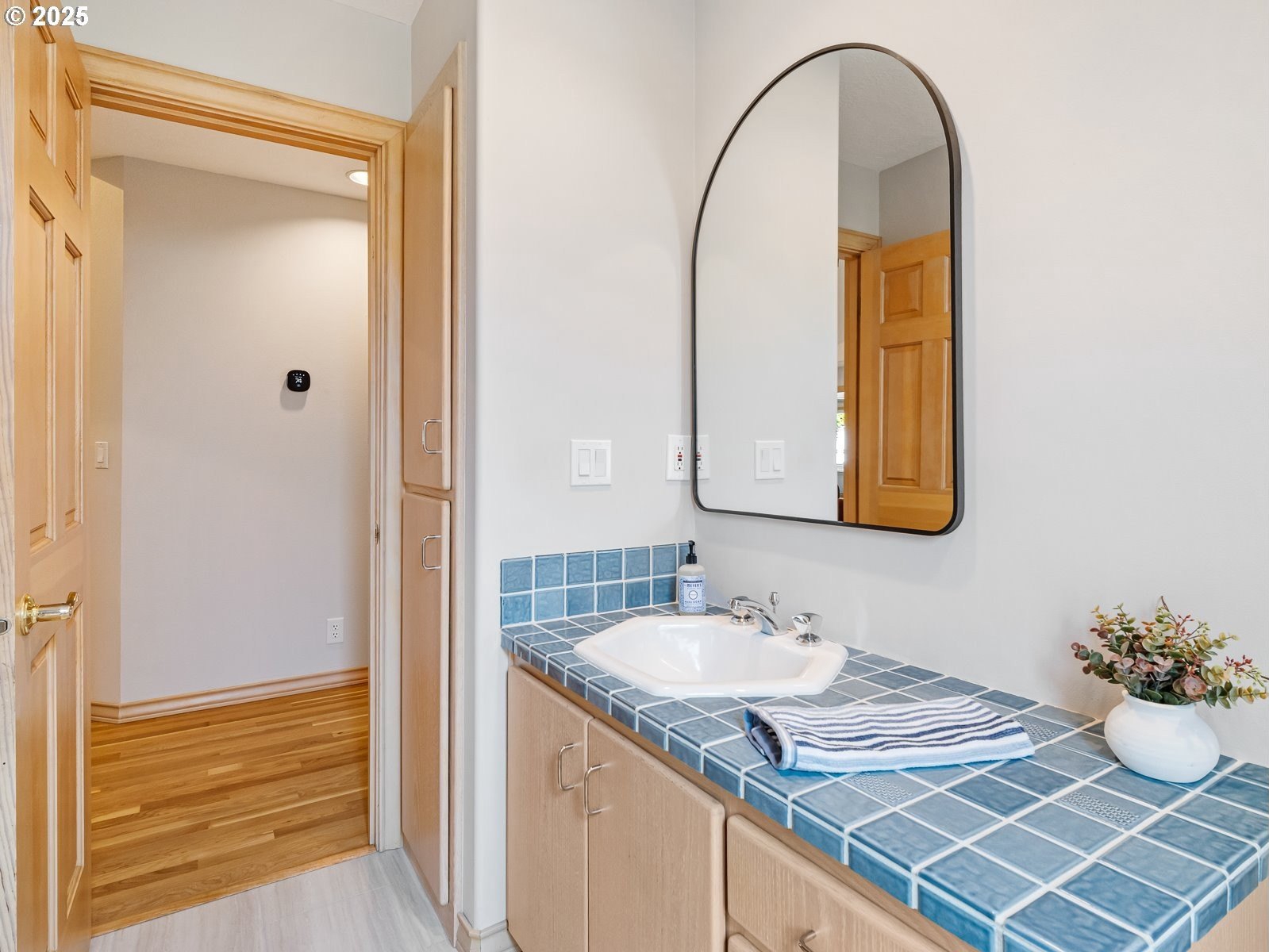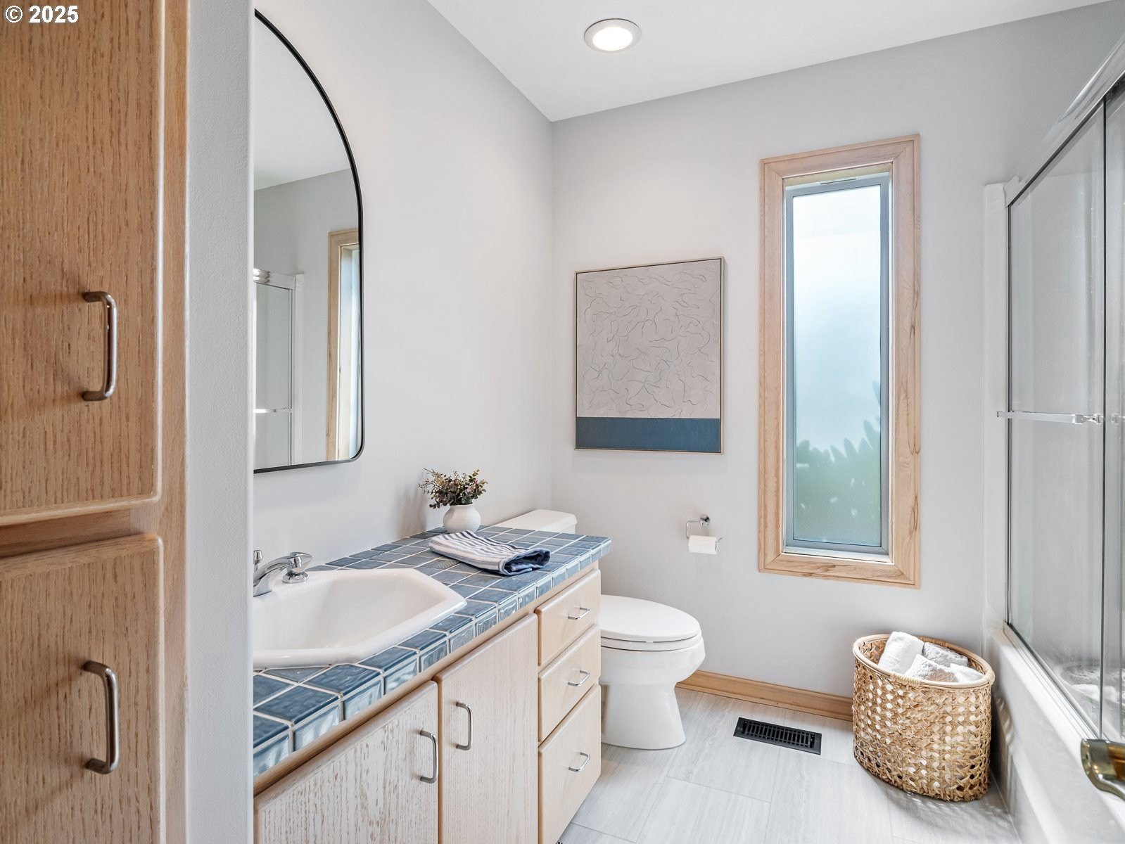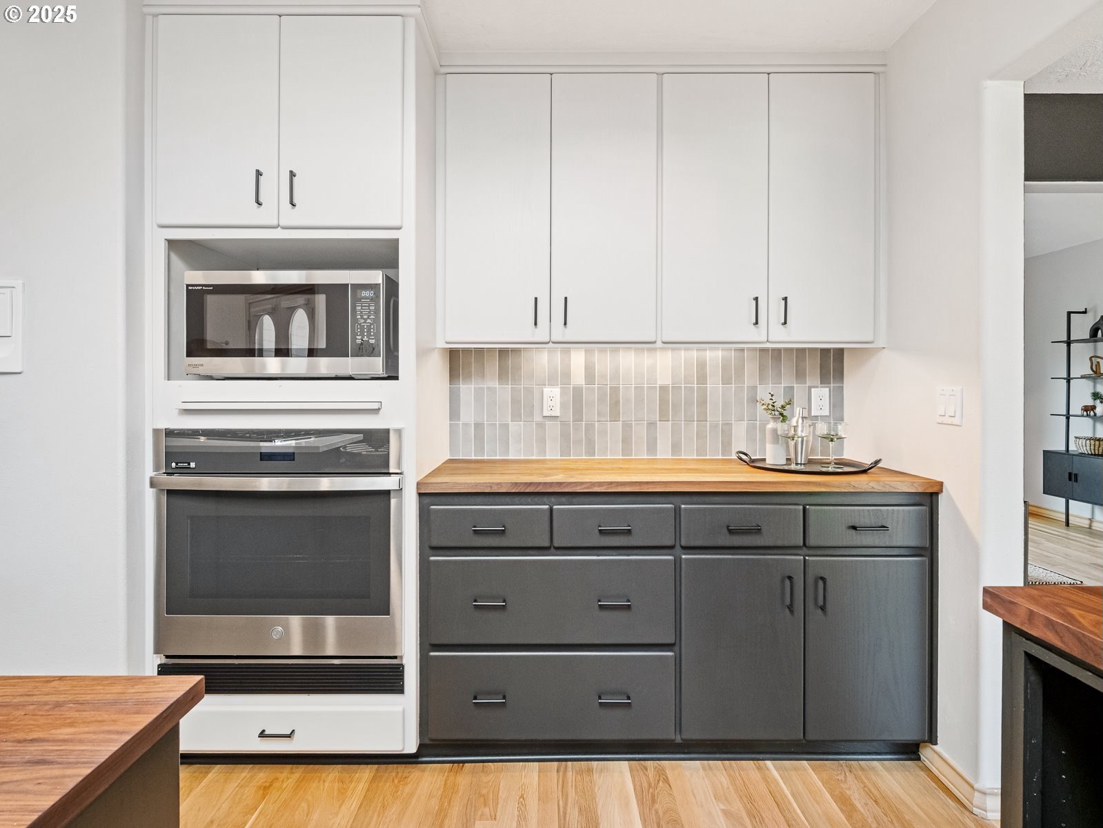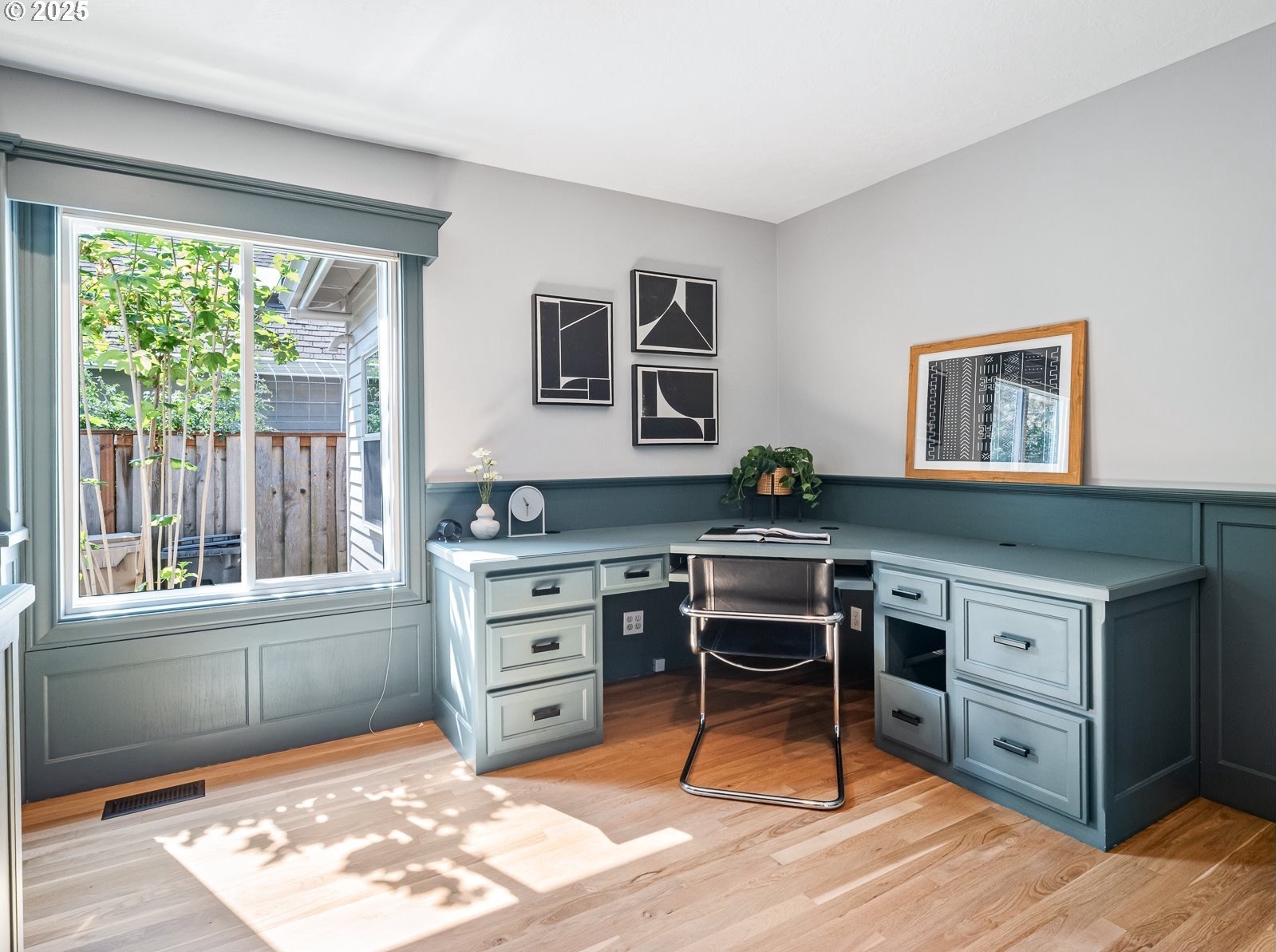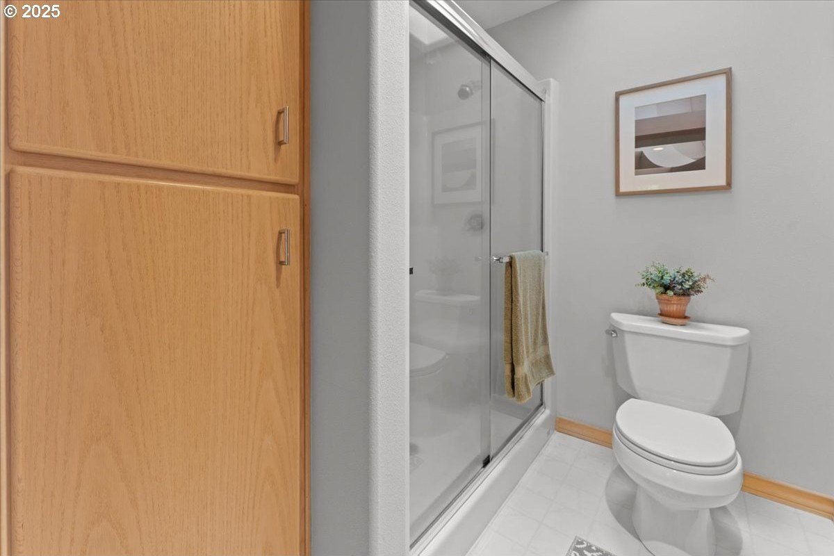 Nestled on a quiet loop, backing to lush greenspace, this is your forever home! One-level living with a designer's touch! Every surface of this home has been lovingly updated with exquisite taste and care. The architectural angles, the reclaimed white oak floors, the seamless floorplan, the abundance of natural light flowing through the new triple pane windows and many skylights, create an ambiance like no other! Entering through the front door welcomes you into a foyer, leading to the living room with captivating vaulted ceilings and picture window, the living room flows into the formal dining area where you will find the most picturesque view of forested greenspace that wraps the backyard. The perfect backdrop for dining! The kitchen is not only perfect for cooking, but beautiful to look at with custom black walnut countertops and a quartz topped island with cooktop. The stainless-steel refrigerator, built in oven and microwave are brand new. The custom tile backsplash, the refreshed cabinetry and generous storage also make this kitchen quite pleasant and functional, and if you must do dishes you might as well have a nice view of the backyard! Off of the kitchen you will find a warm and inviting sitting area for ultimate relaxation with French doors leading to the deck and a certified woodstove for coziness. If you linger down the hallway into the primary bedroom, you will immediately feel as if you are in your own private, serene oasis, the primary has another set of French doors leading to the deck, a walk-in closet, the perfect ensuite with black walnut double vanity, and a soaking tub with a view of the forested greenspace. Two additional large sized bedrooms offer plenty of space for everyone, one bedroom is currently being used as an office with premium built-ins, and can easily be returned to use as a bedroom. The three-car garage offers plenty of storage or studio space. Located in a well loved quiet community on a large lot with access to all amenities.