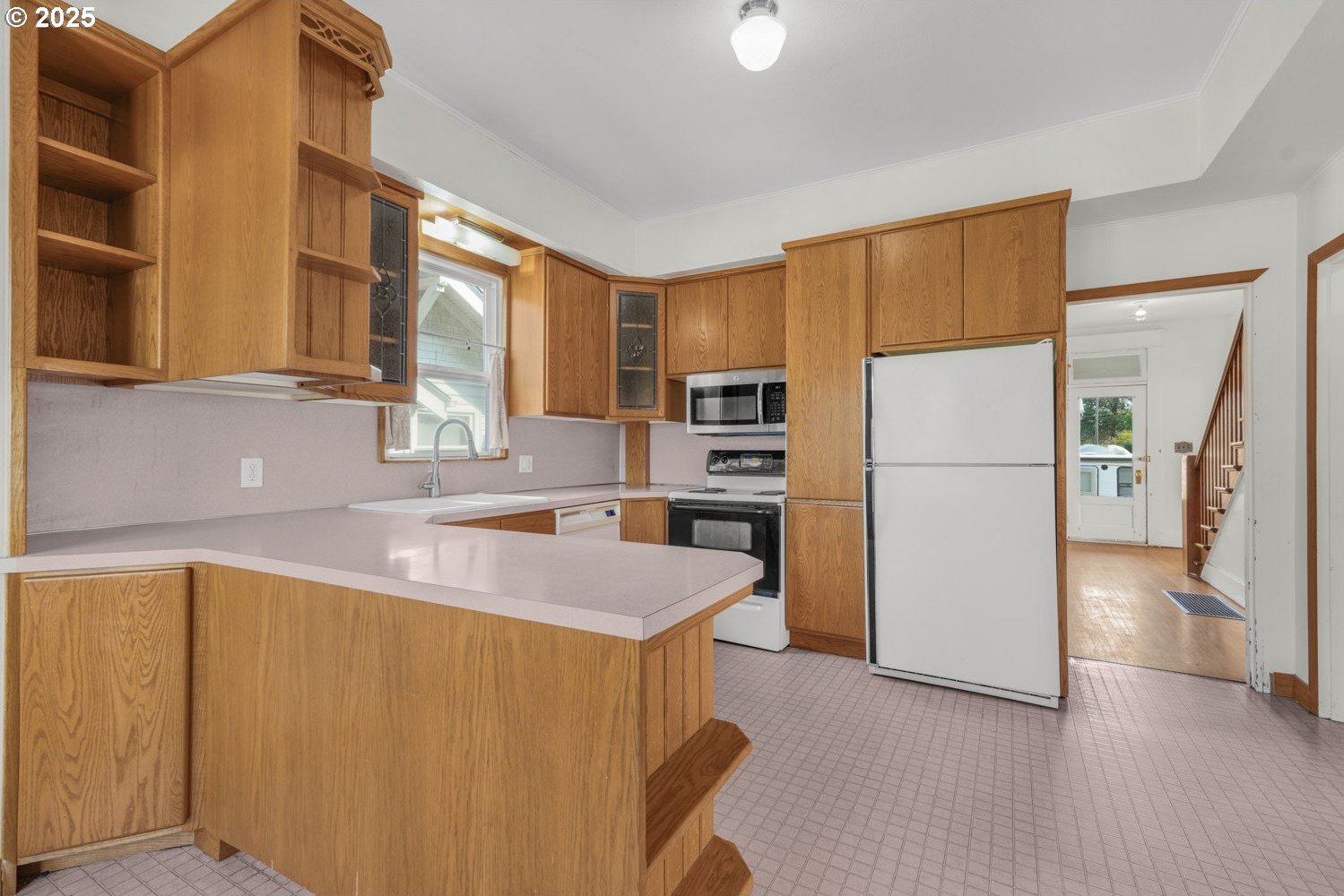 Welcome to the heart of historic St. Helens! This 6-bedroom, 3-bath home offers the perfect blend of charm and convenience and is just steps from the waterfront, restaurants, shops, boating, and fishing. Inside, hardwood floors flow throughout the spacious layout. The light-filled living room features multiple windows, and the dining area includes beautiful built-in cabinetry for showcasing your china or collectibles. The kitchen has gorgeous cabinetry, lots of counter space for meal prep, and a cozy eating nook. A mud room off the kitchen has washer/dryer hookups and provides easy access to the fenced backyard, perfect for gardening, pets, or play. The home offers versatility with a main-level bedroom that works well as a guest room or office, plus four additional bedrooms upstairs. A permitted and inspected basement in-law suite adds incredible value with a private exterior entry, full kitchenette, laundry with washer/dryer, bedroom, full bath, storage, and flexible living space. Enjoy the benefits of living within walking distance of all that St. Helens’ historic waterfront has to offer while having the space, comfort, and flexibility this unique property provides. **Additional updates include completely updated Pex plumbing, roof is 3 years old and a whole house water filter - AO Smith 6yr water filter (4yrs left) for added peace of mind.