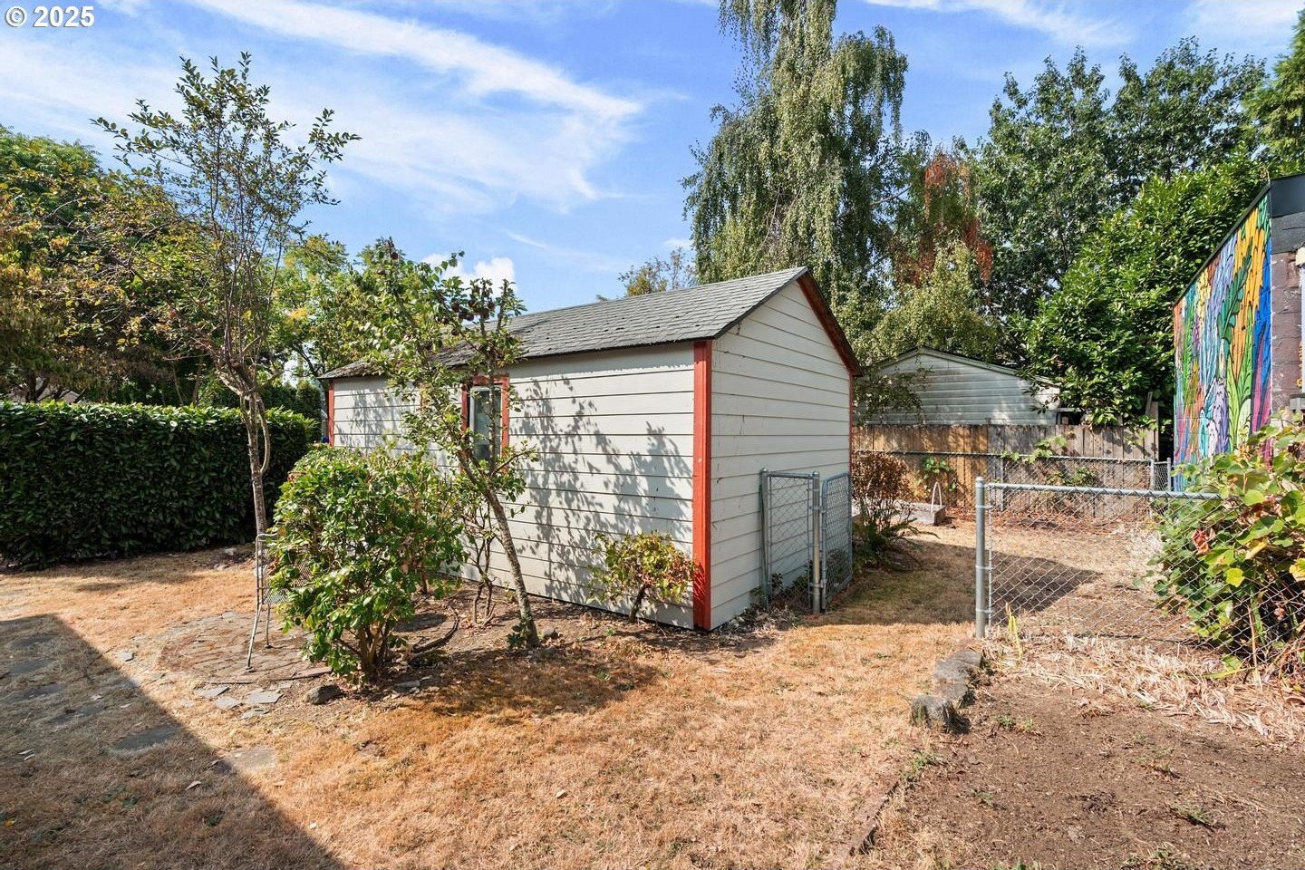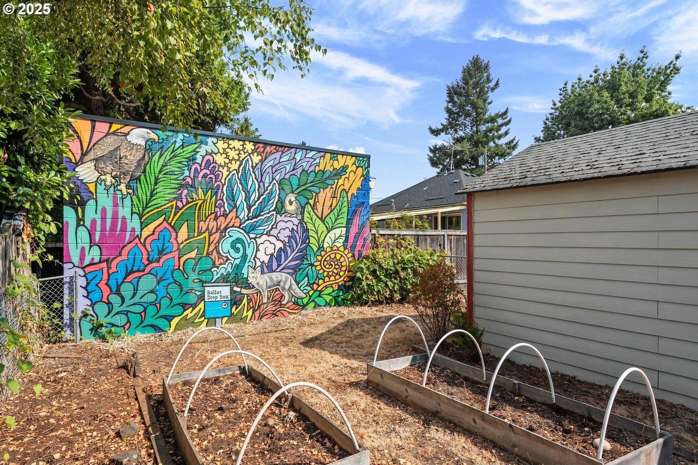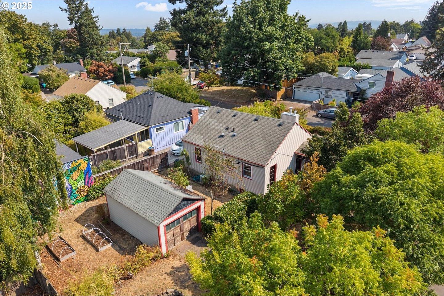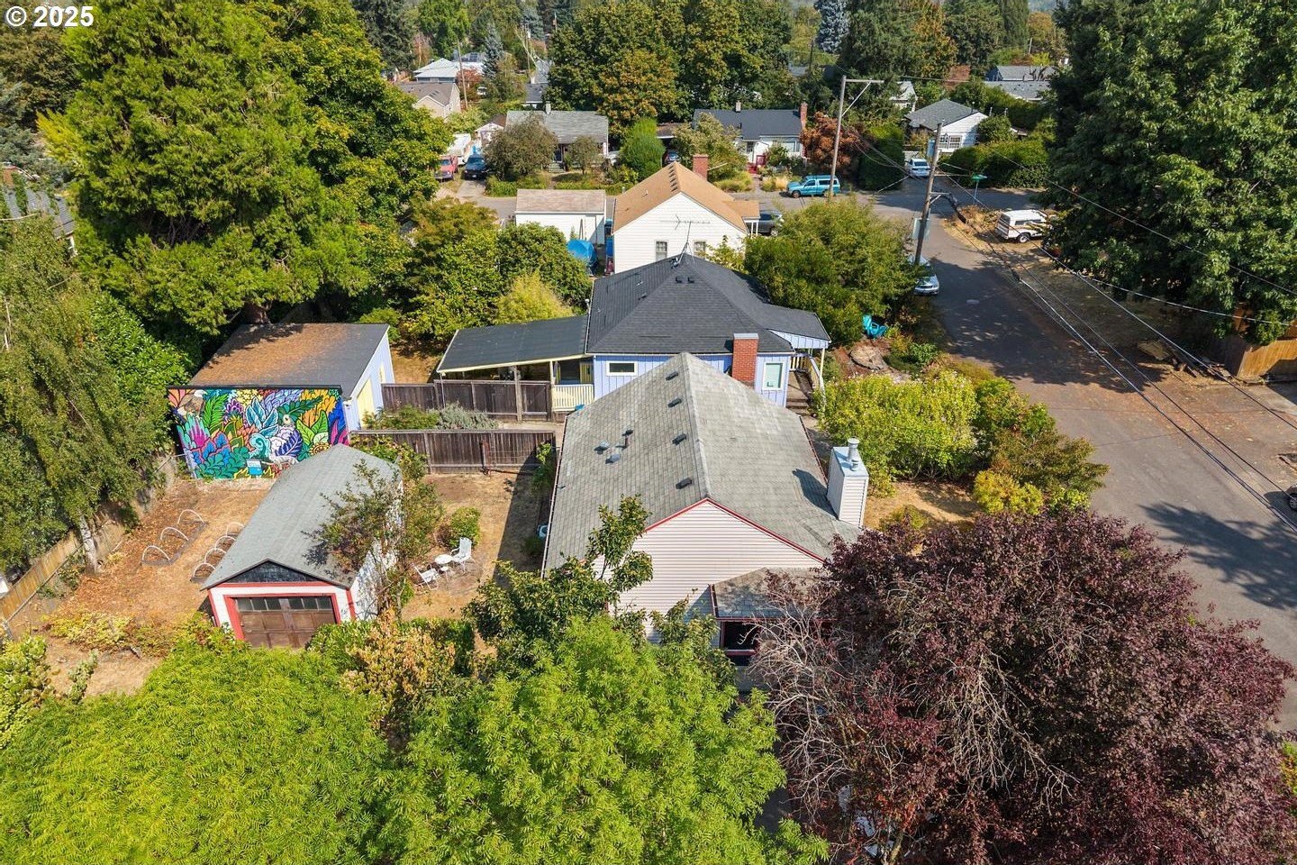 Have you been waiting for an urban garden opportunity, but don't want to live far out?! This is a home you need to see! This darling cottage is on an oversized corner lot with oodles of charm and easy living. Hardwood floors, living room fireplace, covered front porch, updated kitchen and bath, great natural light, and a sweet dining area with a pop up table for more casual eating. The unfinished basement is a blank slate with high ceilings and wide spans - bring your imagination! Let's talk about the fully fenced yard - the mature landscaping offers privacy and surround the home with green! There's also a one of a kind, gorgeous custom mural from one of Portland's favorite muralists! The Seller maintained a natural, pesticide free yard that is ready for the next owner! Call your agent today for a showing, or stop by the open house Sun Sept 7th between 2-4pm! [Home Energy Score = 5. HES Report at https://rpt.greenbuildingregistry.com/hes/OR10241427]