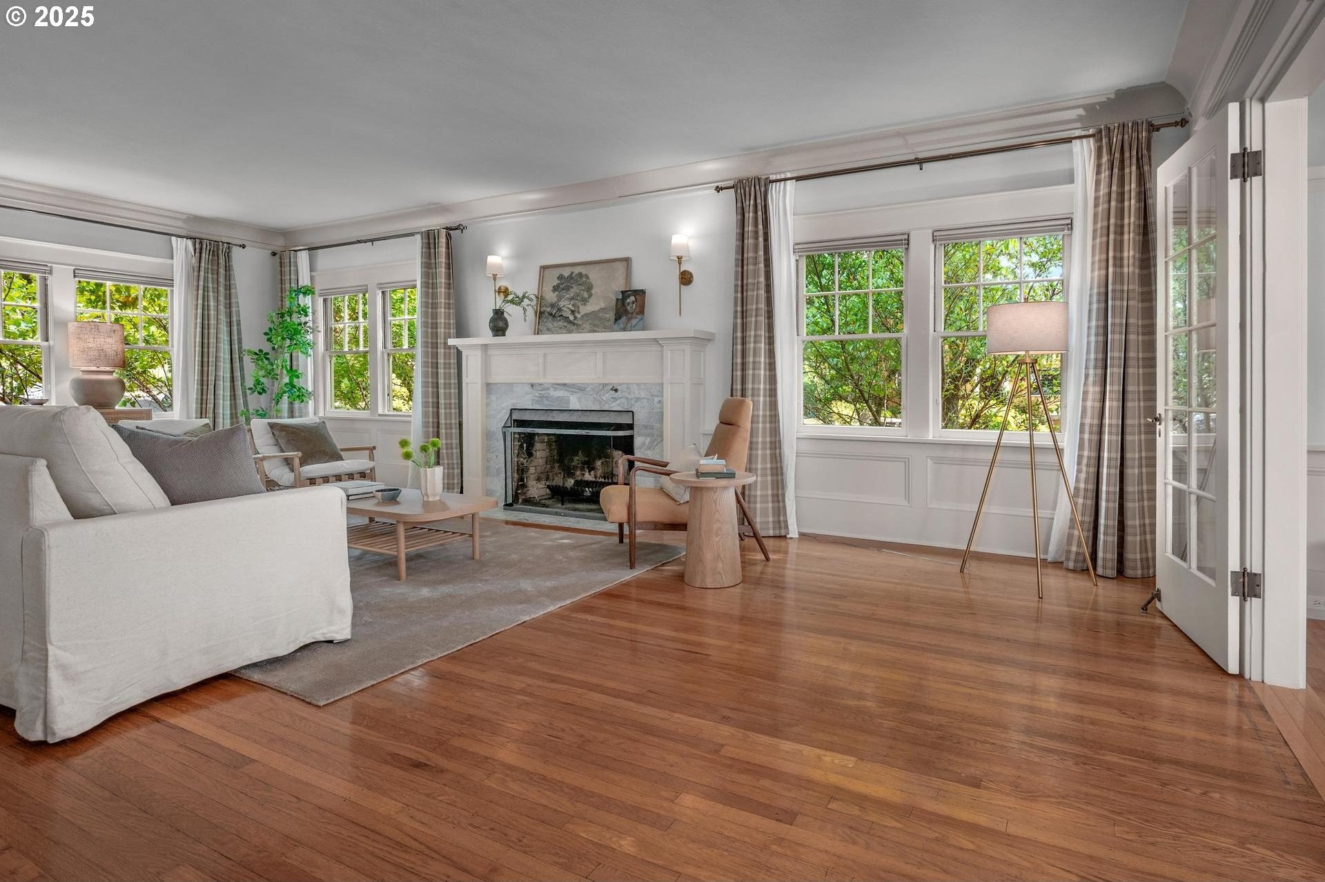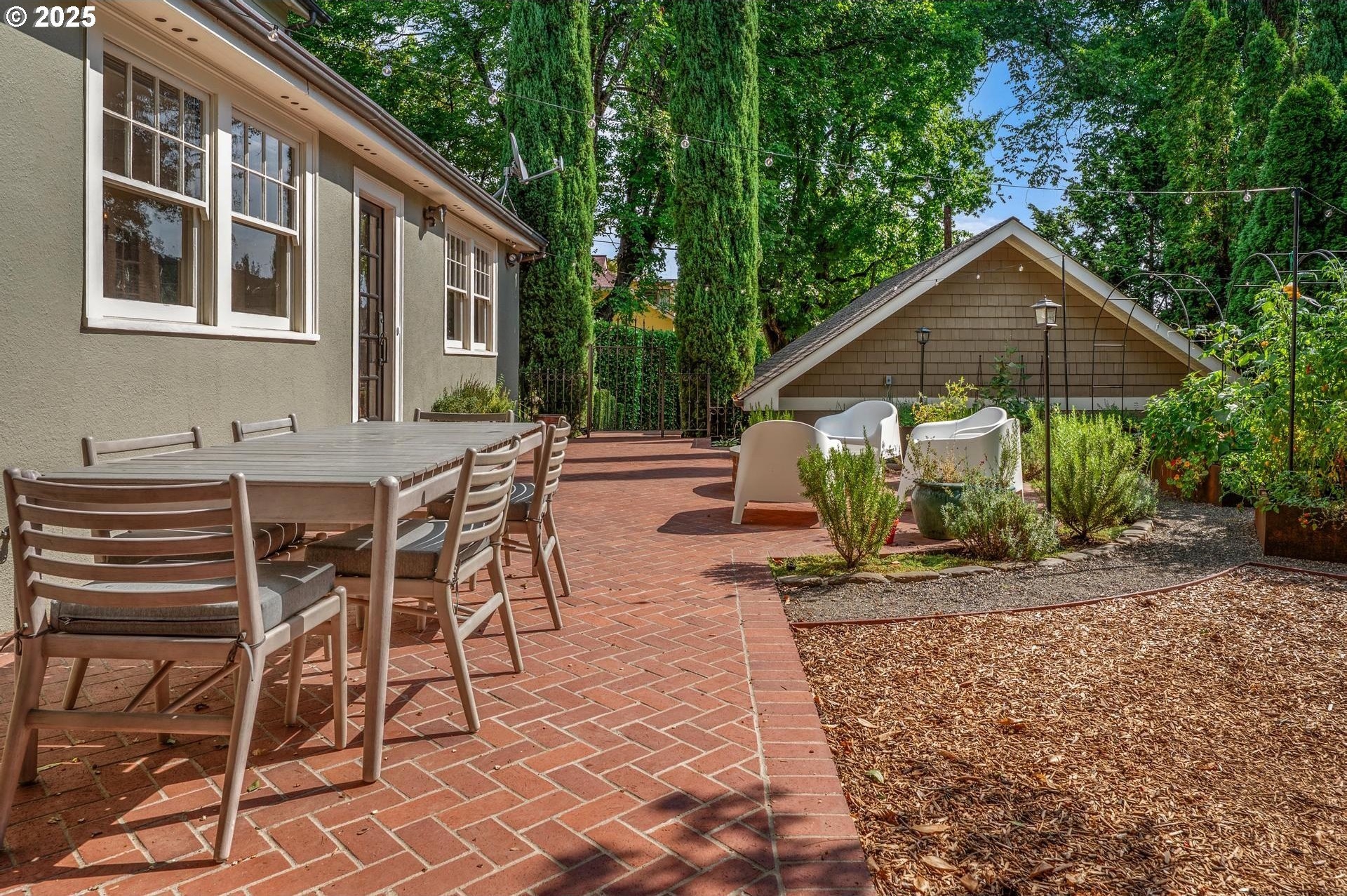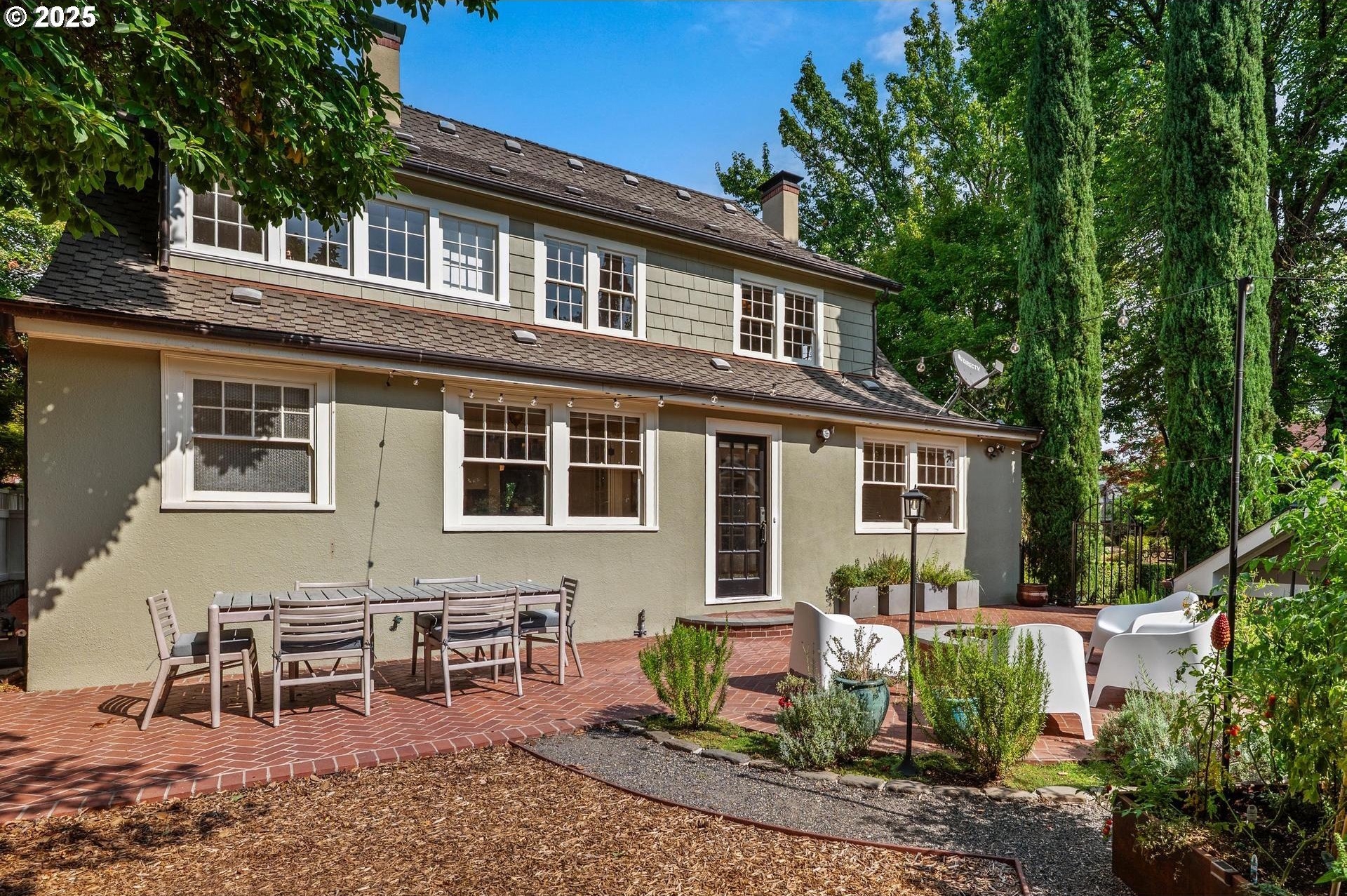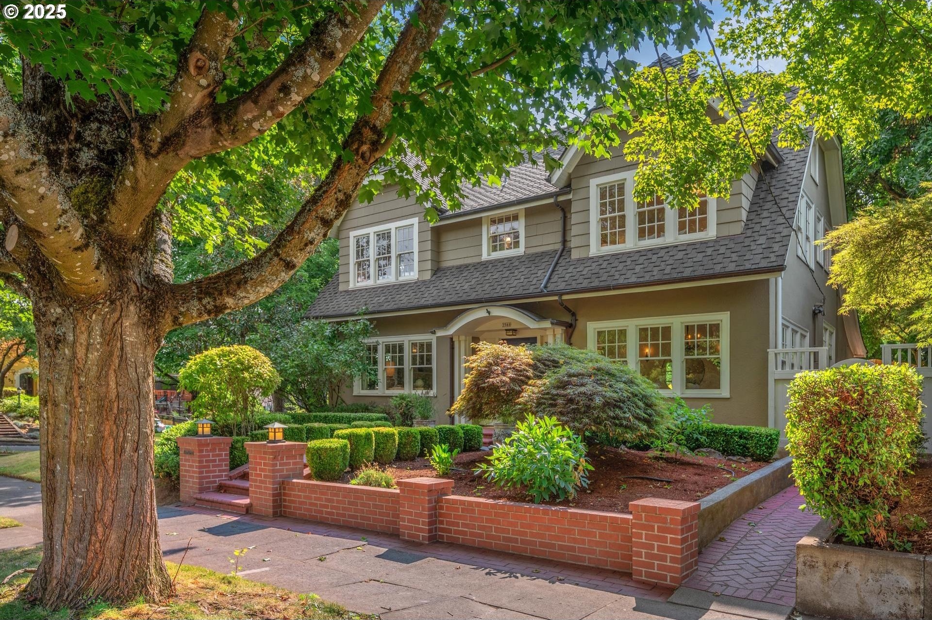 Situated on an extraordinary corner lot in the coveted Laurelhurst neighborhood, this house oozes curb appeal. Walk up the front steps and through the front door and you won't be disappointed. You'll immediately notice the abundant natural light streaming through large multi-pane windows, highlighting original architectural details and rich hardwood floors. A spacious main level offers versatility: host dinner parties in the elegant dining room, enjoy quiet evenings by the fireplace, or flow easily into casual family spaces that connect seamlessly to the outdoors. Upstairs, generously sized bedrooms provide comfort and privacy, with thoughtful touches that make each room feel like a retreat. The timeless character continues with classic trim work, and beautiful lighting, unique to the time period the house was built. Outdoors, mature landscaping surrounds brick patios, a custom playhouse, and curated garden spaces, creating a private sanctuary for entertaining or unwinding. A built-in gas fire pit invites year-round gatherings, while tucked-away corners of the yard offer peaceful spots for play, gardening, or simply sipping your morning coffee in the sunshine. Located just blocks from beloved neighborhood parks, highly regarded schools, and a vibrant selection of local shops and restaurants, it embodies the perfect balance of historic architecture and everyday livability.*Google maps currently not showing correct house. [Home Energy Score = 1. HES Report at https://rpt.greenbuildingregistry.com/hes/OR10224740]