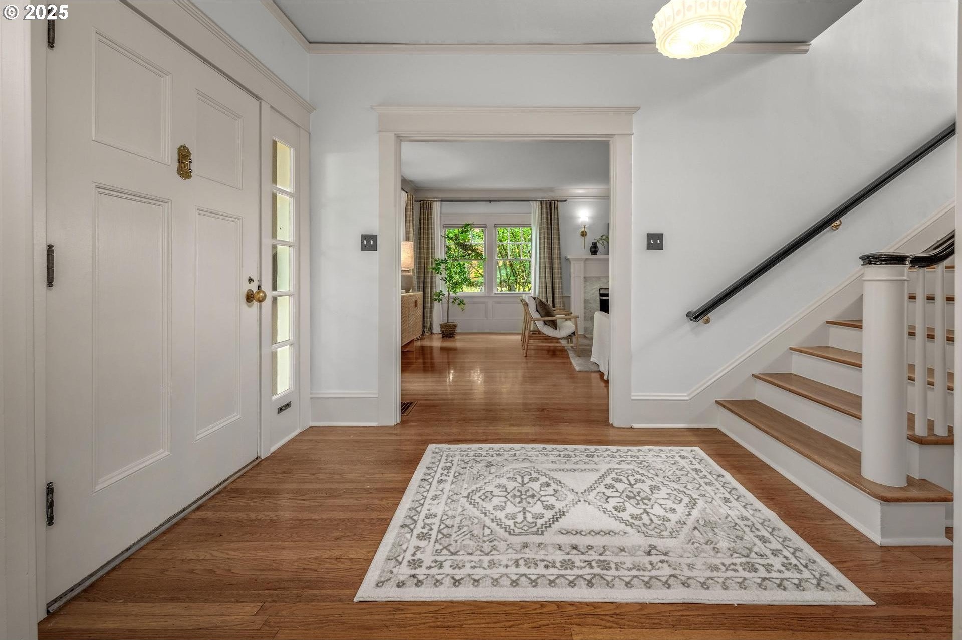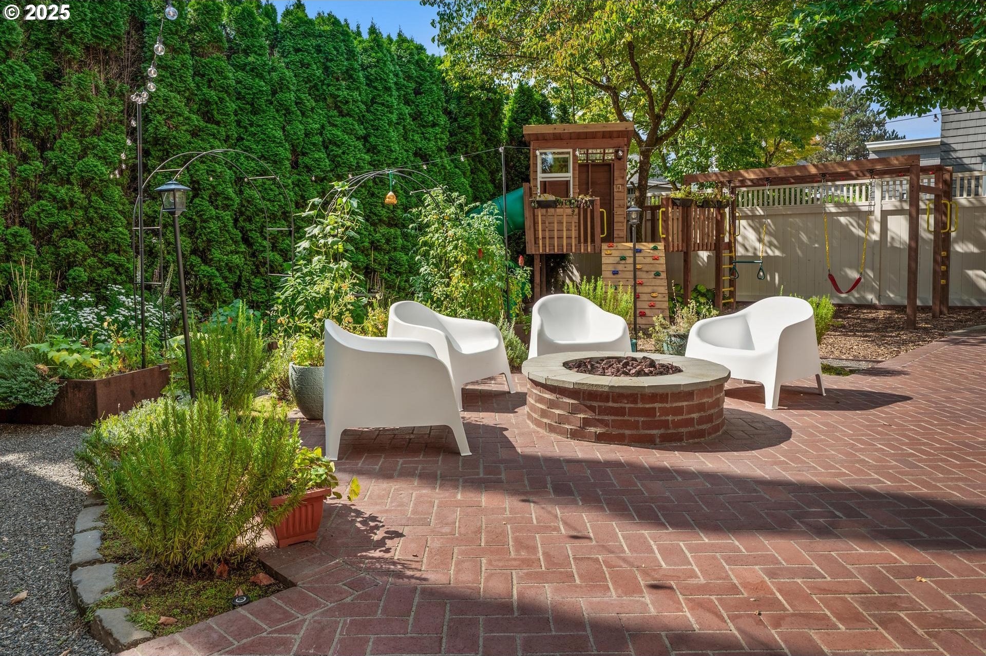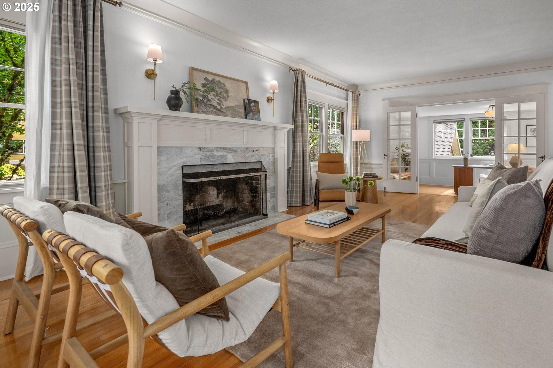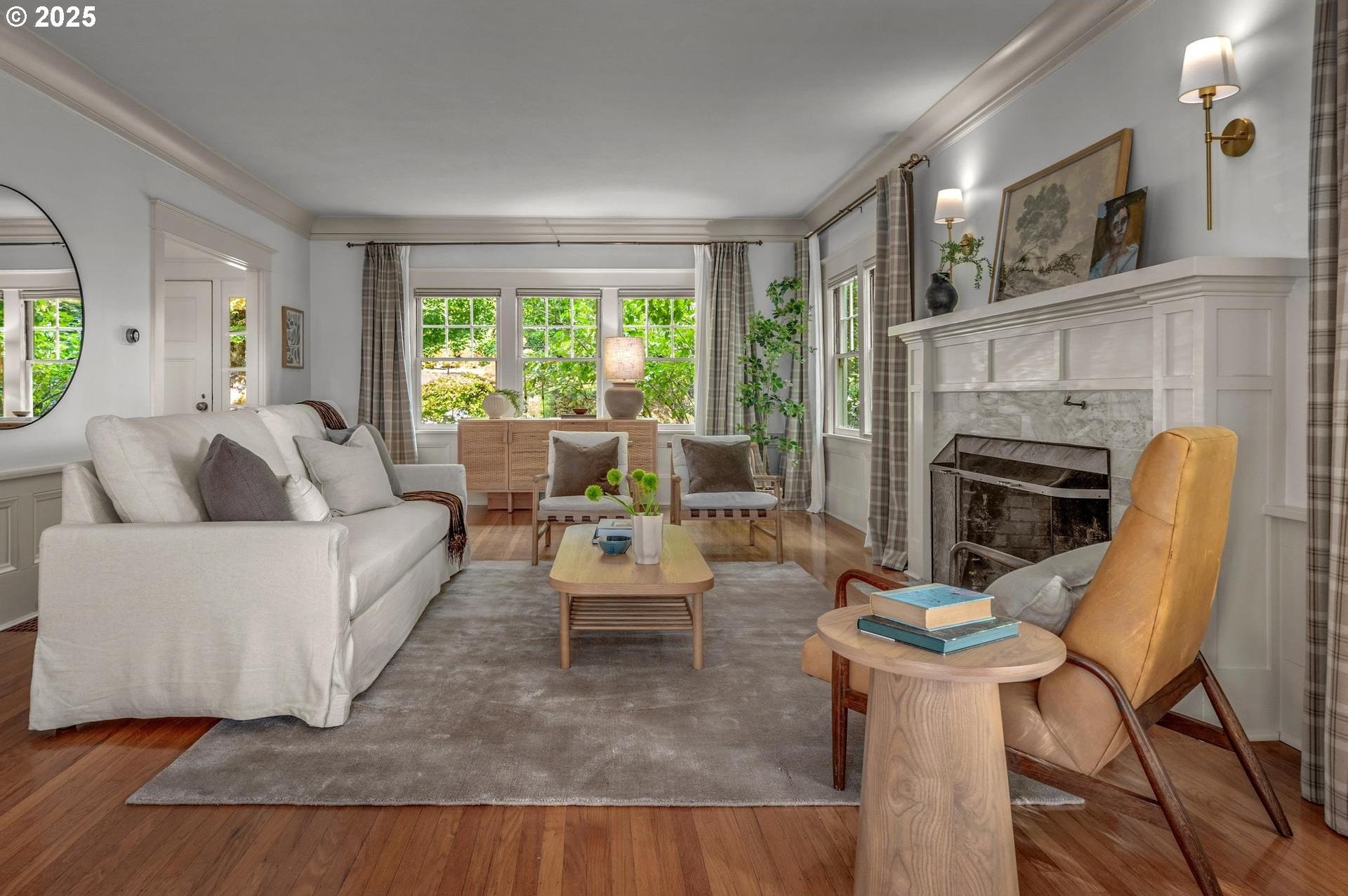Situated on an extraordinary corner lot in the coveted Laurelhurst neighborhood, this house oozes curb appeal. Walk up the front steps and through the front door and you won't be disappointed. You'll immediately notice the abundant natural light streaming through large multi-pane windows, highlighting original architectural details and rich hardwood floors. A spacious main level offers versatility: host dinner parties in the elegant dining room, enjoy quiet evenings by the fireplace, or flow easily into casual family spaces that connect seamlessly to the outdoors. Upstairs, generously sized bedrooms provide comfort and privacy, with thoughtful touches that make each room feel like a retreat. The timeless character continues with classic trim work, and beautiful lighting, unique to the time period the house was built. Outdoors, mature landscaping surrounds brick patios, a custom playhouse, and curated garden spaces, creating a private sanctuary for entertaining or unwinding. A built-in gas fire pit invites year-round gatherings, while tucked-away corners of the yard offer peaceful spots for play, gardening, or simply sipping your morning coffee in the sunshine. Located just blocks from beloved neighborhood parks, highly regarded schools, and a vibrant selection of local shops and restaurants, it embodies the perfect balance of historic architecture and everyday livability.*Google maps currently not showing correct house. [Home Energy Score = 1. HES Report at https://rpt.greenbuildingregistry.com/hes/OR10224740]