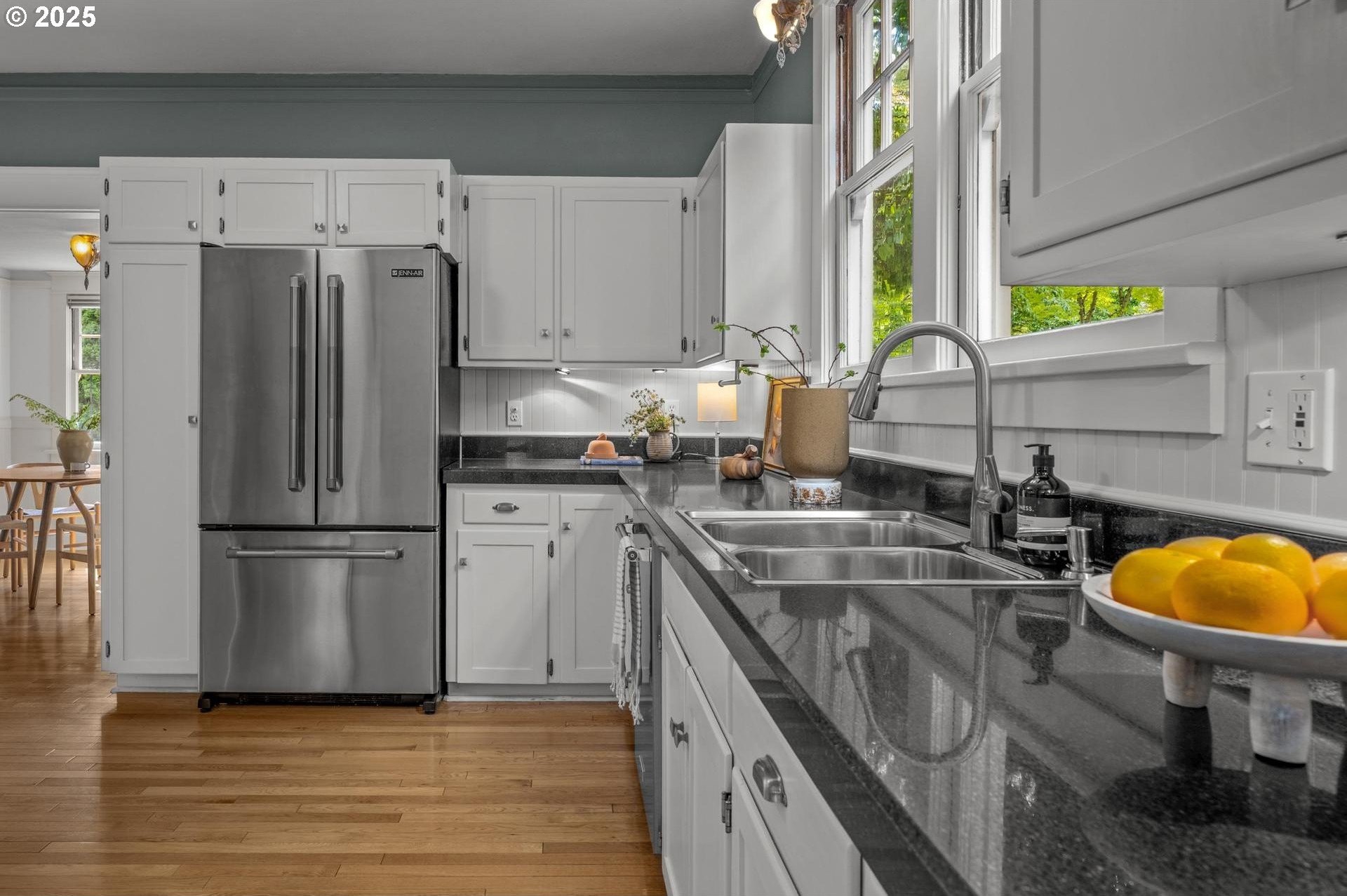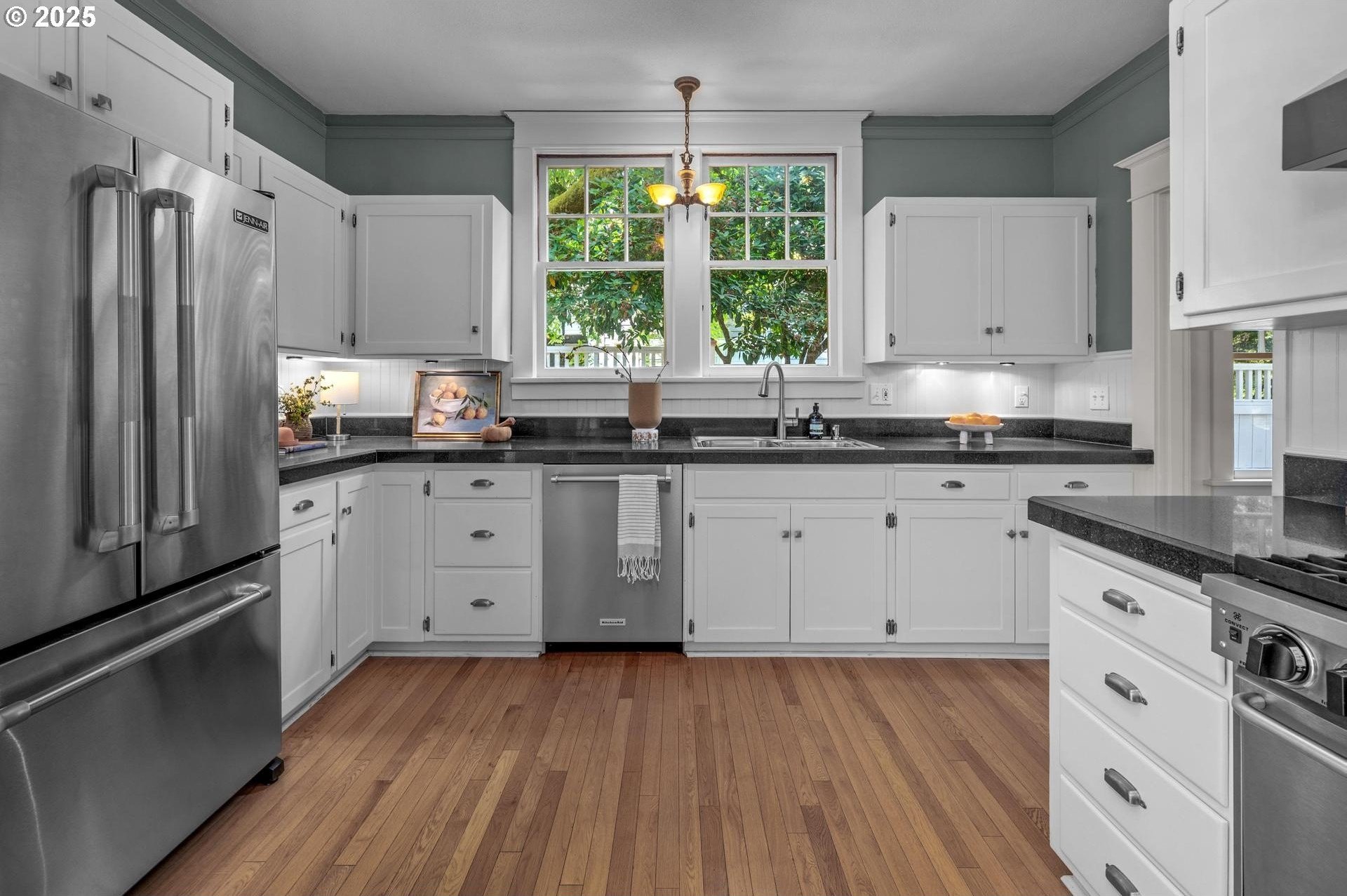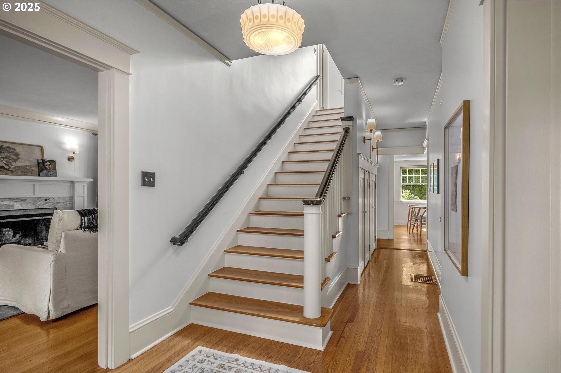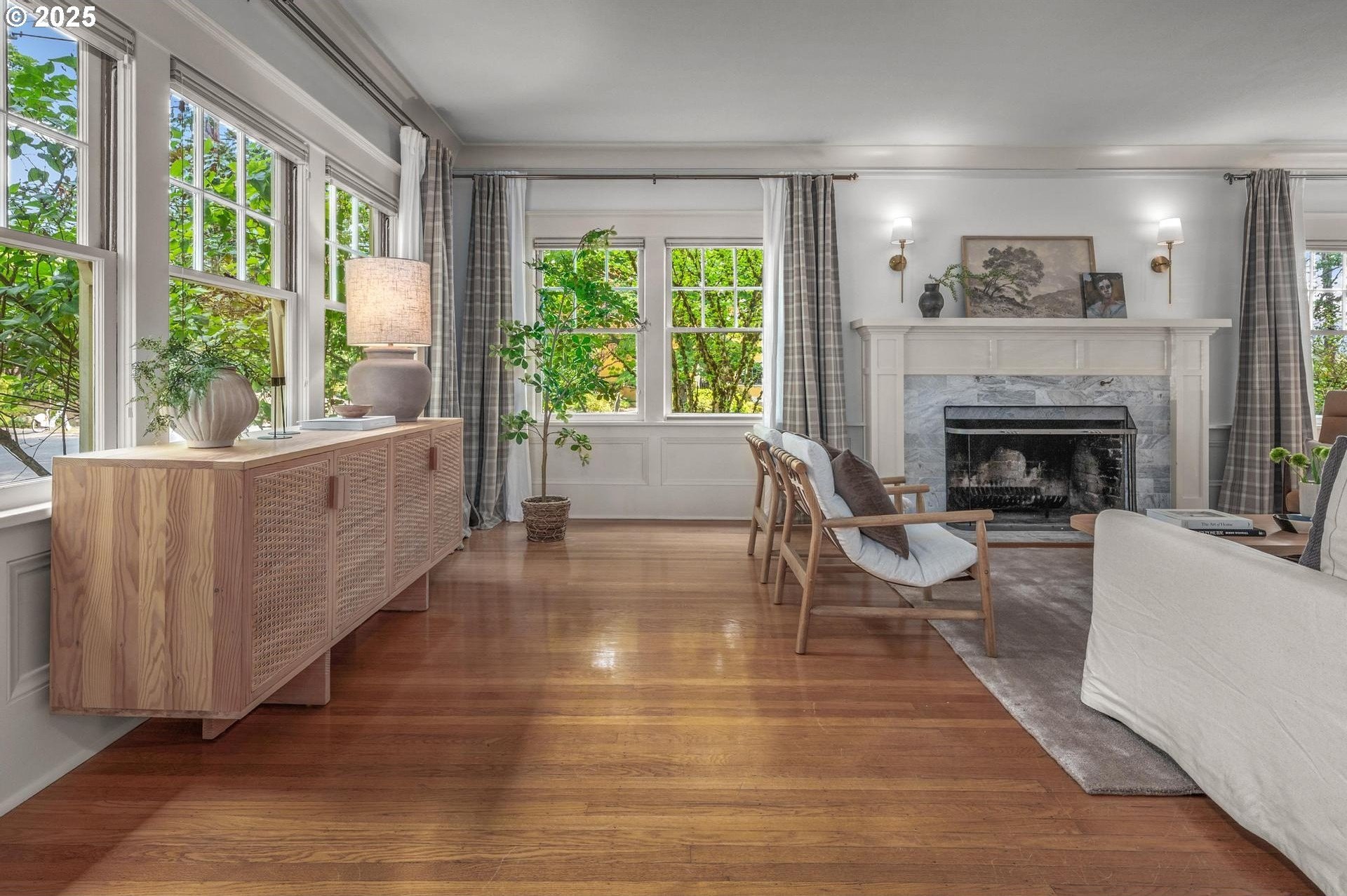 Situated on an extraordinary corner lot in the coveted Laurelhurst neighborhood, this house oozes curb appeal. Walk up the front steps and through the front door and you won't be disappointed. You'll immediately notice the abundant natural light streaming through large multi-pane windows, highlighting original architectural details and rich hardwood floors. A spacious main level offers versatility: host dinner parties in the elegant dining room, enjoy quiet evenings by the fireplace, or flow easily into casual family spaces that connect seamlessly to the outdoors. Upstairs, generously sized bedrooms provide comfort and privacy, with thoughtful touches that make each room feel like a retreat. The timeless character continues with classic trim work, and beautiful lighting, unique to the time period the house was built. Outdoors, mature landscaping surrounds brick patios, a custom playhouse, and curated garden spaces, creating a private sanctuary for entertaining or unwinding. A built-in gas fire pit invites year-round gatherings, while tucked-away corners of the yard offer peaceful spots for play, gardening, or simply sipping your morning coffee in the sunshine. Located just blocks from beloved neighborhood parks, highly regarded schools, and a vibrant selection of local shops and restaurants, it embodies the perfect balance of historic architecture and everyday livability.*Google maps currently not showing correct house. [Home Energy Score = 1. HES Report at https://rpt.greenbuildingregistry.com/hes/OR10224740]