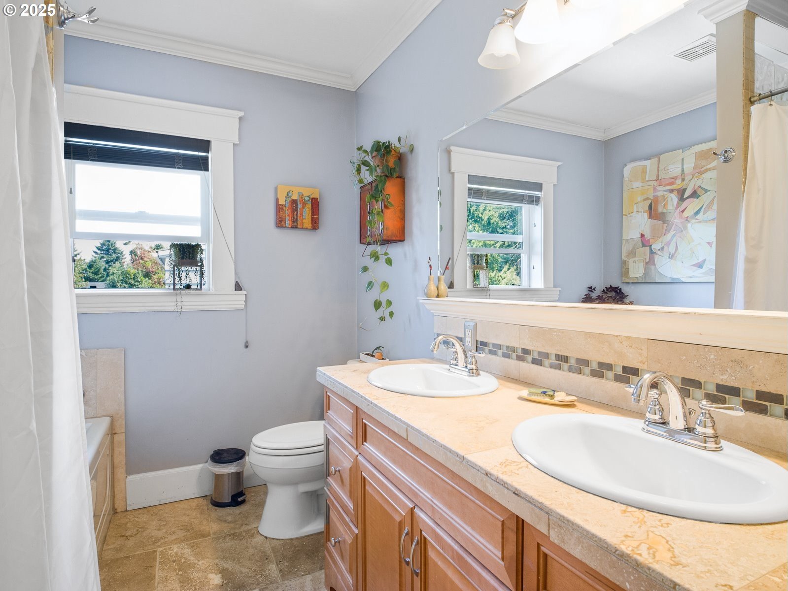 This stately home on a wide, quiet street exudes Old Portland charm and is ready for your finishing touches! The excellent layout and great bones shine through: notice the wonderful main floor circular layout, featuring a lovely entryway with soaring ceilings, formal living and dining rooms, a separate family room that's perfect for movie watching, a convenient guest bath, and a spacious eat-in kitchen with Corian counters, radiant floor heat, and views of the backyard. Upstairs, you'll find a rarity for a vintage home: a modern-feeling primary bedroom with ensuite bath with dual sinks, a soaking tub, and radiant floor heat, plus two more bedrooms and a hall bath. The unfinished full height basement with side entrance offers plenty of storage space, or explore creating additional living space in the future. Original wood floors and charming built-ins lend the home warmth and character, just bring your paintbrush and handy skills- with very little effort, this property will shine. The well-landscaped yard full of mature plants is a delight in all seasons! Enjoy living in desirable Piedmont, with gorgeous Peninsula Park and the fun shops and restaurants in the Dekum Triangle all mere blocks away. Walk score of 75, bike score of 98! [Home Energy Score = 1. HES Report at https://rpt.greenbuildingregistry.com/hes/OR10241650]