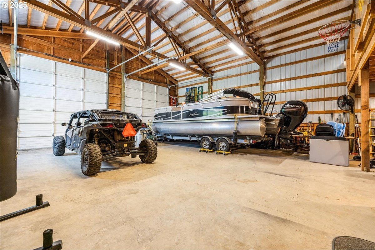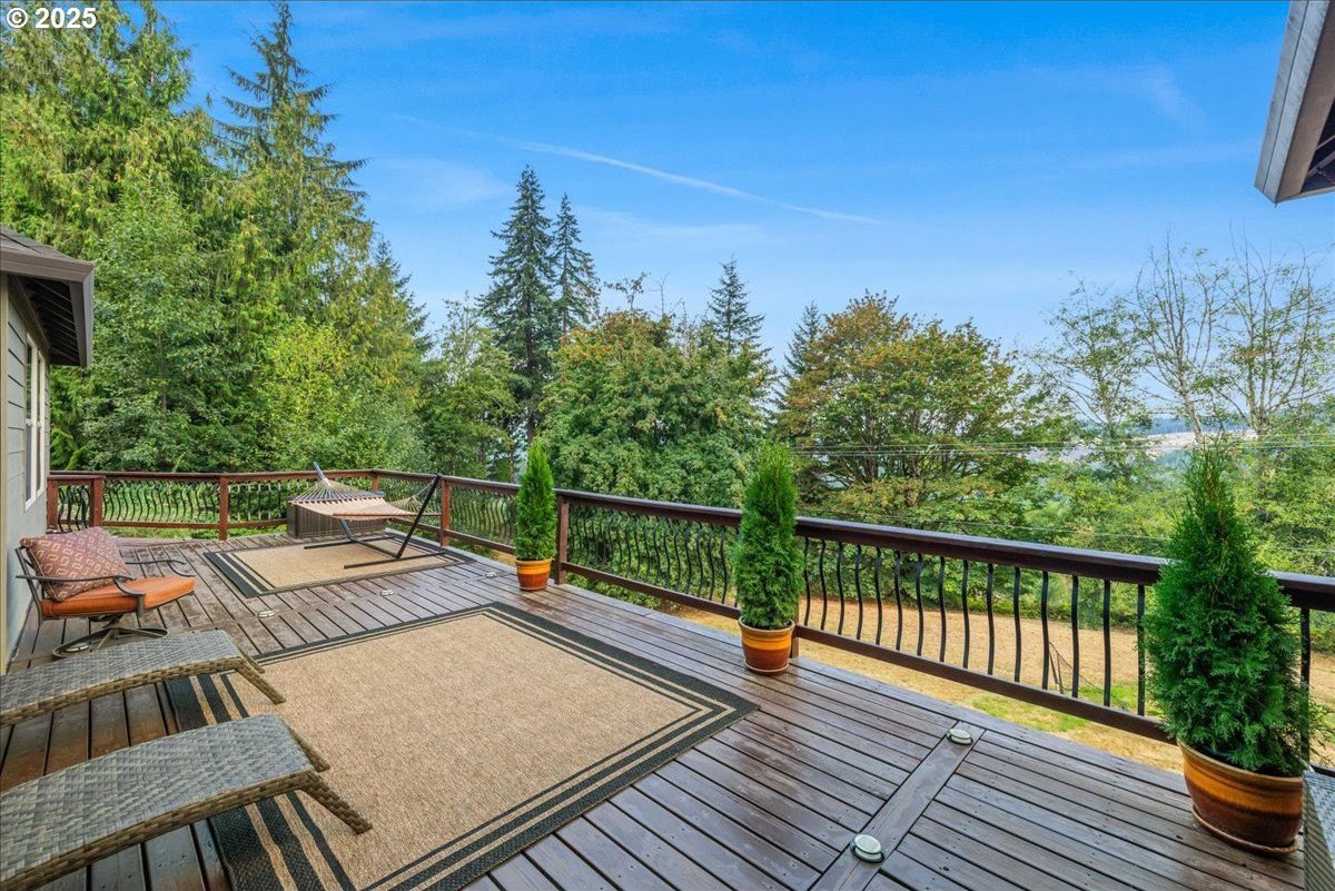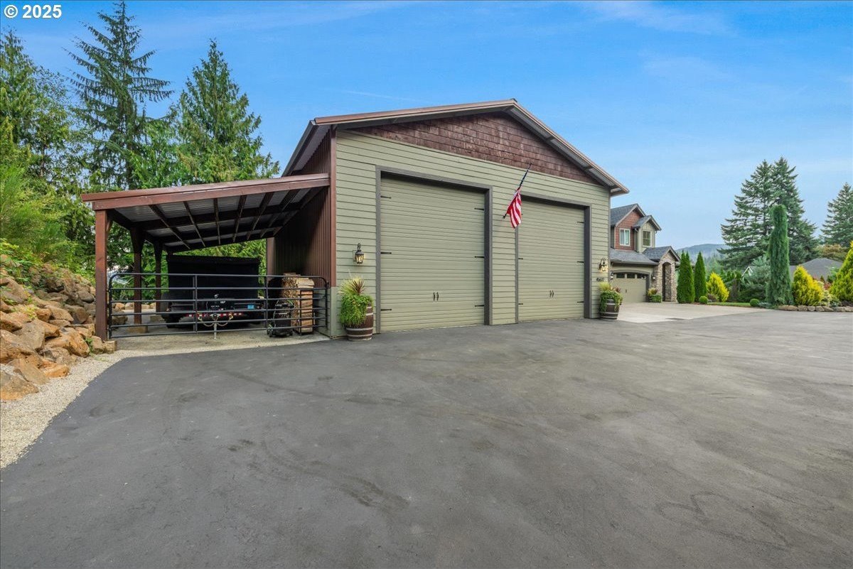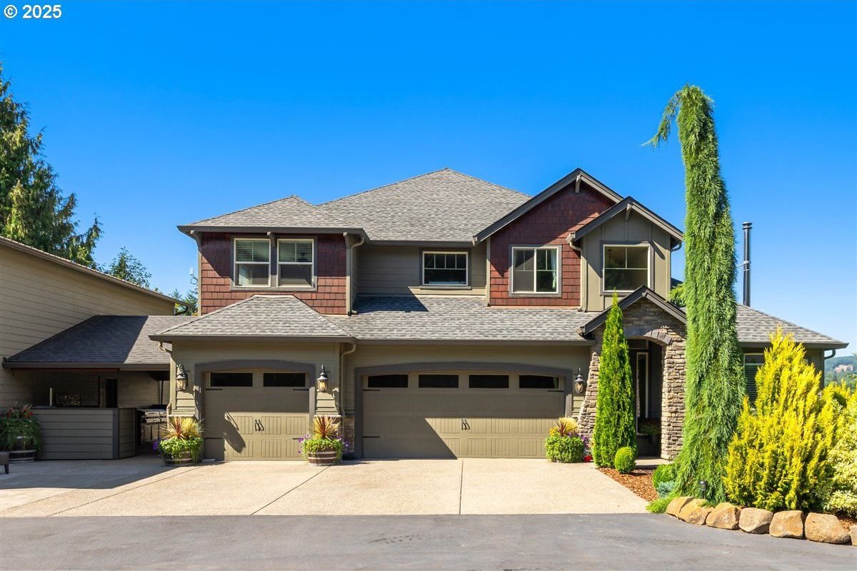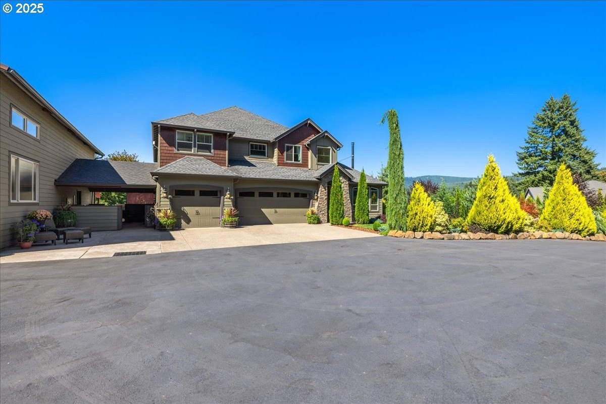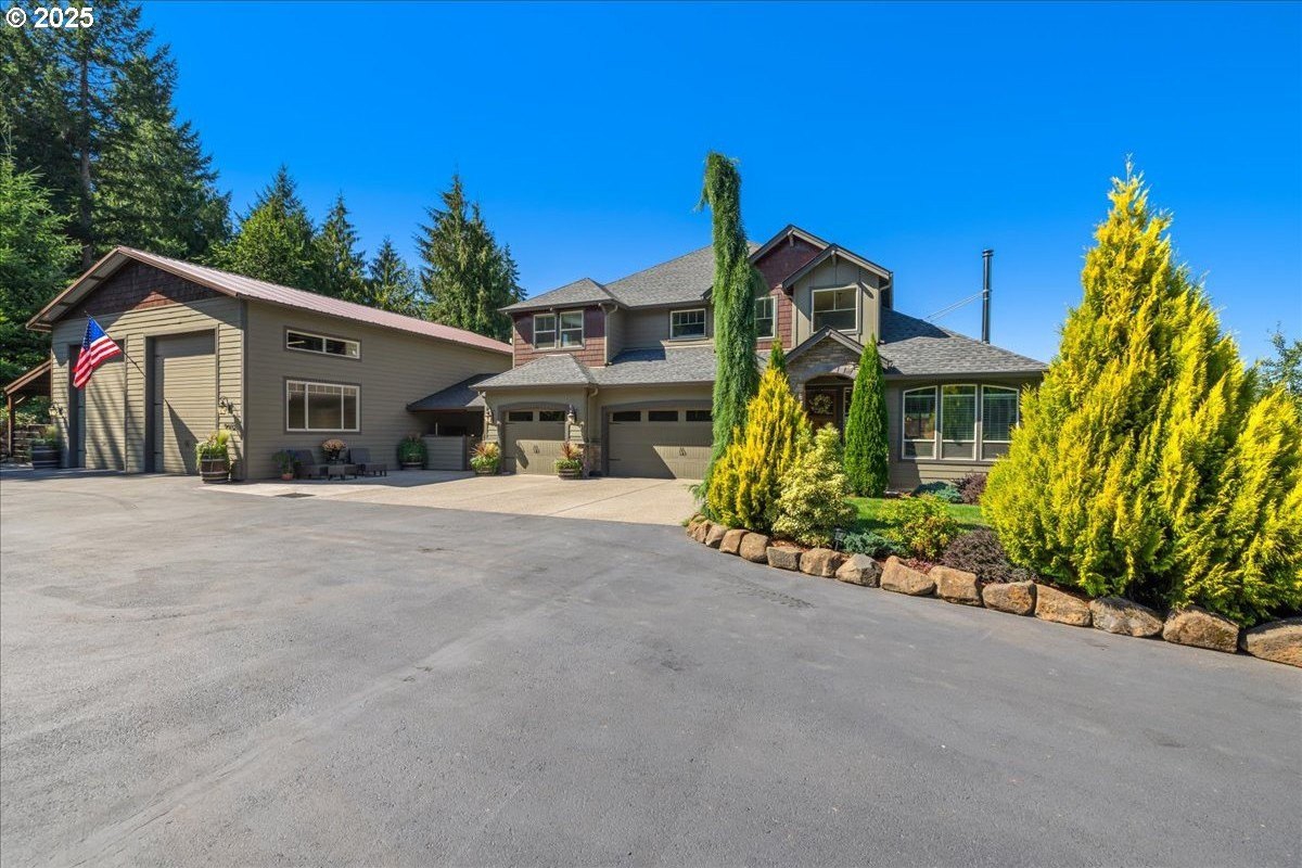 Experience elevated living in this entertainer's retreat, rooted in the spirit of the Pacific Northwest. Surrounded by trails, lush landscaping, and wide-open views, this home is made for hosting and built for living! Inside, tall ceilings, detailed millwork, and thoughtful finishes create spaces that feel refined and welcoming. As you enter, the wood stove creates a cozy ambiance to keep you warm all winter long. The chef’s kitchen is designed for gathering, featuring knotty cabinetry, granite tile counters, double ovens, gas range, coffee bar, and a walk-in butlers pantry. The main floor primary suite offers a soaking tub, dual shower heads, and a custom walk-in closet with private laundry. A large bonus room adds flexibility, perfect for movie nights, play, or a home studio. From summer evenings to hobbies and hosting, the outdoors has it all! A 24x14 covered kitchen featuring grills, sink, built-in storage, and mounted TV, for a versatile outdoor retreat. An oversized deck with retractable awning, covered hot tub, separate covered outdoor bar with neighboring firepit, and a full playground create spaces to enjoy year-round. Cherry and apple trees, manicured landscaping with full irrigation, and surrounding arborvitae give privacy for a serene setting. The 38x48 shop provides versatility, offering oversized RV or boat doors, loft storage, built-in racks, electricity, and private office. Covered RV parking, wood storage, garage built-ins, and fully paved driveway ensure everything has its place. Additional upgrades include a whole-home fire suppression and sprinkler system, generator hookup, well with water softener & iron filtration. A secure gated entry provides an estate-like feel. Here, you’re never far from what makes the Northwest special with miles of equestrian and ATV trails, the Banks-Vernonia Trail, local markets, and the quiet charm of small-town living, all within easy reach of the city. Luxury, leisure, and lifestyle all in one place.