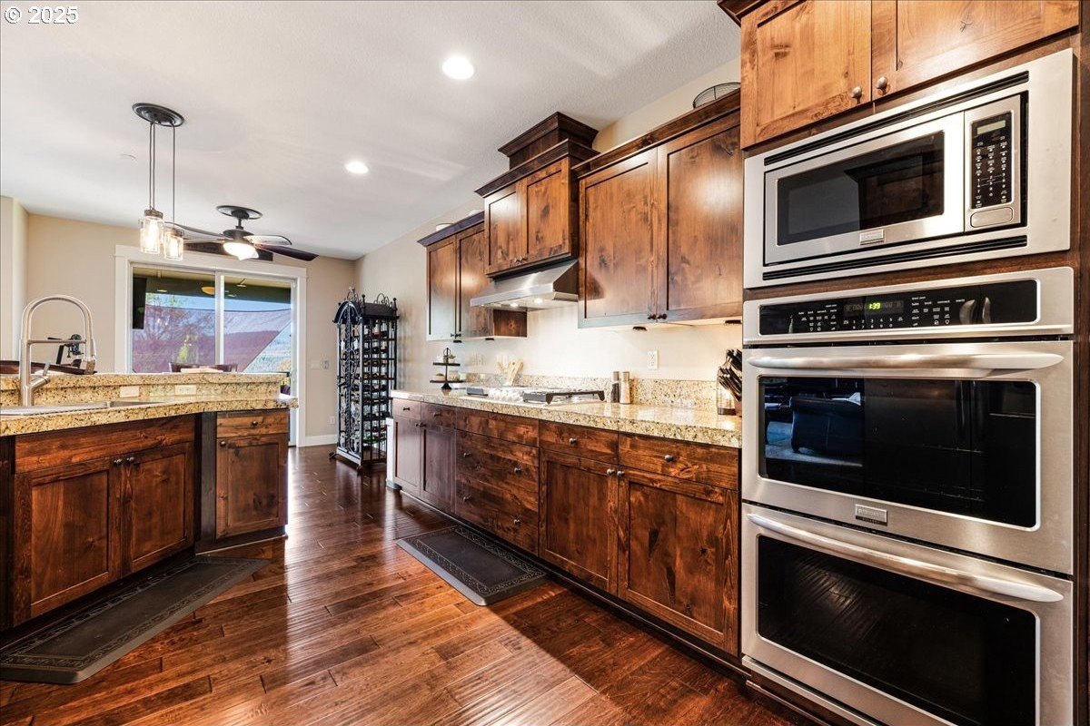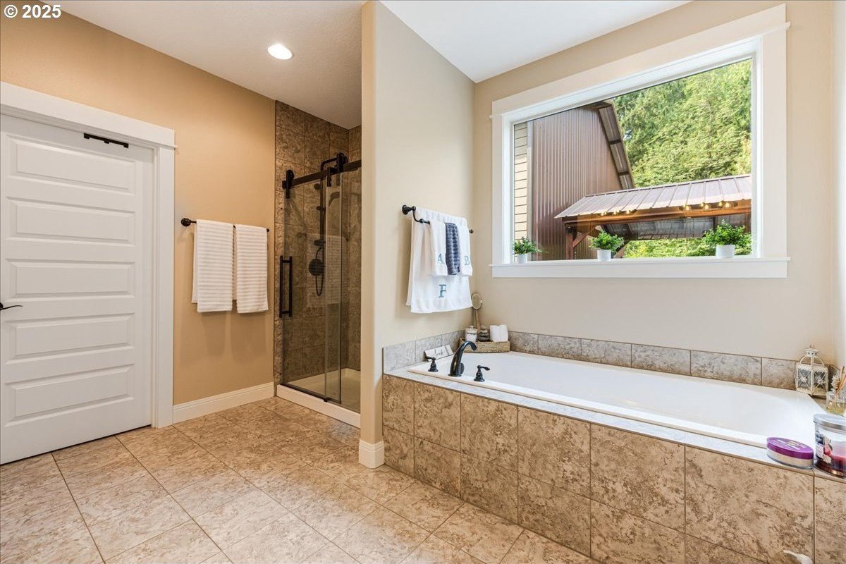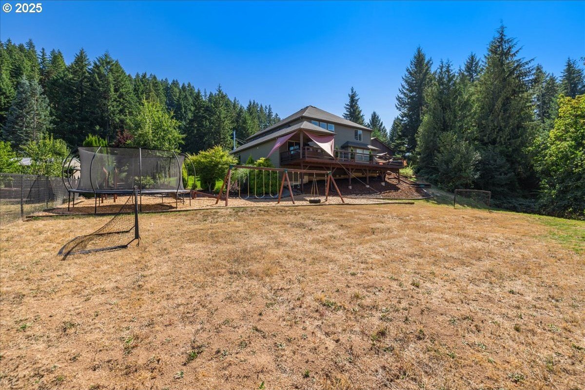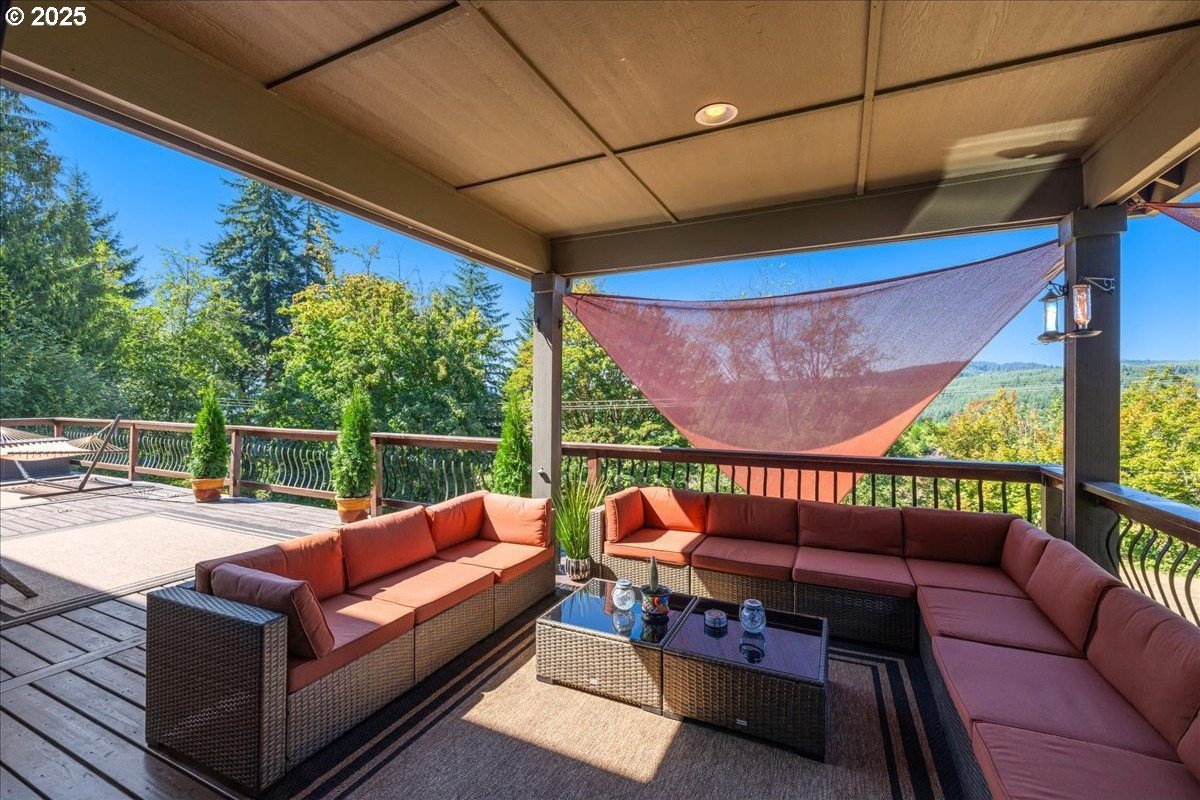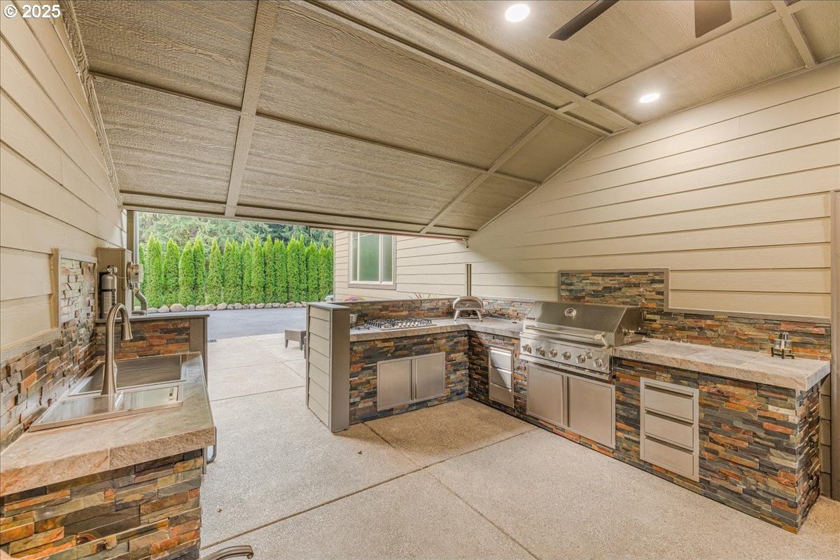 Experience elevated living in this entertainer's retreat, rooted in the spirit of the Pacific Northwest. Surrounded by trails, lush landscaping, and wide-open views, this home is made for hosting and built for living! Inside, tall ceilings, detailed millwork, and thoughtful finishes create spaces that feel refined and welcoming. As you enter, the wood stove creates a cozy ambiance to keep you warm all winter long. The chef’s kitchen is designed for gathering, featuring knotty cabinetry, granite tile counters, double ovens, gas range, coffee bar, and a walk-in butlers pantry. The main floor primary suite offers a soaking tub, dual shower heads, and a custom walk-in closet with private laundry. A large bonus room adds flexibility, perfect for movie nights, play, or a home studio. From summer evenings to hobbies and hosting, the outdoors has it all! A 24x14 covered kitchen featuring grills, sink, built-in storage, and mounted TV, for a versatile outdoor retreat. An oversized deck with retractable awning, covered hot tub, separate covered outdoor bar with neighboring firepit, and a full playground create spaces to enjoy year-round. Cherry and apple trees, manicured landscaping with full irrigation, and surrounding arborvitae give privacy for a serene setting. The 38x48 shop provides versatility, offering oversized RV or boat doors, loft storage, built-in racks, electricity, and private office. Covered RV parking, wood storage, garage built-ins, and fully paved driveway ensure everything has its place. Additional upgrades include a whole-home fire suppression and sprinkler system, generator hookup, well with water softener & iron filtration. A secure gated entry provides an estate-like feel. Here, you’re never far from what makes the Northwest special with miles of equestrian and ATV trails, the Banks-Vernonia Trail, local markets, and the quiet charm of small-town living, all within easy reach of the city. Luxury, leisure, and lifestyle all in one place.