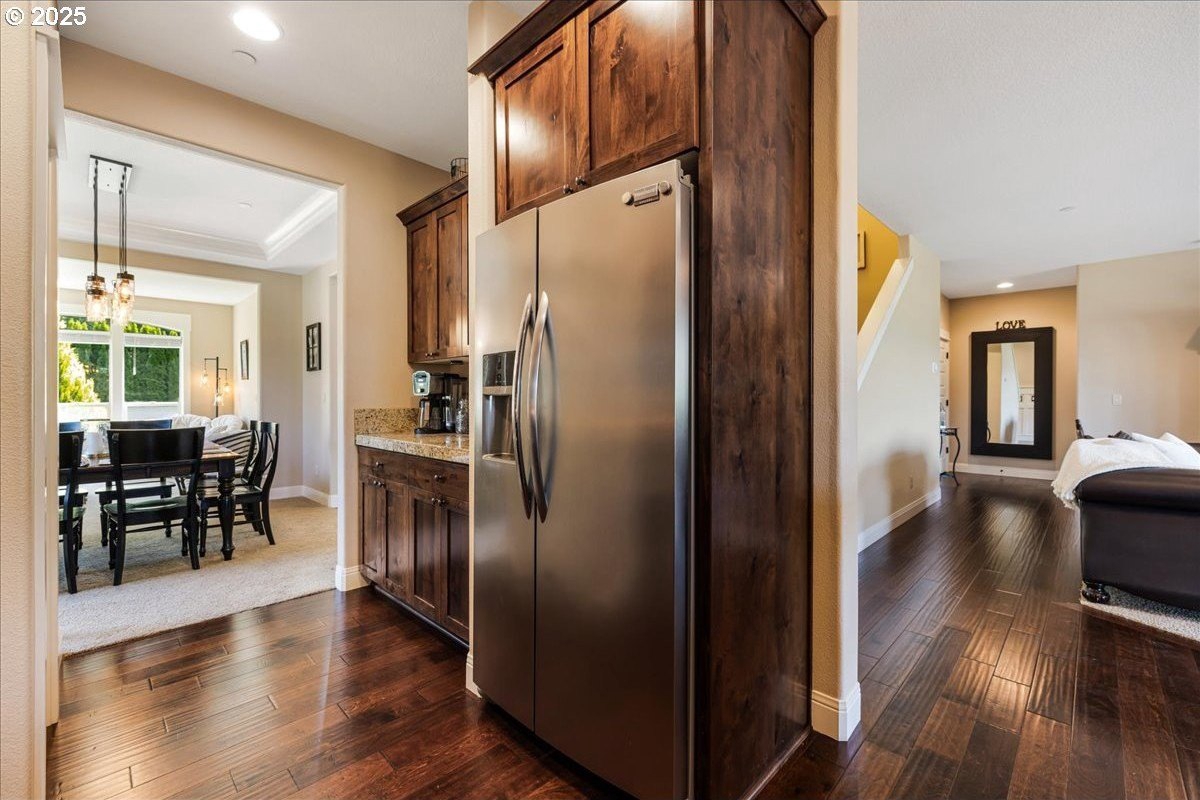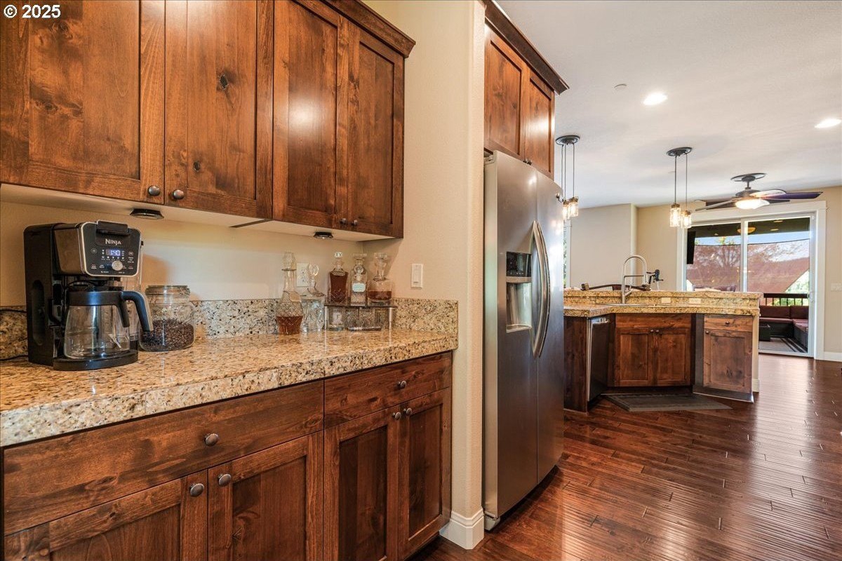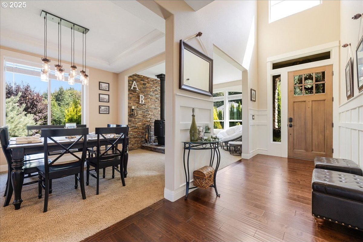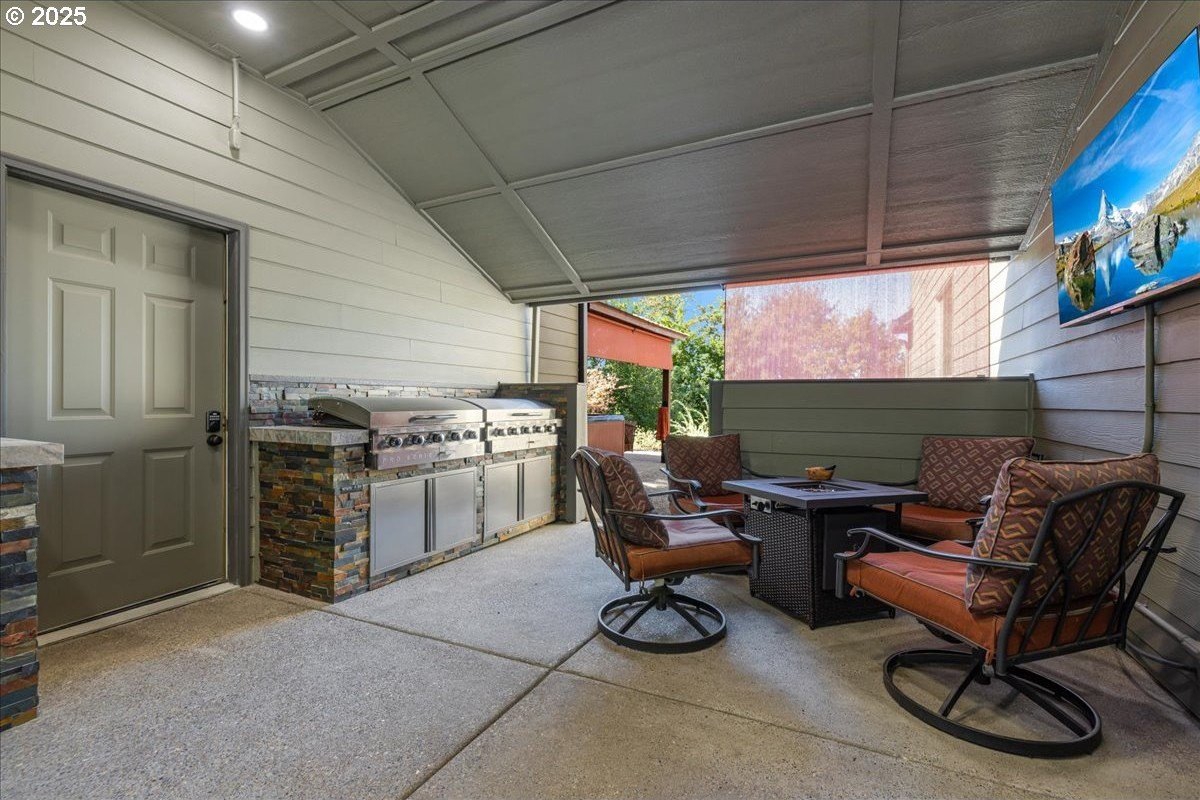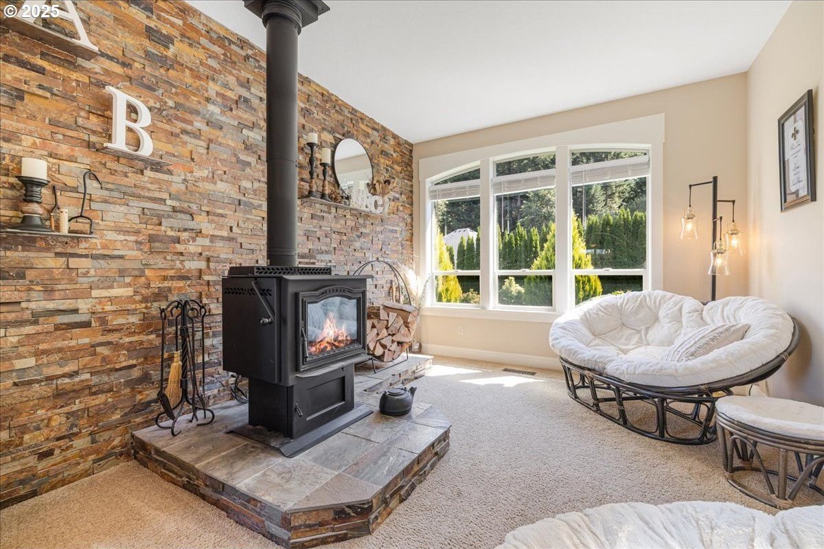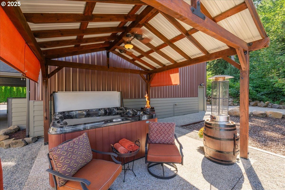 Experience elevated living in this entertainer's retreat, rooted in the spirit of the Pacific Northwest. Surrounded by trails, lush landscaping, and wide-open views, this home is made for hosting and built for living! Inside, tall ceilings, detailed millwork, and thoughtful finishes create spaces that feel refined and welcoming. As you enter, the wood stove creates a cozy ambiance to keep you warm all winter long. The chef’s kitchen is designed for gathering, featuring knotty cabinetry, granite tile counters, double ovens, gas range, coffee bar, and a walk-in butlers pantry. The main floor primary suite offers a soaking tub, dual shower heads, and a custom walk-in closet with private laundry. A large bonus room adds flexibility, perfect for movie nights, play, or a home studio. From summer evenings to hobbies and hosting, the outdoors has it all! A 24x14 covered kitchen featuring grills, sink, built-in storage, and mounted TV, for a versatile outdoor retreat. An oversized deck with retractable awning, covered hot tub, separate covered outdoor bar with neighboring firepit, and a full playground create spaces to enjoy year-round. Cherry and apple trees, manicured landscaping with full irrigation, and surrounding arborvitae give privacy for a serene setting. The 38x48 shop provides versatility, offering oversized RV or boat doors, loft storage, built-in racks, electricity, and private office. Covered RV parking, wood storage, garage built-ins, and fully paved driveway ensure everything has its place. Additional upgrades include a whole-home fire suppression and sprinkler system, generator hookup, well with water softener & iron filtration. A secure gated entry provides an estate-like feel. Here, you’re never far from what makes the Northwest special with miles of equestrian and ATV trails, the Banks-Vernonia Trail, local markets, and the quiet charm of small-town living, all within easy reach of the city. Luxury, leisure, and lifestyle all in one place.