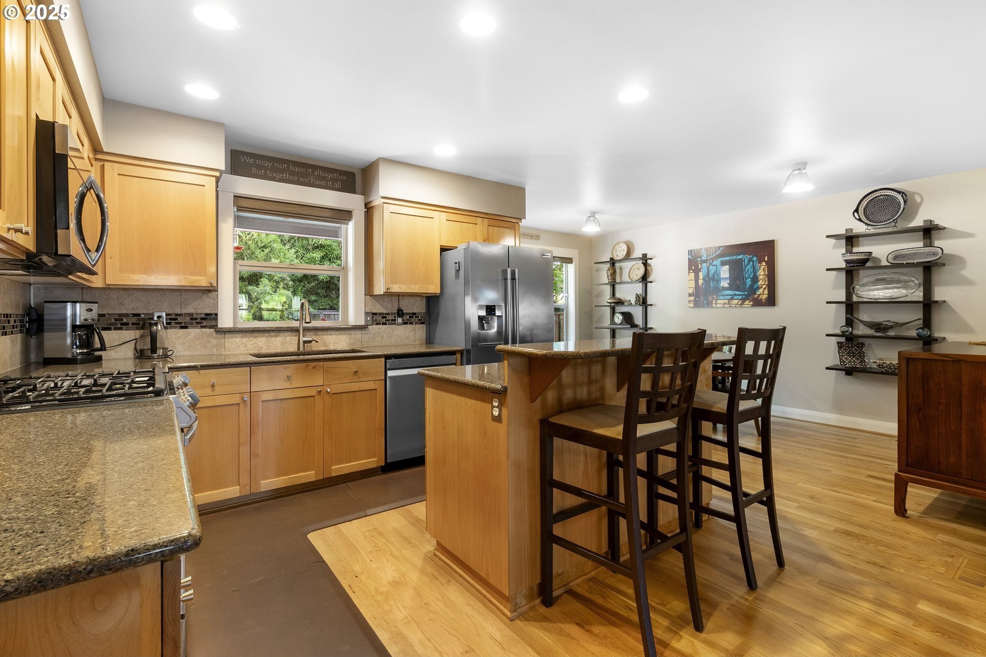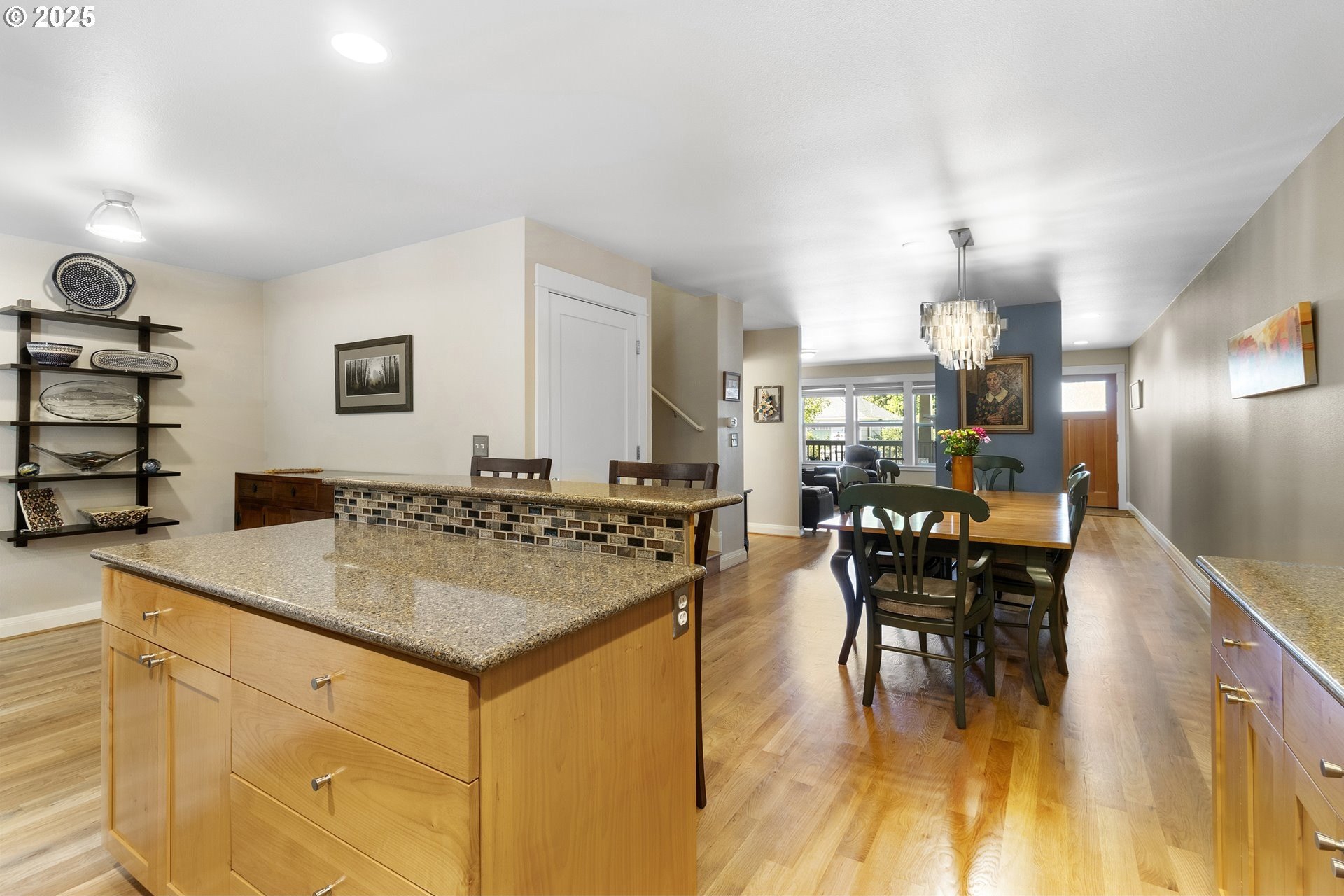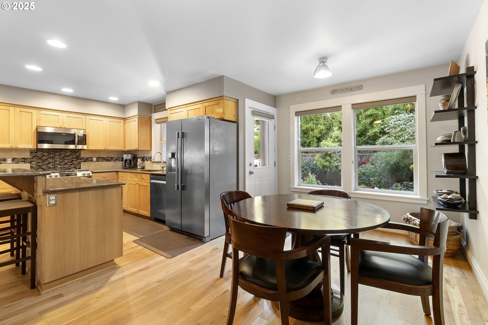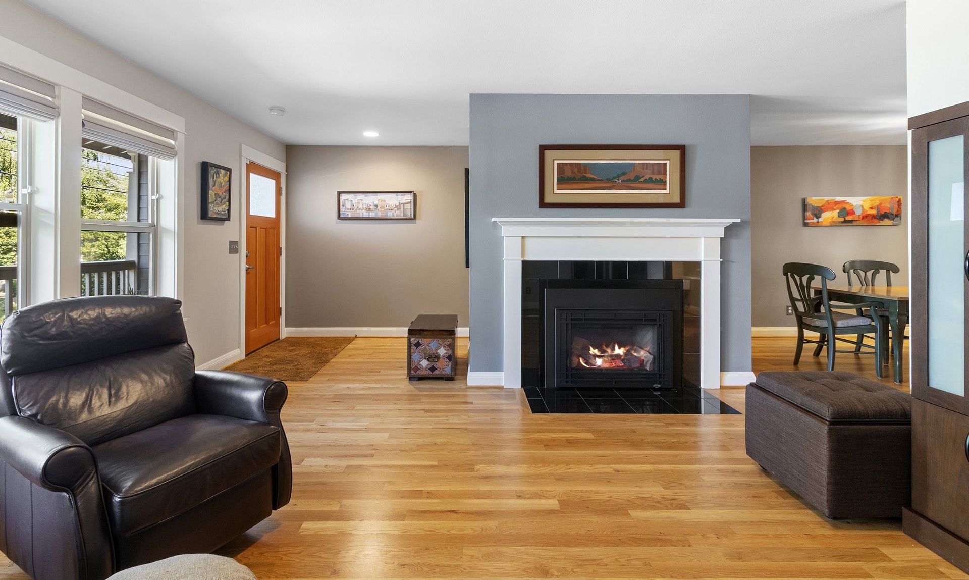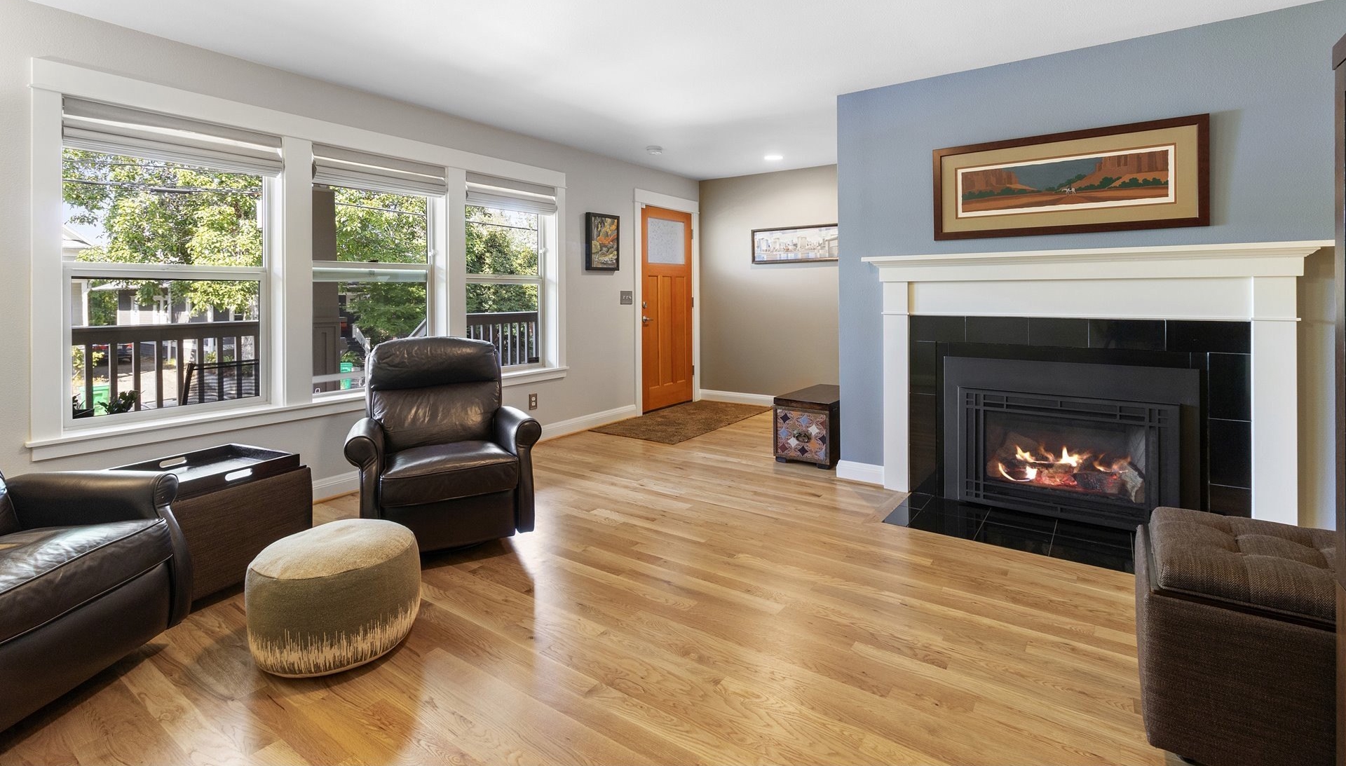 Pride of ownership shines in this gorgeous home offering 2,534 square feet of thoughtfully designed living space. 3 bedrooms and 2.1 bathrooms, this home is located in a highly desirable inner NE neighborhood with great schools. Large living room with hardwoods and gas fireplace.Rare energy score of 8! The expansive open kitchen is ideal for entertaining, quartz countertops, generous counter space that flows seamlessly into the family and dining rooms. Spotless hickory and oak flooring. The vaulted primary suite includes a walk-in closet, carpet, and a full bathroom with storage. Additional built in office room is perfect for working from home. Quality upgrades throughout include a Trex deck, central air, laundry chute, newer appliances, carpets upstairs, and more. Don't miss the tuck under spotless garage! Enjoy the privacy of a fully fenced backyard with mature landscaping, a charming front porch with sun shade, plus driveway parking. The lower level comes complete with an outside entry to the back yard, abundant storage, plus a huge bonus room. Located just blocks from Irving and Two Plum Parks, shopping, and top- rated restaurants! This home is a rare blend of comfort, style, and location. Excellent walkability and bikeability—earning a 97 Bike Score and 89 Walk Score. [Home Energy Score = 8. HES Report at https://rpt.greenbuildingregistry.com/hes/OR10241641]