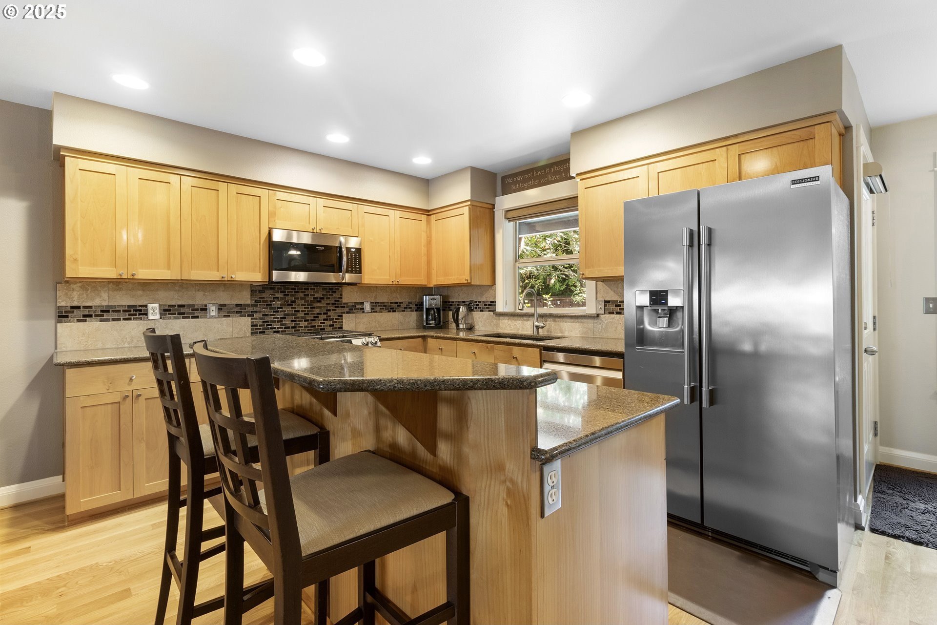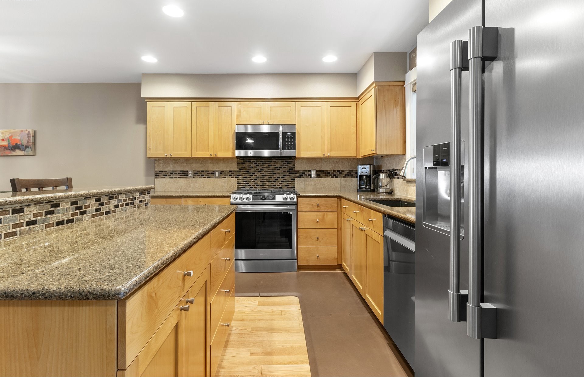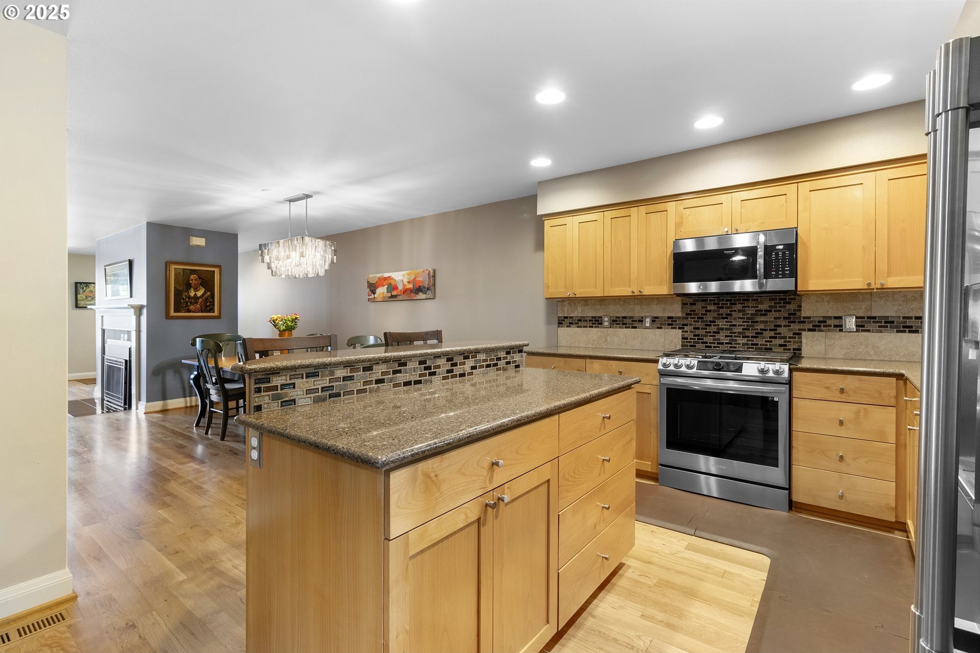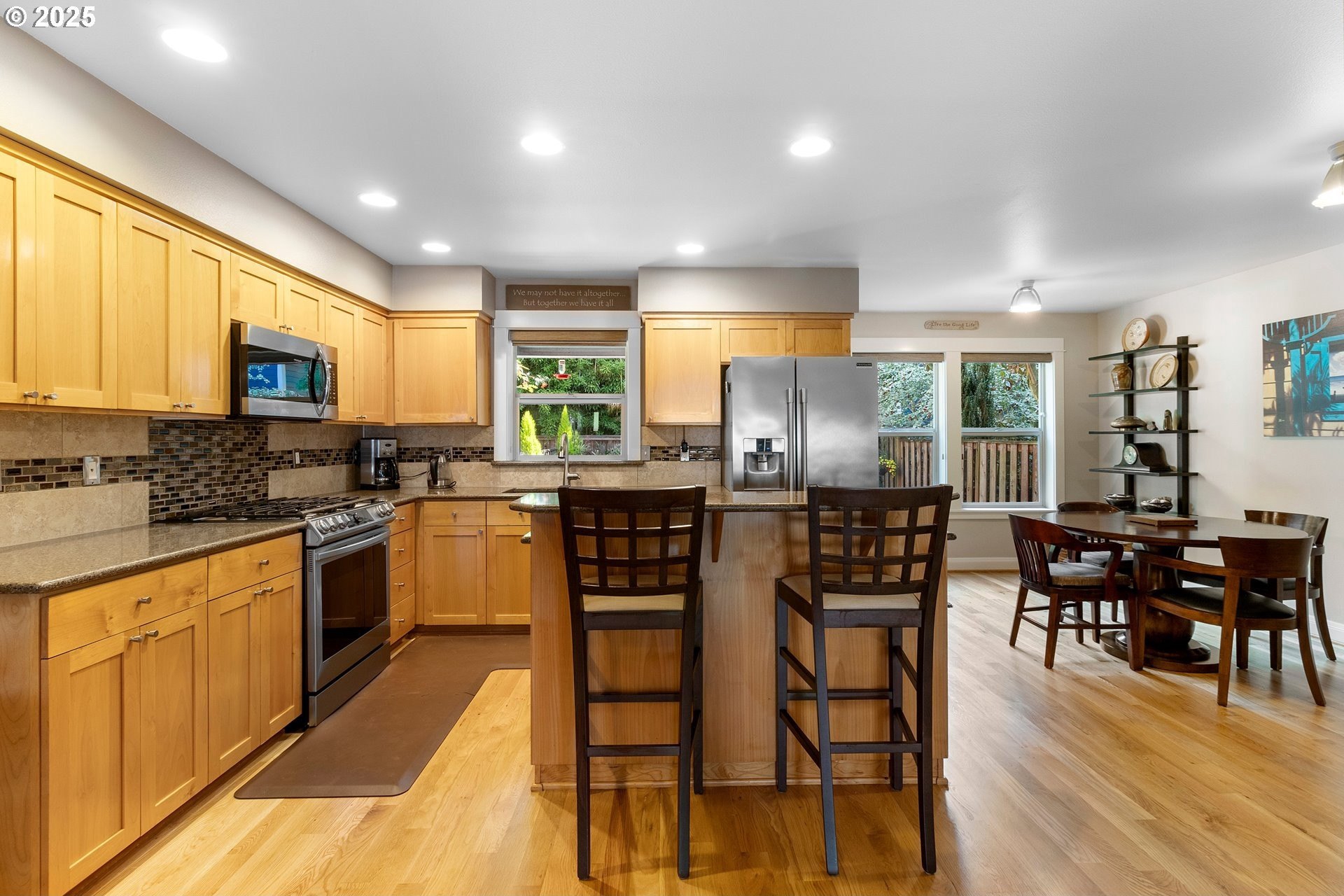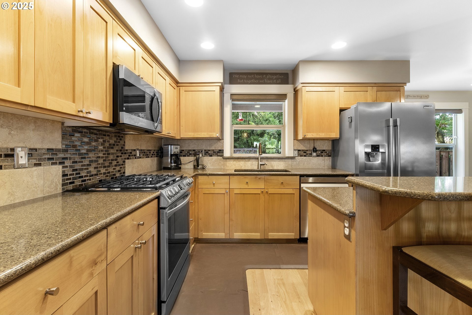 Pride of ownership shines in this gorgeous home offering 2,534 square feet of thoughtfully designed living space. 3 bedrooms and 2.1 bathrooms, this home is located in a highly desirable inner NE neighborhood with great schools. Large living room with hardwoods and gas fireplace.Rare energy score of 8! The expansive open kitchen is ideal for entertaining, quartz countertops, generous counter space that flows seamlessly into the family and dining rooms. Spotless hickory and oak flooring. The vaulted primary suite includes a walk-in closet, carpet, and a full bathroom with storage. Additional built in office room is perfect for working from home. Quality upgrades throughout include a Trex deck, central air, laundry chute, newer appliances, carpets upstairs, and more. Don't miss the tuck under spotless garage! Enjoy the privacy of a fully fenced backyard with mature landscaping, a charming front porch with sun shade, plus driveway parking. The lower level comes complete with an outside entry to the back yard, abundant storage, plus a huge bonus room. Located just blocks from Irving and Two Plum Parks, shopping, and top- rated restaurants! This home is a rare blend of comfort, style, and location. Excellent walkability and bikeability—earning a 97 Bike Score and 89 Walk Score. [Home Energy Score = 8. HES Report at https://rpt.greenbuildingregistry.com/hes/OR10241641]