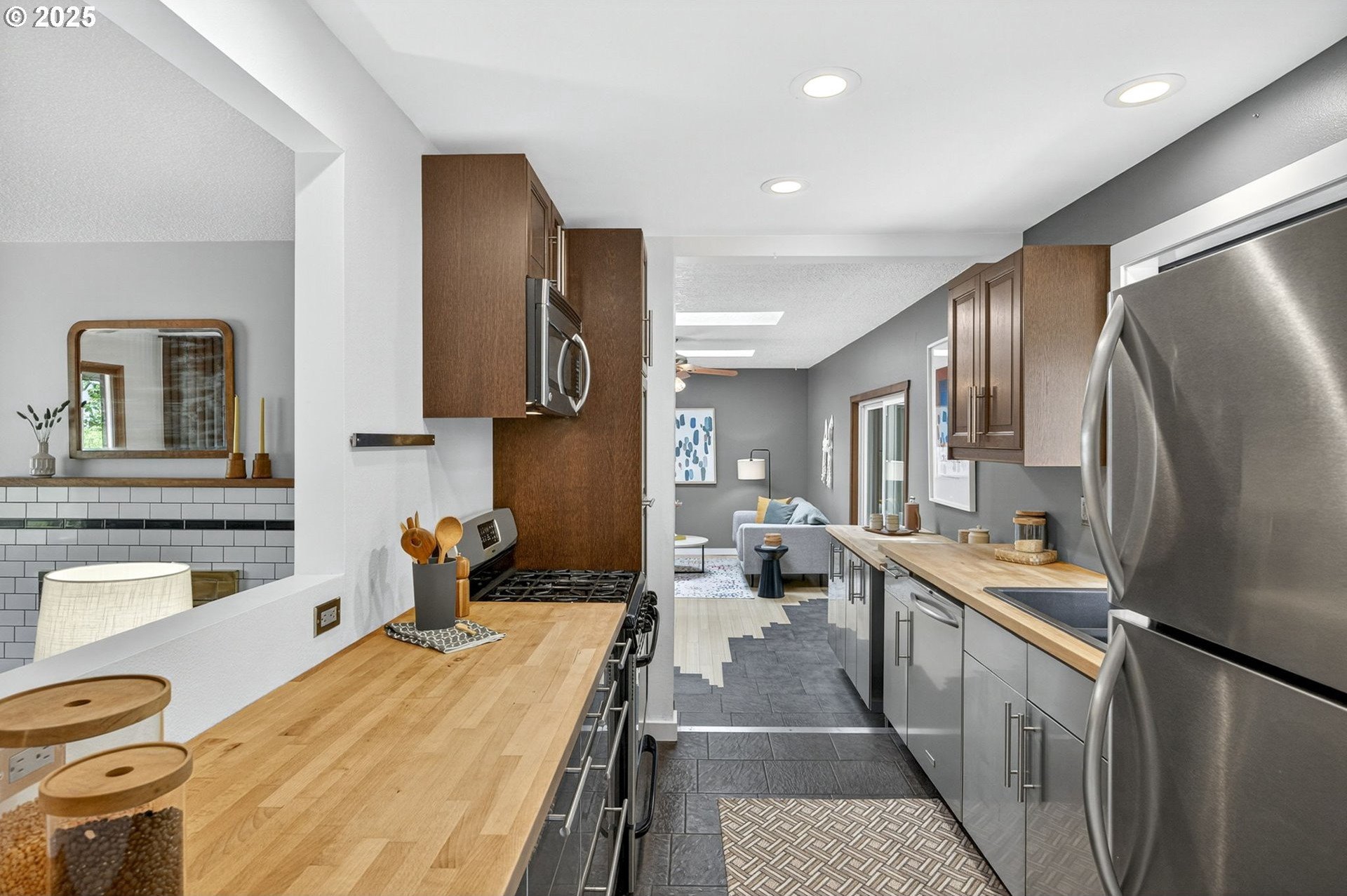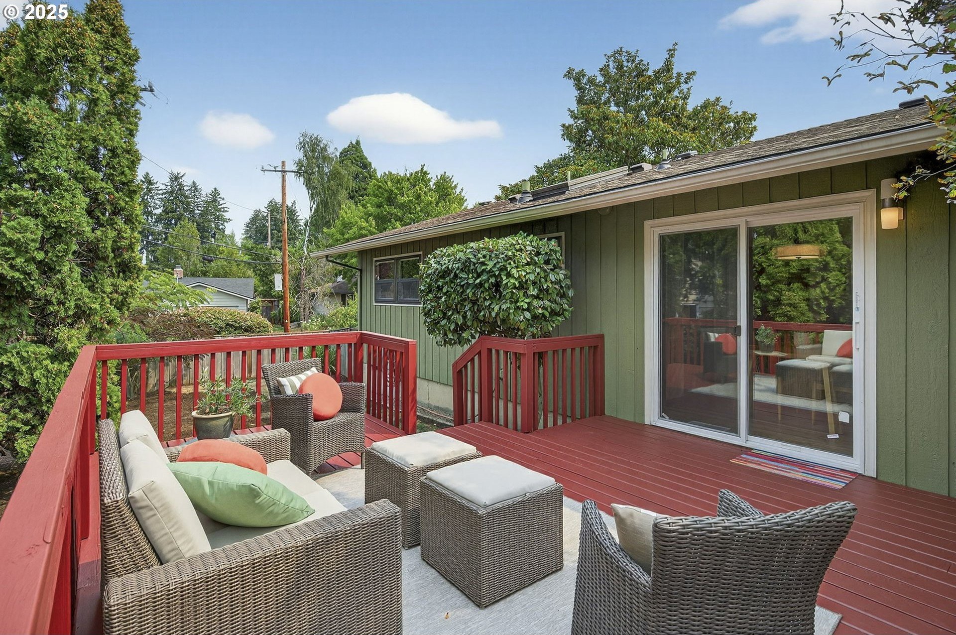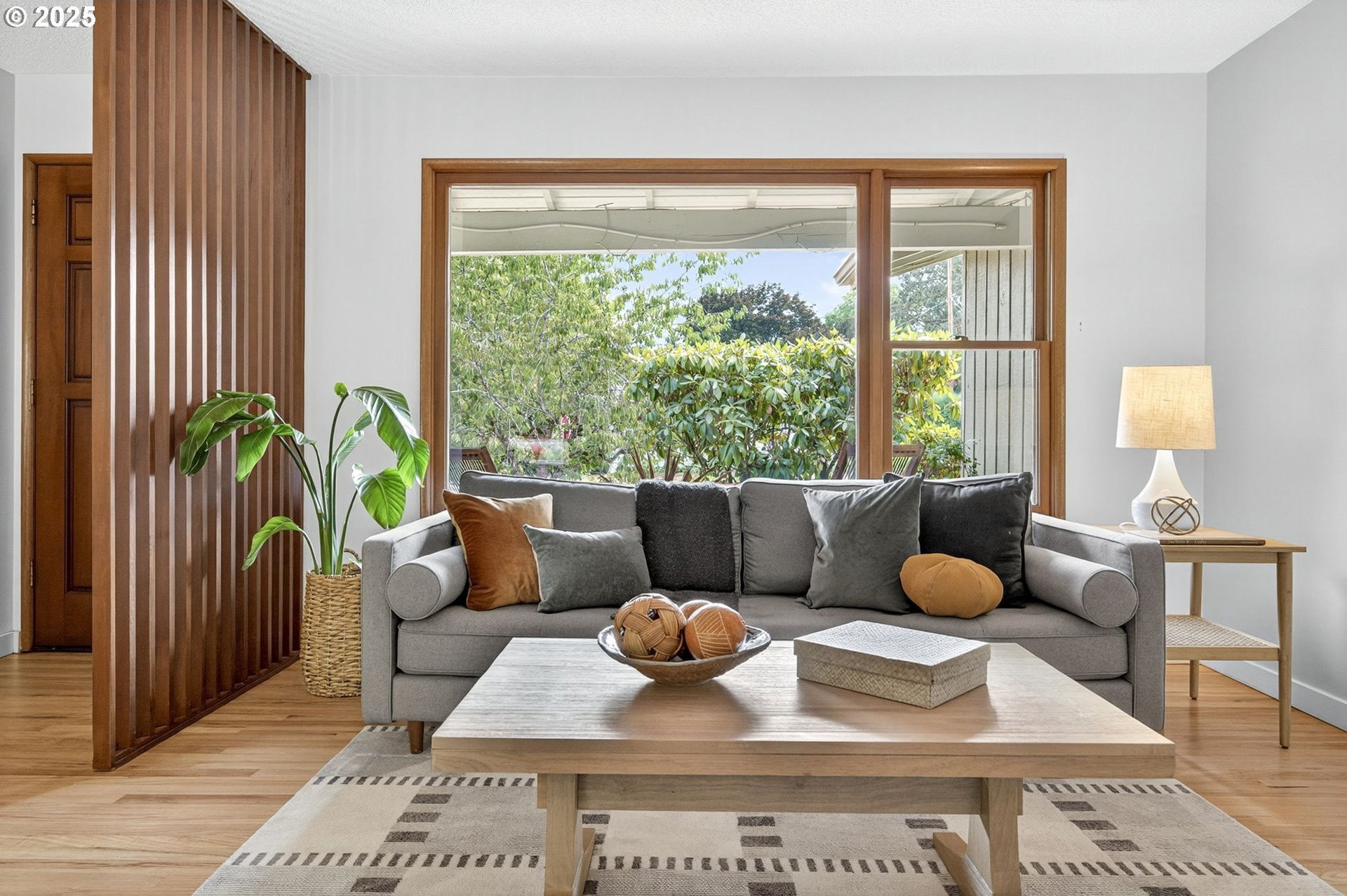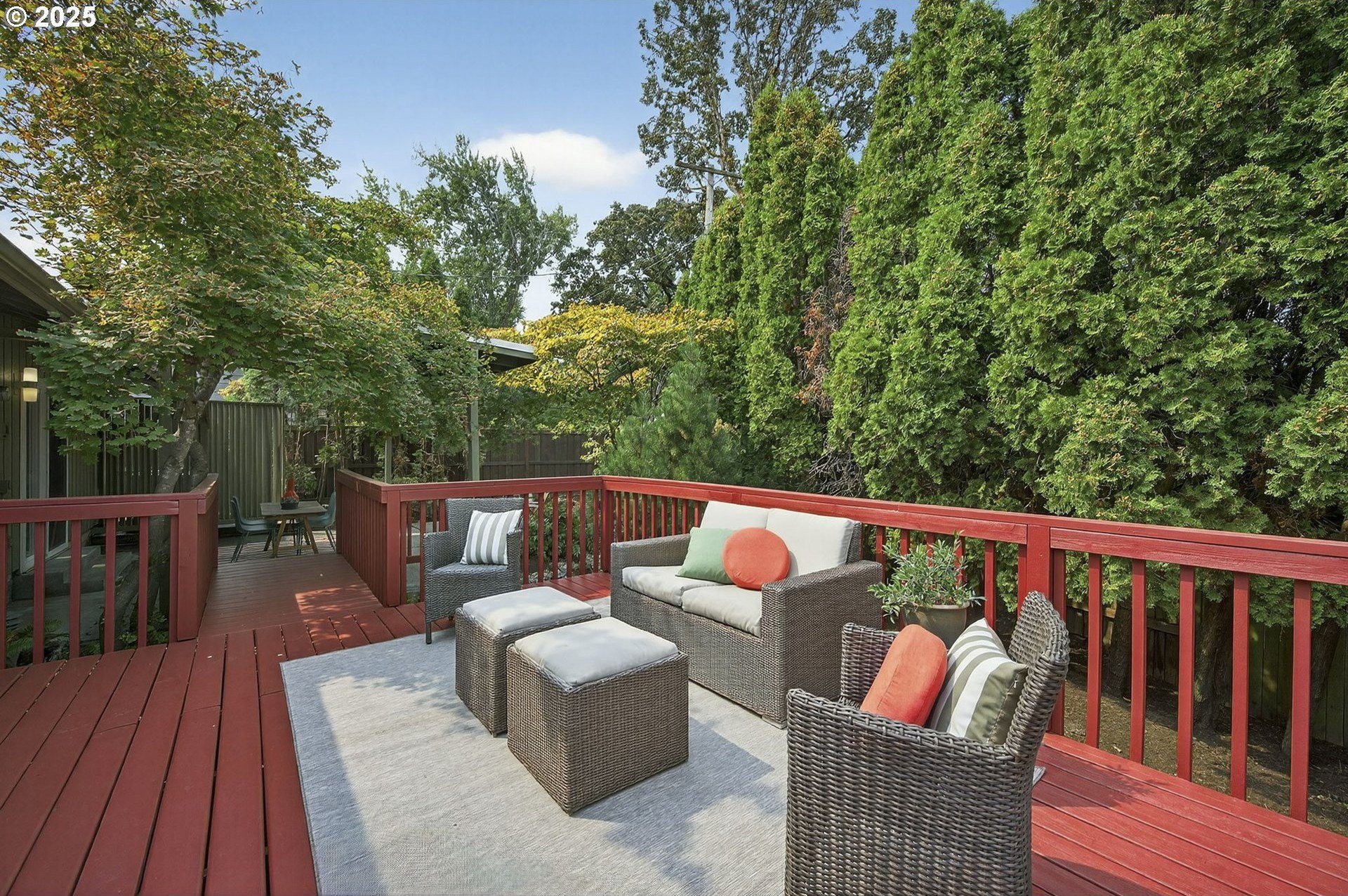 Located on a lush and tranquil corner lot, this mid-mod, one level, atomic ranch with its spacious front deck, is a respite from the bustle of city living. The entry hall greets you with a quintessential vintage wooden partition wall! Freshly refinished oak floors, a tiled fireplace and an impressive array of windows make this one special. Relish relaxing in the dining room, looking out into the greenery of the backyard. The kitchen, bedecked in stainless steel, is the heart of this house, connecting the main living area with a family room, showcasing a copper clad, brick wall fireplace. Two sliding glass doors lead to the magical backyard with a deck and covered patio. The two-car garage completes the easy, breezy one level living with a large laundry area and plenty of space for storage and gear. A cutting edge, early example of a large-scale planned community, Cedar Hills, in unincorporated Washington County, offers all the conveniences of nearby shopping, parks, dining, schools and transit. Niche.com’s #1 Best Suburb for Young Professionals in Oregon and #4 overall in the state! Only two owners! Don’t leave it to Beaver, snap it up!