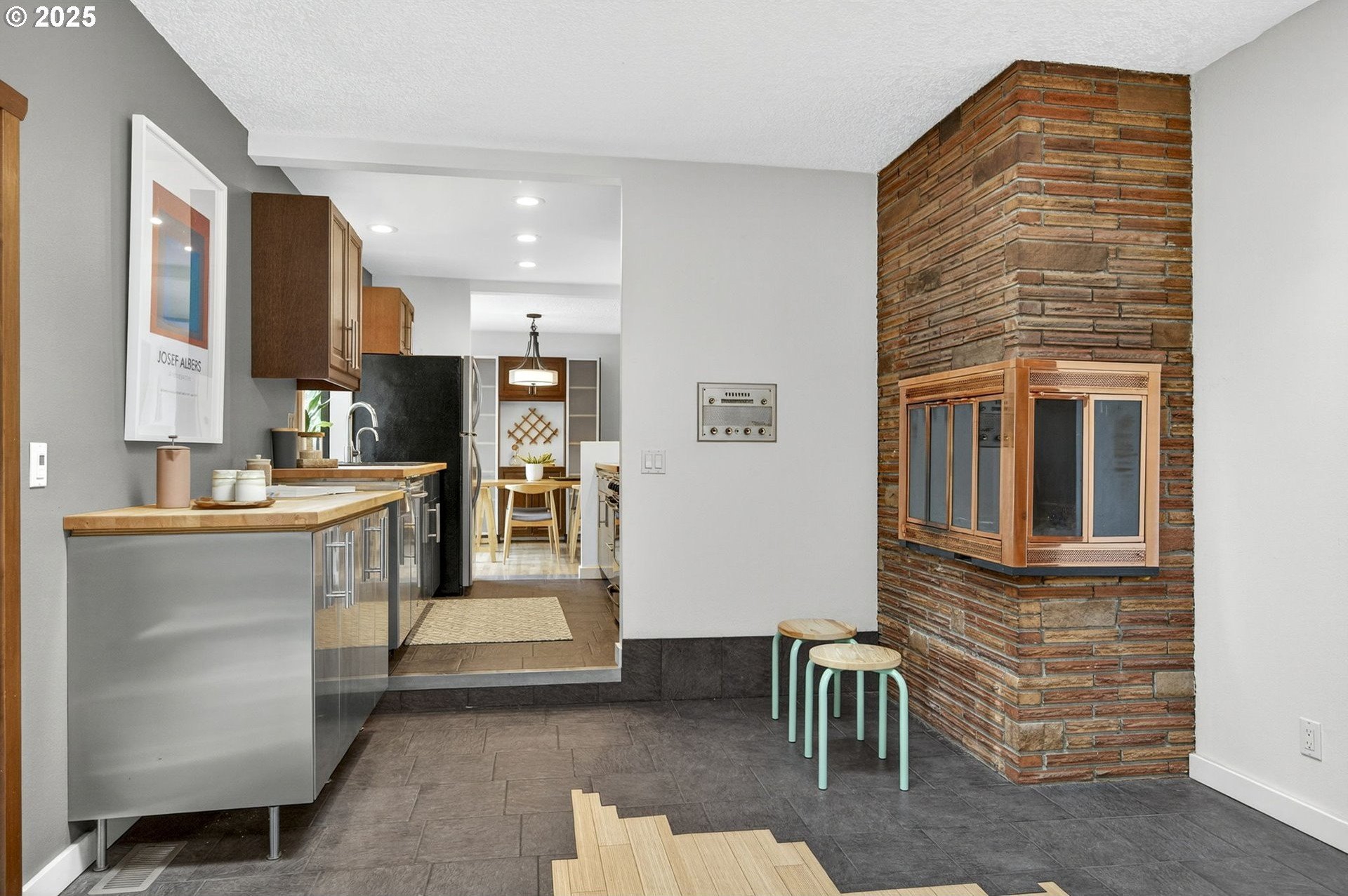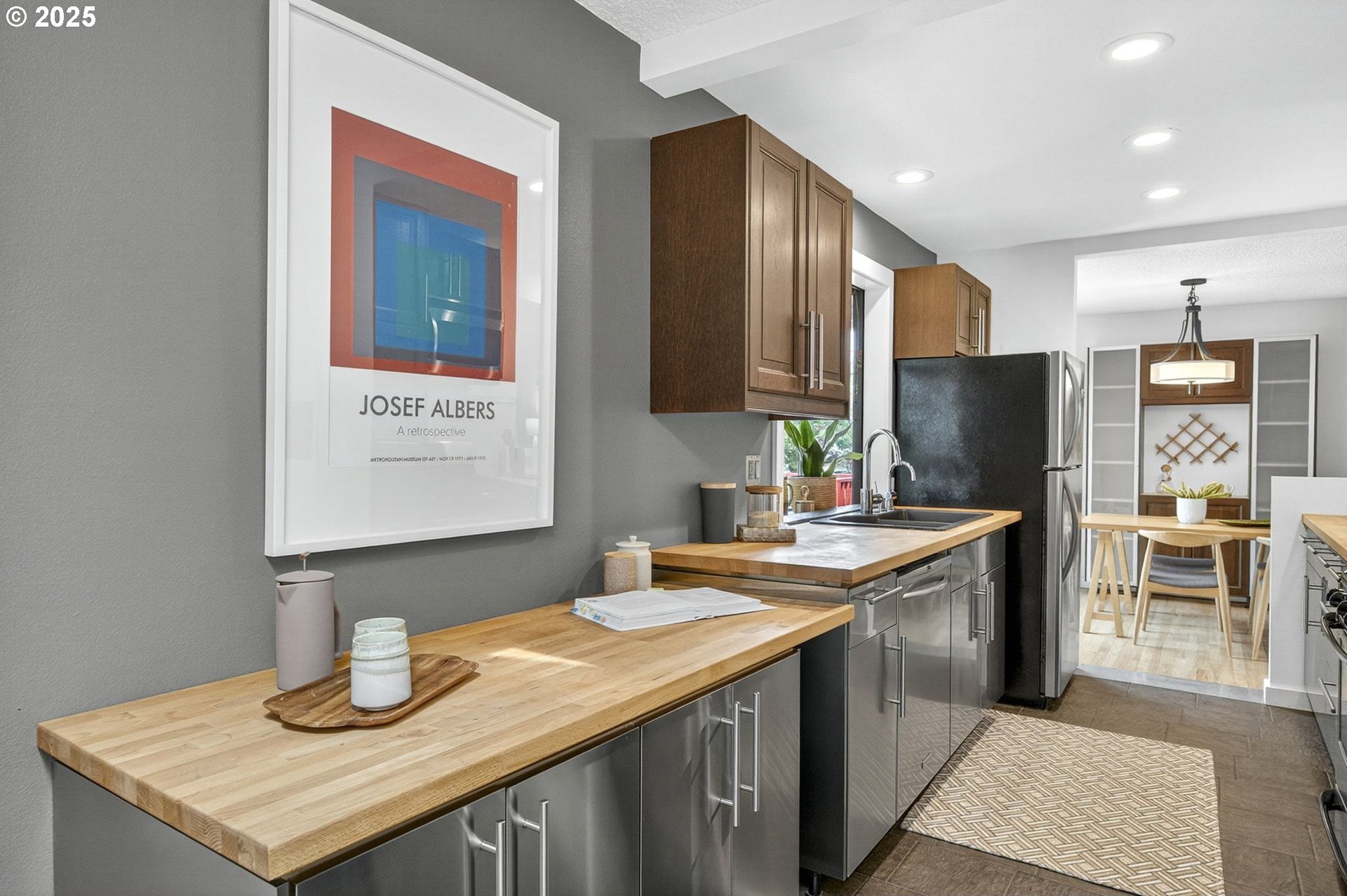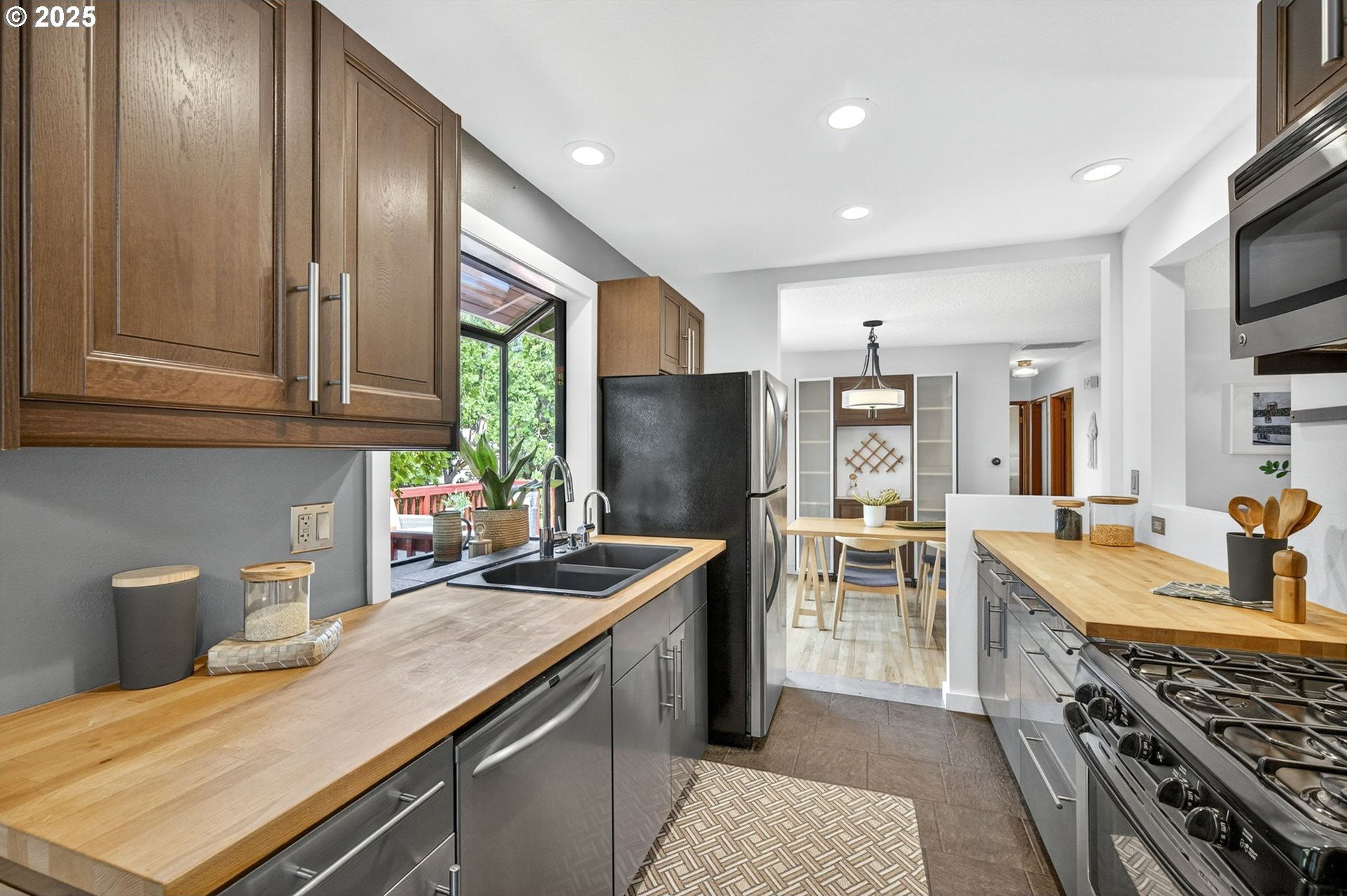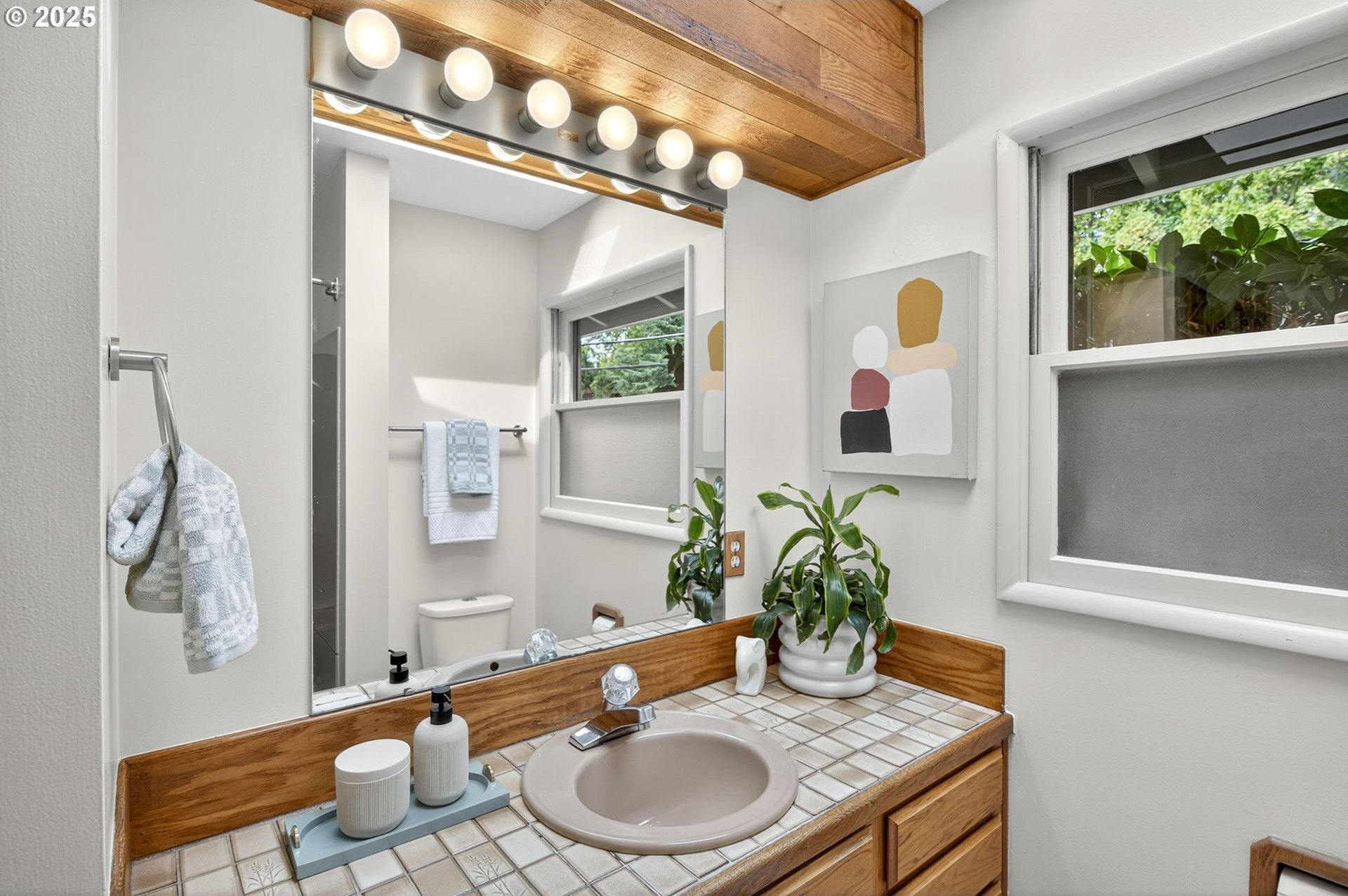 Located on a lush and tranquil corner lot, this mid-mod, one level, atomic ranch with its spacious front deck, is a respite from the bustle of city living. The entry hall greets you with a quintessential vintage wooden partition wall! Freshly refinished oak floors, a tiled fireplace and an impressive array of windows make this one special. Relish relaxing in the dining room, looking out into the greenery of the backyard. The kitchen, bedecked in stainless steel, is the heart of this house, connecting the main living area with a family room, showcasing a copper clad, brick wall fireplace. Two sliding glass doors lead to the magical backyard with a deck and covered patio. The two-car garage completes the easy, breezy one level living with a large laundry area and plenty of space for storage and gear. A cutting edge, early example of a large-scale planned community, Cedar Hills, in unincorporated Washington County, offers all the conveniences of nearby shopping, parks, dining, schools and transit. Niche.com’s #1 Best Suburb for Young Professionals in Oregon and #4 overall in the state! Only two owners! Don’t leave it to Beaver, snap it up!