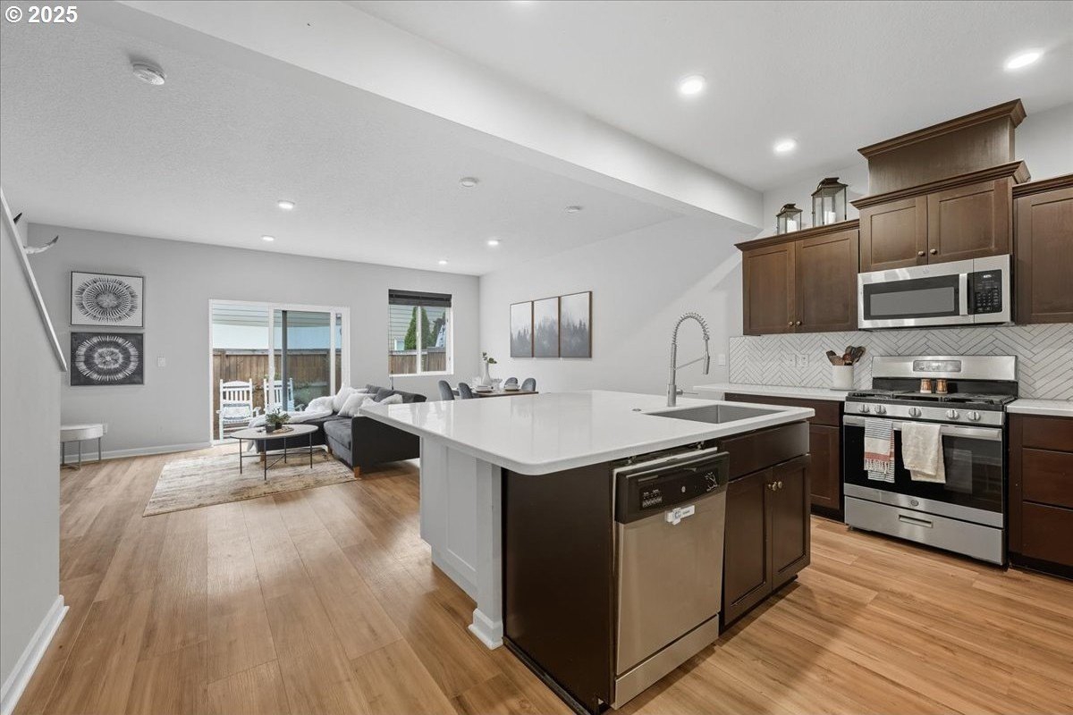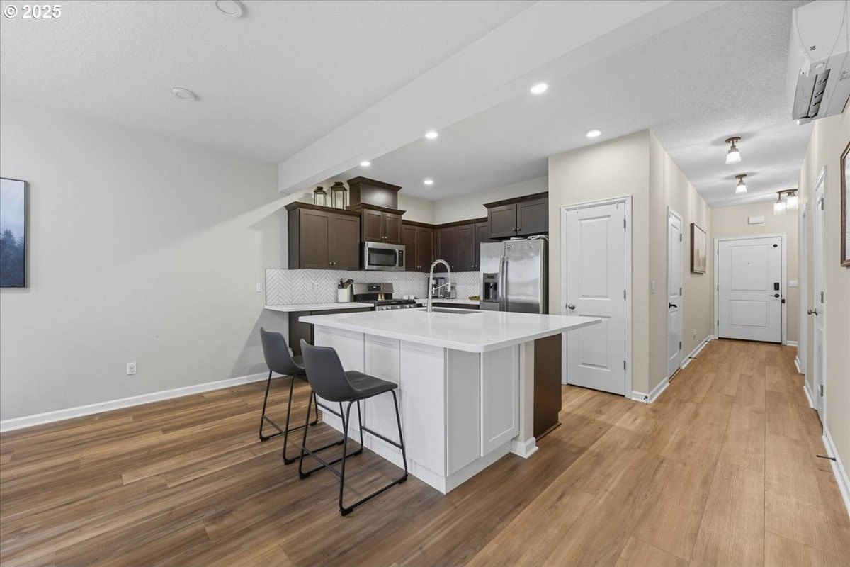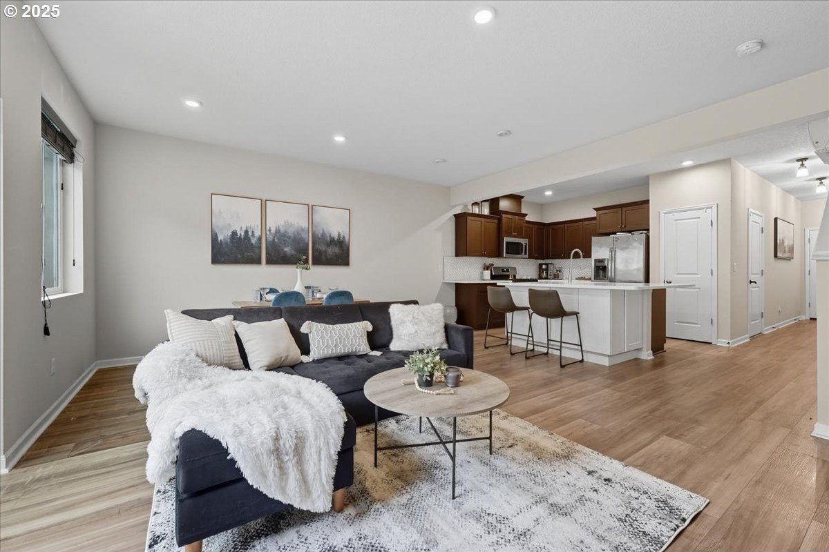 OPEN HOUSE SATURDAY 9/13/25 11am-1pm. River’s Edge is calling, and this townhome just might be “the one.” Tucked at the end of a cul-de-sac, it’s the sweet spot between low-maintenance and high-style. Inside, fresh interior paint and brand-new German plank flooring sets the vibe, while the open layout keeps the party flowing. The kitchen is a total show-off with its new herringbone backsplash, expanded island (hello, extra counter space), stainless steel appliances, and a pantry big enough to handle your entire Costco run. Upstairs, the primary suite is basically your own VIP lounge: walk-in closet, ensuite bath, and plenty of space for a little “me time.” Bonus points: laundry is upstairs too, because who has time to play stairmaster with a basket of clothes? Mini split Heat pump A/C and a gas tankless water heater keep you cool, comfy, and energy-savvy all year long. Out back, your fenced yard and patio are ready for BBQ nights, solo coffee mornings, or a well-deserved happy hour. And here’s the best part: the HOA covers exterior maintenance, grounds care, and front landscaping, so you get your weekends back! Outside your door? Private trails, serene pond, solid schools, and shopping/dining that don’t require a GPS or a road trip. Easy highway access means you can be anywhere in no time.