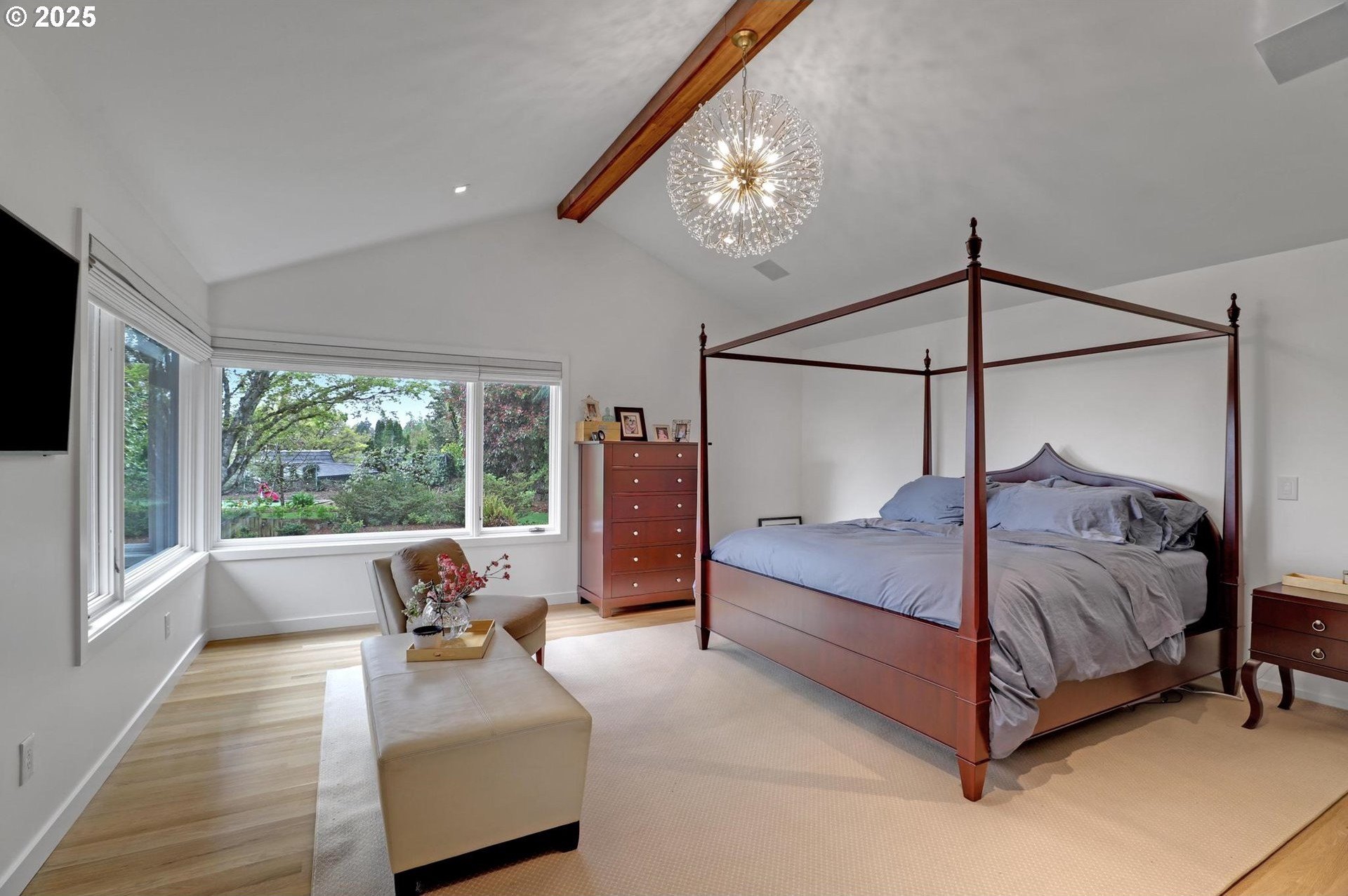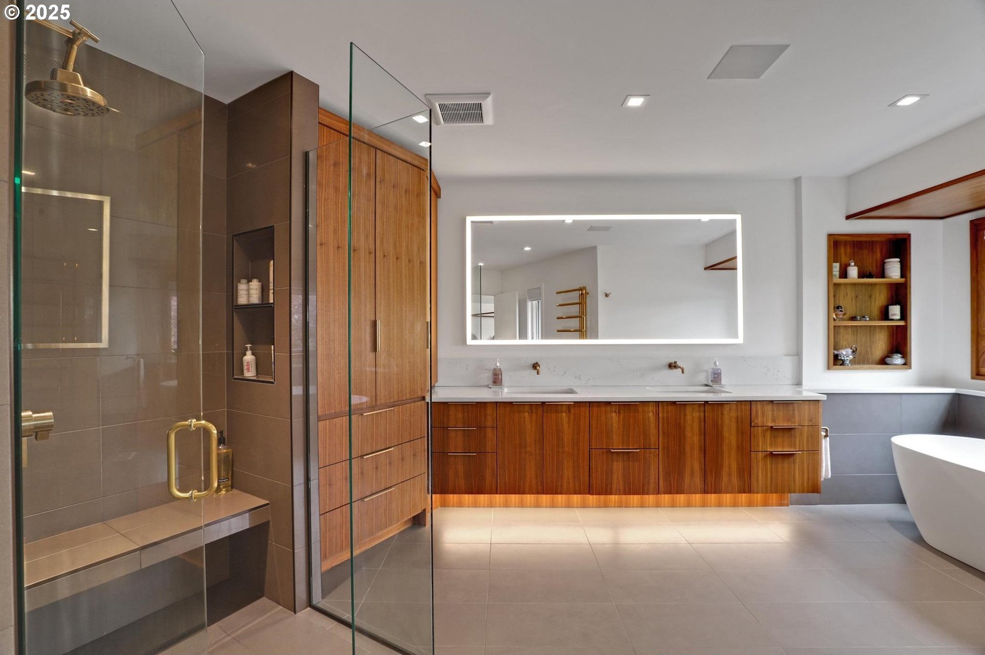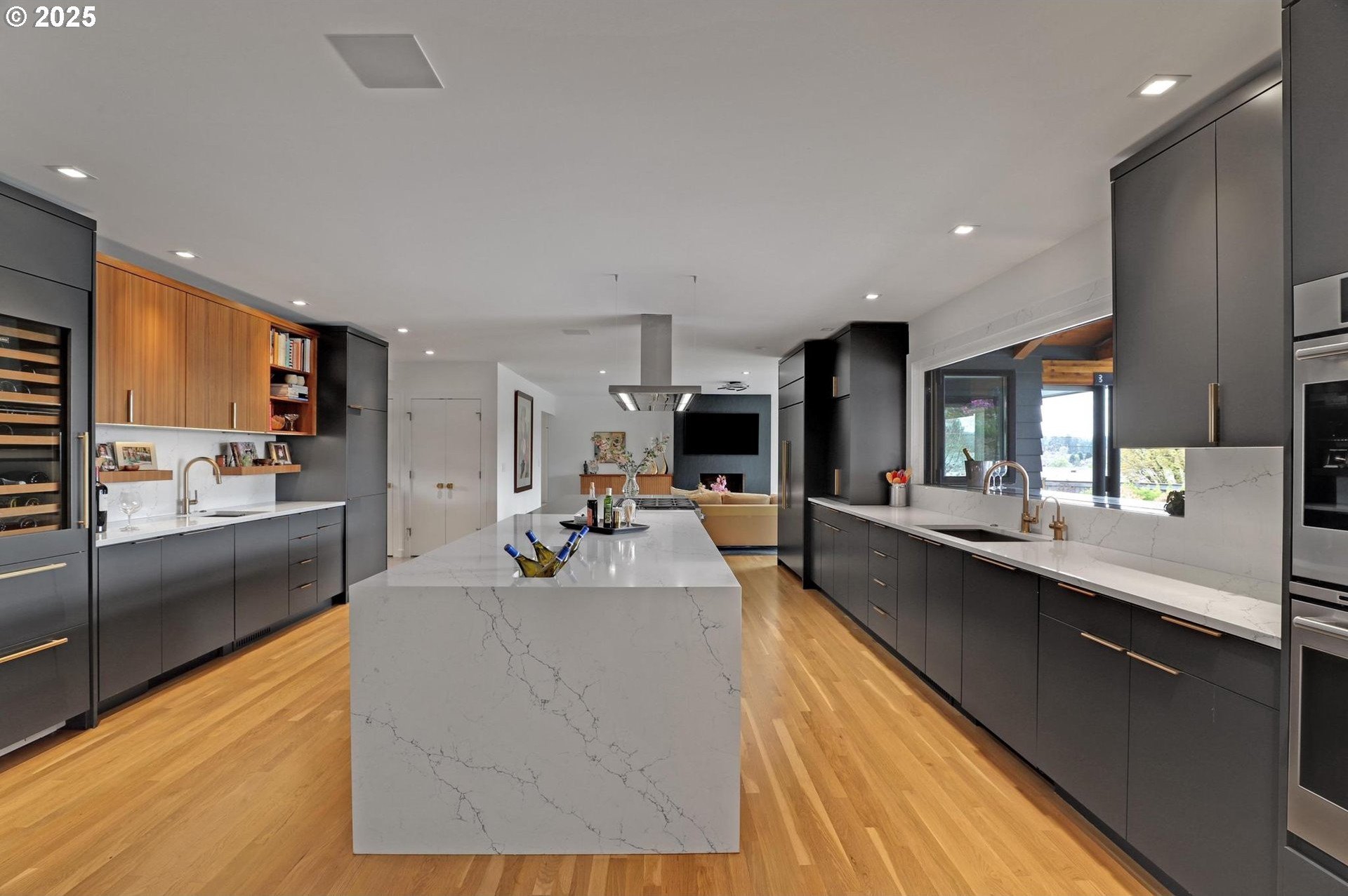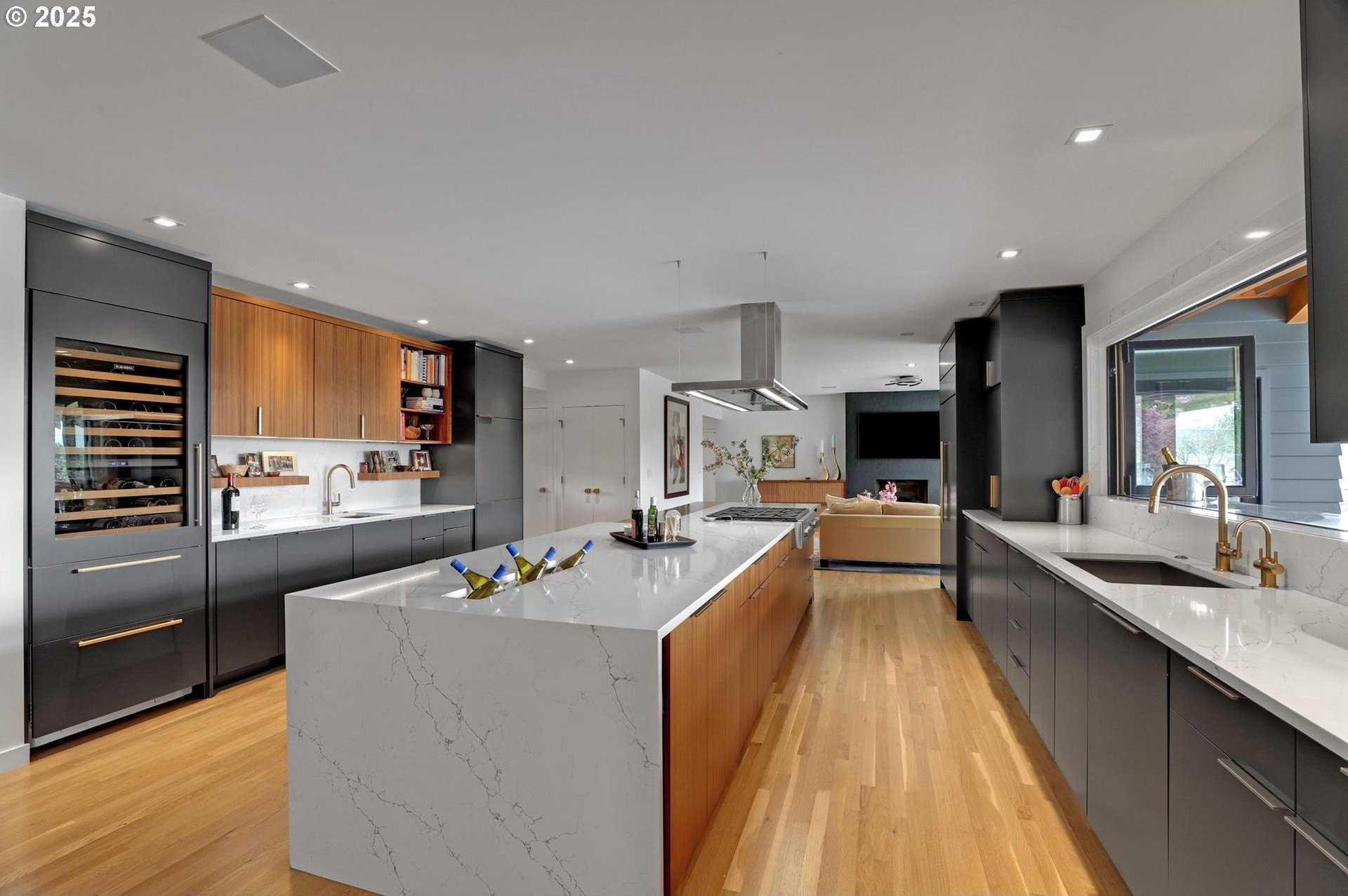 Perhaps the most stunning one-level home in the state - the "Montclair Mid Century" is a good life estate reimagined with the help of a noted Architect, design firm and Landscape Architects. Upon entering the custom 8' modern wood front door, you leave everything else behind. Quality, space, and function are the building blocks. The primary suite is a marvel of vaulted ceilings, custom walk-in closet with a place for everything and a spa bathroom with quartz counters, a curbless shower and a soaking tub. Indoor Outdoor living comes alive in the kitchen, which features a cool, modern vibe with Walnut & quartz countertops and an almost unbelievable 14 foot island, complete with a built in champagne/beverage trough. Open the custom 8 foot accordian-style kitchen window to serve slushies to your outdoor sunbathers. The dining room features an Oregon-Company made 14 foot pocket door system that tucks away and allows the entire corner to be open. With .73 acre, there is plenty of room for the resort sized swimming pool and spa surrounded by velvet concrete and the covered patio with exposed beams and custom metal columns, equipped with four large infrared heaters, creating nearly 600 more square feet in this outdoor room. Two outdoor fireplaces and a Bocce Ball court add even more fun to outdoor play. With 5 bedrooms and 4 full and 2 partial baths, there is room for everyone and everything in this one-of-a-kind home.