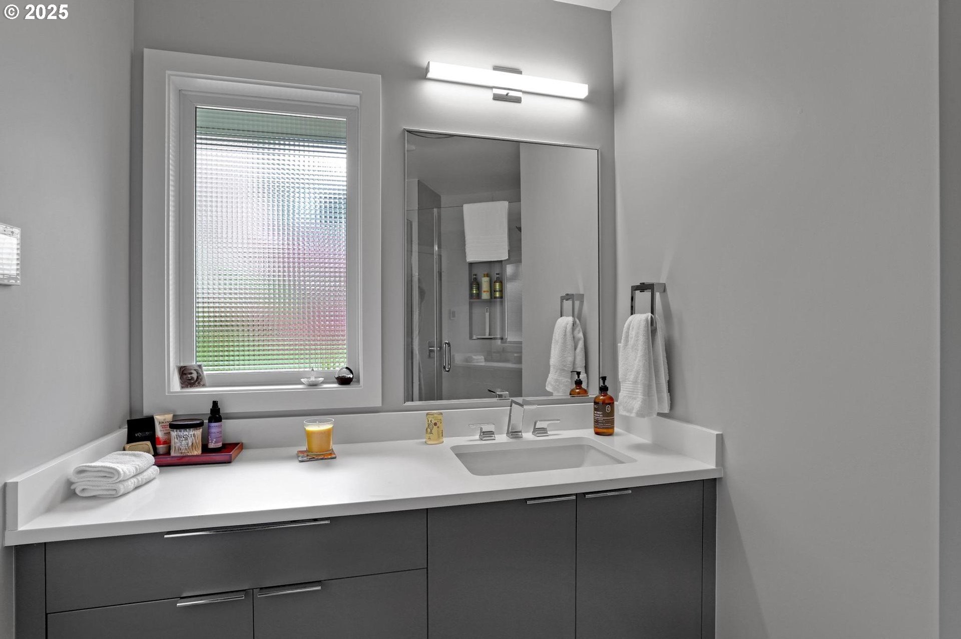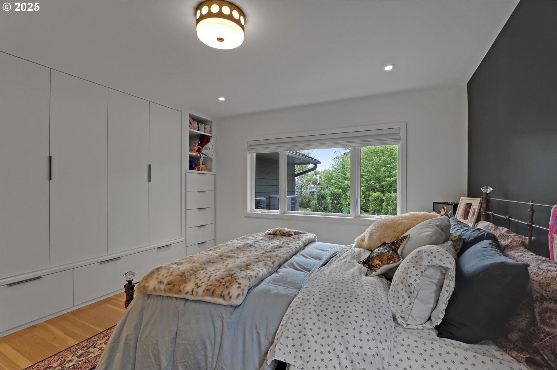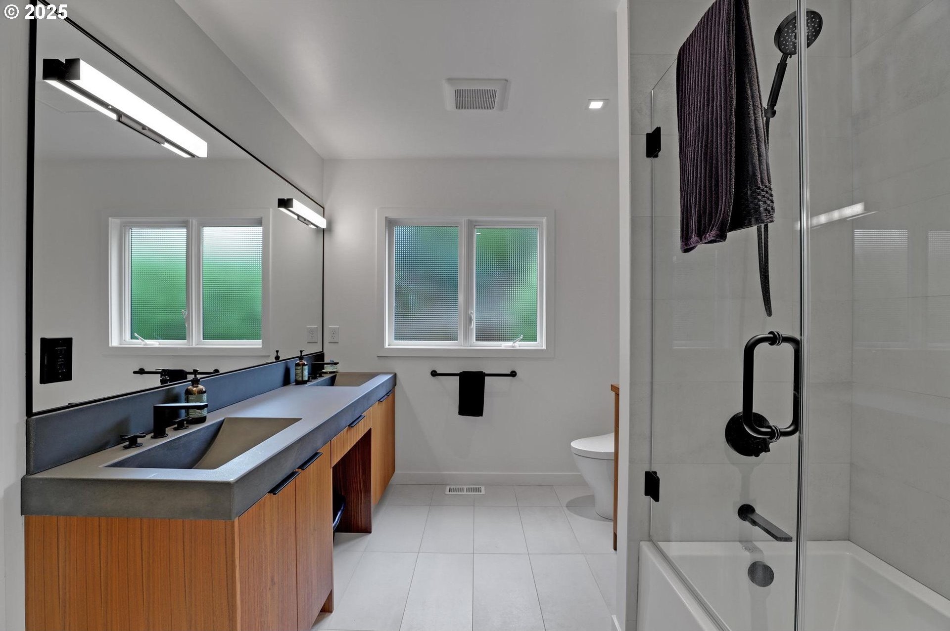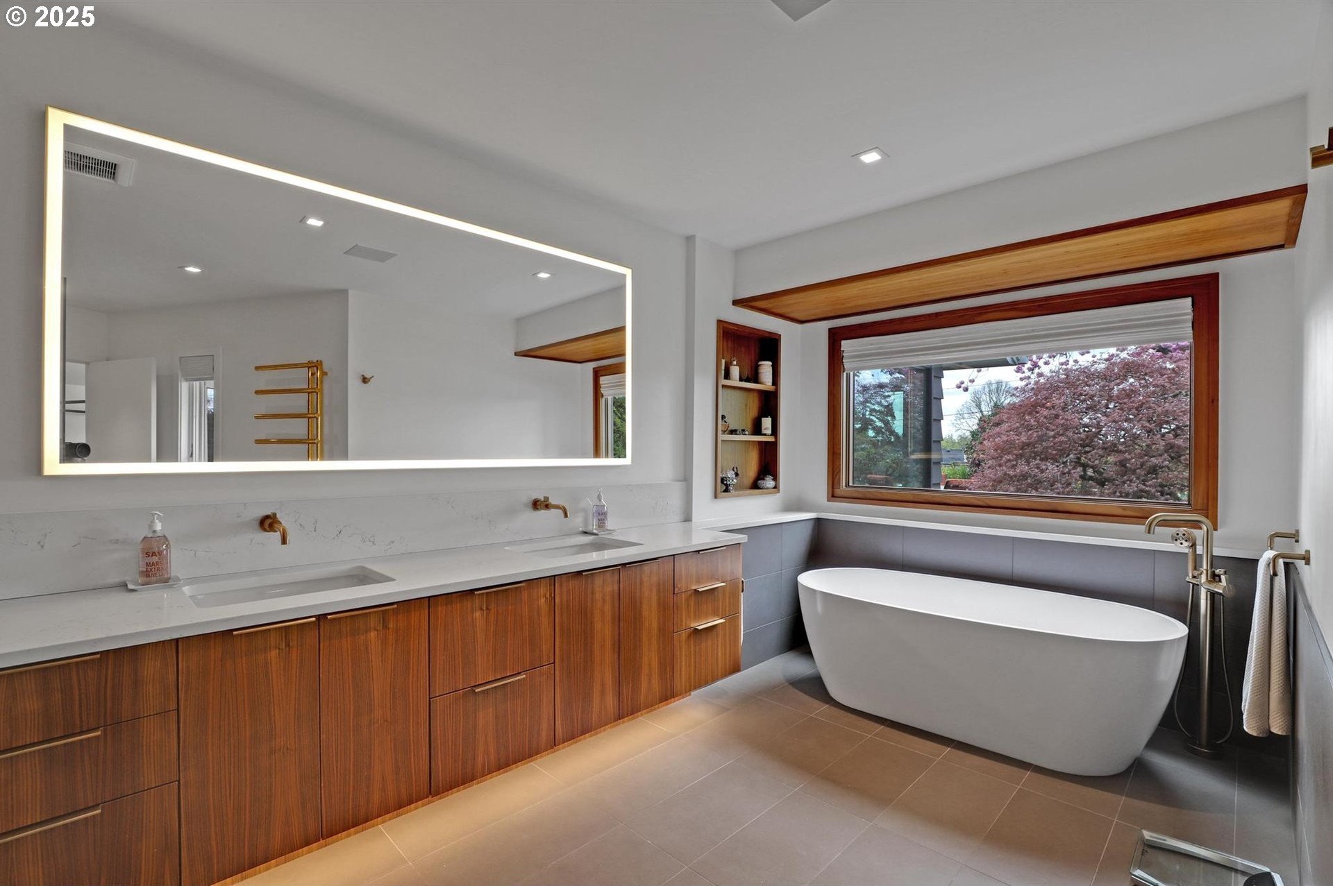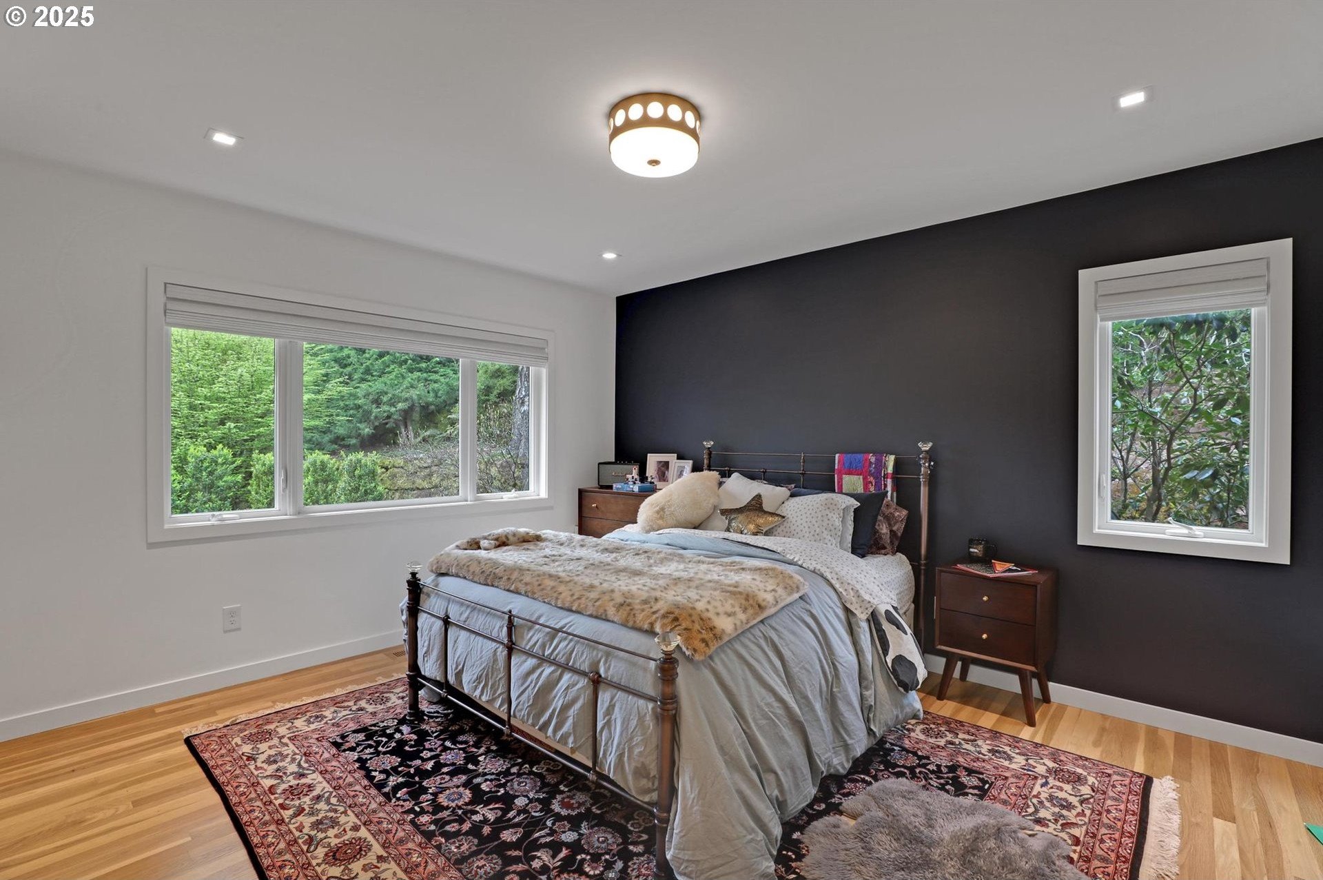 Perhaps the most stunning one-level home in the state - the "Montclair Mid Century" is a good life estate reimagined with the help of a noted Architect, design firm and Landscape Architects. Upon entering the custom 8' modern wood front door, you leave everything else behind. Quality, space, and function are the building blocks. The primary suite is a marvel of vaulted ceilings, custom walk-in closet with a place for everything and a spa bathroom with quartz counters, a curbless shower and a soaking tub. Indoor Outdoor living comes alive in the kitchen, which features a cool, modern vibe with Walnut & quartz countertops and an almost unbelievable 14 foot island, complete with a built in champagne/beverage trough. Open the custom 8 foot accordian-style kitchen window to serve slushies to your outdoor sunbathers. The dining room features an Oregon-Company made 14 foot pocket door system that tucks away and allows the entire corner to be open. With .73 acre, there is plenty of room for the resort sized swimming pool and spa surrounded by velvet concrete and the covered patio with exposed beams and custom metal columns, equipped with four large infrared heaters, creating nearly 600 more square feet in this outdoor room. Two outdoor fireplaces and a Bocce Ball court add even more fun to outdoor play. With 5 bedrooms and 4 full and 2 partial baths, there is room for everyone and everything in this one-of-a-kind home.