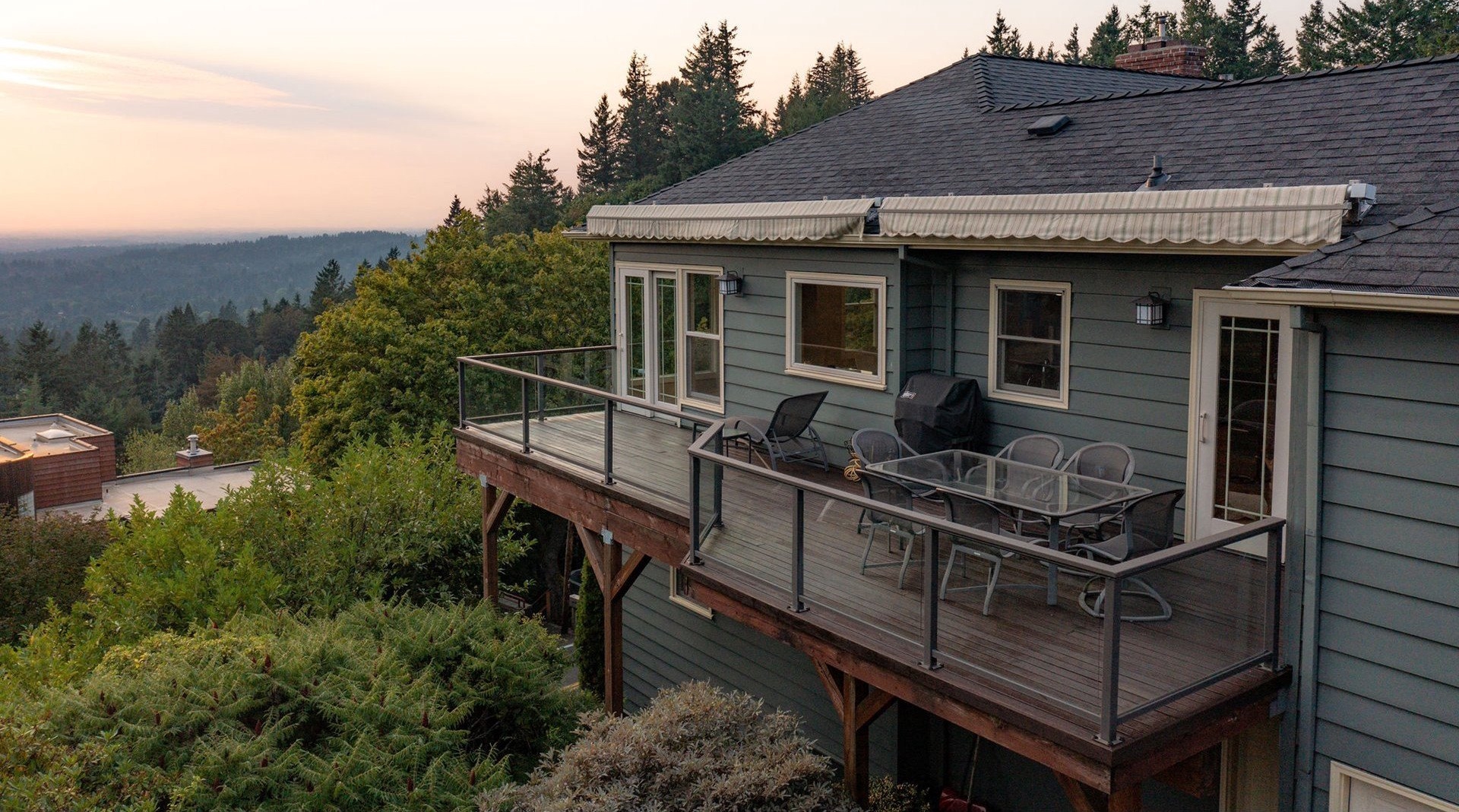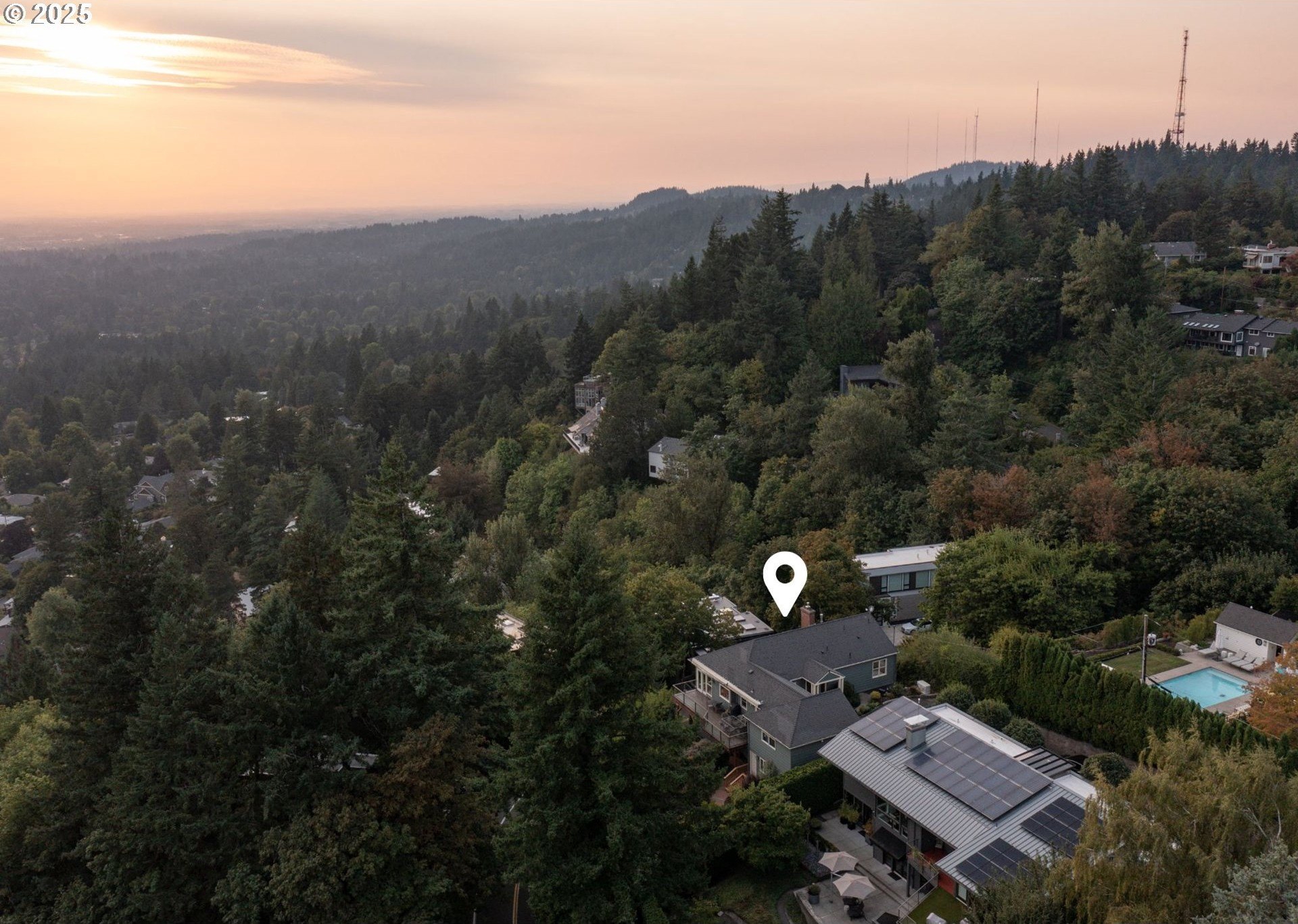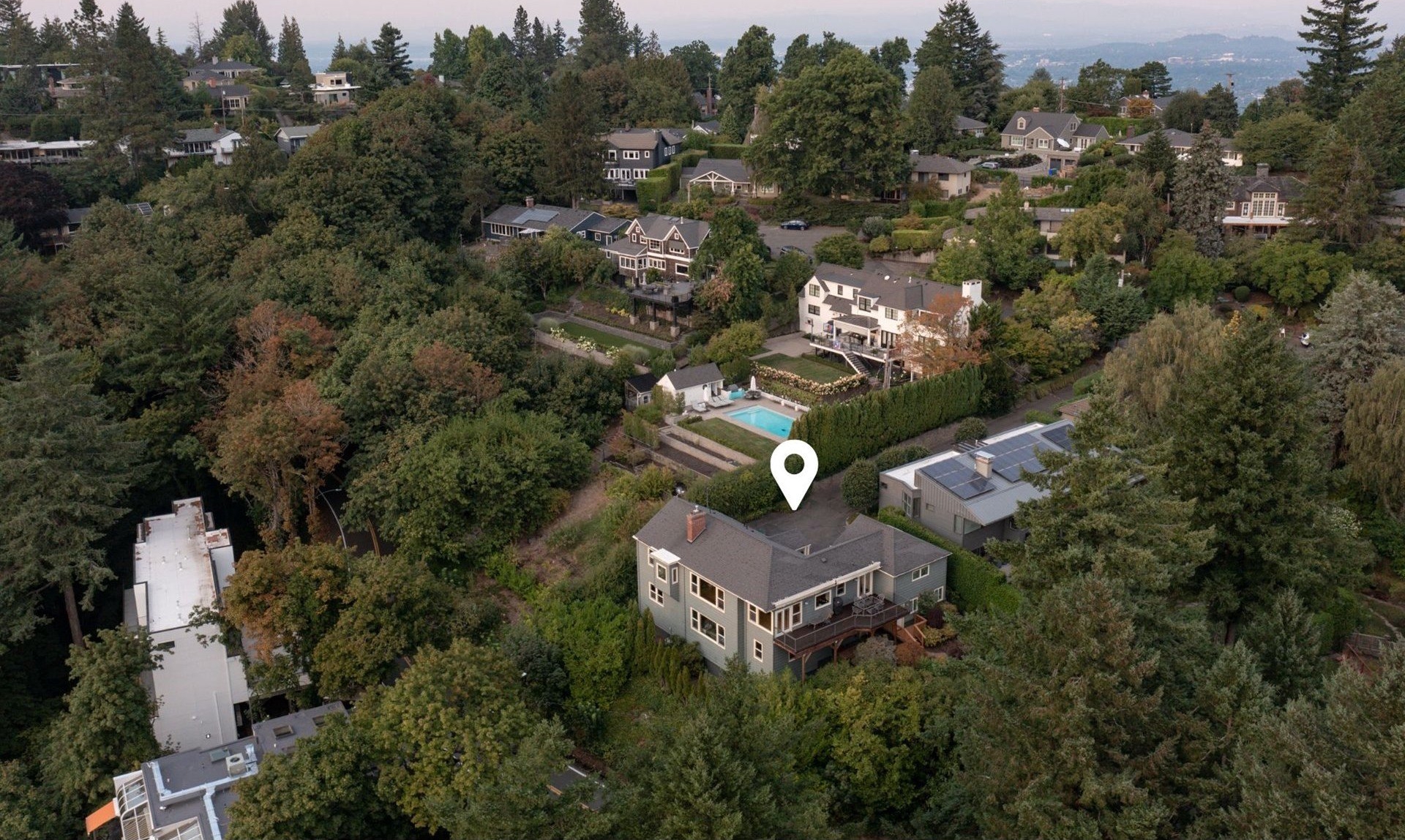 The open and light-filled main level features beautiful hardwood floors and is designed for both everyday living and effortless entertaining. A gracious living room with custom built-ins and a statement fireplace is framed by expansive windows that capture sweeping vistas of the surrounding landscape. The adjoining dining area offers a dramatic backdrop for memorable meals, while the gourmet kitchen impresses with high-end appliances, custom cabinetry, and a welcoming breakfast nook with planning desk.The primary suite on the main floor is a serene retreat, complete with spectacular outlooks and a spa-inspired bath. On the lower level, a spacious family room provides a comfortable, flexible space for everyday living and is complemented by three additional bedrooms and a full bath.A separate private guest quarters with its own kitchen and bath provides exceptional versatility for multigenerational living or long-term visitors.Outdoors, thoughtfully designed landscaping surrounds the property, offering privacy and tranquility while an expansive deck extends the living space, ideal for dining or soaking in the beauty of the natural setting. Just a few blocks away, Healy Heights Park offers a neighborhood playground and green space to enjoy.Offering the best of both worlds, this home enjoys the privacy of a hillside retreat with the convenience of being only minutes from downtown Portland, top-rated schools, parks, and vibrant local shops. A one-of-a-kind property where thoughtful design, unmatched privacy, and breathtaking scenery meet. [Home Energy Score = 2. HES Report at https://rpt.greenbuildingregistry.com/hes/OR10241827]