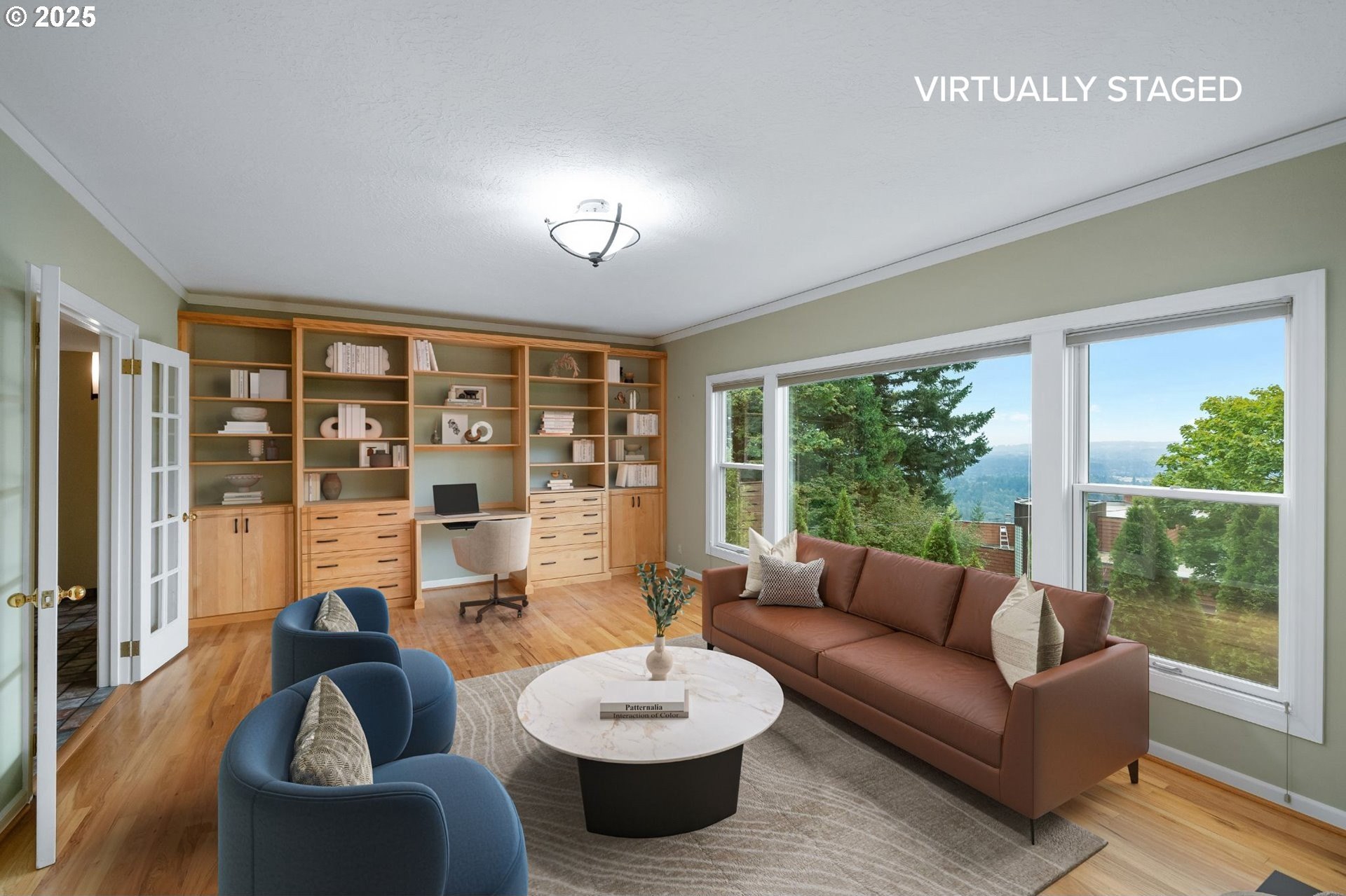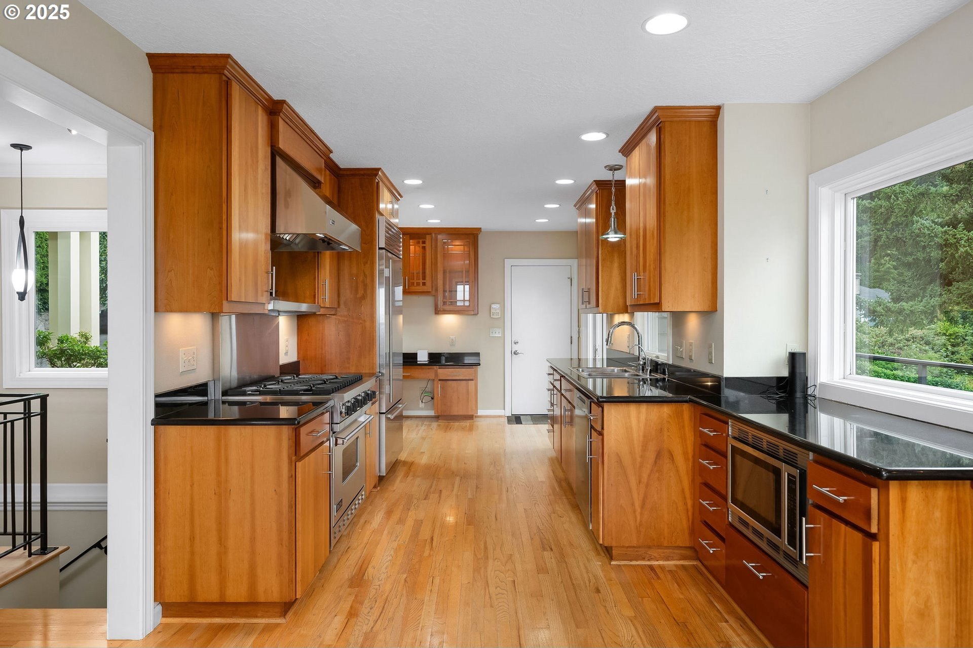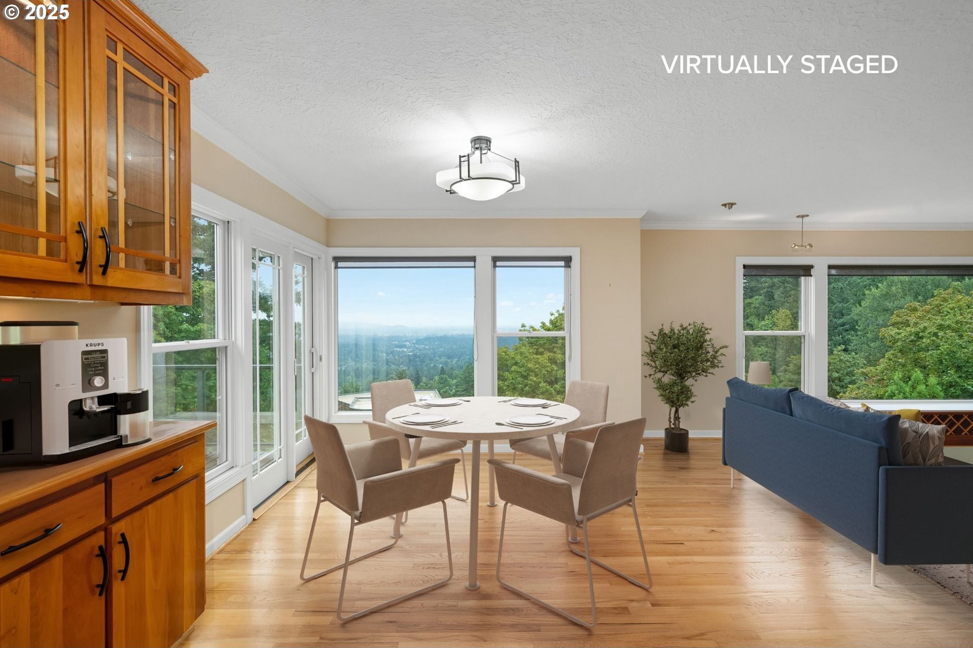 The open and light-filled main level features beautiful hardwood floors and is designed for both everyday living and effortless entertaining. A gracious living room with custom built-ins and a statement fireplace is framed by expansive windows that capture sweeping vistas of the surrounding landscape. The adjoining dining area offers a dramatic backdrop for memorable meals, while the gourmet kitchen impresses with high-end appliances, custom cabinetry, and a welcoming breakfast nook with planning desk.The primary suite on the main floor is a serene retreat, complete with spectacular outlooks and a spa-inspired bath. On the lower level, a spacious family room provides a comfortable, flexible space for everyday living and is complemented by three additional bedrooms and a full bath.A separate private guest quarters with its own kitchen and bath provides exceptional versatility for multigenerational living or long-term visitors.Outdoors, thoughtfully designed landscaping surrounds the property, offering privacy and tranquility while an expansive deck extends the living space, ideal for dining or soaking in the beauty of the natural setting. Just a few blocks away, Healy Heights Park offers a neighborhood playground and green space to enjoy.Offering the best of both worlds, this home enjoys the privacy of a hillside retreat with the convenience of being only minutes from downtown Portland, top-rated schools, parks, and vibrant local shops. A one-of-a-kind property where thoughtful design, unmatched privacy, and breathtaking scenery meet. [Home Energy Score = 2. HES Report at https://rpt.greenbuildingregistry.com/hes/OR10241827]