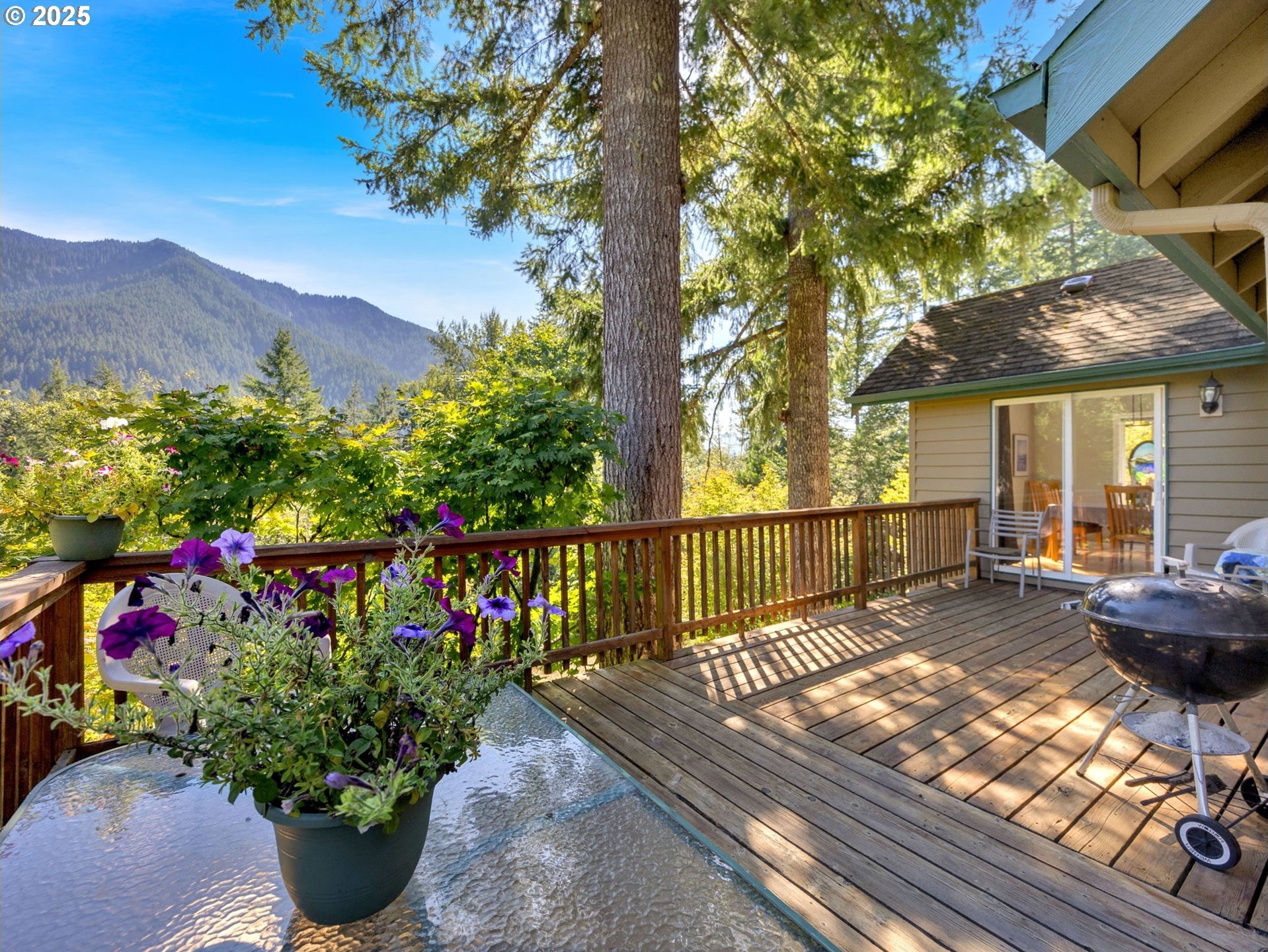 Escape to your own mountain retreat on nearly three acres located at the base of Mt Hood in Rhododendron, Oregon. This home features 5-bedrooms, 3-bathrooms boasting 4,187 square feet of living space where every window frame breathtaking Mt Hood and territorial view as well as numerous access points to the main and upper decks. The unique floorplan allows for many opportunities of living with 2 bedroom and full bathroom on the lower level (entry level), 1 bedroom on the main level and 2 bedrooms/ 2 bathrooms on the upper levels—each with their own private staircase. Throughout the home, you'll discover practical updates that make mountain living comfortable and worry-free. The 80-gallon water heater ensures everyone gets a hot shower, while the interior sprinkler system with 600-gallon tank and compressor provides peace of mind. A generator outlet keeps you connected when Mother Nature flexes her muscles, and the new 1,350-gallon holding tank maintains consistent 60 PSI water pressure. The exterior showcases quality construction with cedar and fiber cement siding, complemented by extensive cedar decking that extends your living space outdoors. Outdoor enthusiasts will appreciate the fenced garden area for growing your own mountain fruits and/or vegetables and abundant parking and storage for all your recreational vehicles and gear.