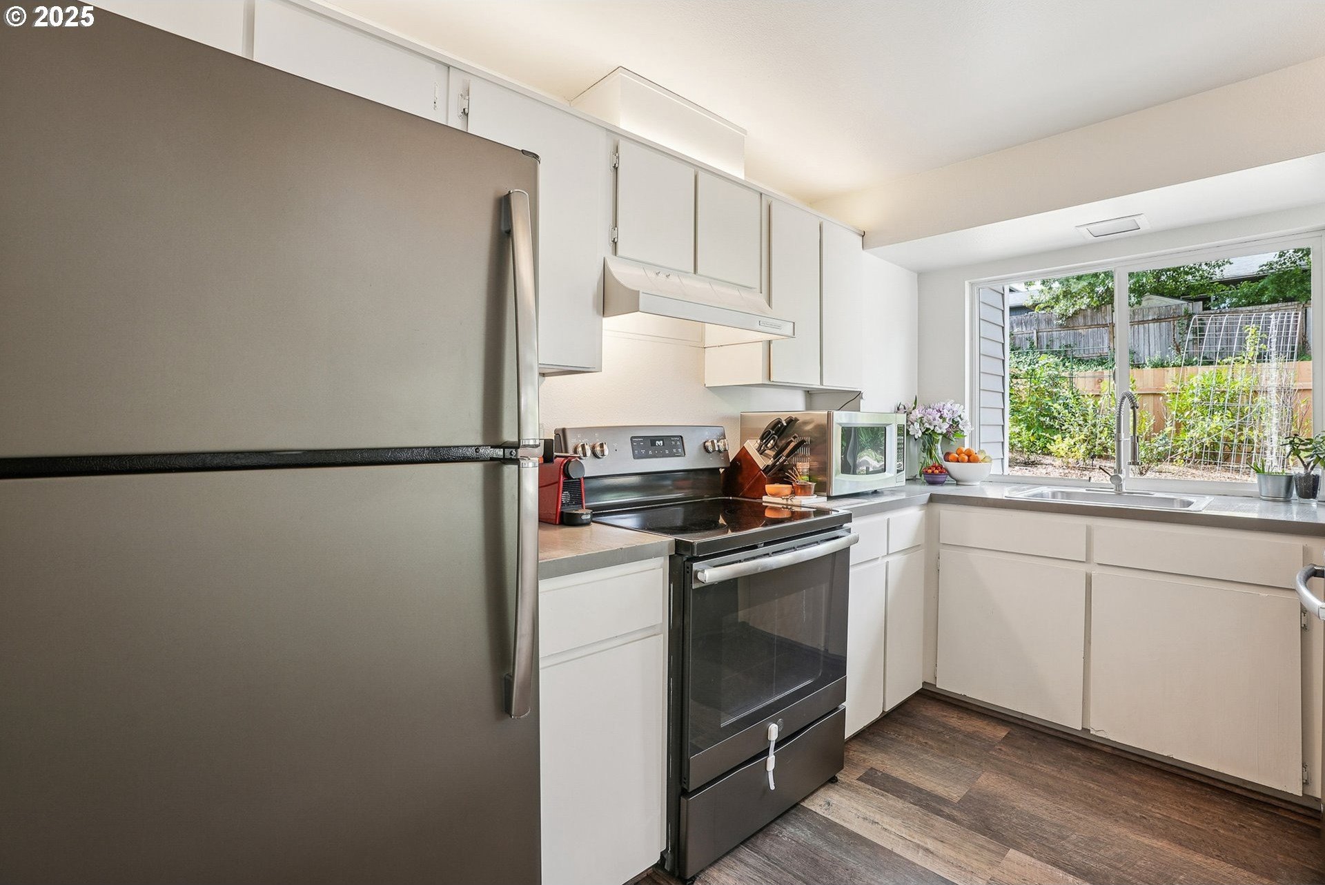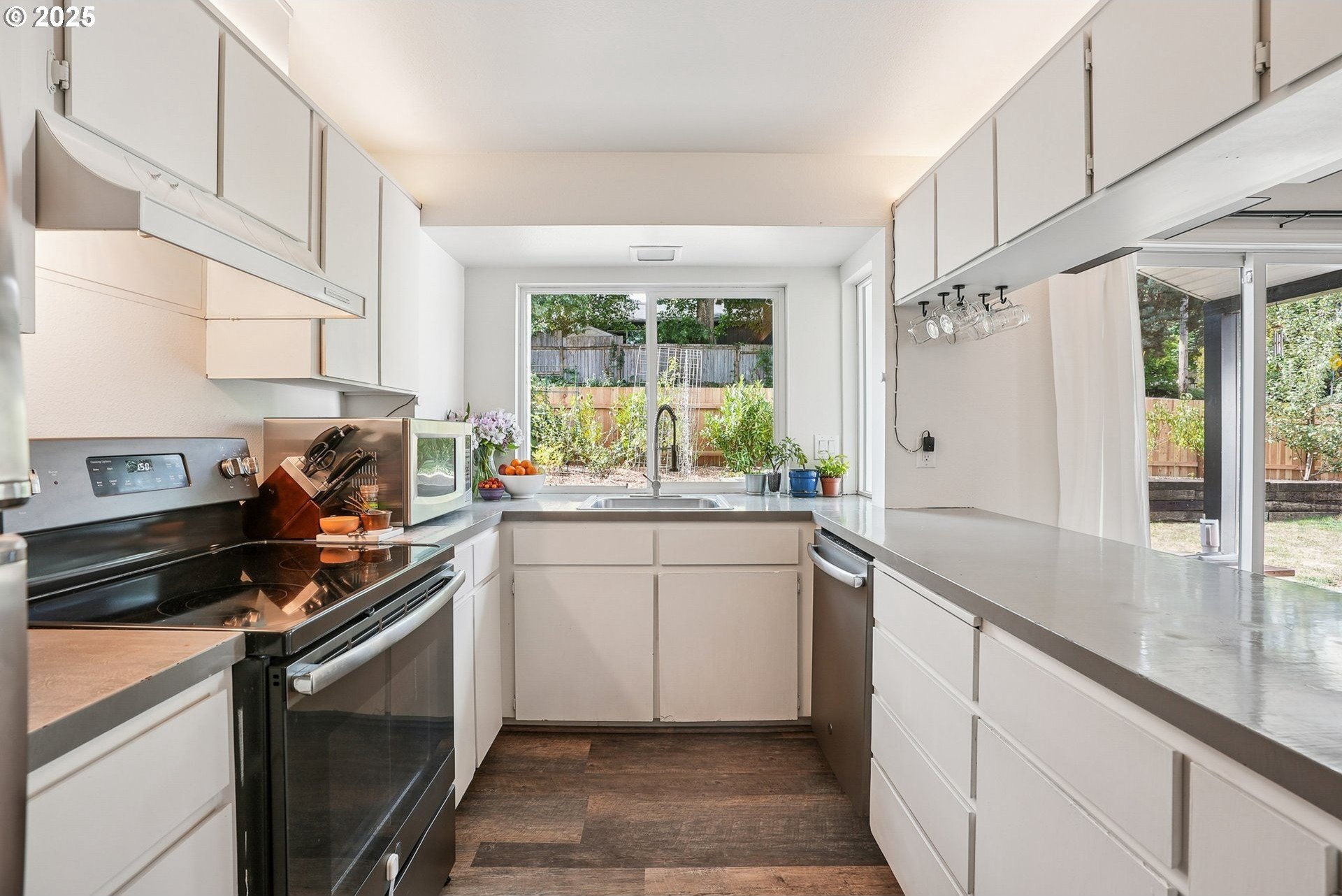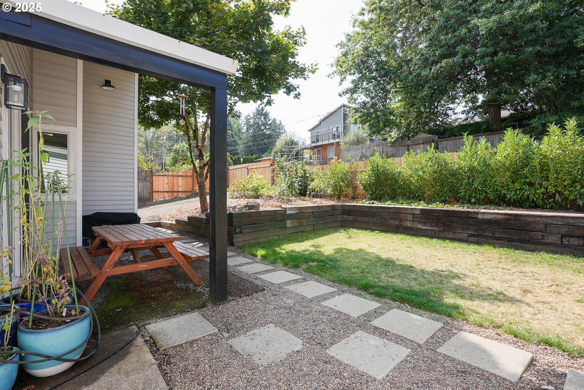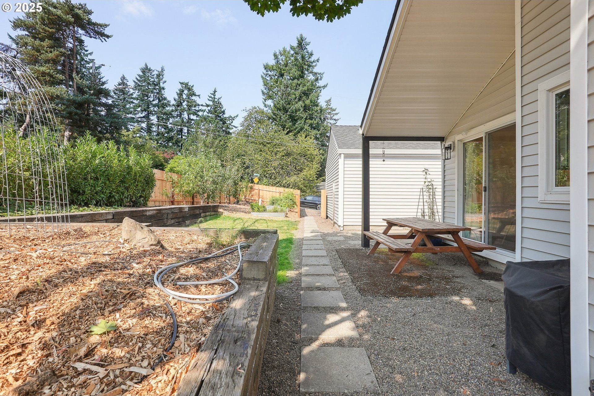 Your urban retreat in the heart of the city! Vaulted ceilings, skylights, and abundant natural light create a bright, airy feel throughout. Outside, enjoy a private yard with a brand-new fence, covered patio, fruit trees, raised garden beds, and RV parking. Recent updates include a newer roof, windows, electrical panel, laminate flooring, refreshed landscaping, and more—just waiting for your personal touch. Ideally located only a half-mile from Woods Memorial Nature Area, five minutes from Multnomah Village, and with quick access to I-5. Discover the tranquility of the Crestwood neighborhood! [Home Energy Score = 1. HES Report at https://rpt.greenbuildingregistry.com/hes/OR10131597]