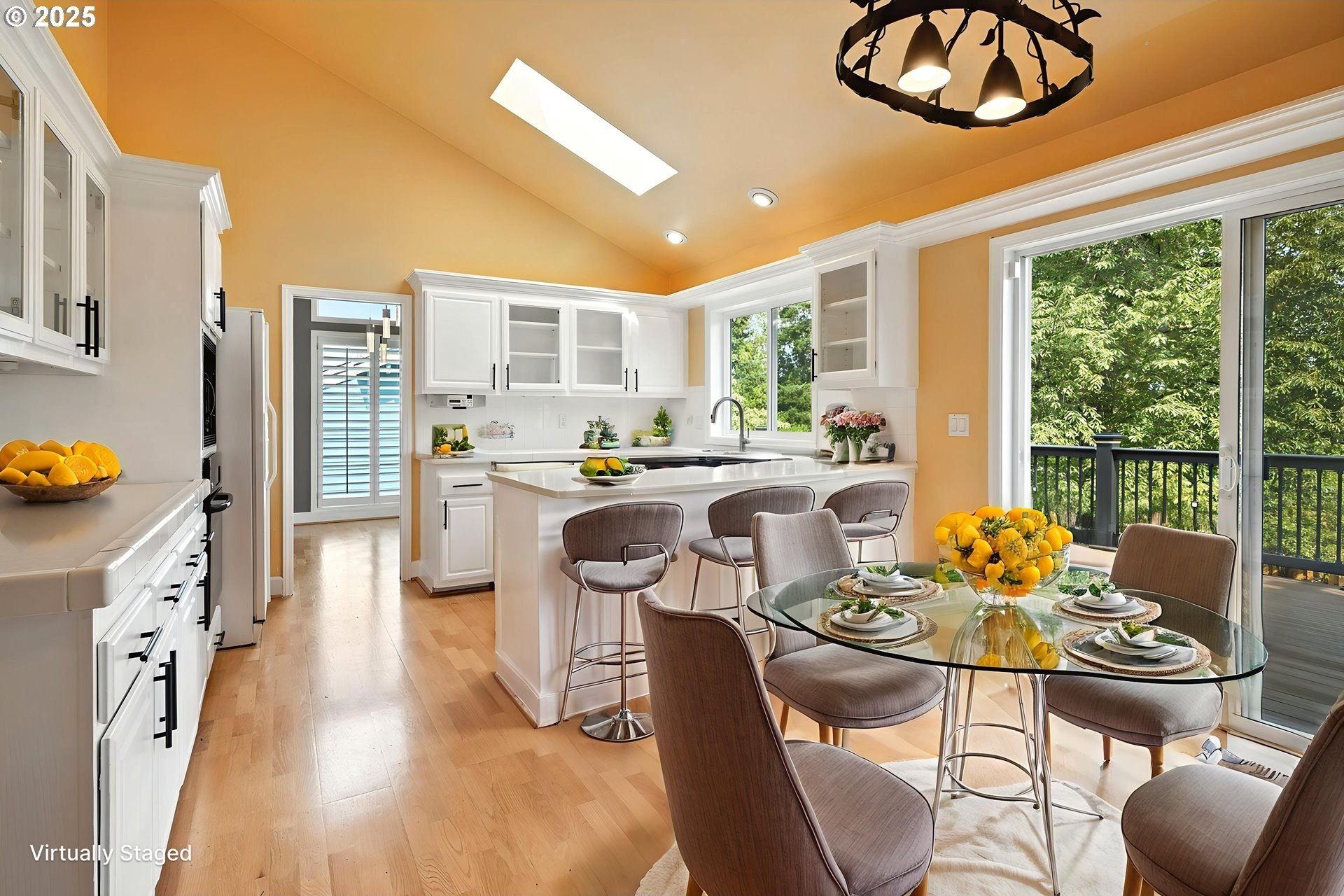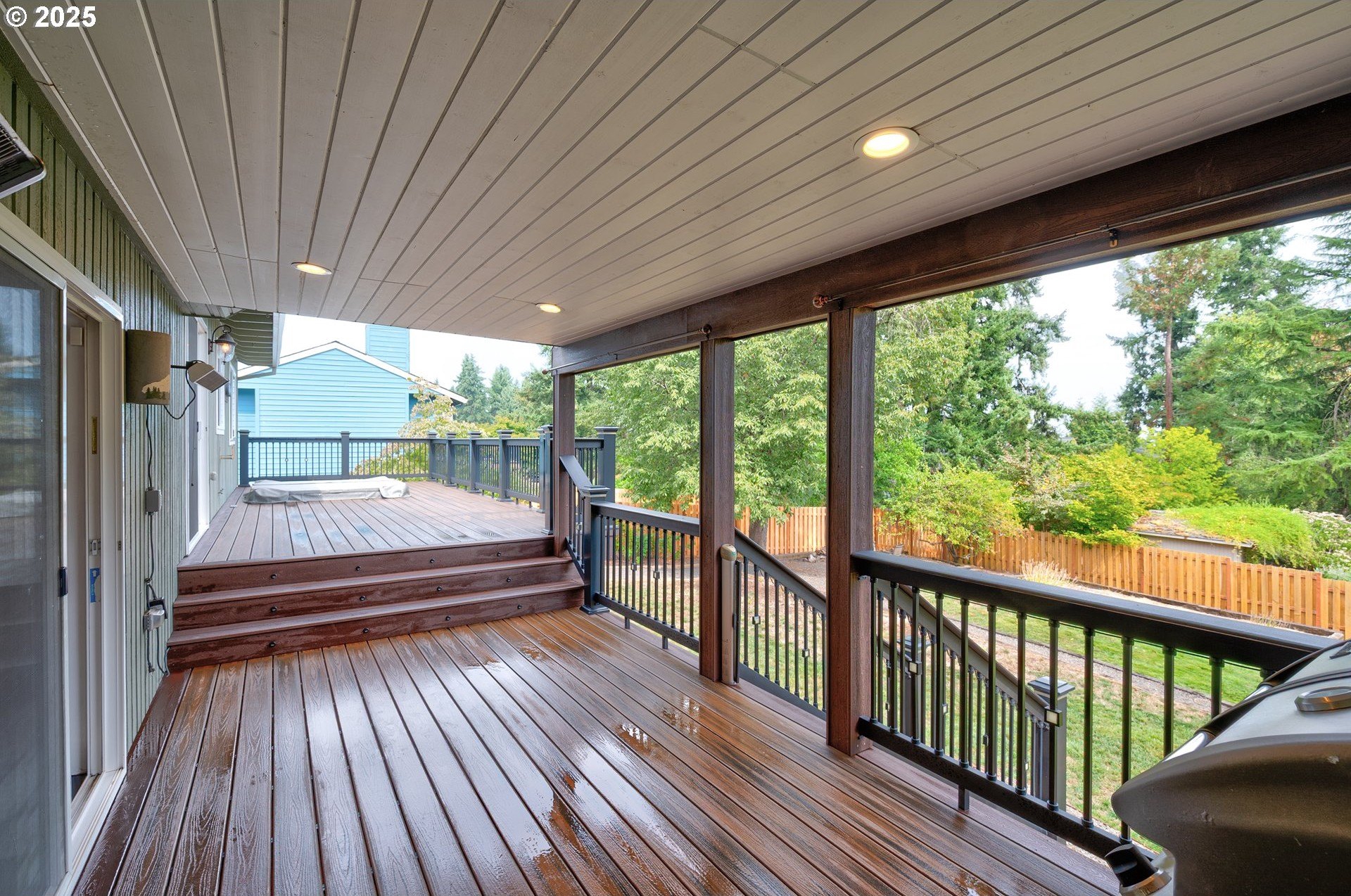 About this Home - This home is located in one of West Linn’s most desirable neighborhoods, amongst luxury homes! Step inside and be welcomed by soaring ceilings, wood floors, and abundant natural light. Upstairs you’ll find four bedrooms—including a spacious primary suite with vaulted ceiling, walk-in closet, beautifully tiled ensuite, and a private deck perfect for morning coffee or evening sunsets. The main level features a formal living room, dining room, and an updated kitchen with space for dining, skylights and a gas stovetop with pop-up venting. The kitchen flows seamlessly into the sunken family room, complete with wood stove and new tile floor. From here, step onto the expansive Trex deck that spans the length of the home, complete with inset hot tub, built-in lighting, natural-gas barbecue, and direct access to the backyard. The fully fenced yard is a private retreat with terraced landscaping, a garden on the lower level, fruit trees, and seating area with chiminea. This home has many custom touches including closet inserts, surround sound stereo system in living room, and plantation shutters. The front loading washer/dryer set on pedestals are included, as are all appliances.  Additional highlights include: Bonus room with separate entrance—ideal for storage, wine cellar, or hobby space. Freshly painted garage with built-in shelves and cabinets. RV parking and storage shed stocked with firewood. Alarm system through ADT. New paint on exterior. New sprinkler system for easy lawn care. Nearby, enjoy highly rated schools, neighborhood parks, and all the conveniences West Linn has to offer. Come experience this special home—a blend of comfort, function, and peaceful living.