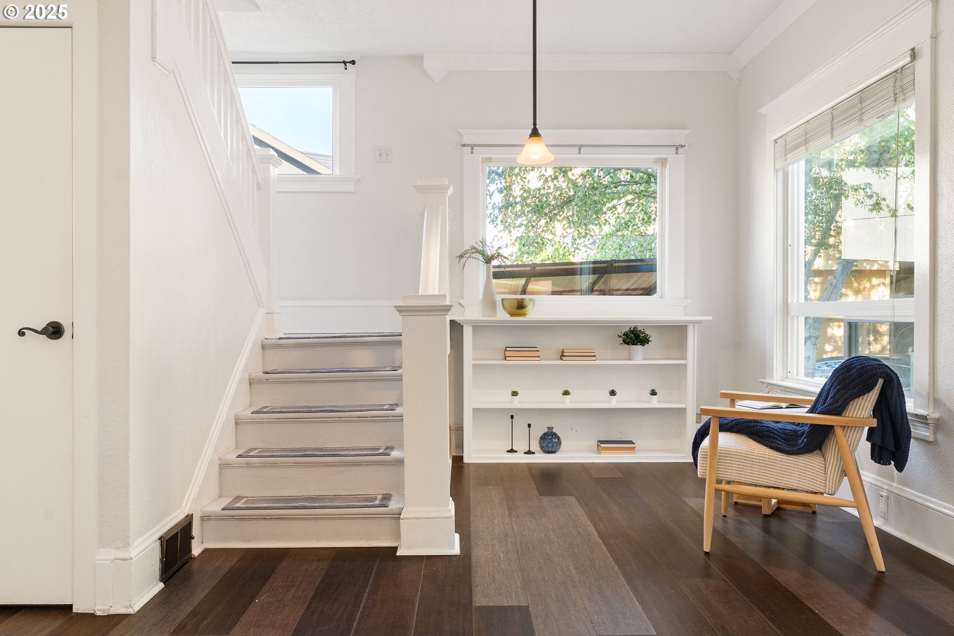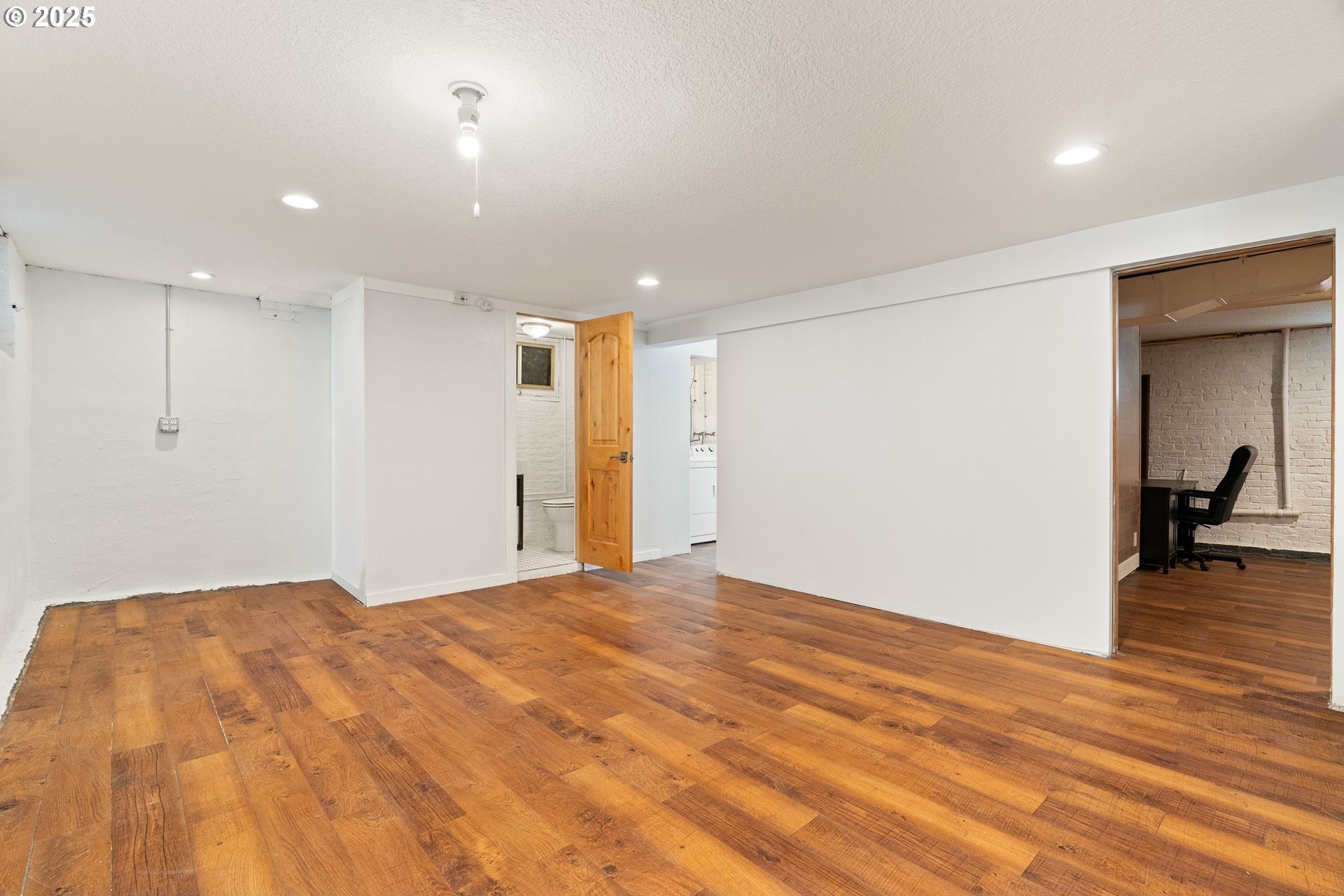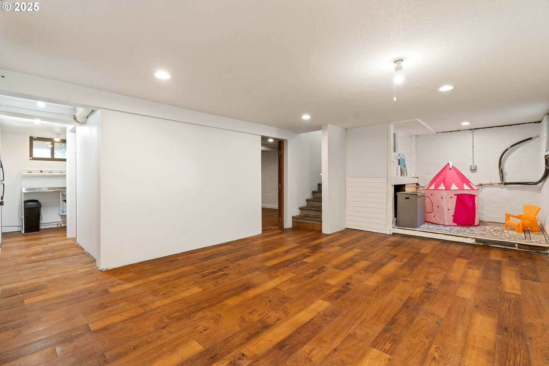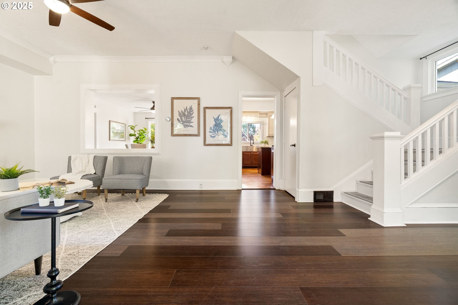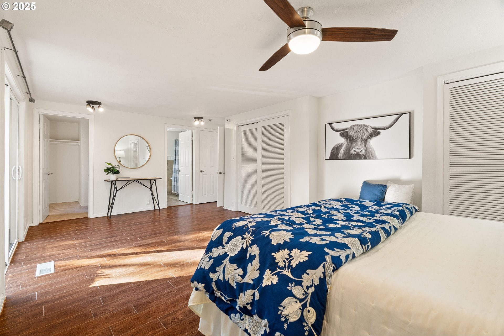 Step into this beautifully updated 1910 American Foursquare style farmhouse, where timeless character meets modern comfort. The spacious main level features easy care hard surface flooring (bamboo and engineered hardwood), fireplace, high ceilings, and spacious open floor plan designed for both entertaining and everyday living. The large kitchen is a true highlight with newer cabinetry, granite countertops, newer stainless-steel appliances, and a classic farmhouse sink. The adjacent dining room and eating nook each open to the expansive (50 yr) composite deck overlooking the fenced yard. There is a pre-wired "hot tub" ready deck/area in the backyard. The main-level primary suite offers convenience and privacy and features a balcony deck, walk-in plus 2 additional closets and ensuite bath. Four additional upstairs bedrooms provide plenty of space for family, guests, and maybe a 2nd home office. The expansive lower level offers endless possibilities - a bonus or party room, plus a home office or media room, a full bathroom with shower, also enjoy the existing wet bar area with sink, counters/cabinets, and refrigerator. Don't miss the nearly 800 sf of accessible unfinished attic space for storage or future living space. Thoughtful updates throughout preserve the home’s vintage charm while adding modern functionality with a newer “smart” Rheem “eco net” water heater, newer appliances, double pane windows/sliders, and fresh interior paint. Sited in a beautifully maintained neighborhood, on a cul-de-sac with level fenced yard, fruit trees, other edible plants, garden boxes, large driveway and covered area / carport. Conveniently located just minutes from Downtown Hillsboro, OHSU Hillsboro hospital, transit/light rail, Shute Park, Jackson Bottom Wetlands Preserve, and the high-tech corridor this one-of-a-kind property combines charm, space, and location in one perfect package! [Home Energy Score = 1. HES Report at https://rpt.greenbuildingregistry.com/hes/OR10241792]