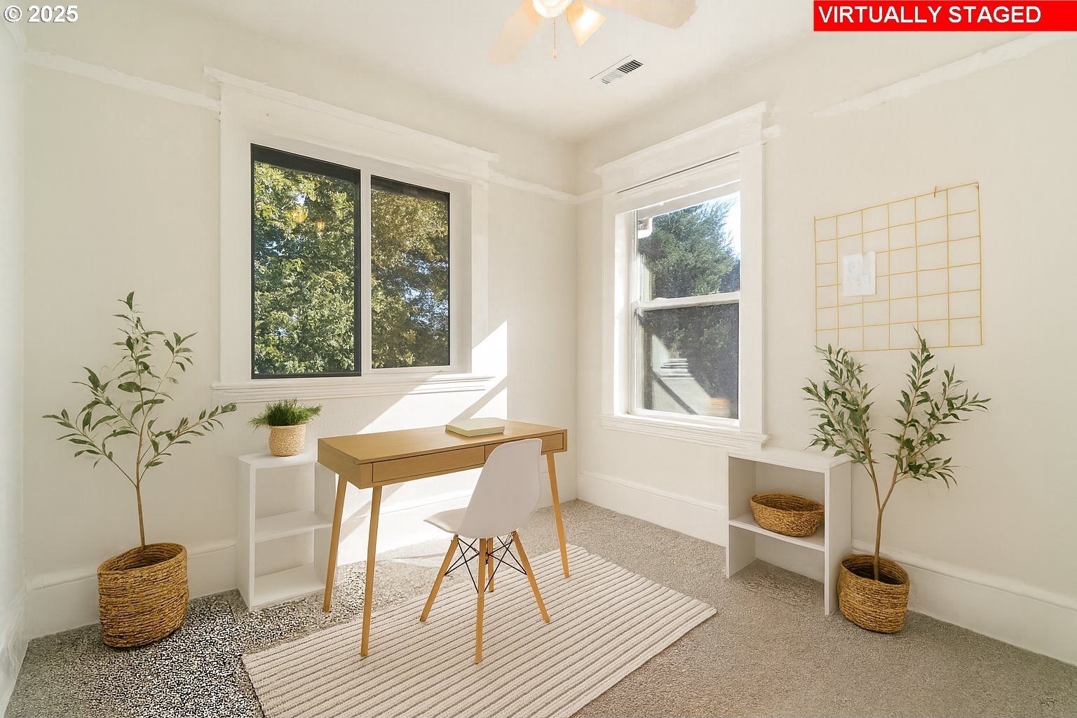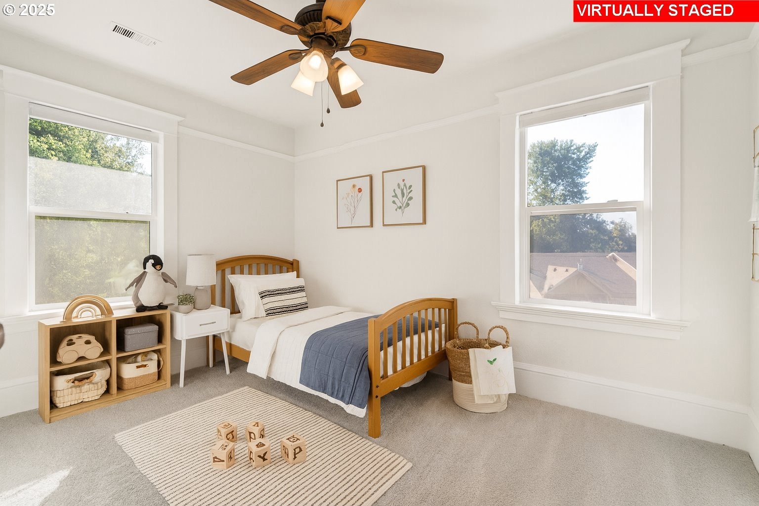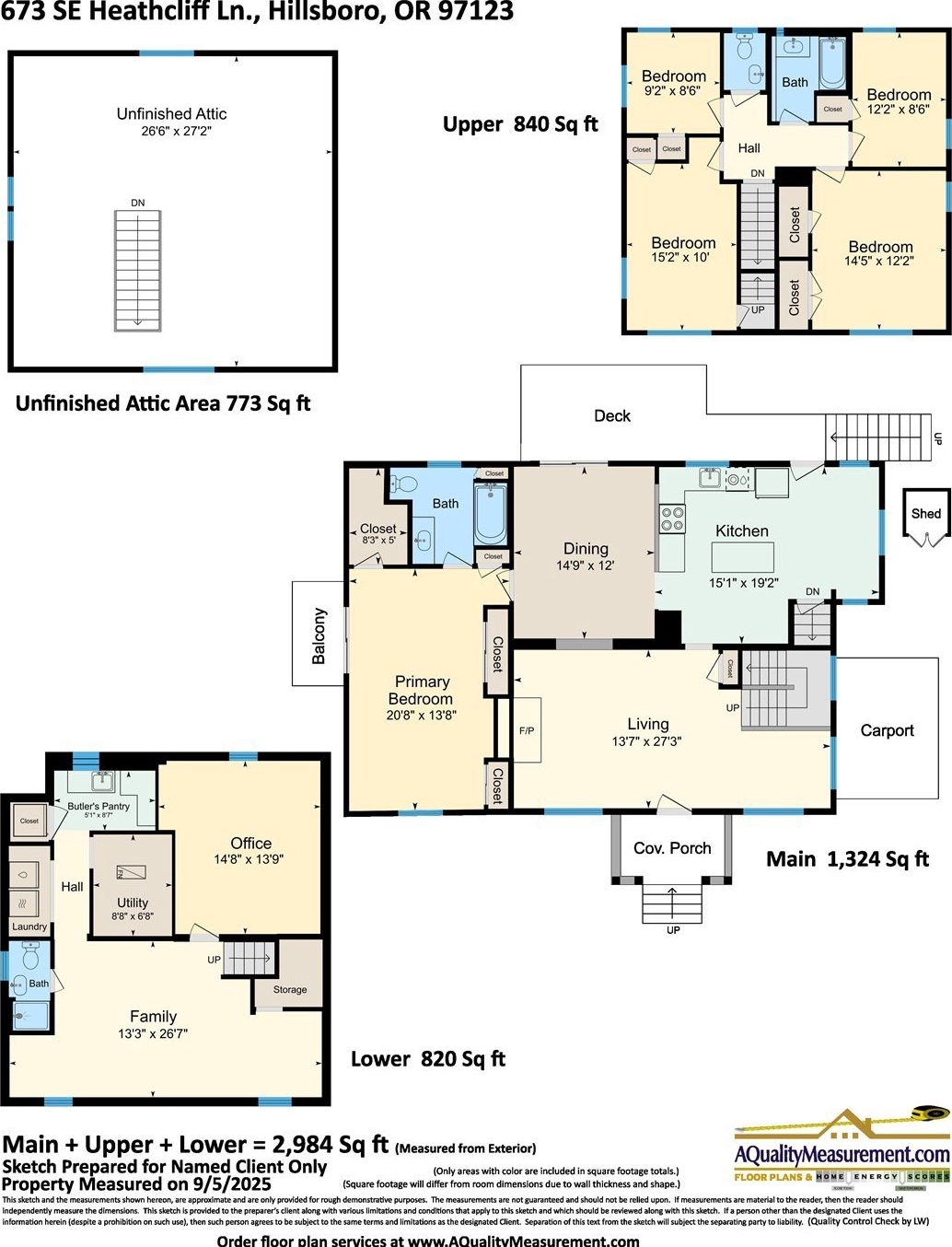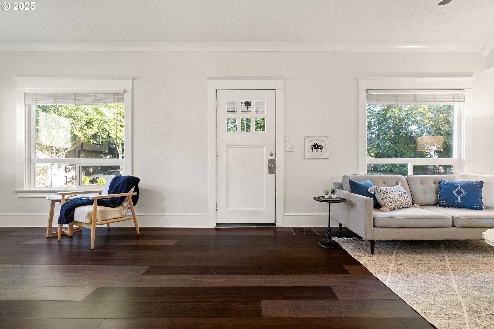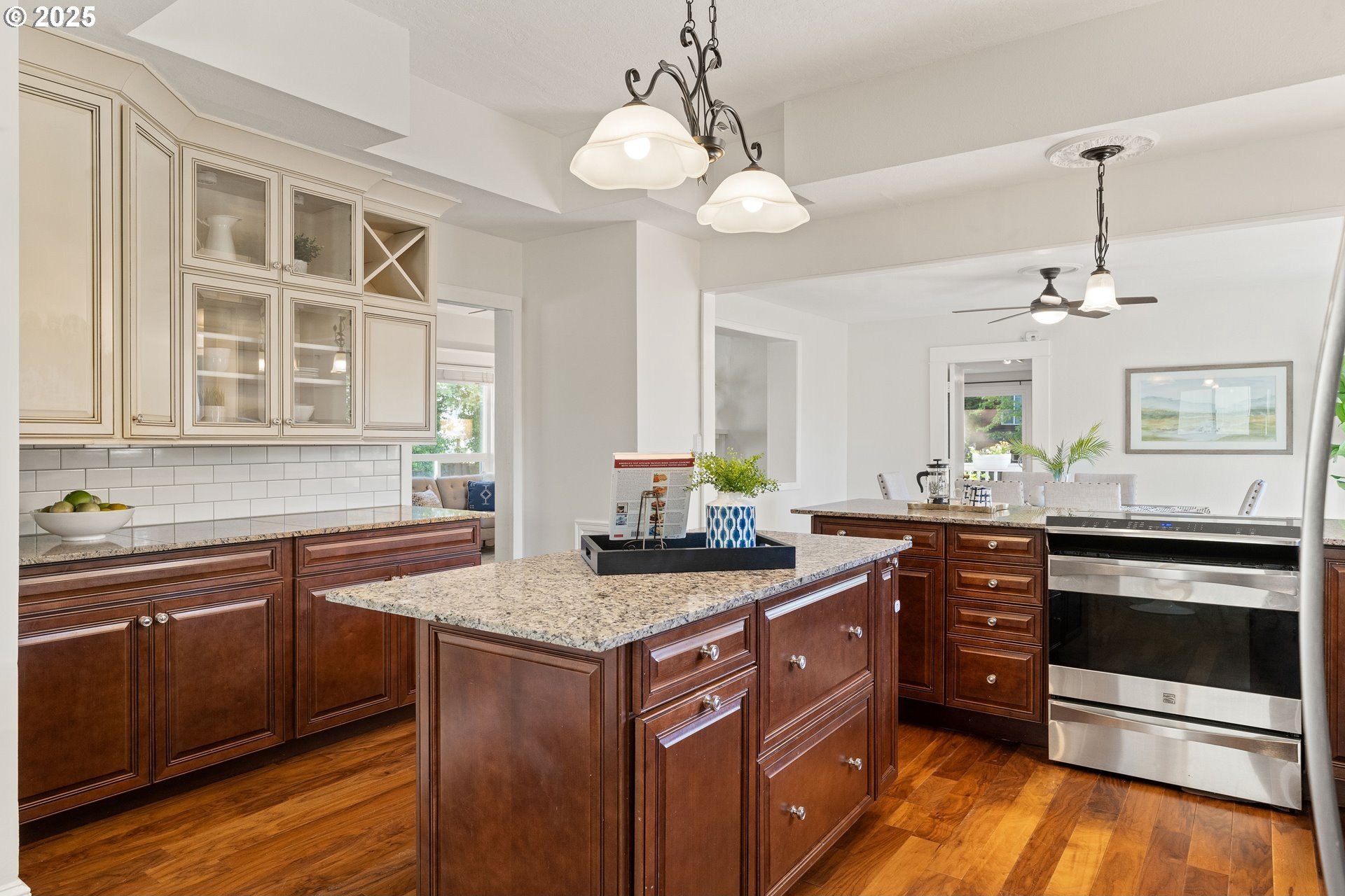 Step into this beautifully updated 1910 American Foursquare style farmhouse, where timeless character meets modern comfort. The spacious main level features easy care hard surface flooring (bamboo and engineered hardwood), fireplace, high ceilings, and spacious open floor plan designed for both entertaining and everyday living. The large kitchen is a true highlight with newer cabinetry, granite countertops, newer stainless-steel appliances, and a classic farmhouse sink. The adjacent dining room and eating nook each open to the expansive (50 yr) composite deck overlooking the fenced yard. There is a pre-wired "hot tub" ready deck/area in the backyard. The main-level primary suite offers convenience and privacy and features a balcony deck, walk-in plus 2 additional closets and ensuite bath. Four additional upstairs bedrooms provide plenty of space for family, guests, and maybe a 2nd home office. The expansive lower level offers endless possibilities - a bonus or party room, plus a home office or media room, a full bathroom with shower, also enjoy the existing wet bar area with sink, counters/cabinets, and refrigerator. Don't miss the nearly 800 sf of accessible unfinished attic space for storage or future living space. Thoughtful updates throughout preserve the home’s vintage charm while adding modern functionality with a newer “smart” Rheem “eco net” water heater, newer appliances, double pane windows/sliders, and fresh interior paint. Sited in a beautifully maintained neighborhood, on a cul-de-sac with level fenced yard, fruit trees, other edible plants, garden boxes, large driveway and covered area / carport. Conveniently located just minutes from Downtown Hillsboro, OHSU Hillsboro hospital, transit/light rail, Shute Park, Jackson Bottom Wetlands Preserve, and the high-tech corridor this one-of-a-kind property combines charm, space, and location in one perfect package! [Home Energy Score = 1. HES Report at https://rpt.greenbuildingregistry.com/hes/OR10241792]