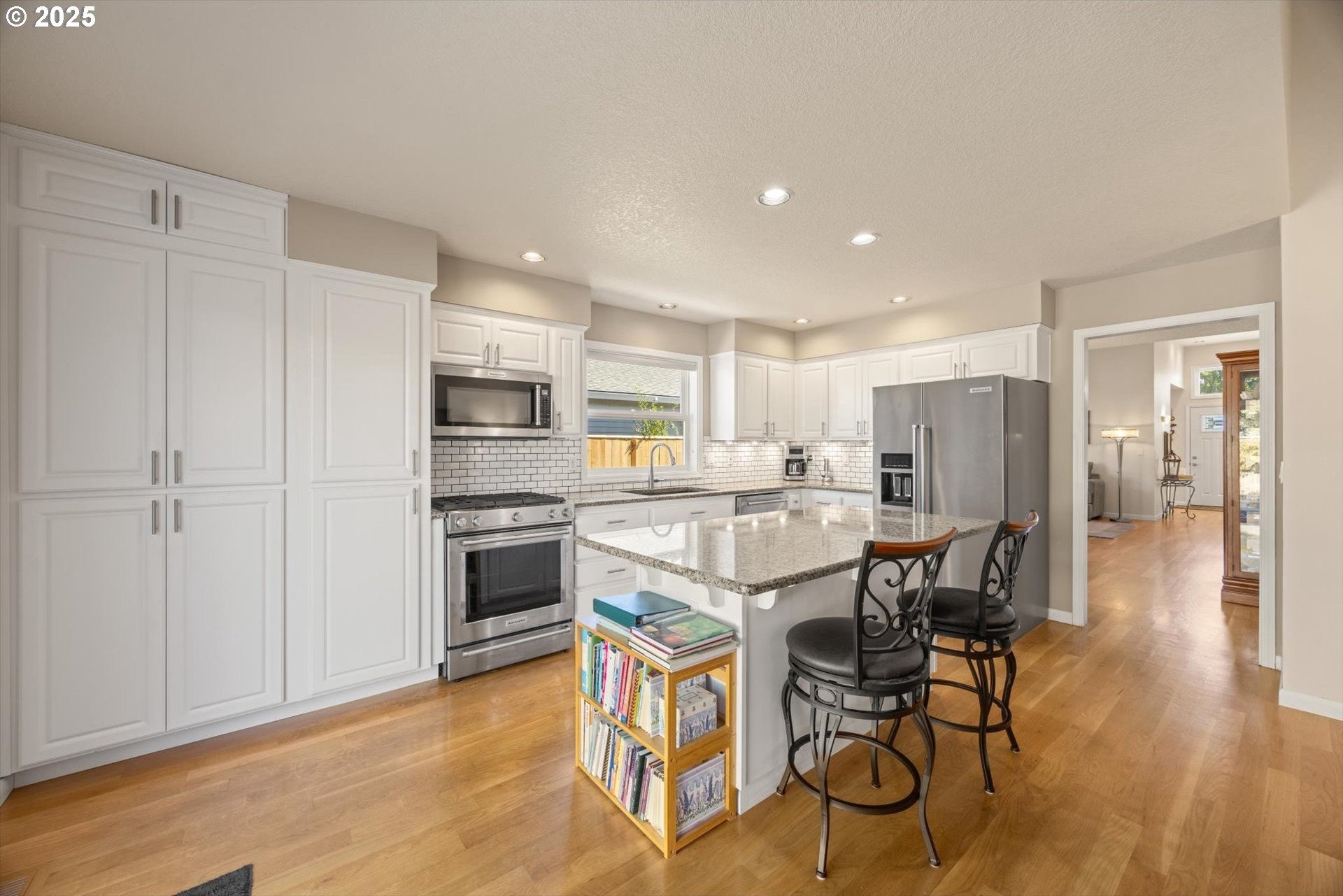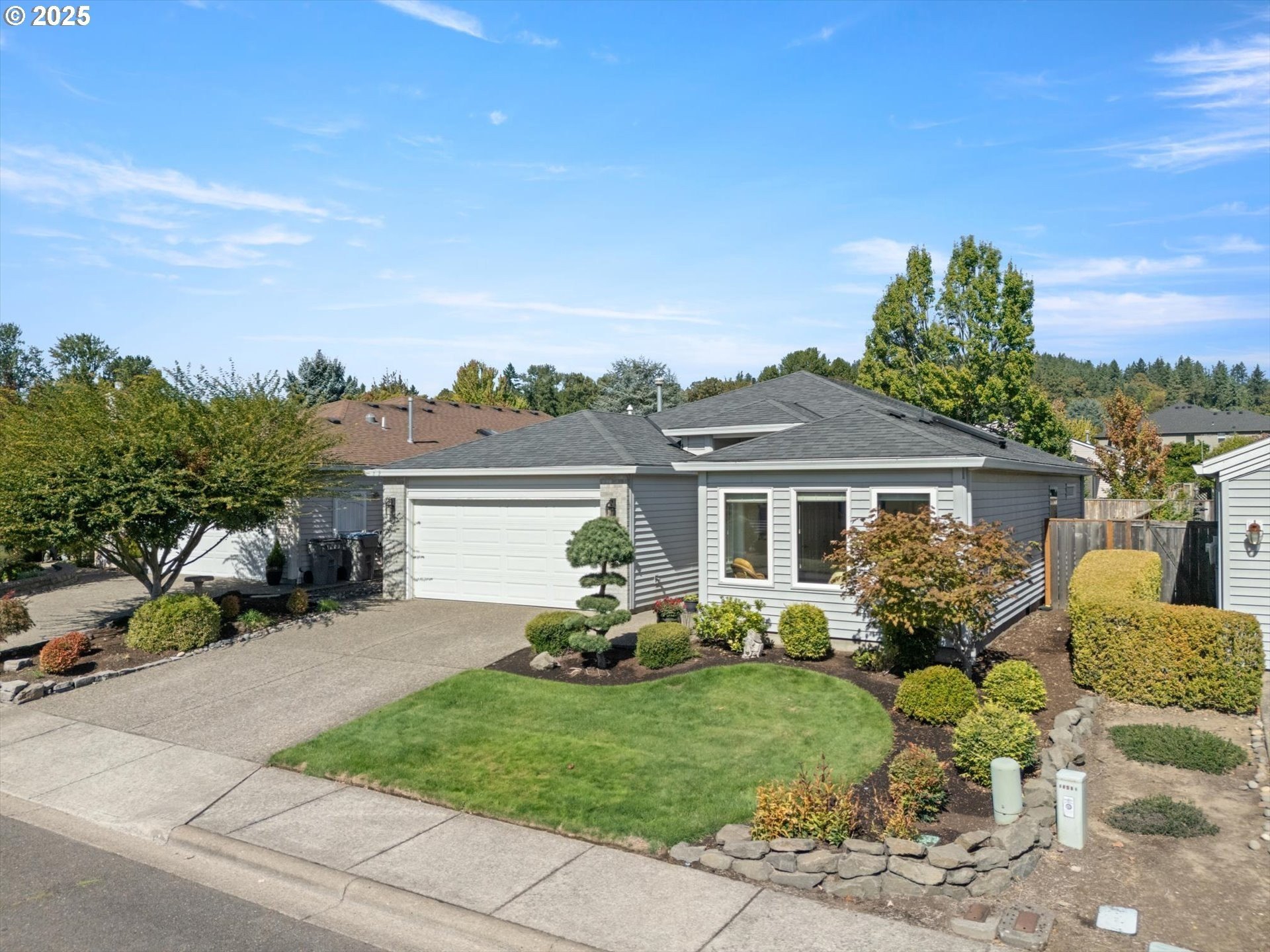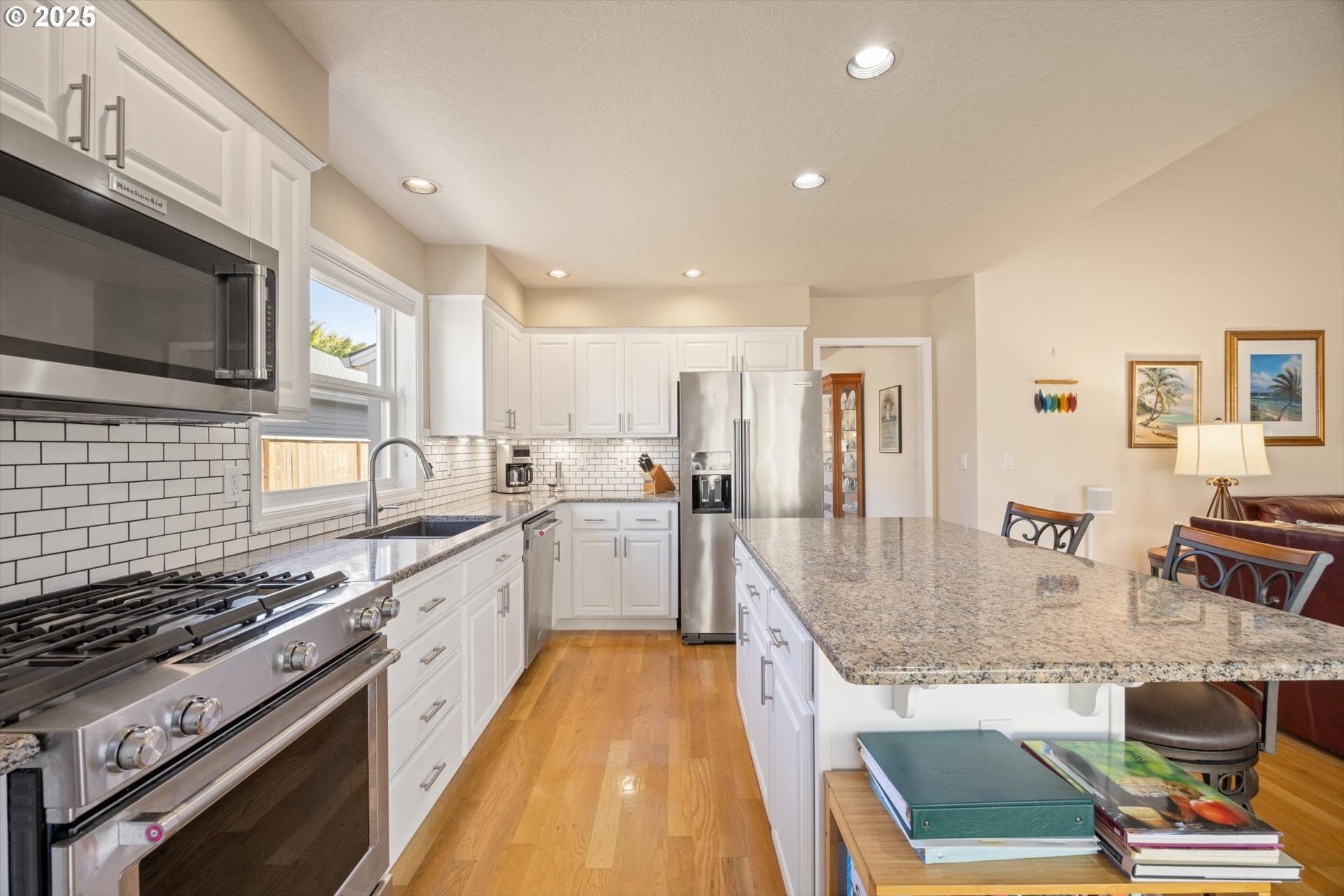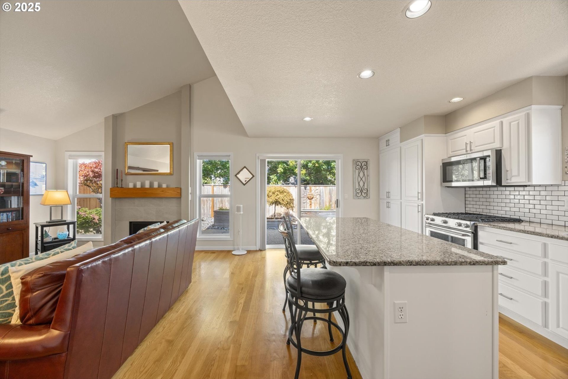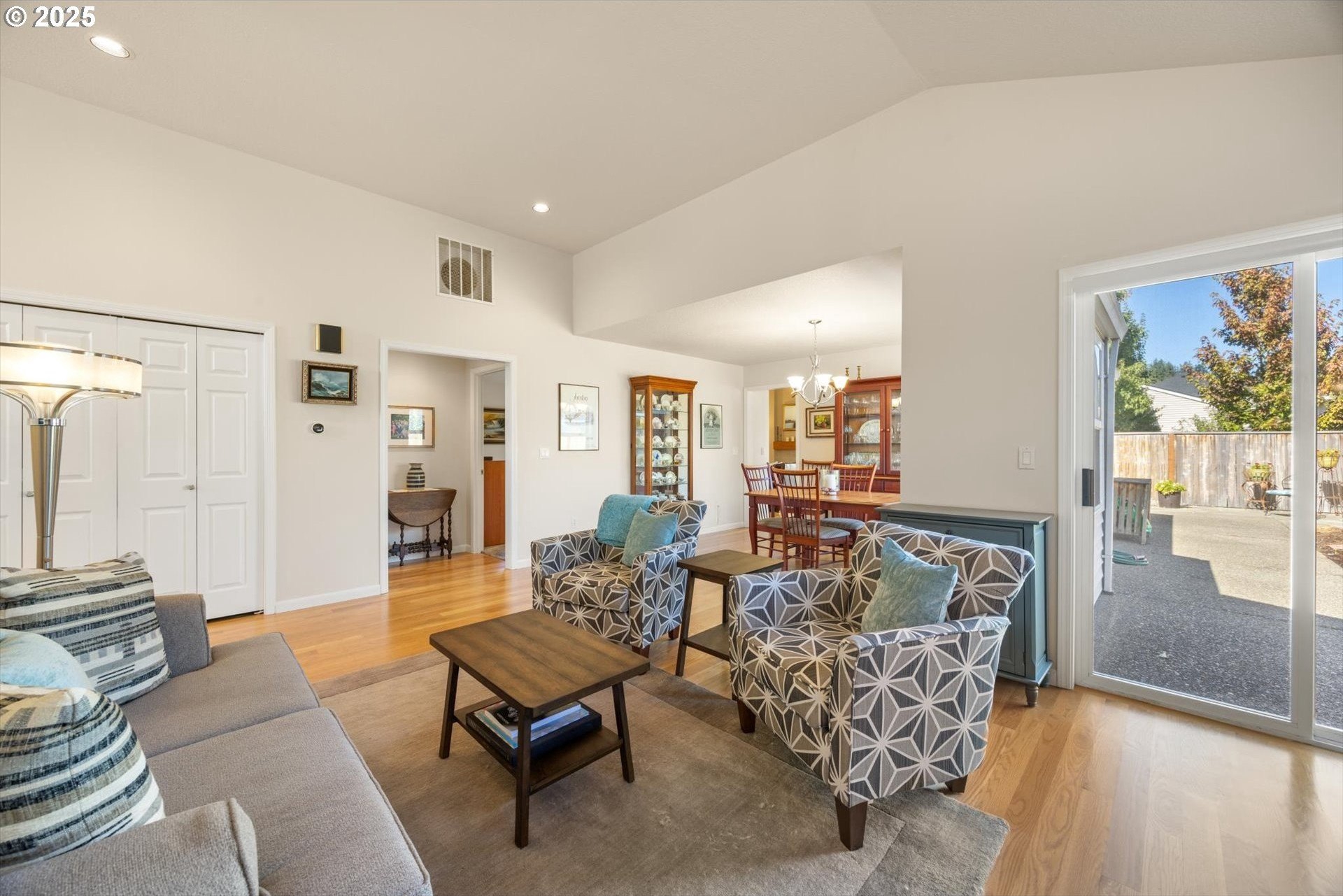 Fantastic 1 level home in highly desired quiet neighborhood. Light and bright throughout with open floor plan. 3 bedrooms, 2 baths. Large primary has updated bathroom, soak tub, 2 closets and vaulted ceilings. The updated kitchen features large island/eating bar, granite counter tops, stainless steel appliances, oven with warming drawer, refrigerator, under cabinet lighting and pantry with pull out drawers. Family room off kitchen has new gas fireplace and vaulted ceilings. Formal dining room is open to living room with slider to patio. New hardwoods throughout. Newer HVAC and electrical panel. New H2O heater. Private backyard, new fence, sprinkler system, gas hookup. 2 car oversized garage. Work bench, tool chest stays, washer/dryer included. Convenient to schools, shopping and freeway access. No HOA! Home warranty included.