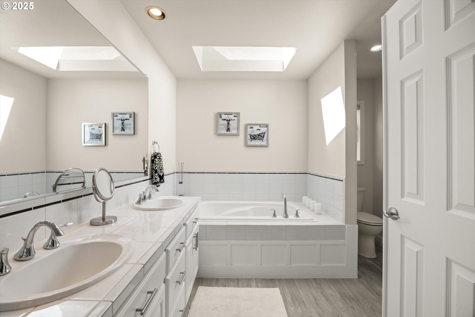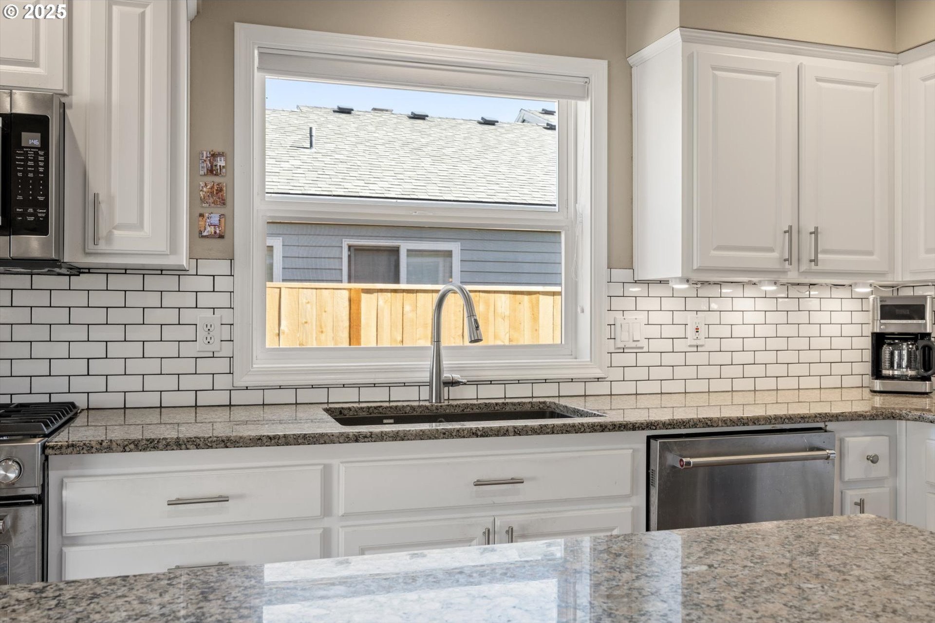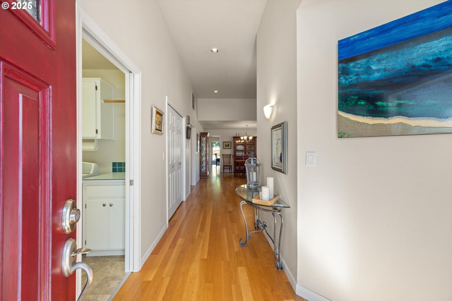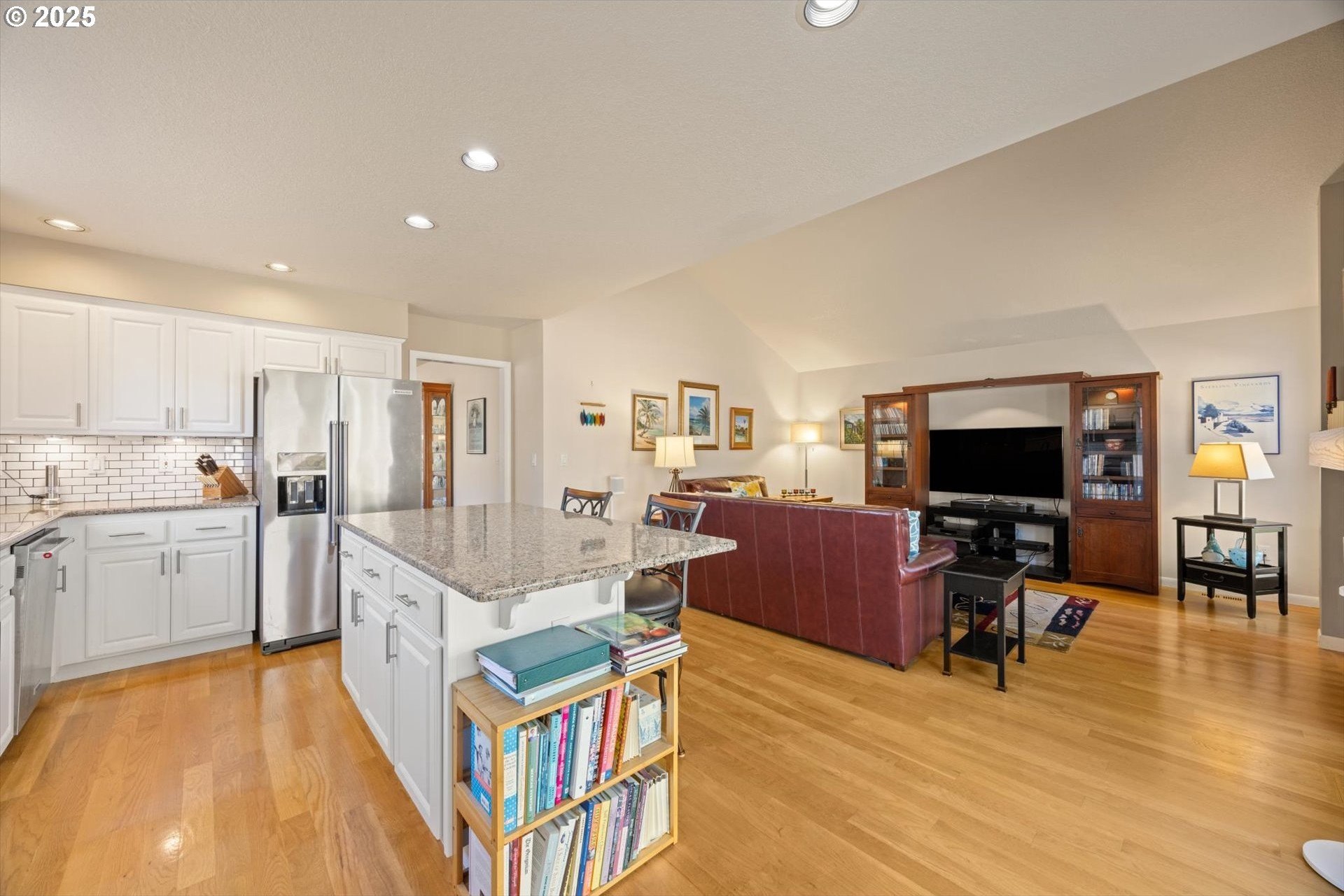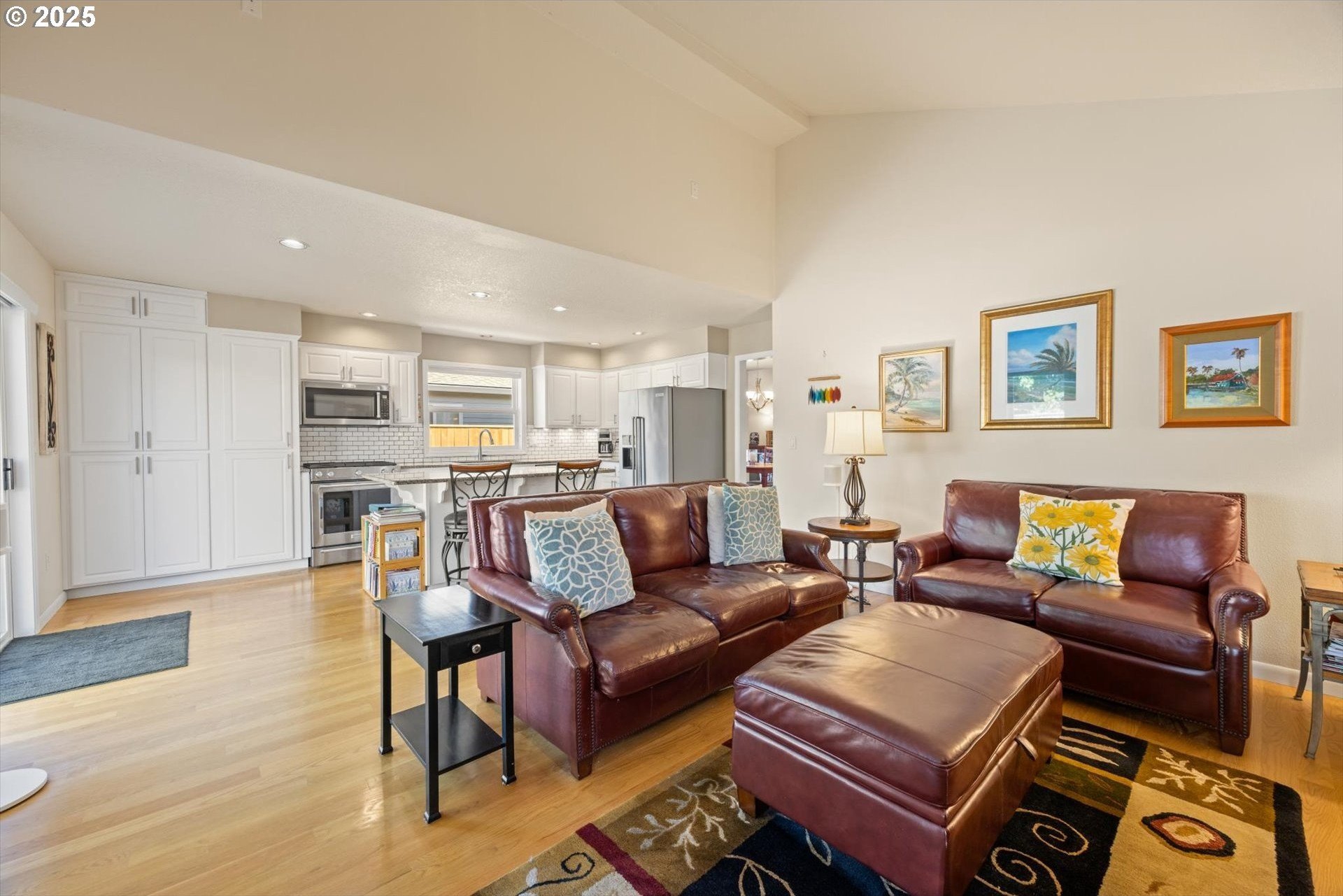 Fantastic 1 level home in highly desired quiet neighborhood. Light and bright throughout with open floor plan. 3 bedrooms, 2 baths. Large primary has updated bathroom, soak tub, 2 closets and vaulted ceilings. The updated kitchen features large island/eating bar, granite counter tops, stainless steel appliances, oven with warming drawer, refrigerator, under cabinet lighting and pantry with pull out drawers. Family room off kitchen has new gas fireplace and vaulted ceilings. Formal dining room is open to living room with slider to patio. New hardwoods throughout. Newer HVAC and electrical panel. New H2O heater. Private backyard, new fence, sprinkler system, gas hookup. 2 car oversized garage. Work bench, tool chest stays, washer/dryer included. Convenient to schools, shopping and freeway access. No HOA! Home warranty included.
