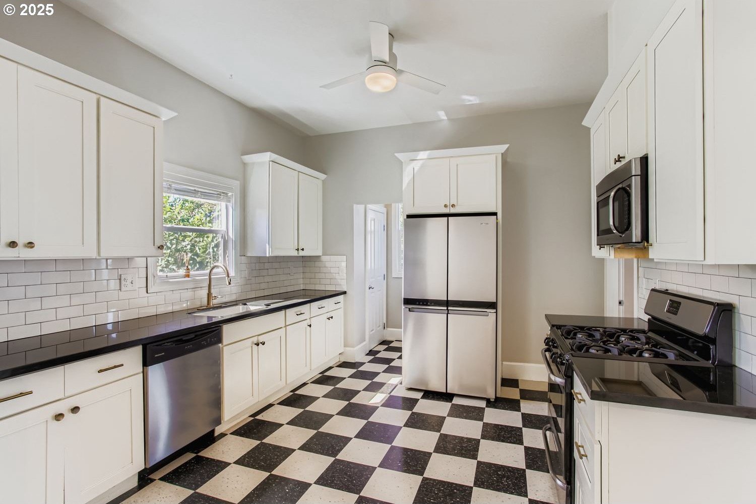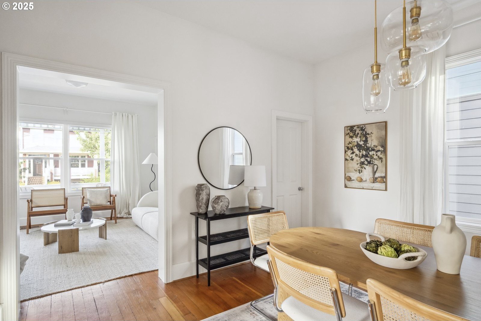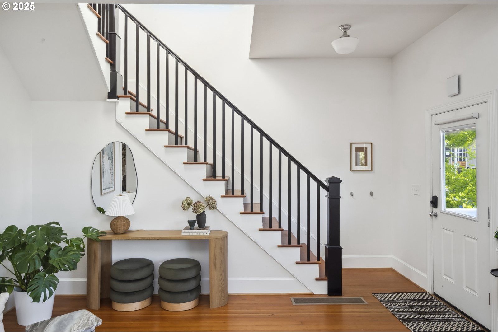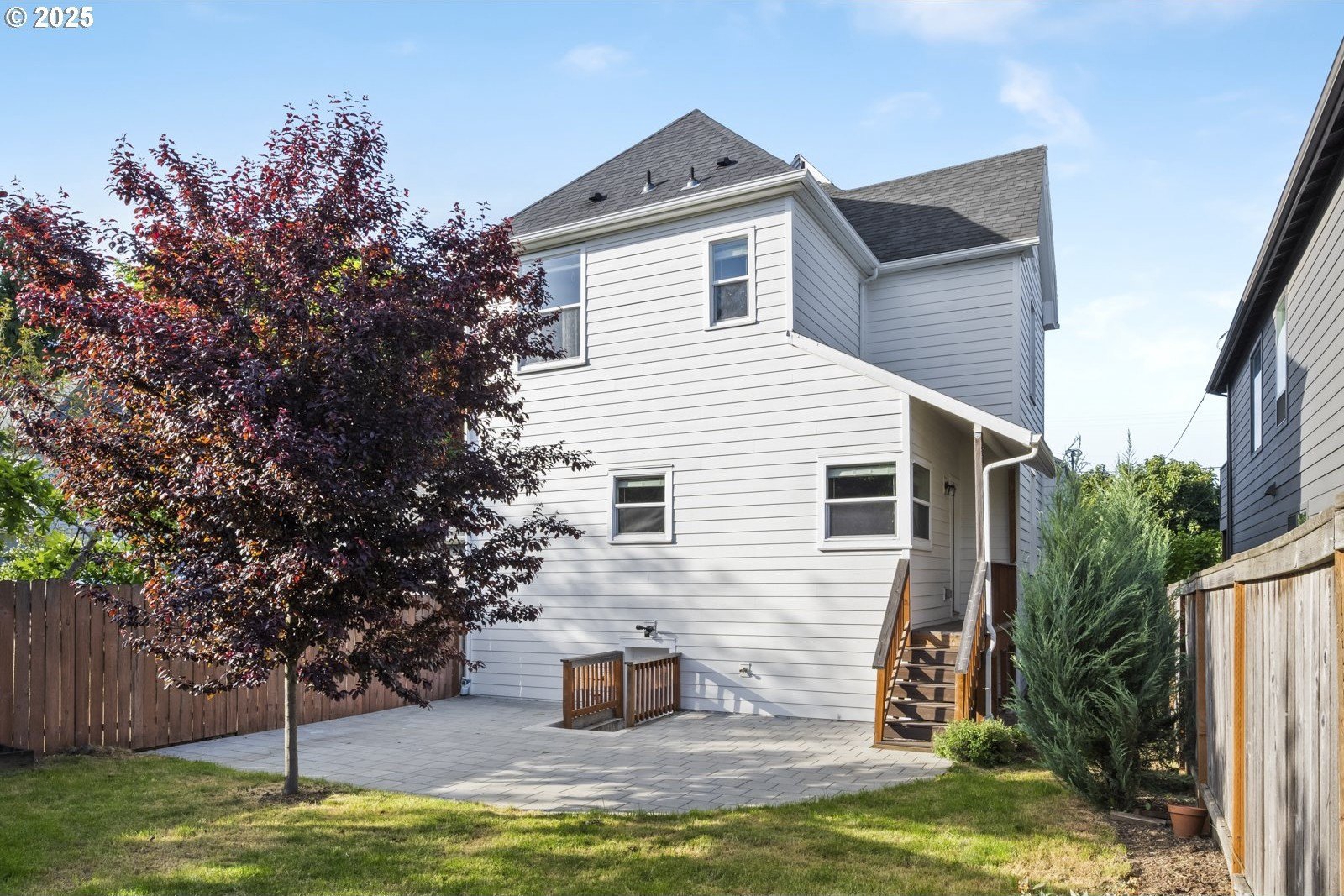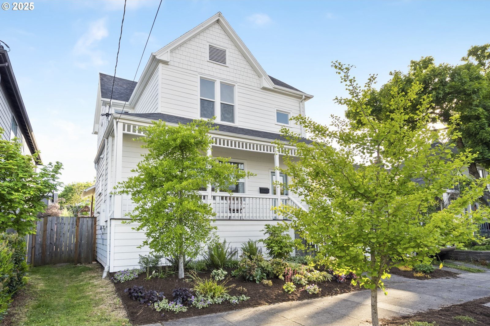 Timeless charm meets modern comfort in this beautifully reimagined Old Portland-style farmhouse in the heart of University Park. This 4-bed, 2.5-bath gem underwent a full remodel in 2014, thoughtfully updating systems and layout while preserving its original character. Since then, the current owners have added even more value, including a complete residing of the home, installing new air conditioning, new landscaping, and a brand-new paver patio. These updates enhance both curb appeal and long-term durability.Inside, you'll find soaring ceilings, original hardwood floors, and sun-filled spaces that blend warmth and functionality. The spacious living and dining areas flow into a stylish, updated kitchen. A versatile flex space off the dining area offers the perfect space for an additional main floor bedroom, studio, or office. Upstairs features a serene primary suite with en-suite bath, two additional bedrooms, a second full bath, and a convenient laundry room. Enjoy year-round comfort with central A/C and peace of mind from ongoing, meticulous maintenance.In addition to the inviting backyard and patio, the alley behind the home, offers parking and potential. There's room to add a garage, expand the backyard, or create a combination of both, giving you flexibility and future value.Located just blocks from the University of Portland, parks, cafes, and local favorites like New Seasons, this home offers a rare blend of historic charm and modern ease. Don’t miss this exceptional opportunity to own a piece of Portland history, fully refreshed and ready for its next chapter. [Home Energy Score = 4. HES Report at https://rpt.greenbuildingregistry.com/hes/OR10238213]