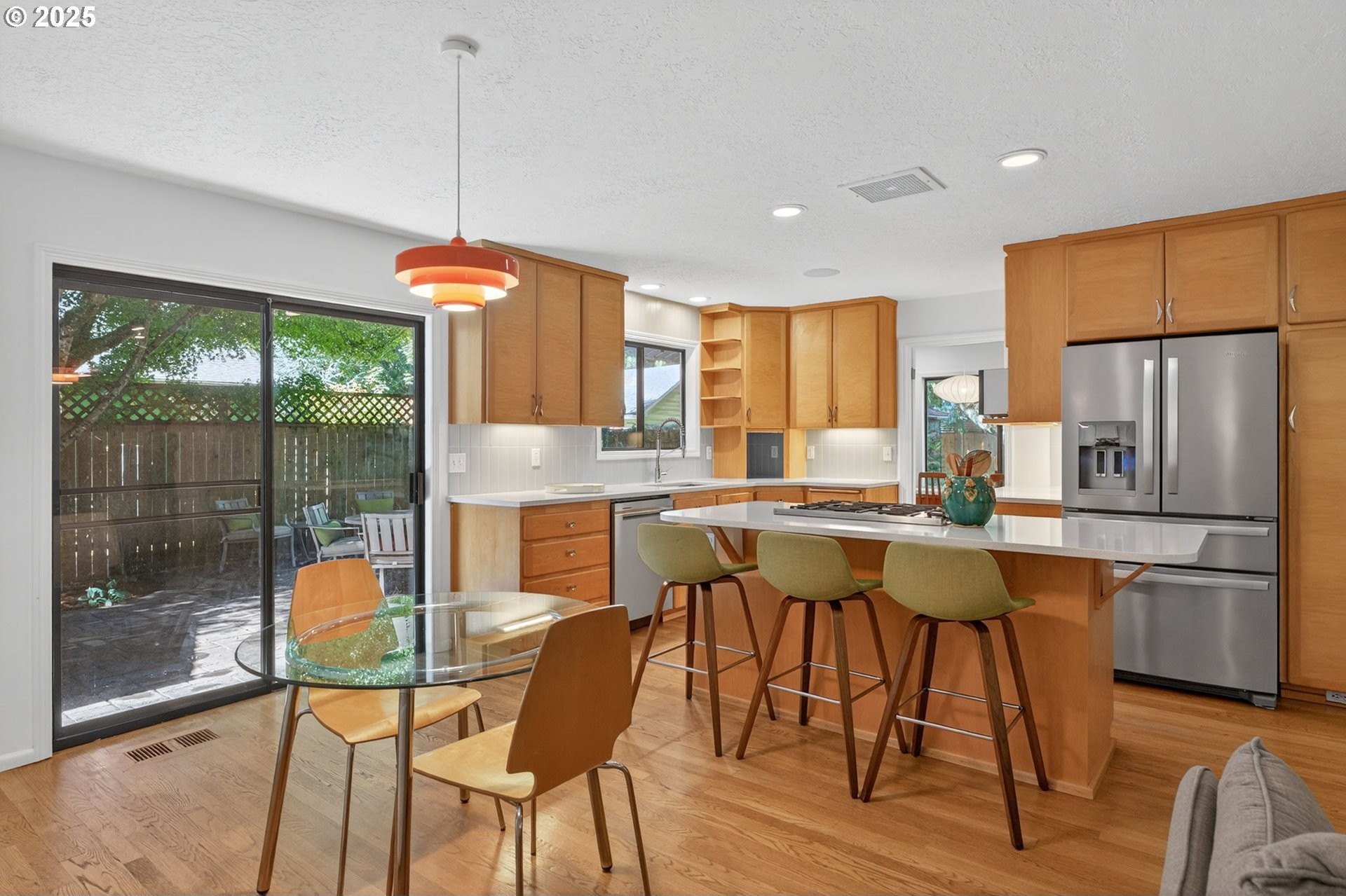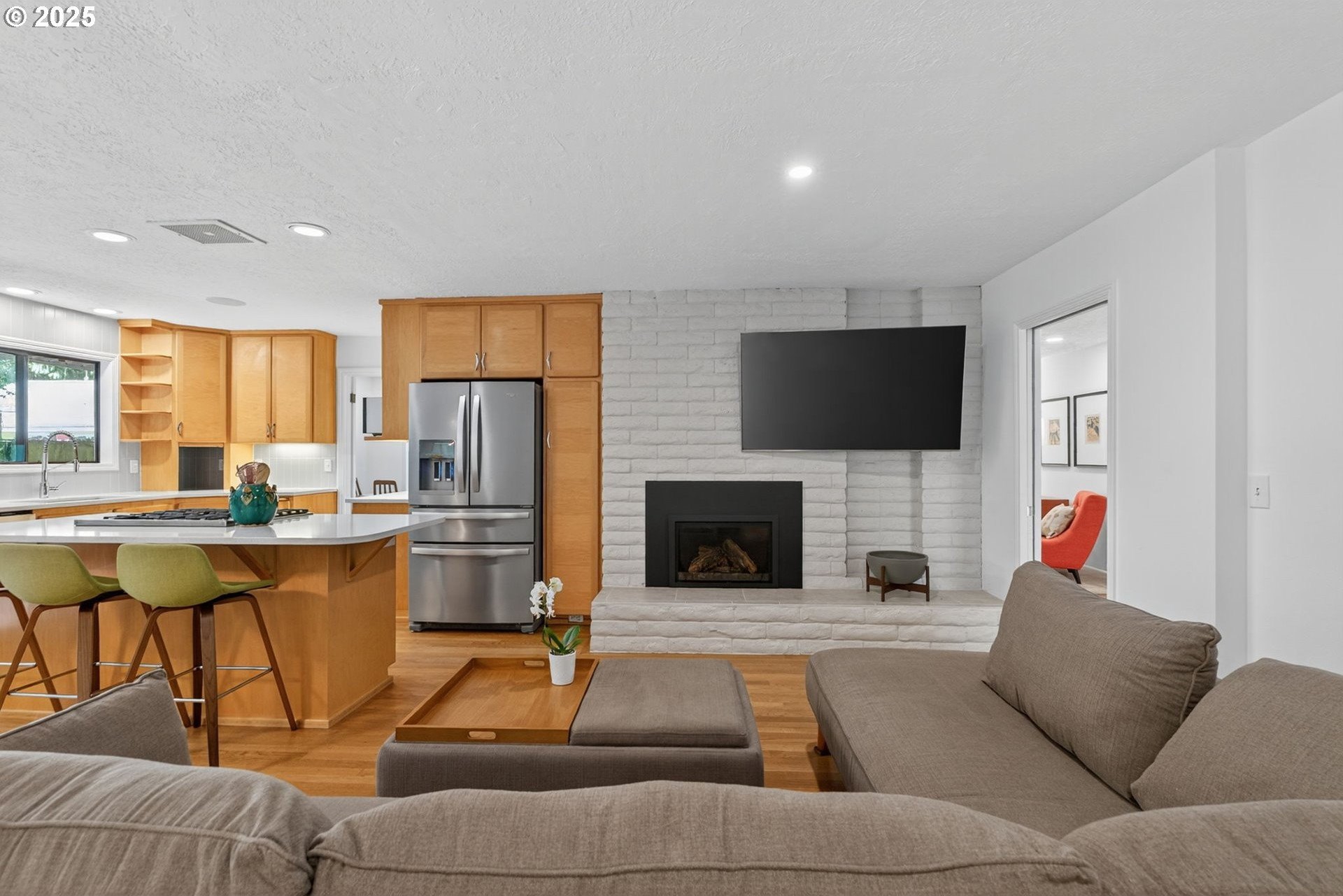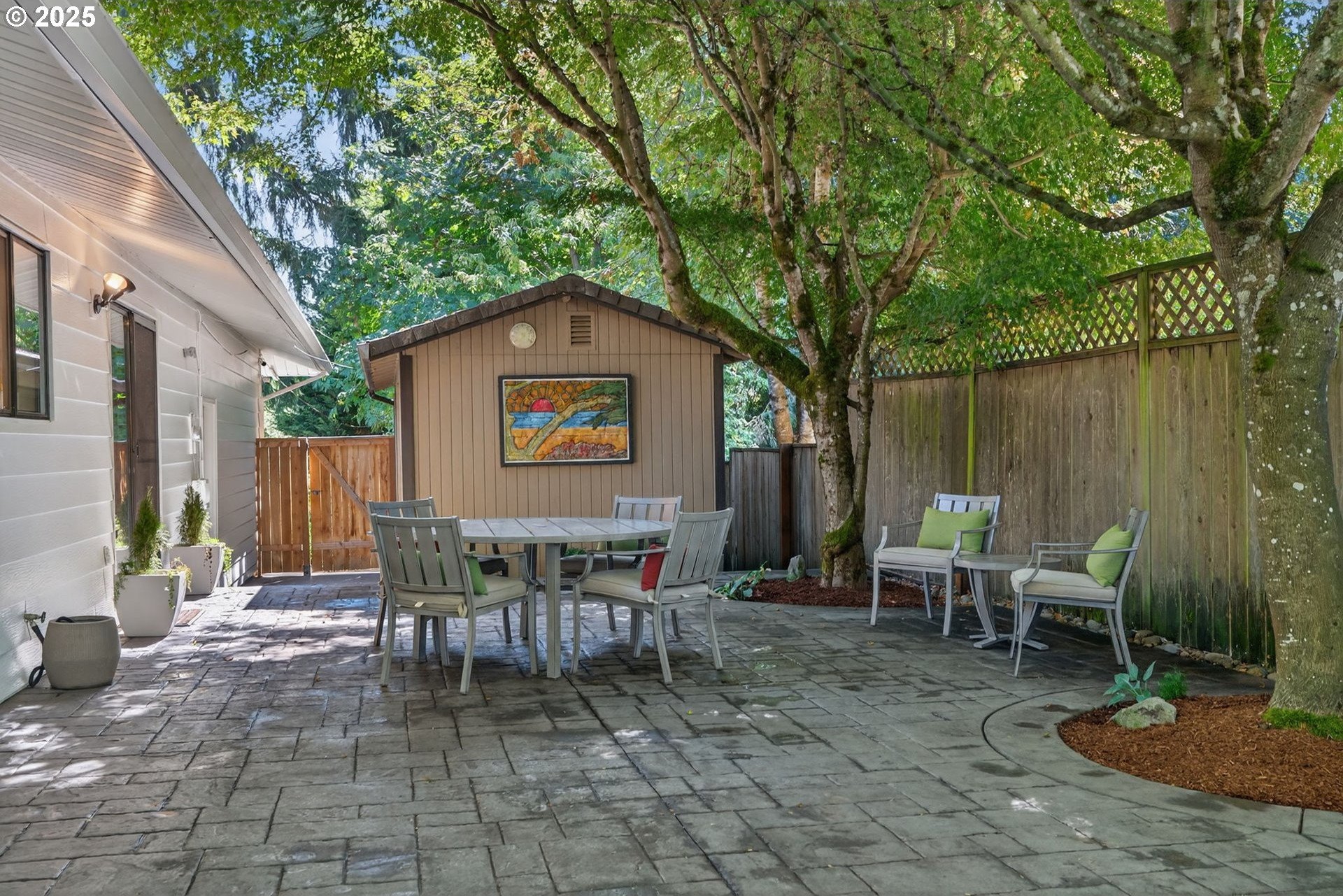 *Open houses Thursday 9/25 4-6pm, Saturday 9/27 11-1pm, and Sunday 9/28 10-12pm* Your private retreat in Maplewood — Where peace meets possibility. Tucked at the end of a dead-end street, this one level 5-bedroom stunner is anything but ordinary. Set on a 1/3 acre lot, this home offers the best of both worlds—ultimate privacy with all the room you need. Step inside to a warm, welcoming formal living room, complete with a large brick fireplace. Move seamlessly into a dedicated dining area, then into an updated eat-in kitchen complete with an island, bar seating, and a bonus second dining nook. Off the kitchen is another living space with a second fireplace, perfect for entertaining. Slide open the doors from the kitchen and step out onto a huge patio, surrounded by nature and fully fenced. With multiple storage sheds (including a hidden bonus 200+ sq ft of basement storage!), there's room for all your gear—and then some. Every bedroom feels like a treehouse escape, surrounded by mature landscaping and flooded with natural light. The Primary Suite features two large closets and a private ensuite bath, giving you a peaceful sanctuary all your own. Outside, the yard is a masterpiece: lush Rhododendrons, mature Japanese Maples, vegetable garden, and more—all maintained with a full-lot irrigation system. With a 2-car garage, circular driveway parking, AND RV/boat parking, there’s space for everything. All this just minutes from April Hill Park, Gabriel Park, and the charm of Multnomah Village.