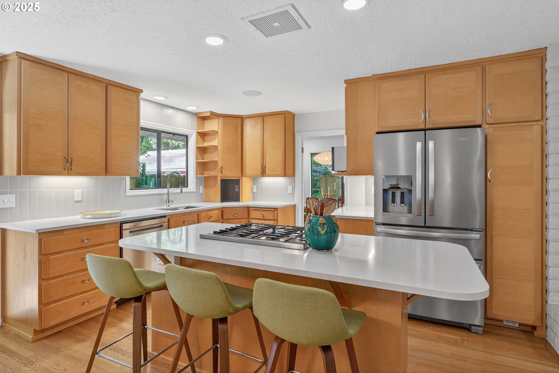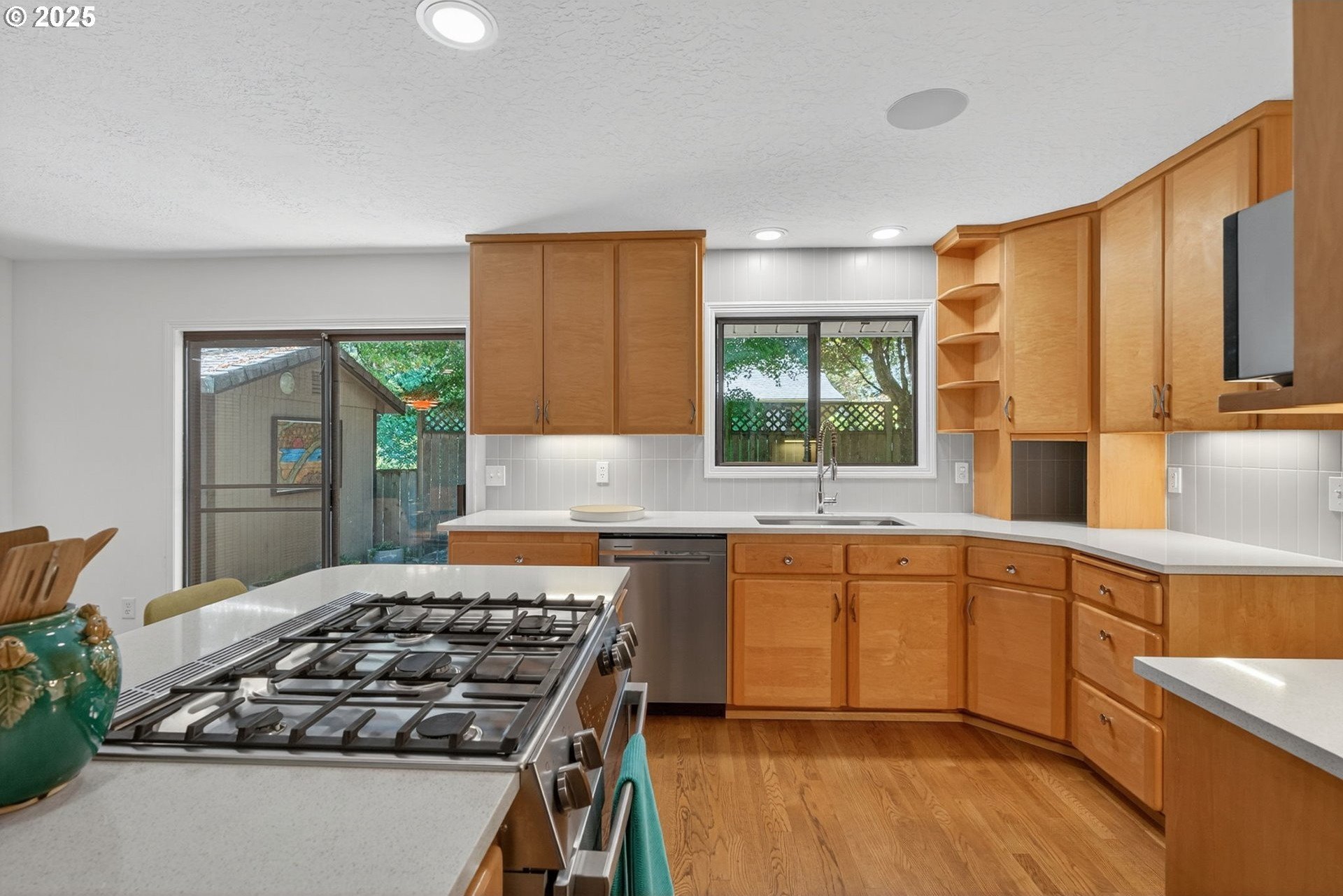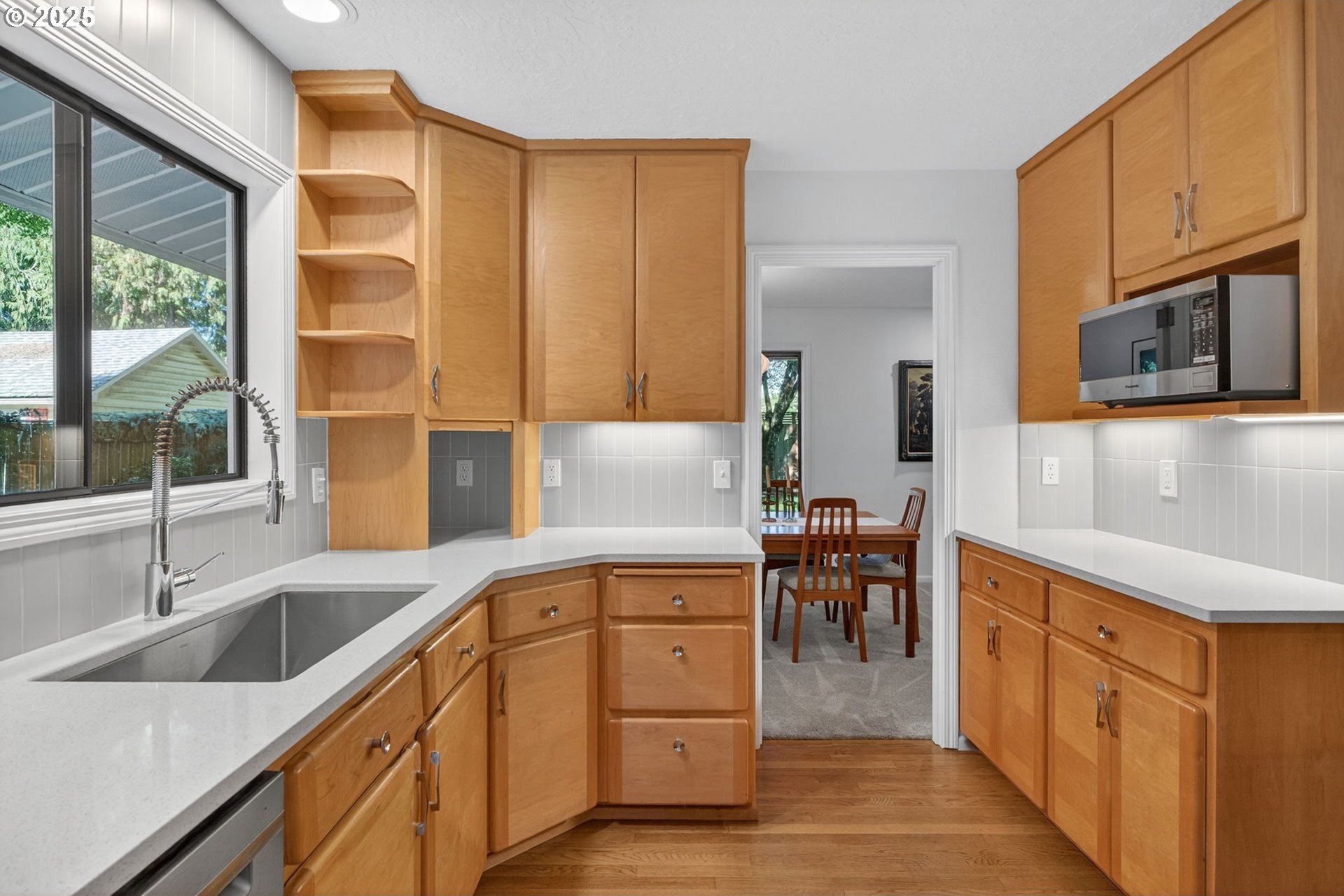 *Open houses Thursday 9/25 4-6pm, Saturday 9/27 11-1pm, and Sunday 9/28 10-12pm* Your private retreat in Maplewood — Where peace meets possibility. Tucked at the end of a dead-end street, this one level 5-bedroom stunner is anything but ordinary. Set on a 1/3 acre lot, this home offers the best of both worlds—ultimate privacy with all the room you need. Step inside to a warm, welcoming formal living room, complete with a large brick fireplace. Move seamlessly into a dedicated dining area, then into an updated eat-in kitchen complete with an island, bar seating, and a bonus second dining nook. Off the kitchen is another living space with a second fireplace, perfect for entertaining. Slide open the doors from the kitchen and step out onto a huge patio, surrounded by nature and fully fenced. With multiple storage sheds (including a hidden bonus 200+ sq ft of basement storage!), there's room for all your gear—and then some. Every bedroom feels like a treehouse escape, surrounded by mature landscaping and flooded with natural light. The Primary Suite features two large closets and a private ensuite bath, giving you a peaceful sanctuary all your own. Outside, the yard is a masterpiece: lush Rhododendrons, mature Japanese Maples, vegetable garden, and more—all maintained with a full-lot irrigation system. With a 2-car garage, circular driveway parking, AND RV/boat parking, there’s space for everything. All this just minutes from April Hill Park, Gabriel Park, and the charm of Multnomah Village.