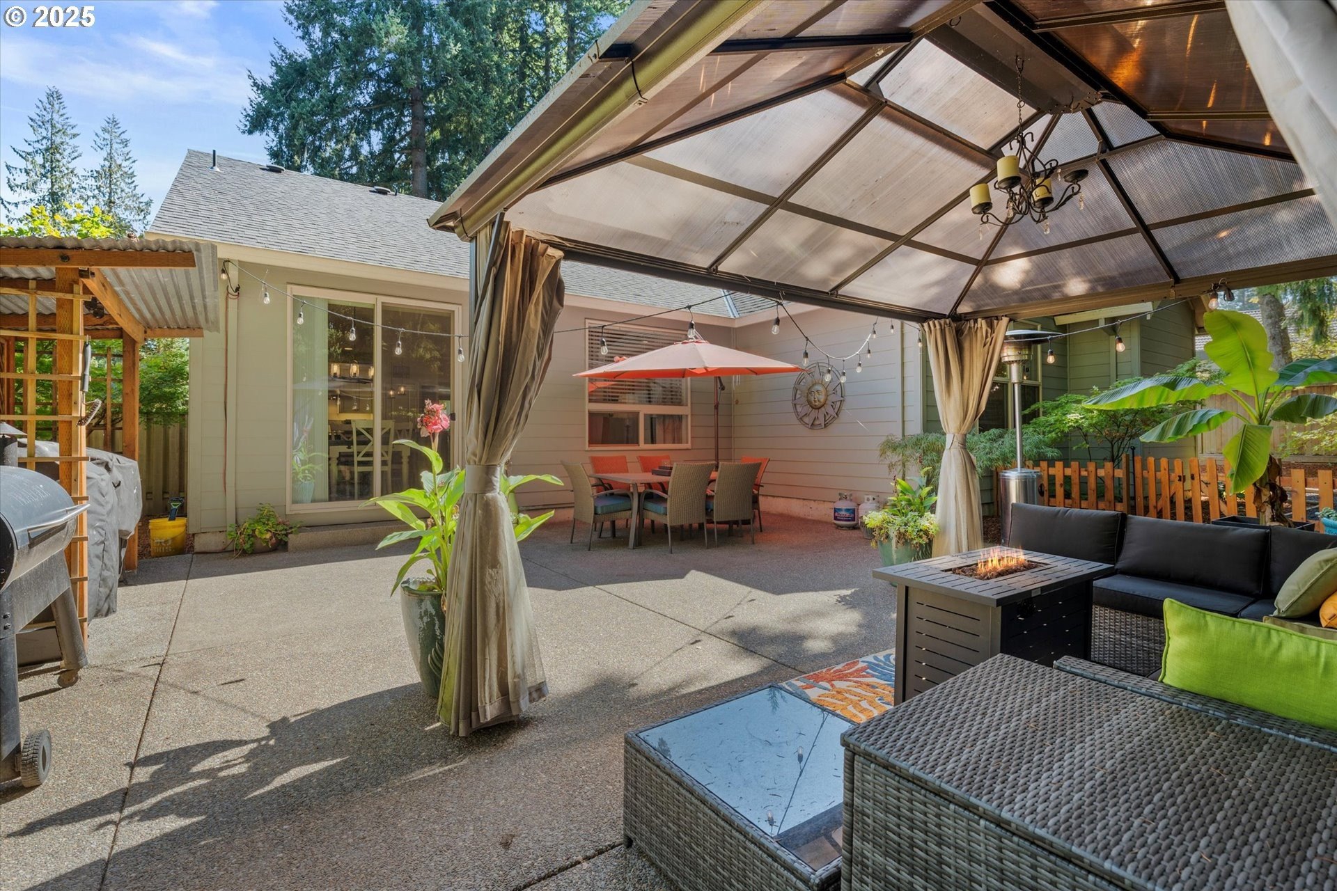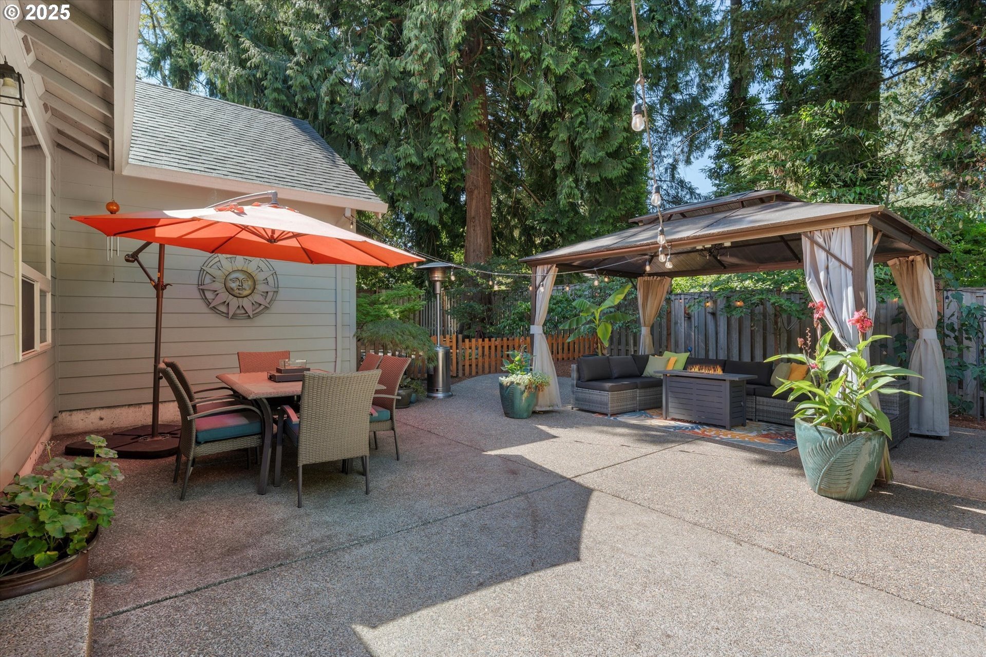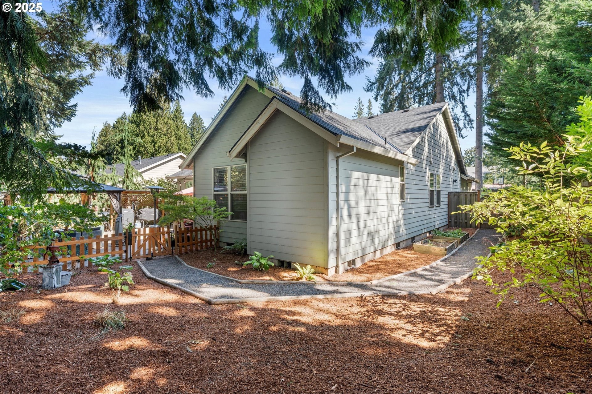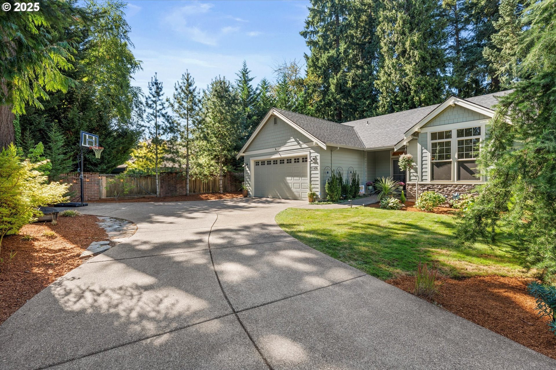 Welcome to your own private retreat — a thoughtfully designed one-level home that combines comfort and convenience in every detail. Step inside to the maple floors that flow through the living areas. The open concept kitchen with granite countertops, pantry storage, and an island with bar seating. The family room invites you to gather around the cozy gas fireplace, framed by custom built-ins and the dining room opens to the backyard with a slider—perfect for easy indoor-outdoor living. The spacious primary suite offers double sinks with quartz countertops, a walk-in closet, and a low-step shower. While the office/den with vaulted ceiling and closet provides flexible space for work or a 4th bedroom. There is a convenient laundry room with sink, storage, and tile flooring too.Out back, the private yard is truly an extension of the home. Designed for gatherings and relaxation, it features a large patio, gazebo, BBQ station with cover, patio lights, and raised garden beds. Fully fenced and surrounded by lush greenery, it’s your own private escape—perfect for both quiet mornings and lively evenings with friends.2 car garage converted to a McMenamins-style game room—great for fun gatherings, and easily converted back if you prefer!This home’s tranquil setting offers a sense of escape, yet you’re just minutes from nearby amenities and the heart of Tigard. Whether you’re relaxing indoors or enjoying the peaceful outdoor spaces, this home offers the perfect blend of privacy, serenity, and comfort.