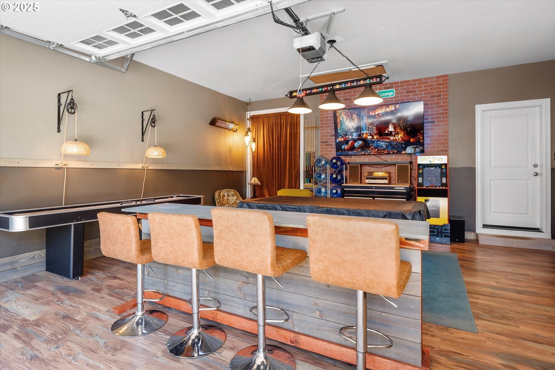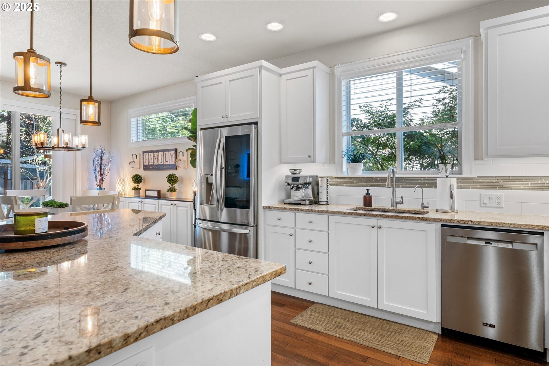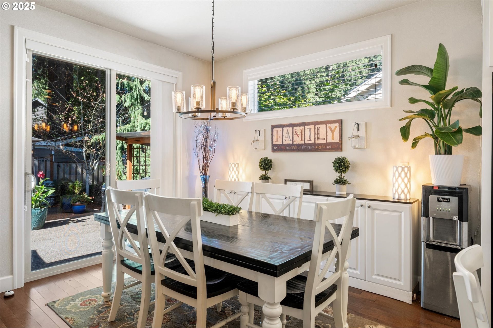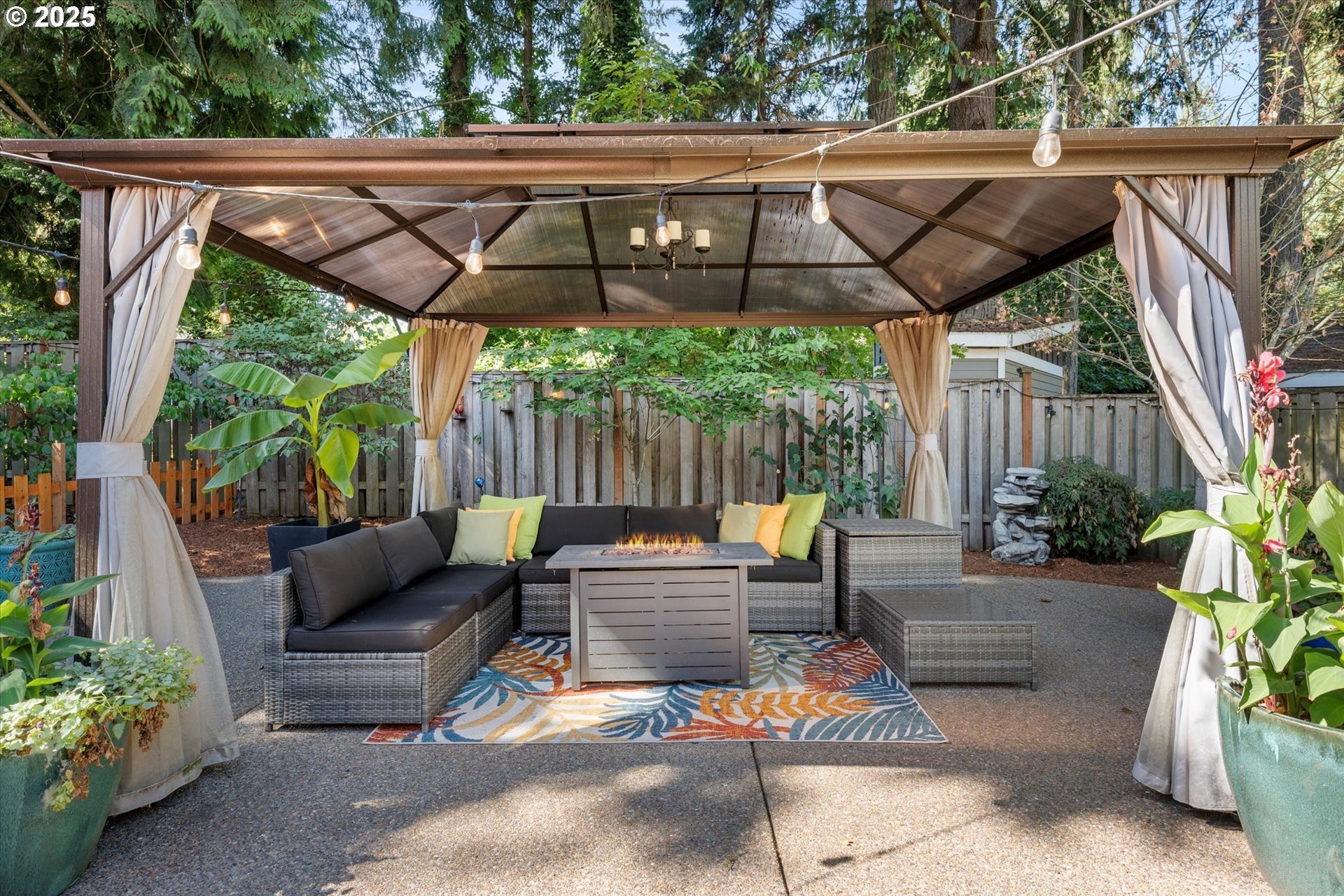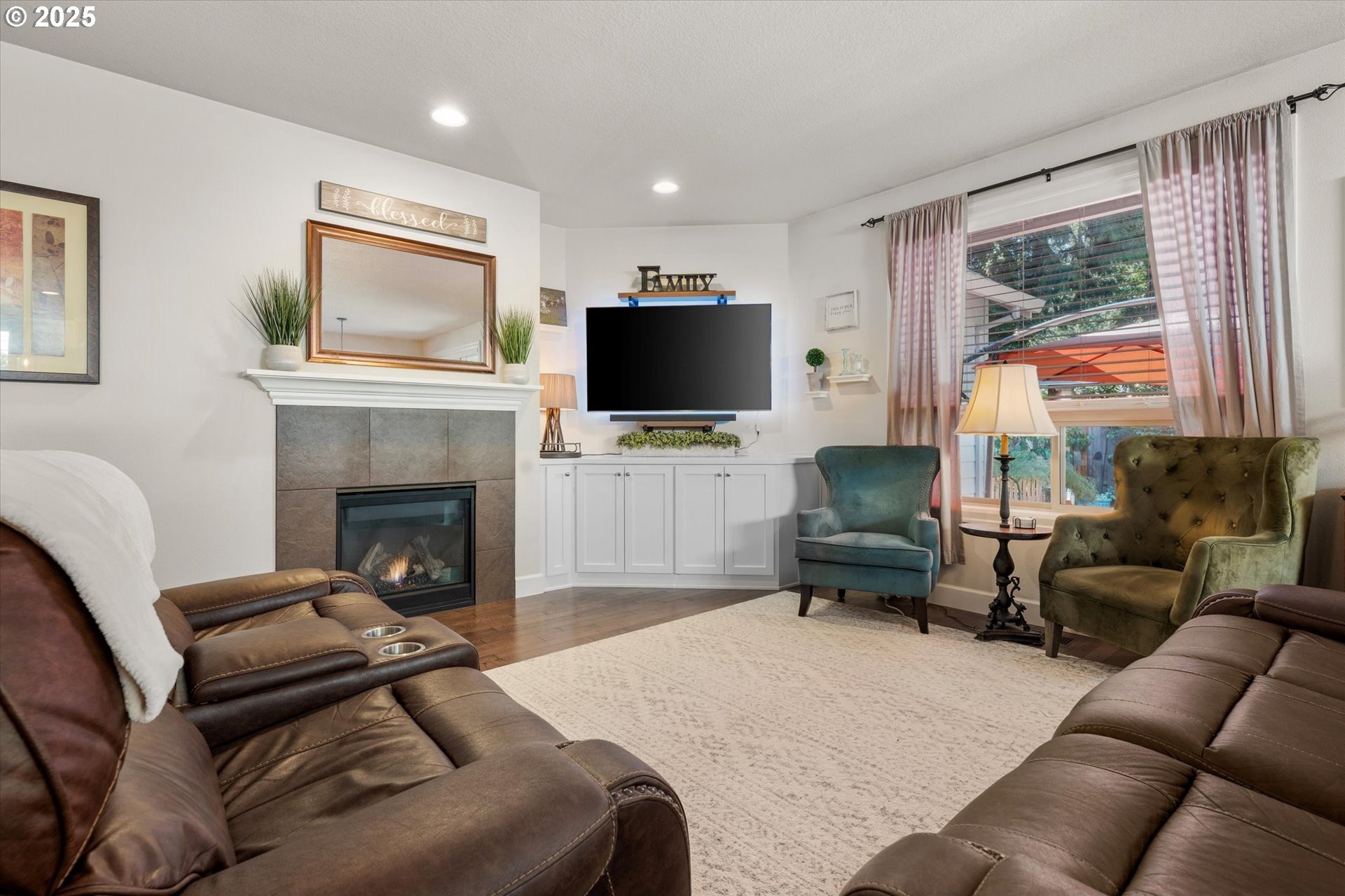 Welcome to your own private retreat — a thoughtfully designed one-level home that combines comfort and convenience in every detail. Step inside to the maple floors that flow through the living areas. The open concept kitchen with granite countertops, pantry storage, and an island with bar seating. The family room invites you to gather around the cozy gas fireplace, framed by custom built-ins and the dining room opens to the backyard with a slider—perfect for easy indoor-outdoor living. The spacious primary suite offers double sinks with quartz countertops, a walk-in closet, and a low-step shower. While the office/den with vaulted ceiling and closet provides flexible space for work or a 4th bedroom. There is a convenient laundry room with sink, storage, and tile flooring too.Out back, the private yard is truly an extension of the home. Designed for gatherings and relaxation, it features a large patio, gazebo, BBQ station with cover, patio lights, and raised garden beds. Fully fenced and surrounded by lush greenery, it’s your own private escape—perfect for both quiet mornings and lively evenings with friends.2 car garage converted to a McMenamins-style game room—great for fun gatherings, and easily converted back if you prefer!This home’s tranquil setting offers a sense of escape, yet you’re just minutes from nearby amenities and the heart of Tigard. Whether you’re relaxing indoors or enjoying the peaceful outdoor spaces, this home offers the perfect blend of privacy, serenity, and comfort.